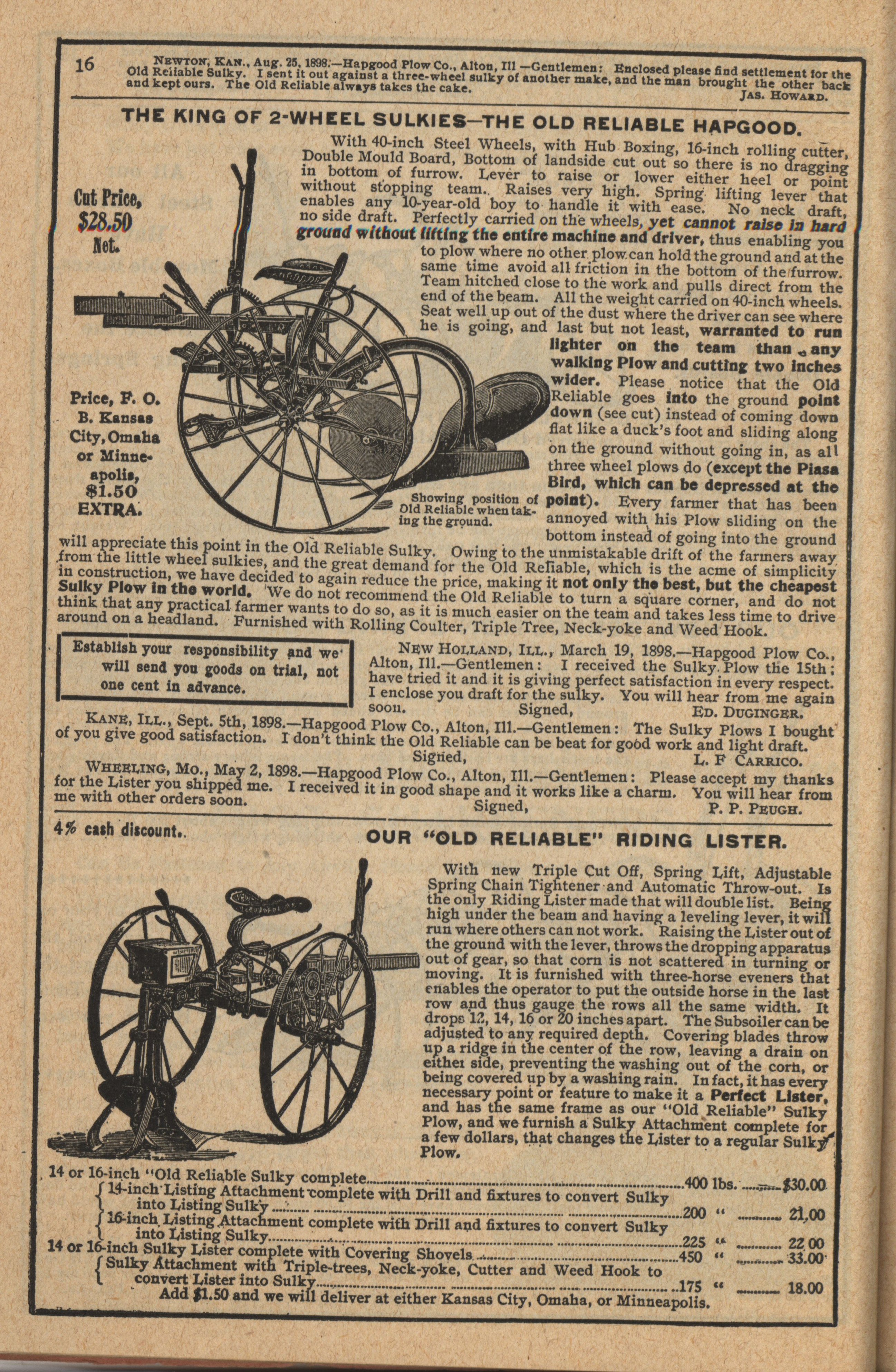 - "Hapgood Plow Company catalog", Agricultural Machinery Literature Collection, Iowa State University Library Digital Collections