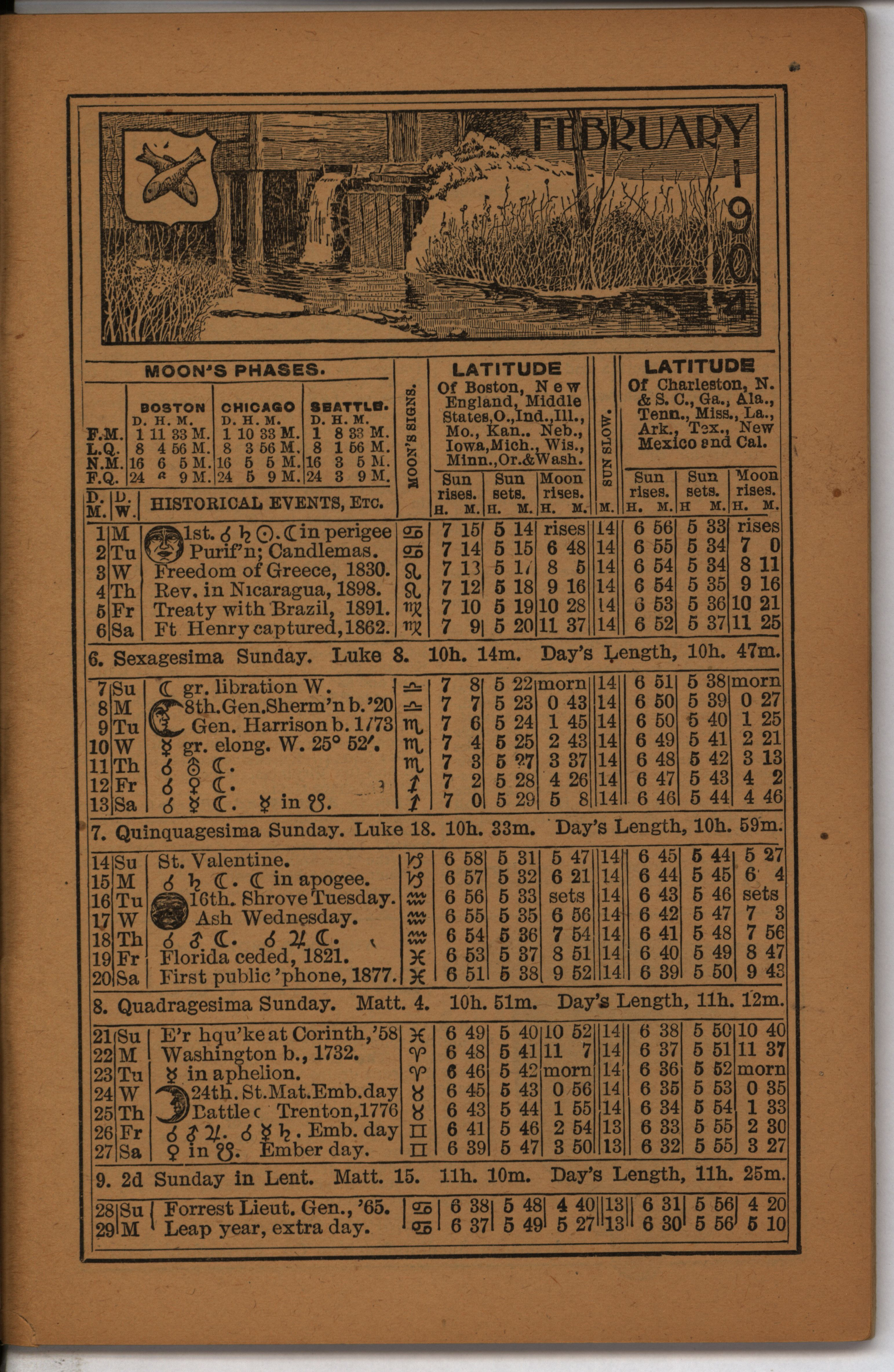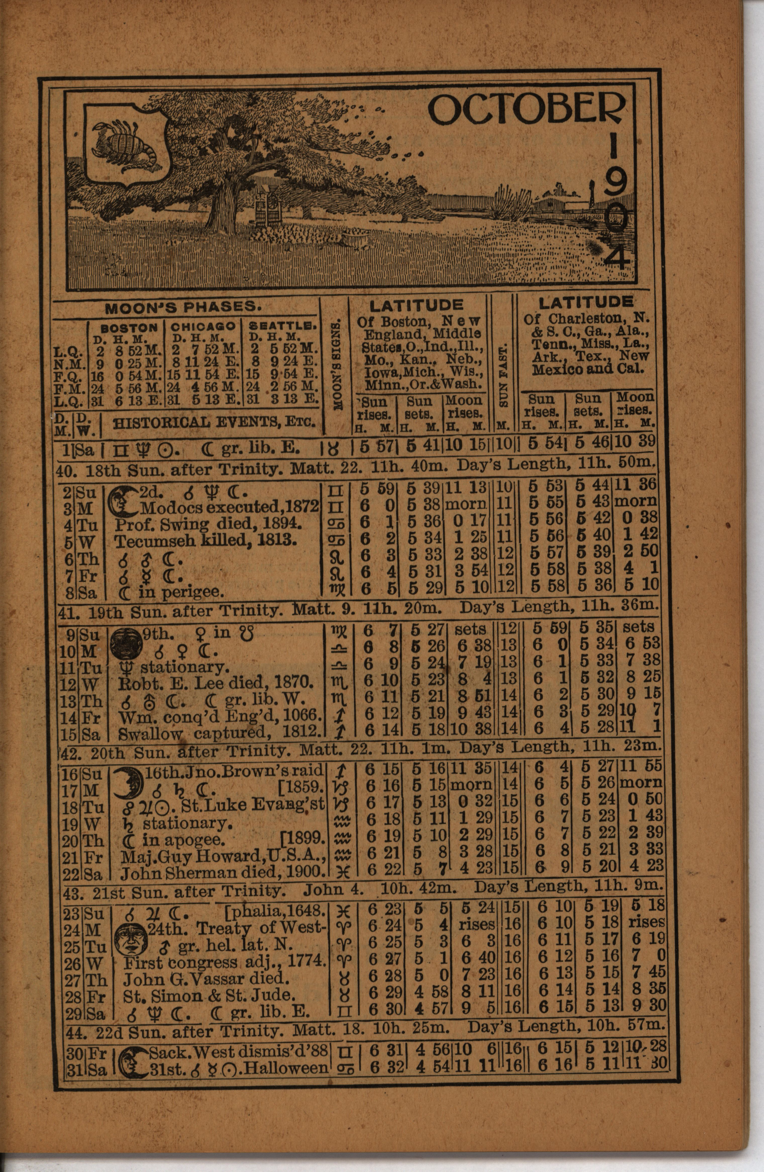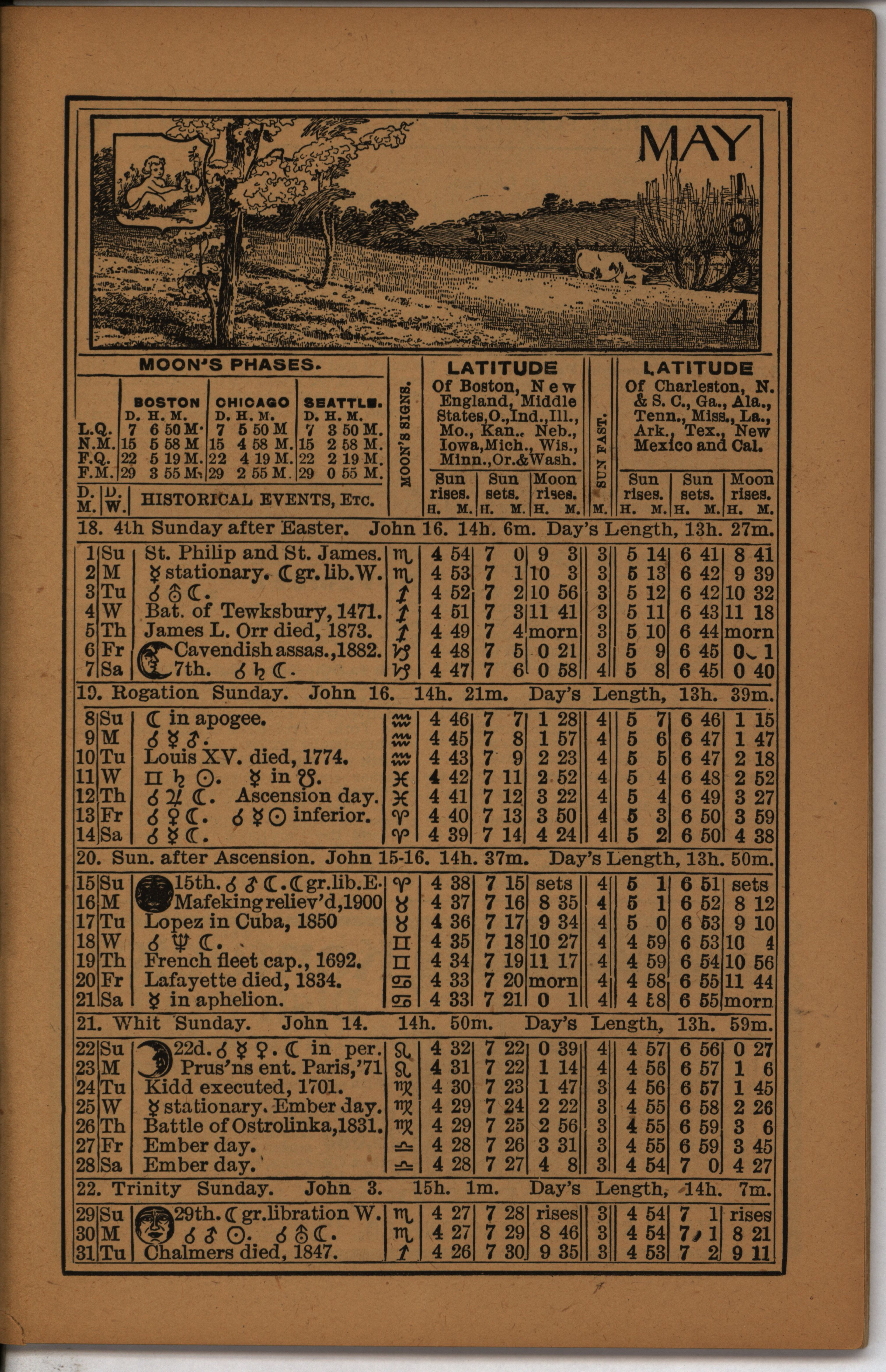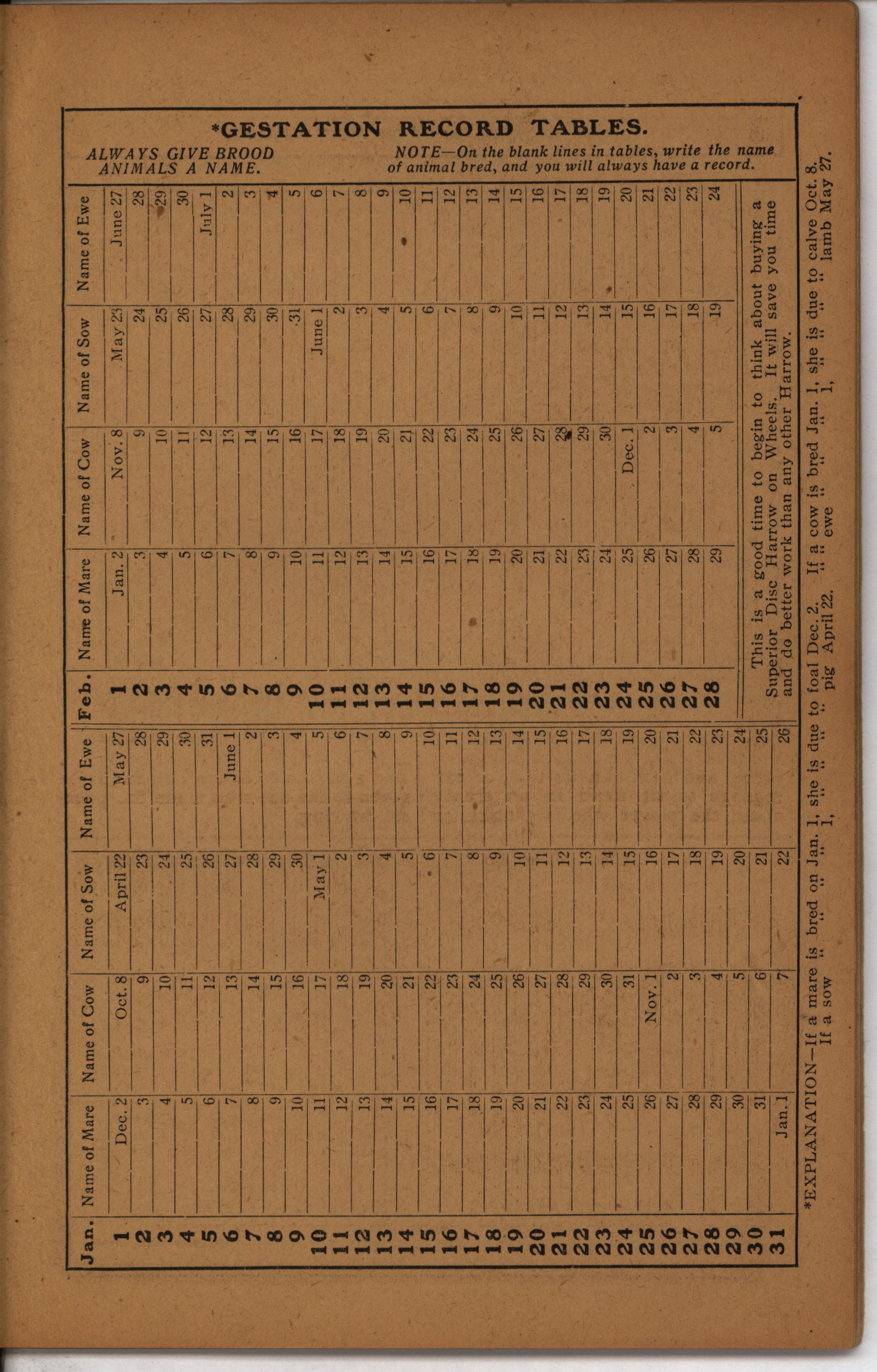 - Farmer's almanac from 1904 published by the American Seeding-Machine Company. Details seasonal information and changes for each month along with agricultural advertisements.