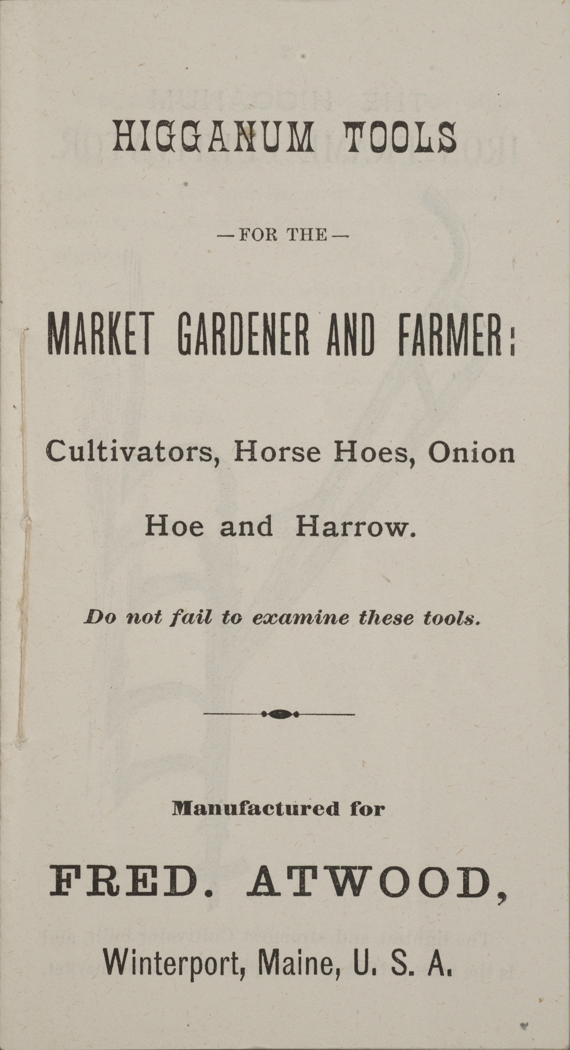 - "Fred Atwood Higganum Tools catalog", Agricultural Machinery Literature Collection, Iowa State University Library Digital Collections
