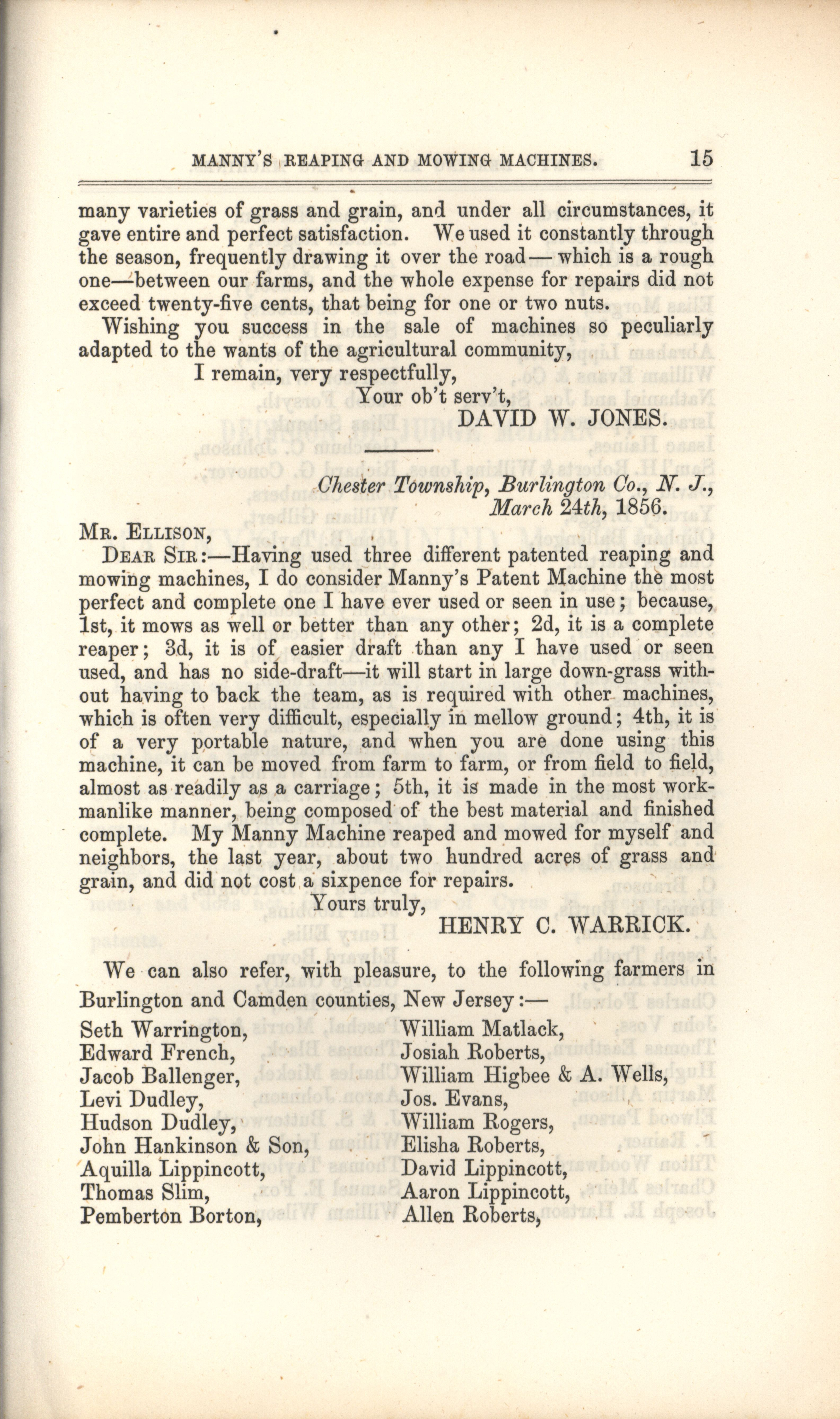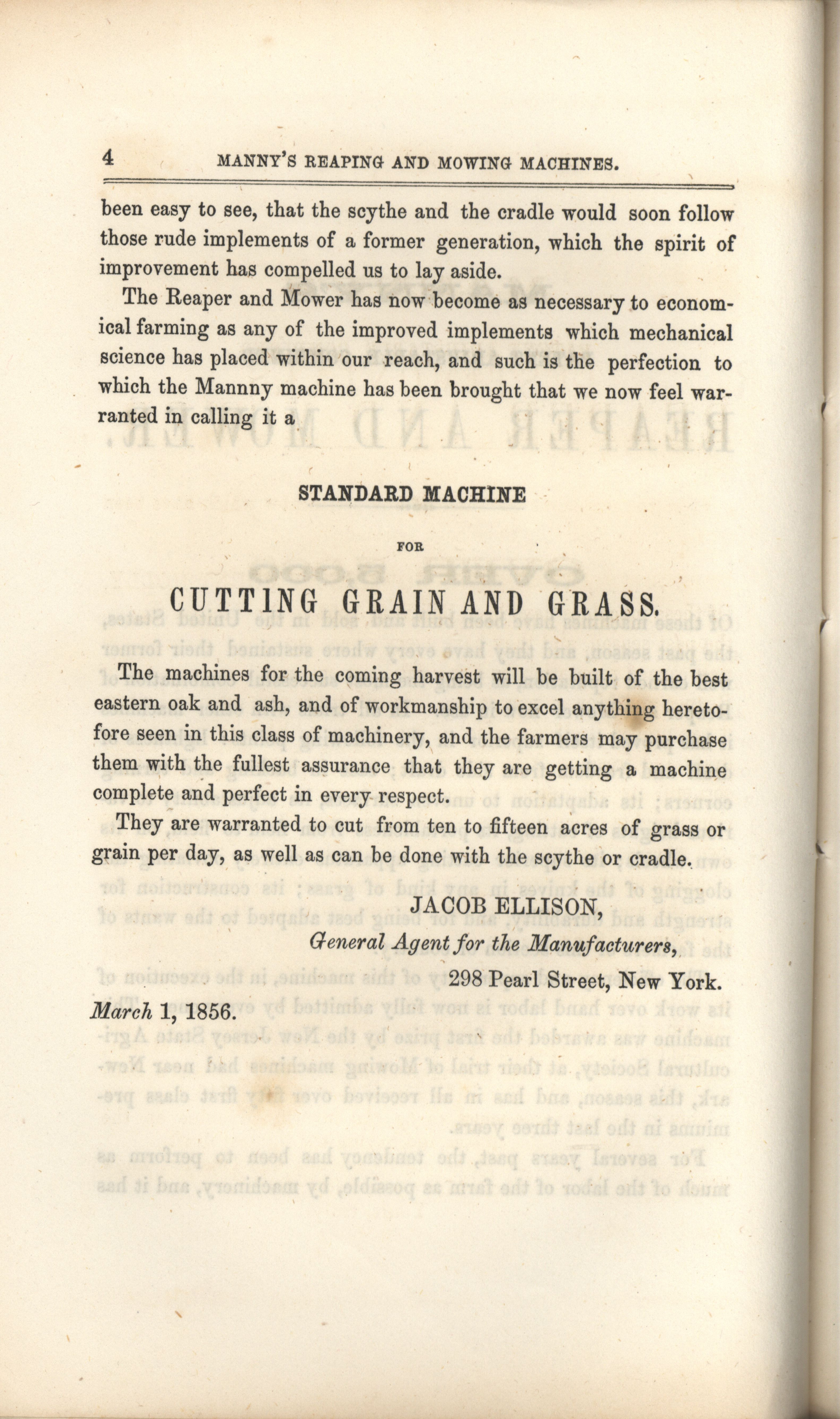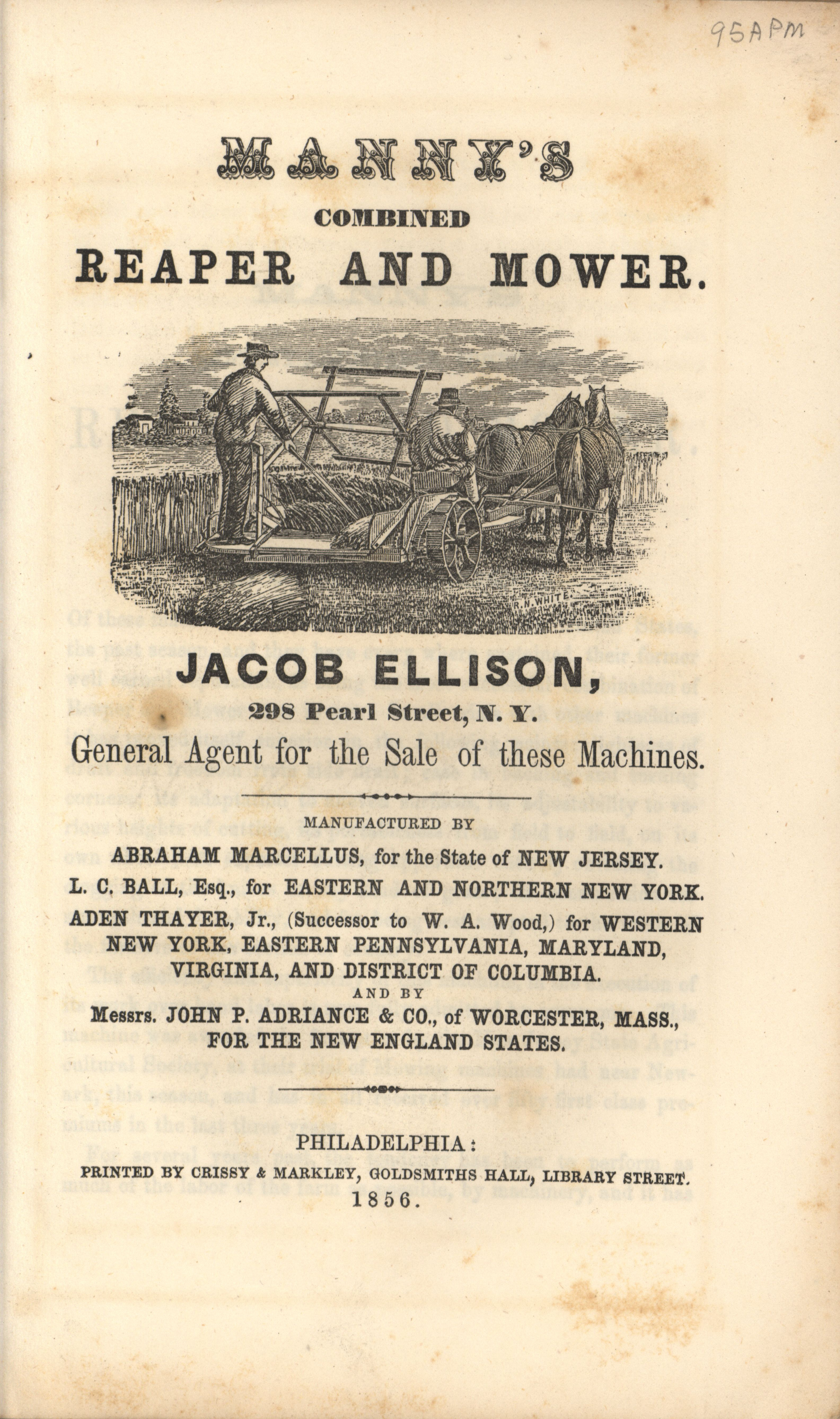 - Illustrated catalog describing the reaper and mower offered by John P. Adriance and Company in 1856.
