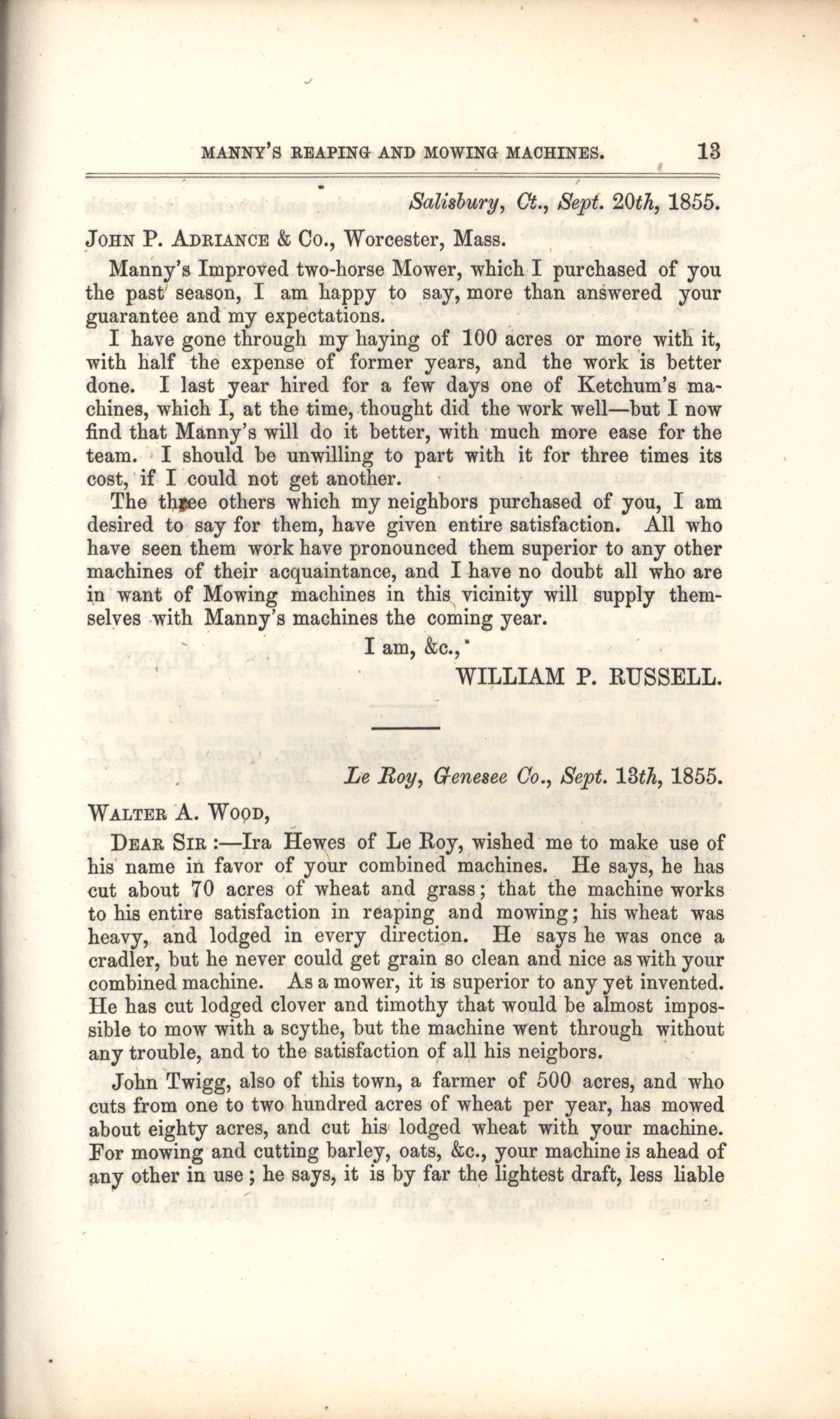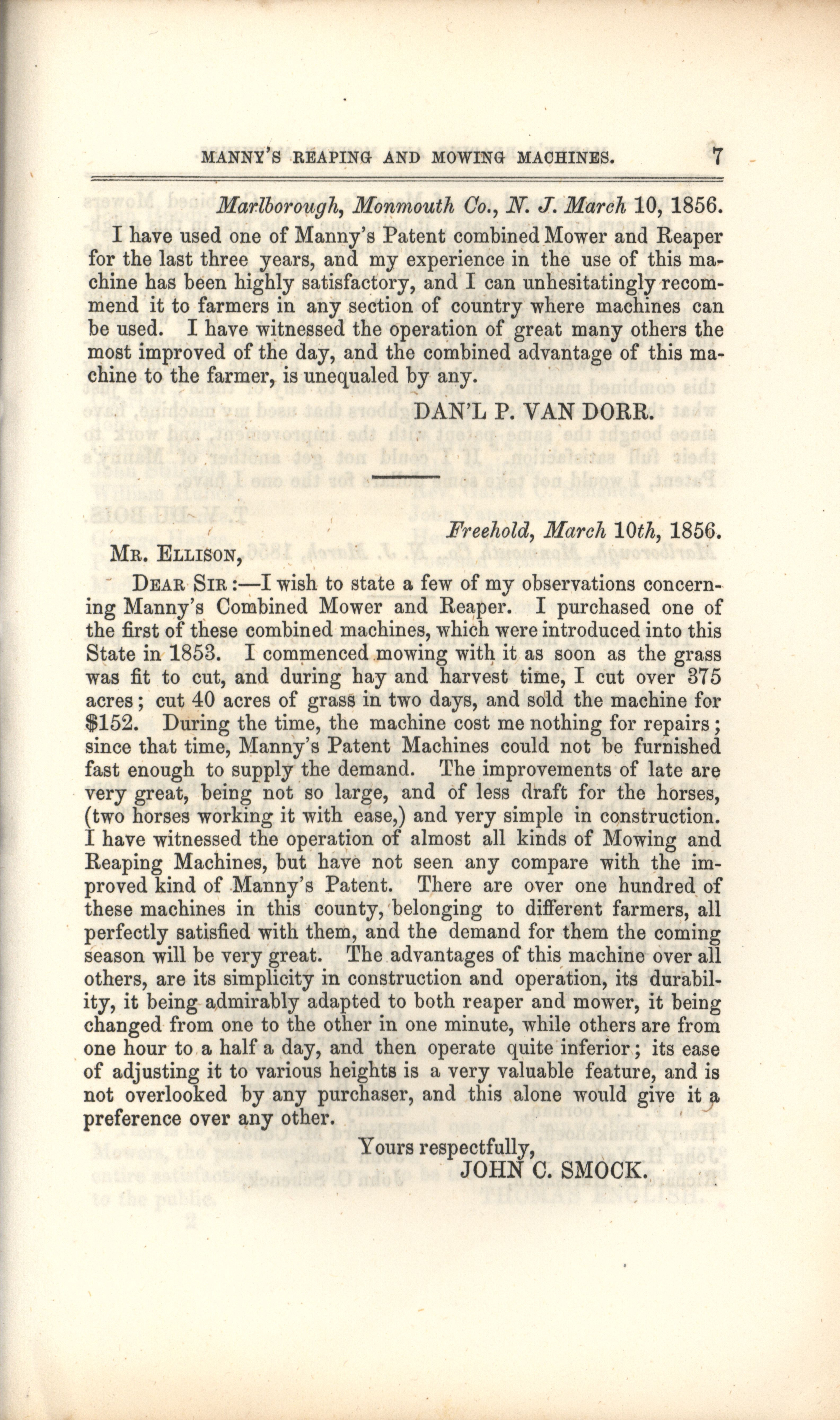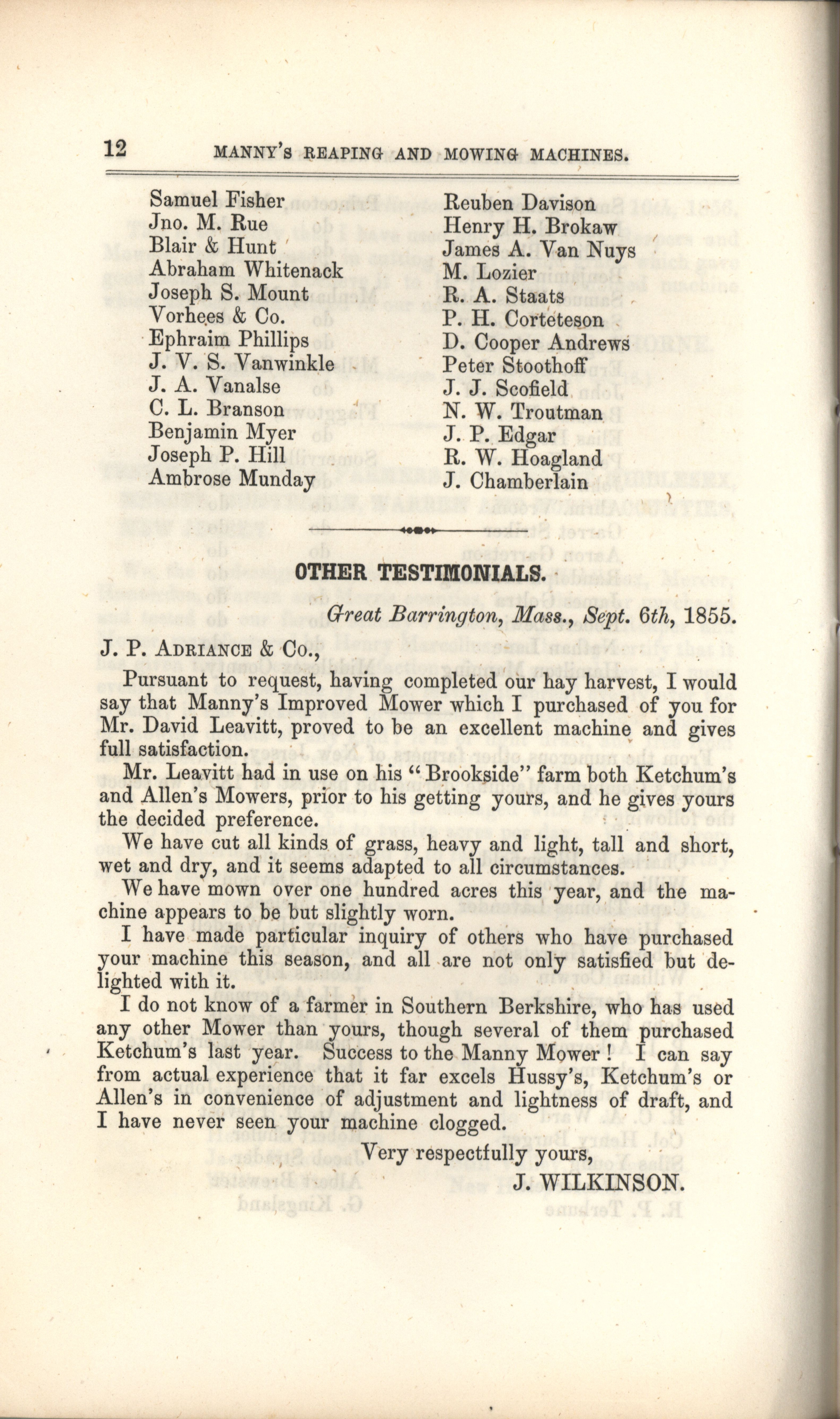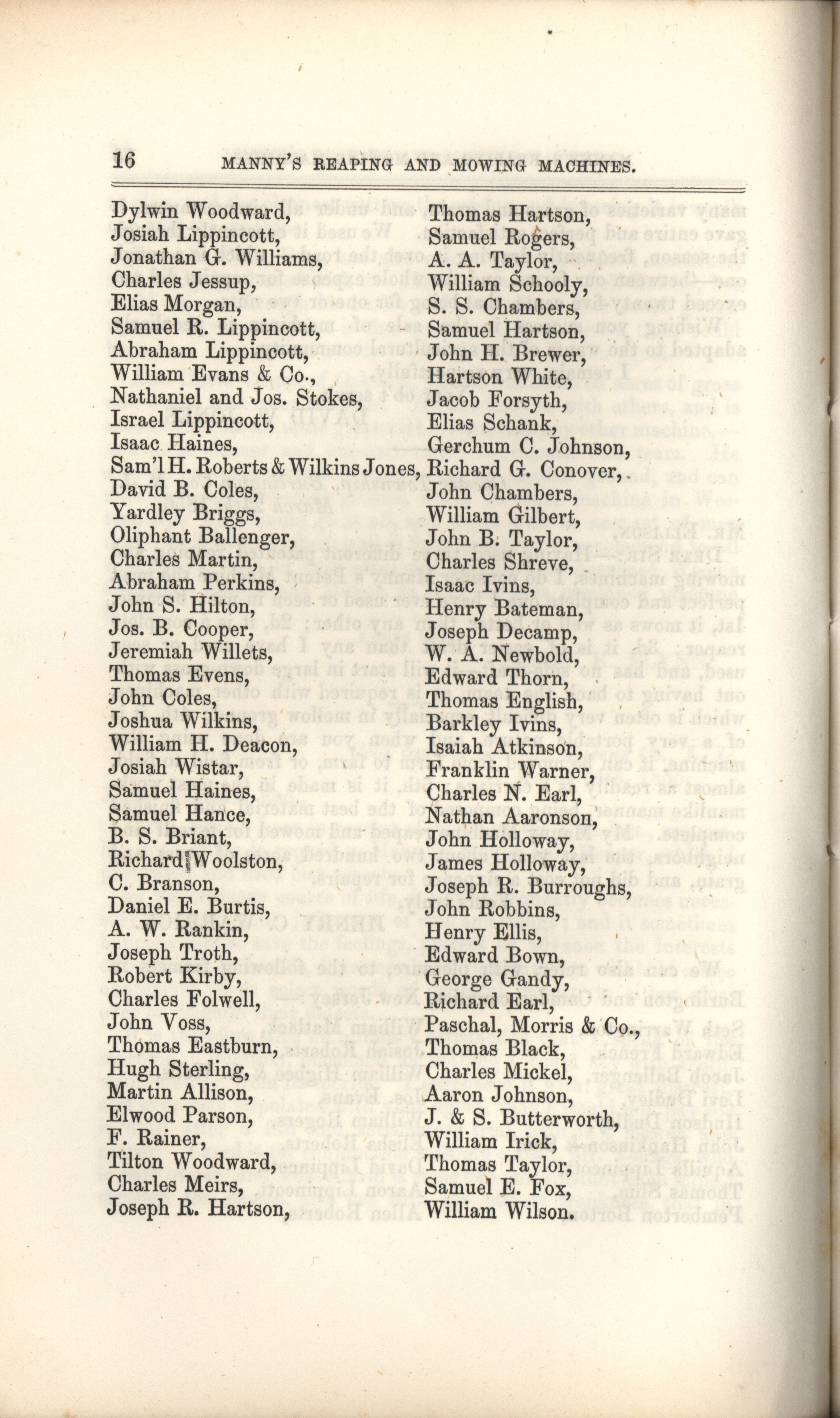 - "John P. Adriance and Company Manny's Reaper and Mower catalog", Agricultural Machinery Literature Collection, Iowa State University Library Digital Collections