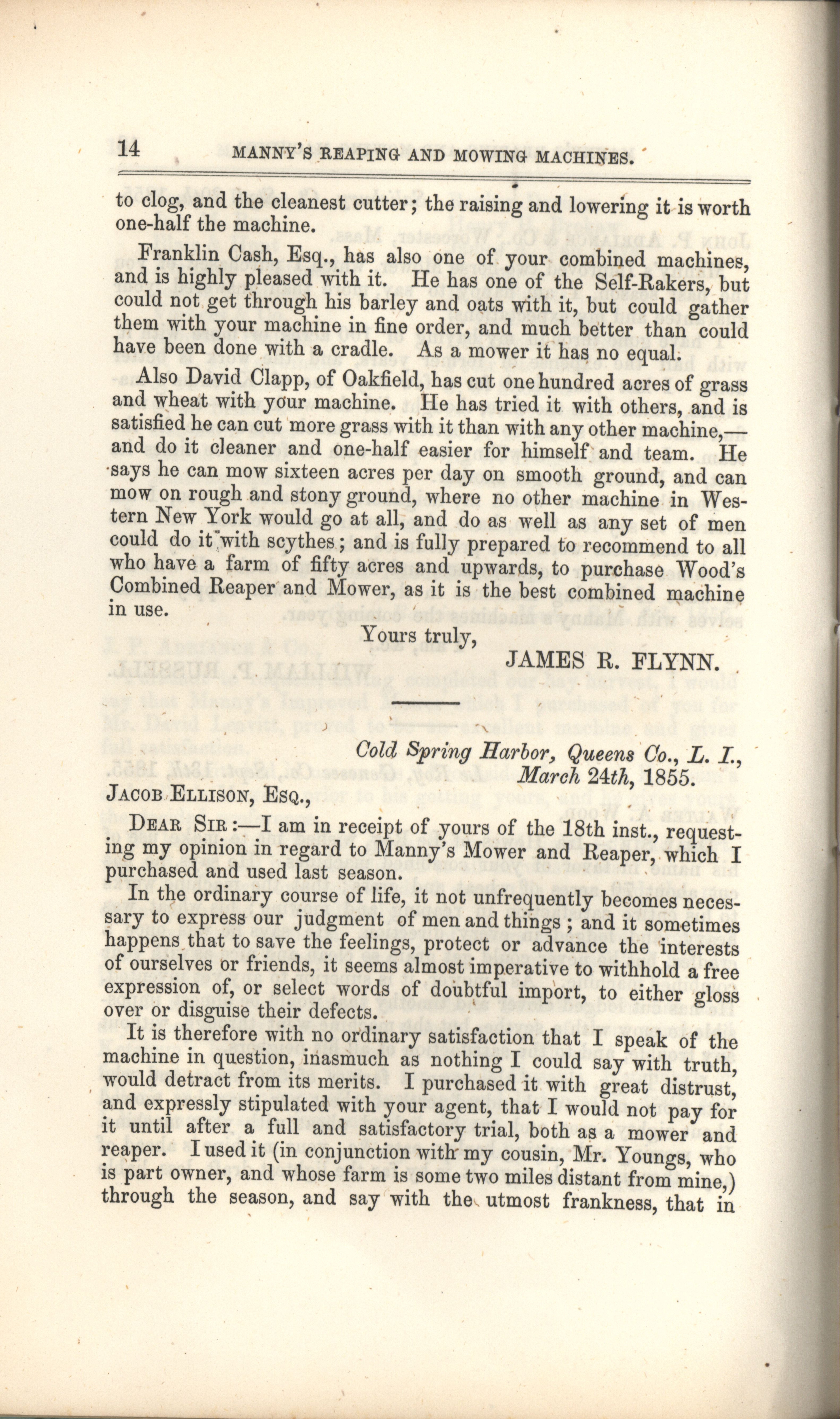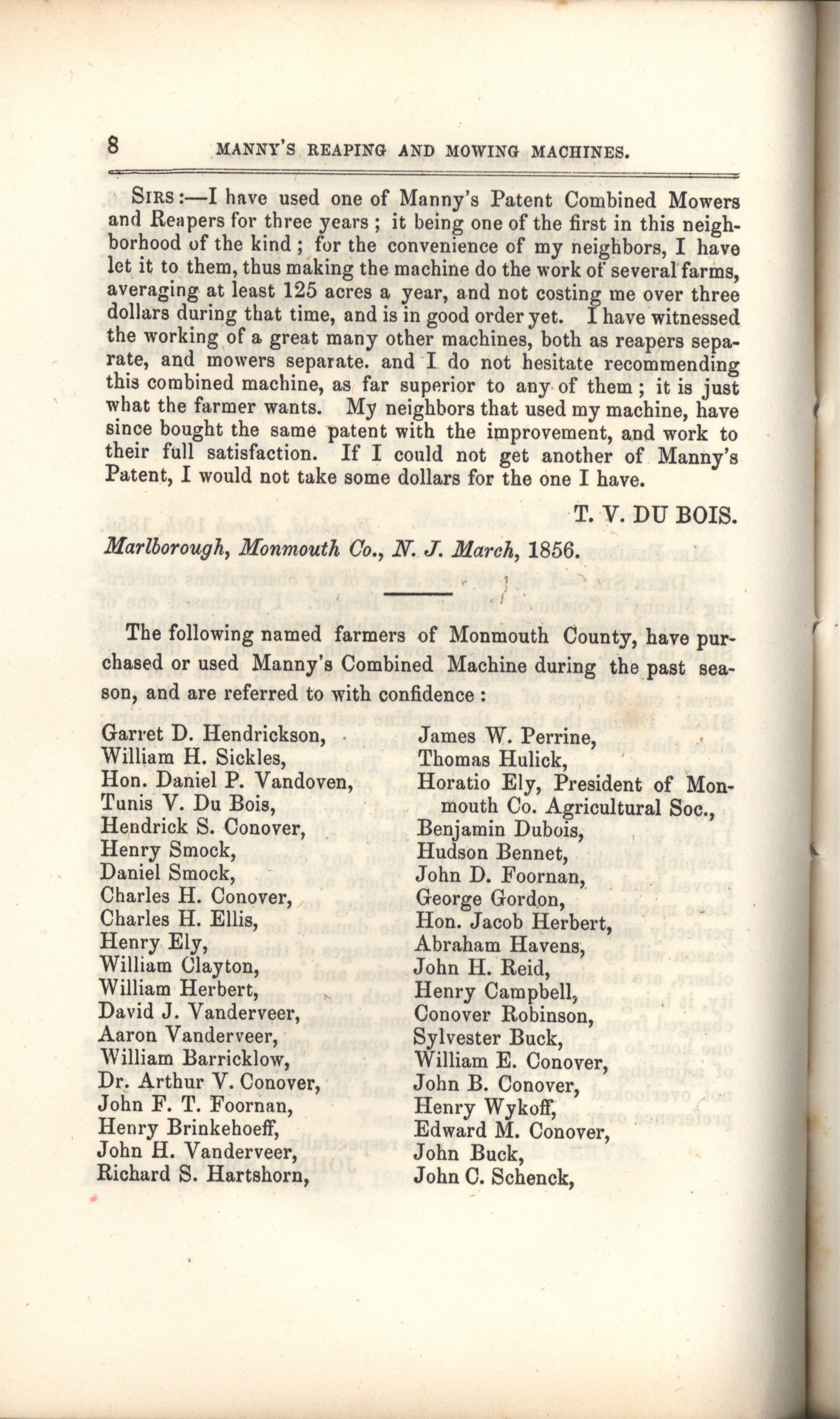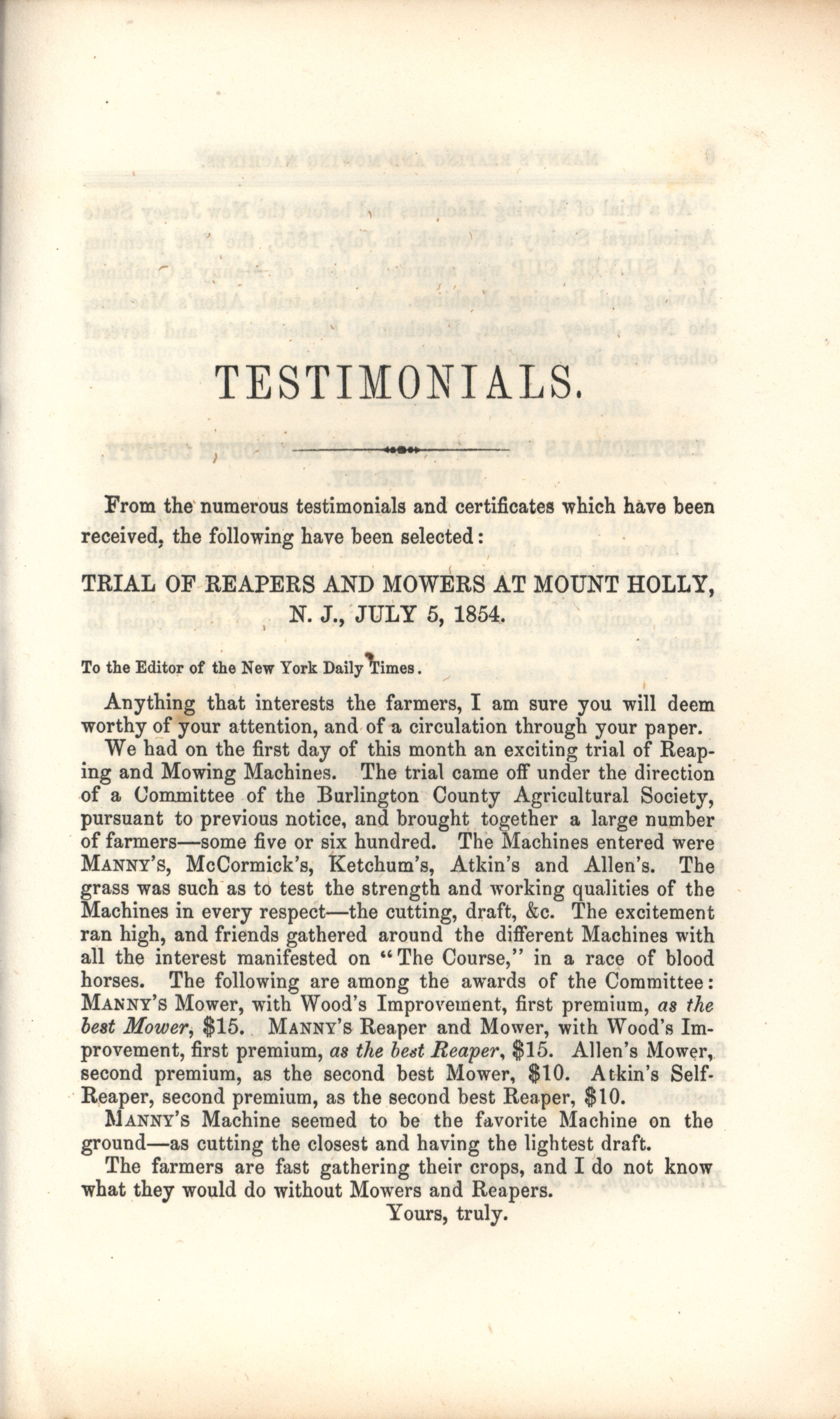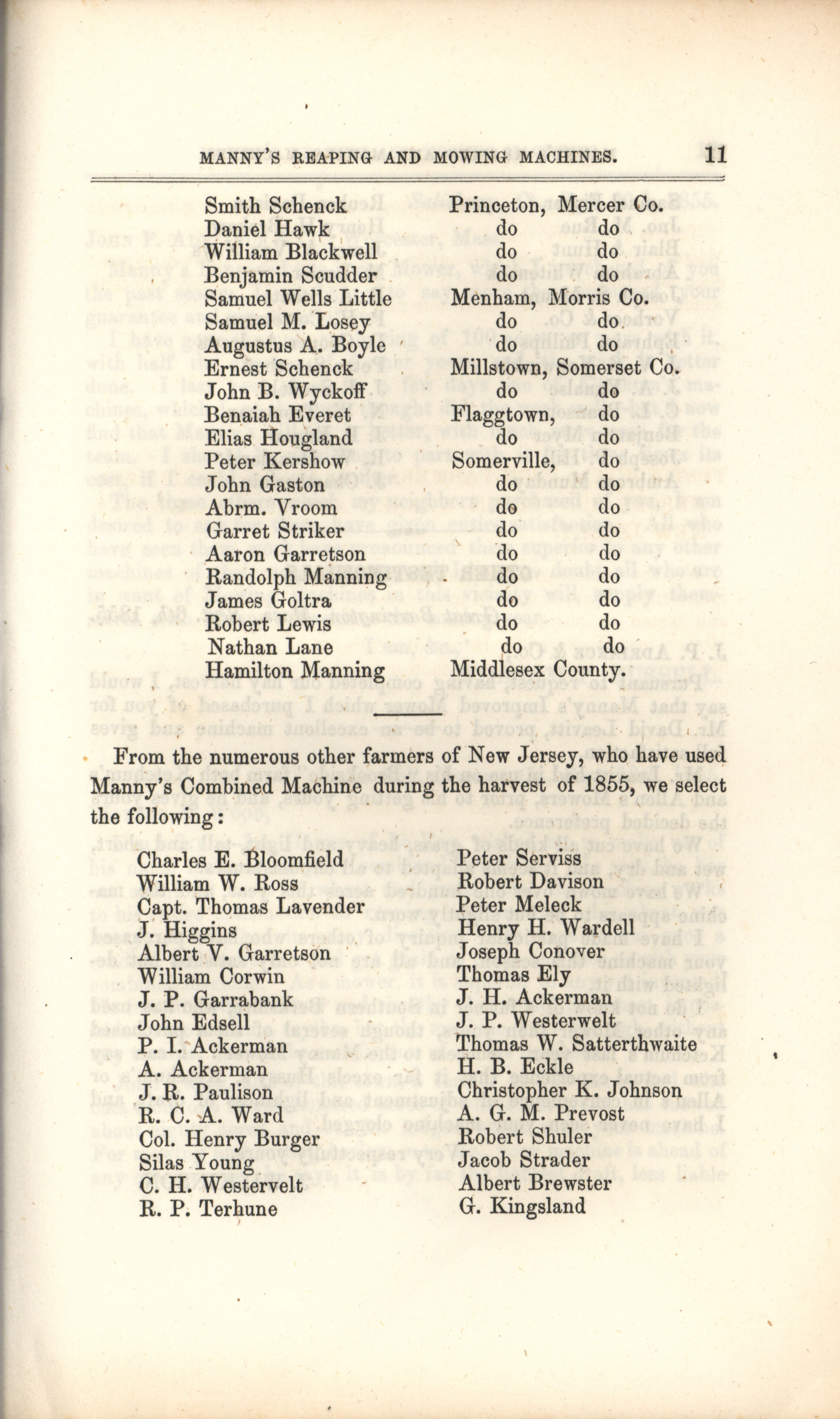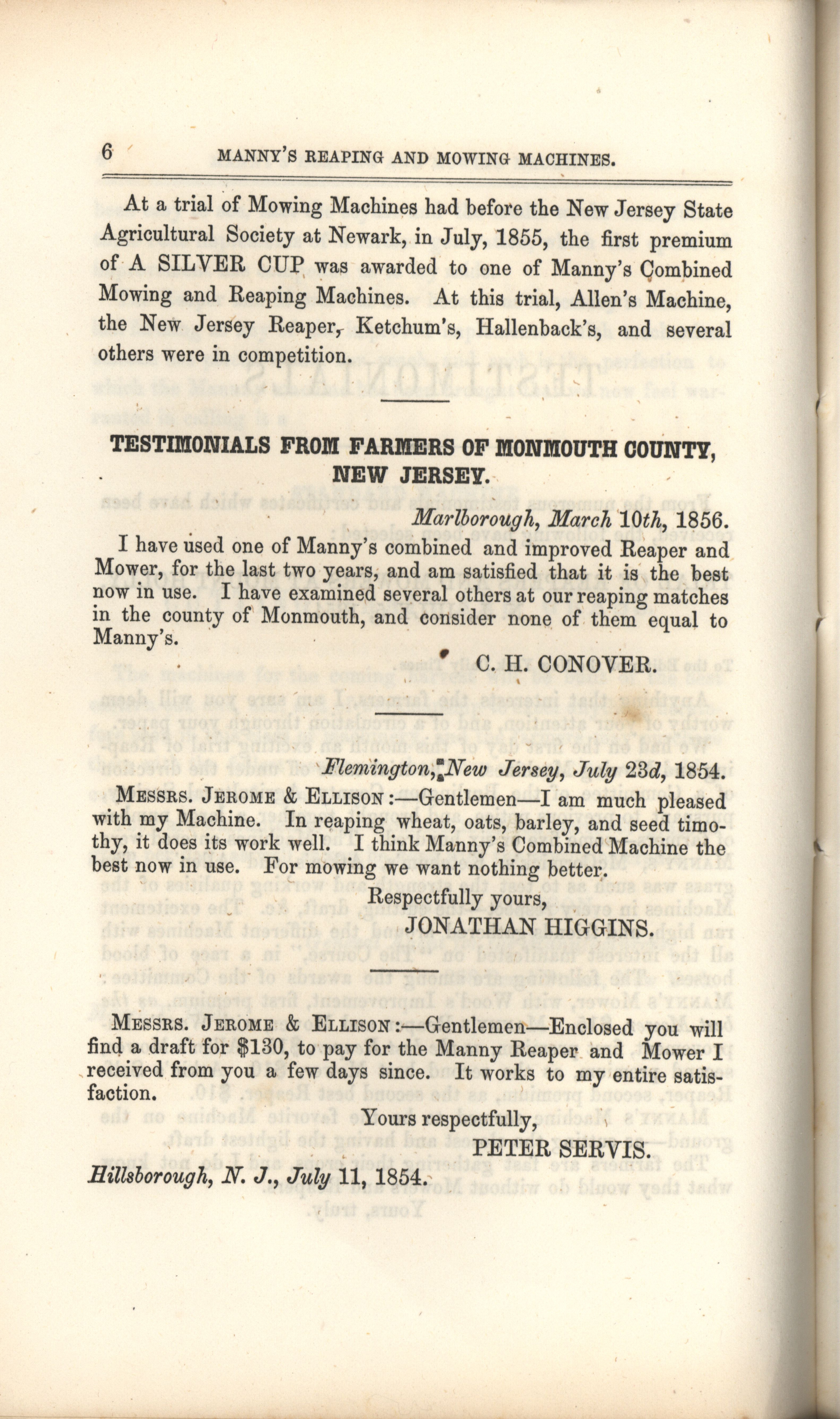 - "John P. Adriance and Company Manny's Reaper and Mower catalog", Agricultural Machinery Literature Collection, Iowa State University Library Digital Collections