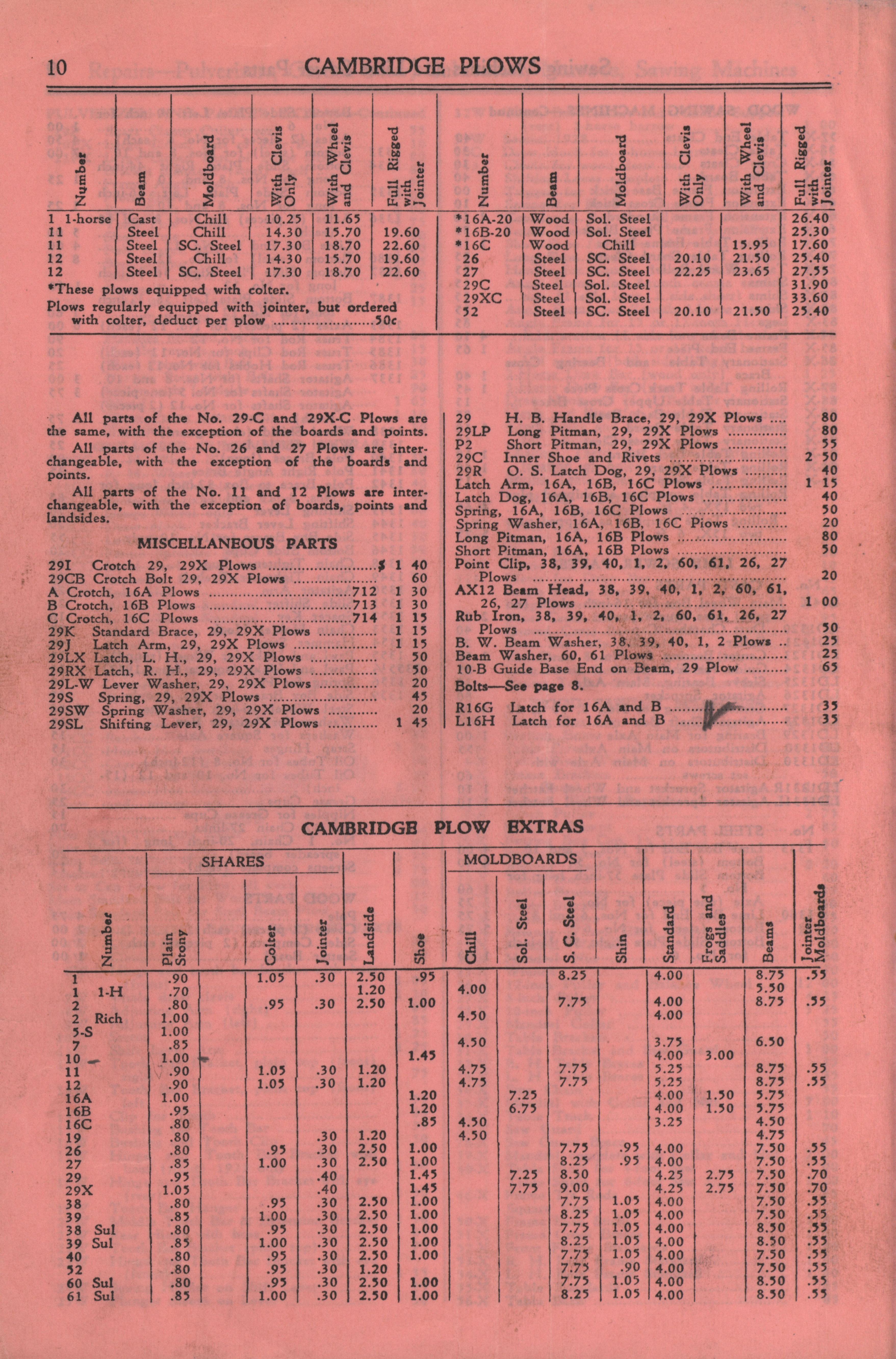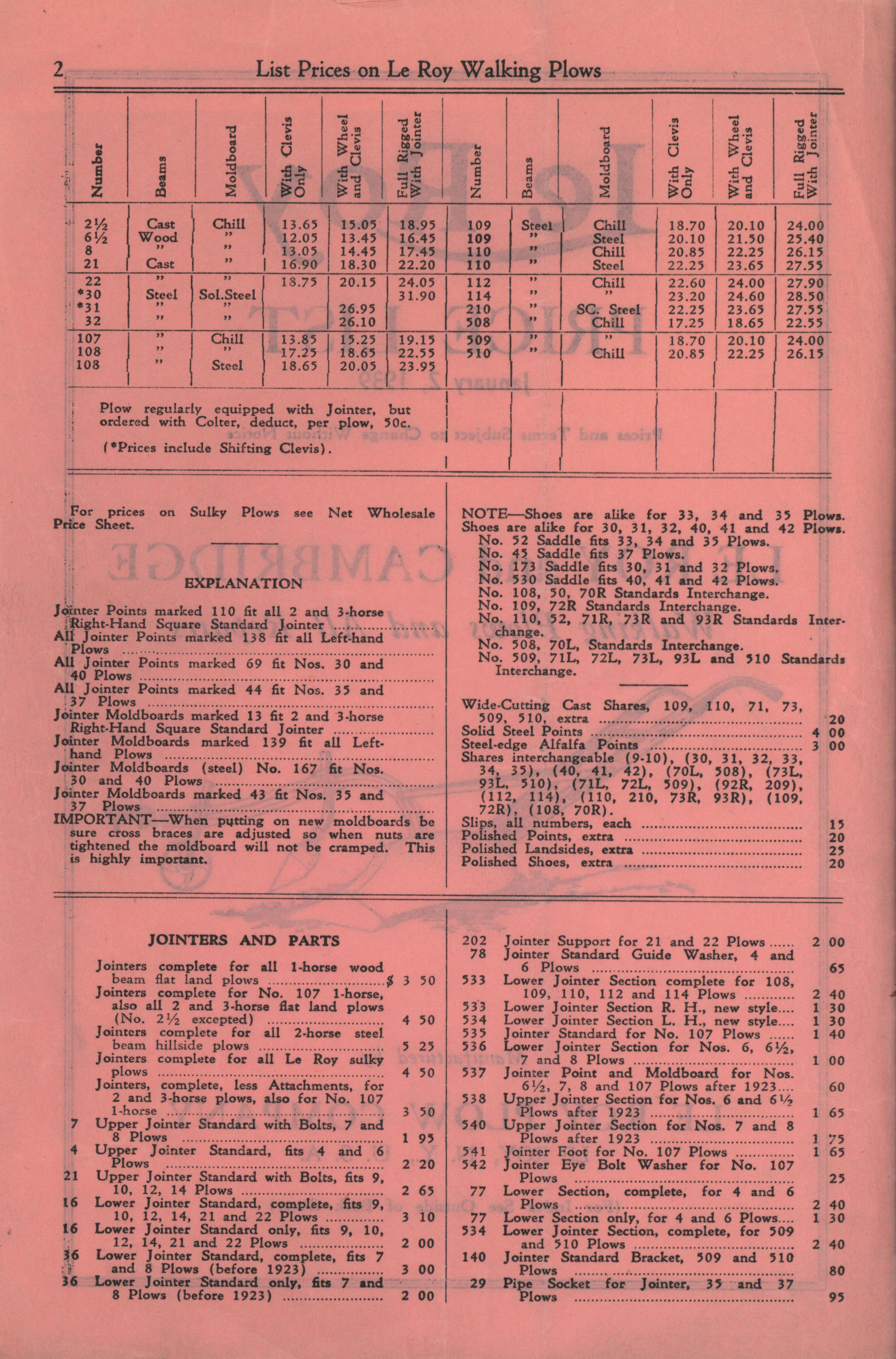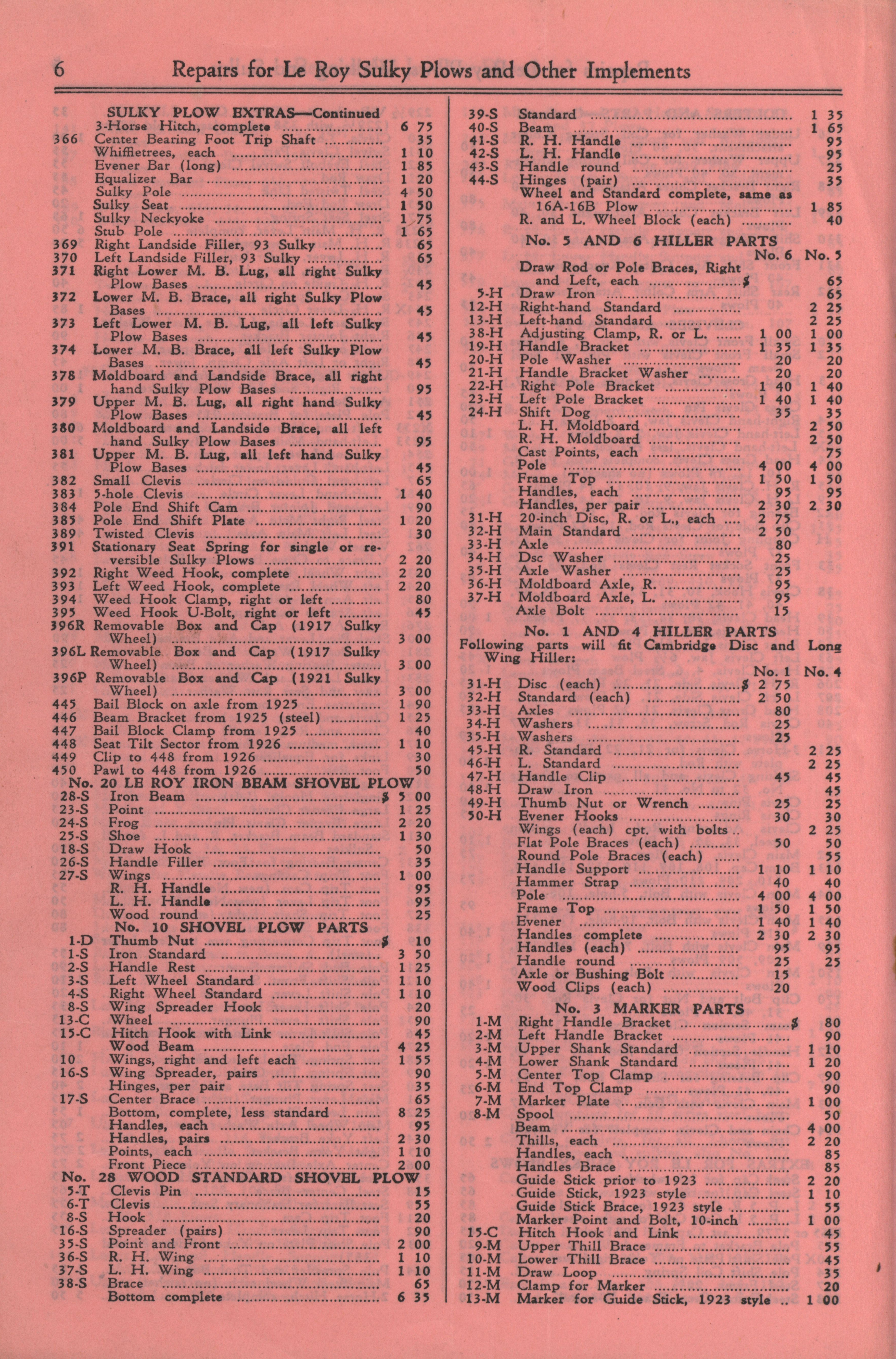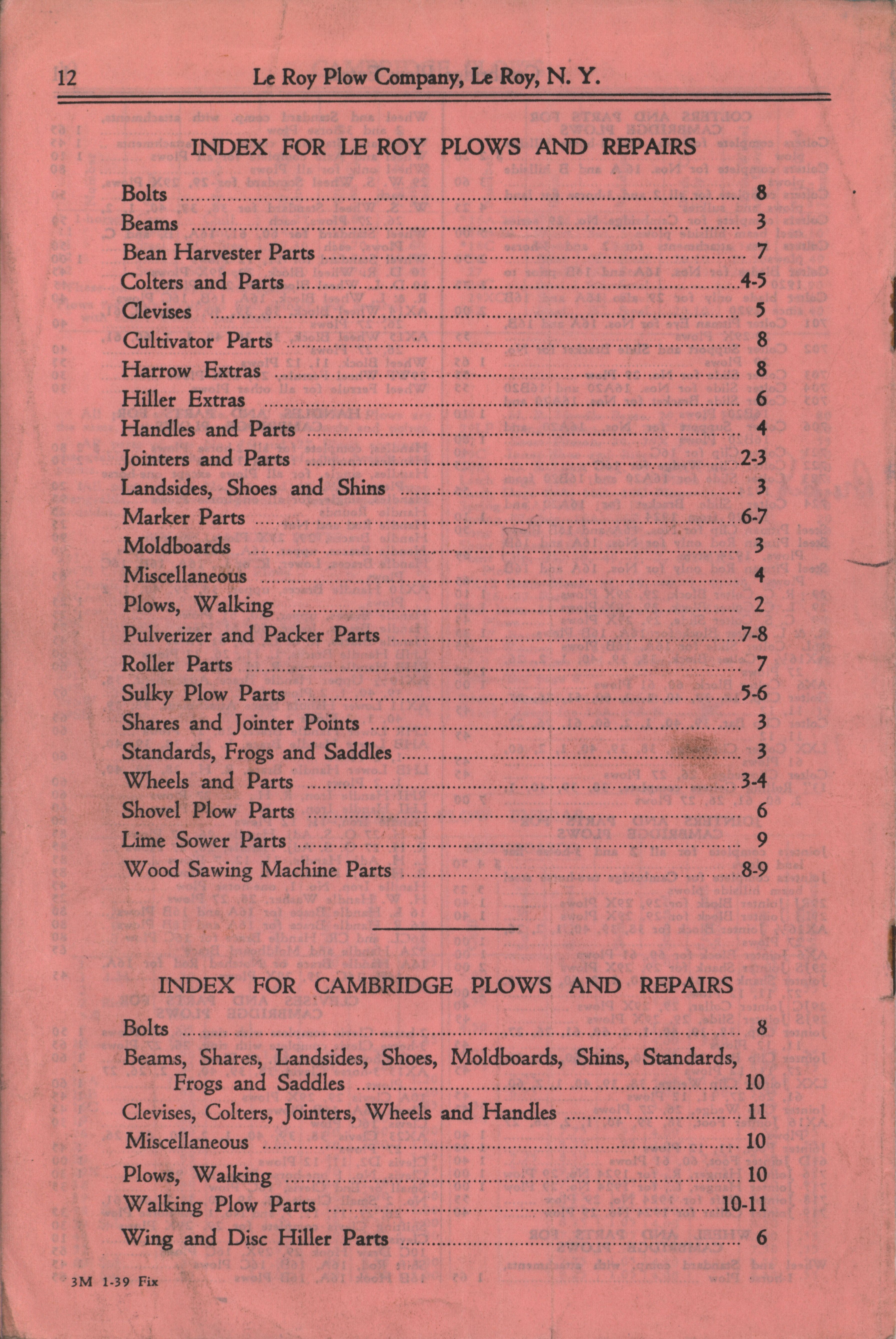 - Le Roy and Cambridge Walking Plows and All Repairs 1939 price list