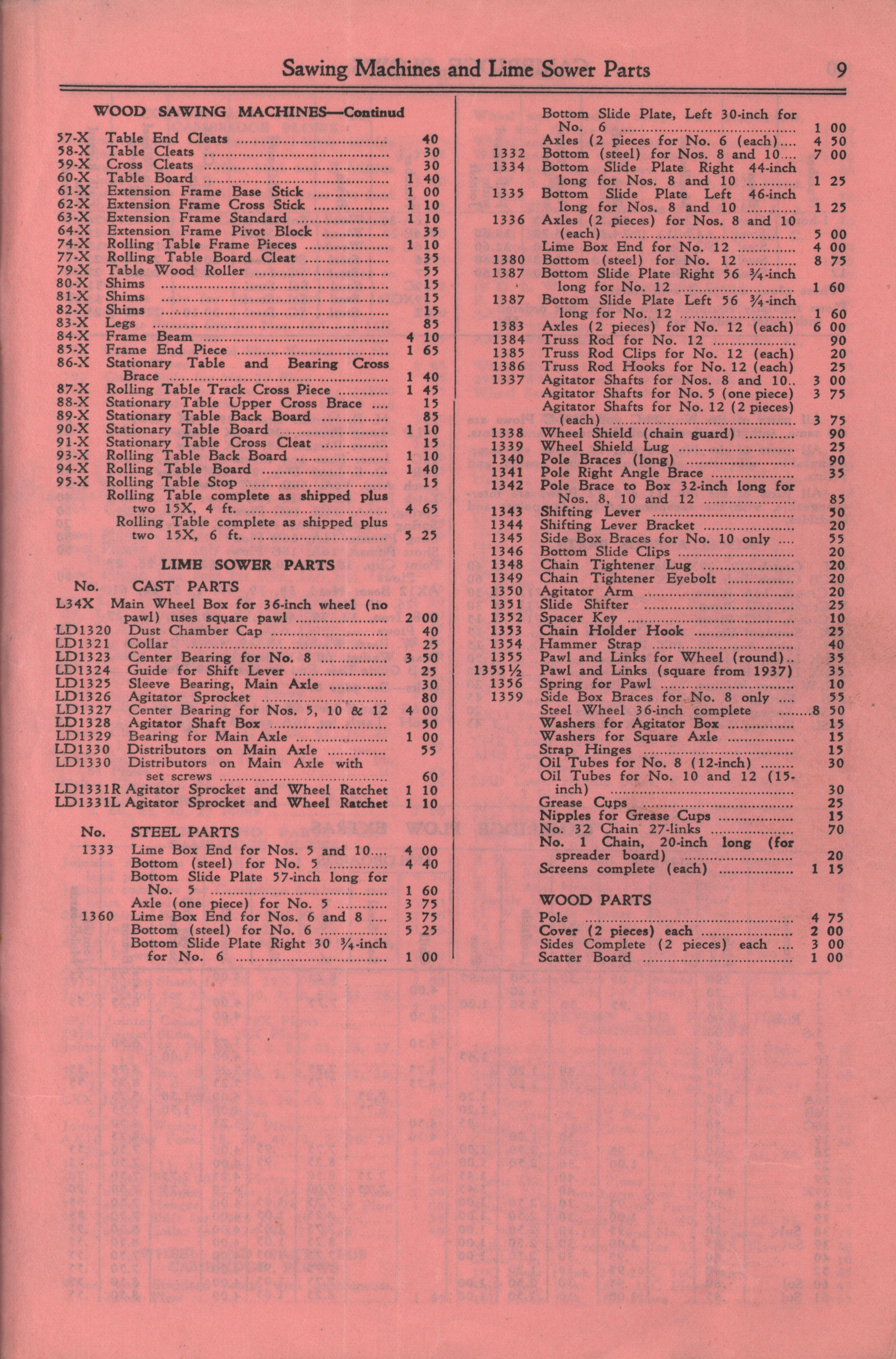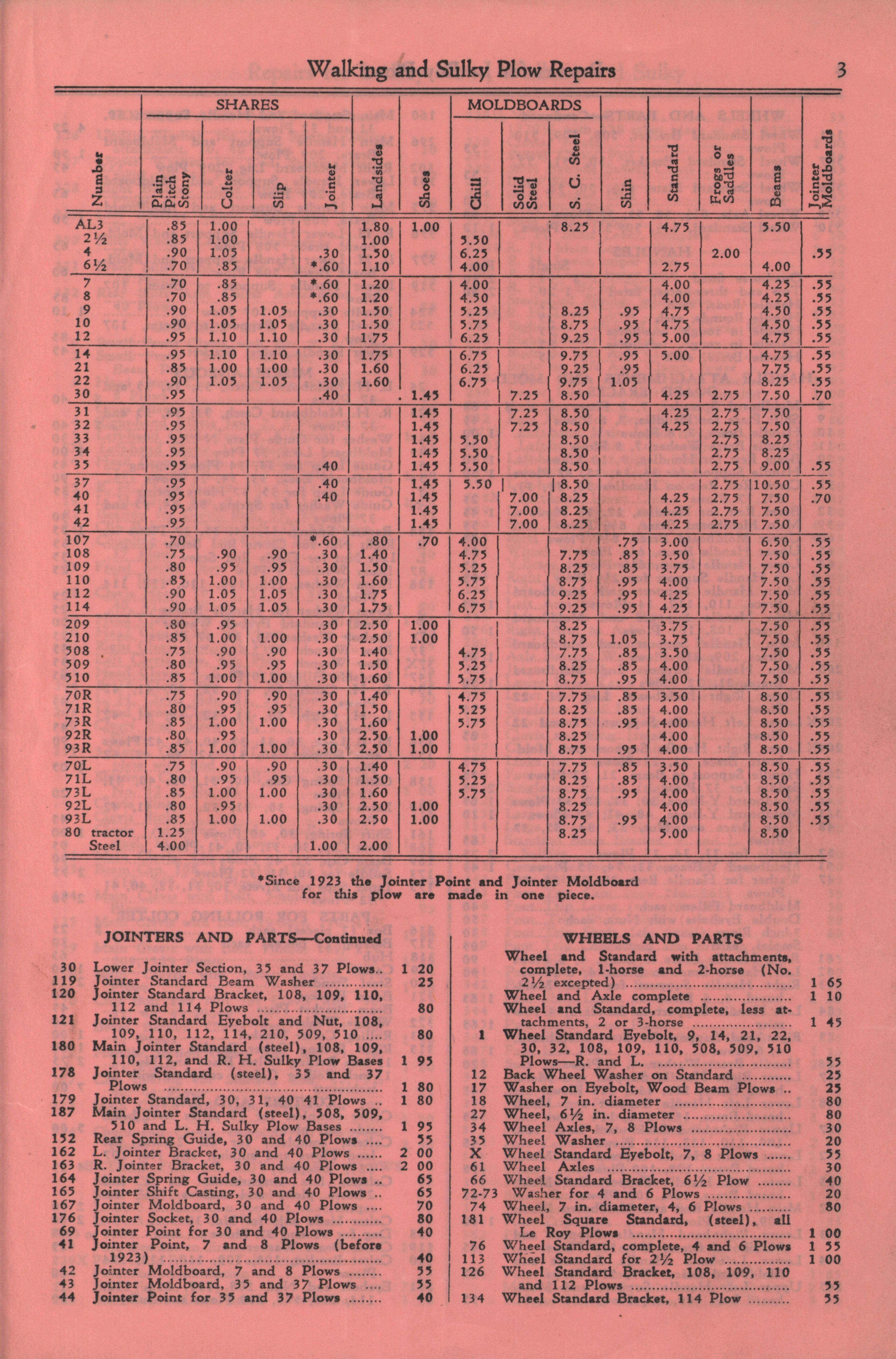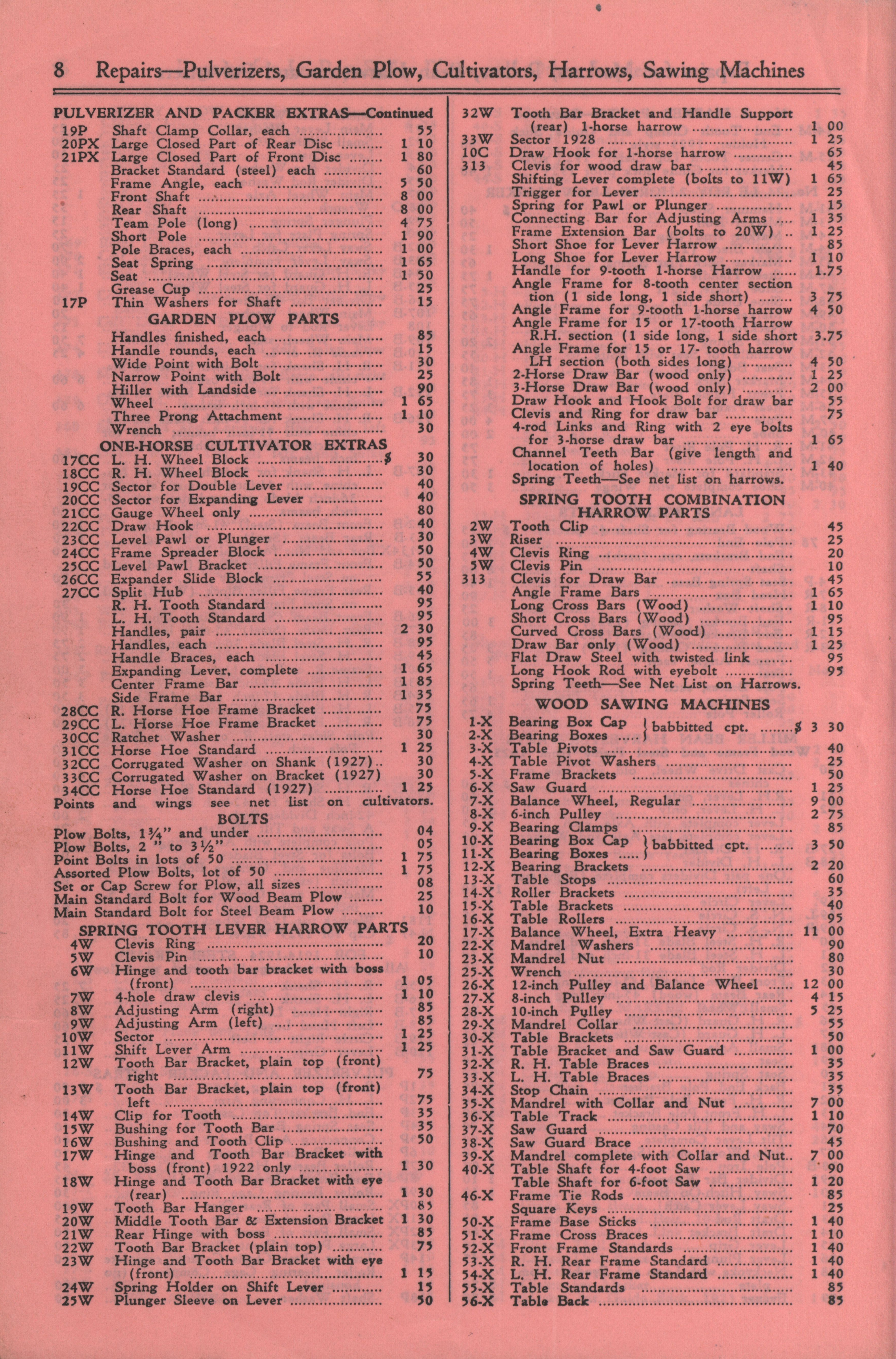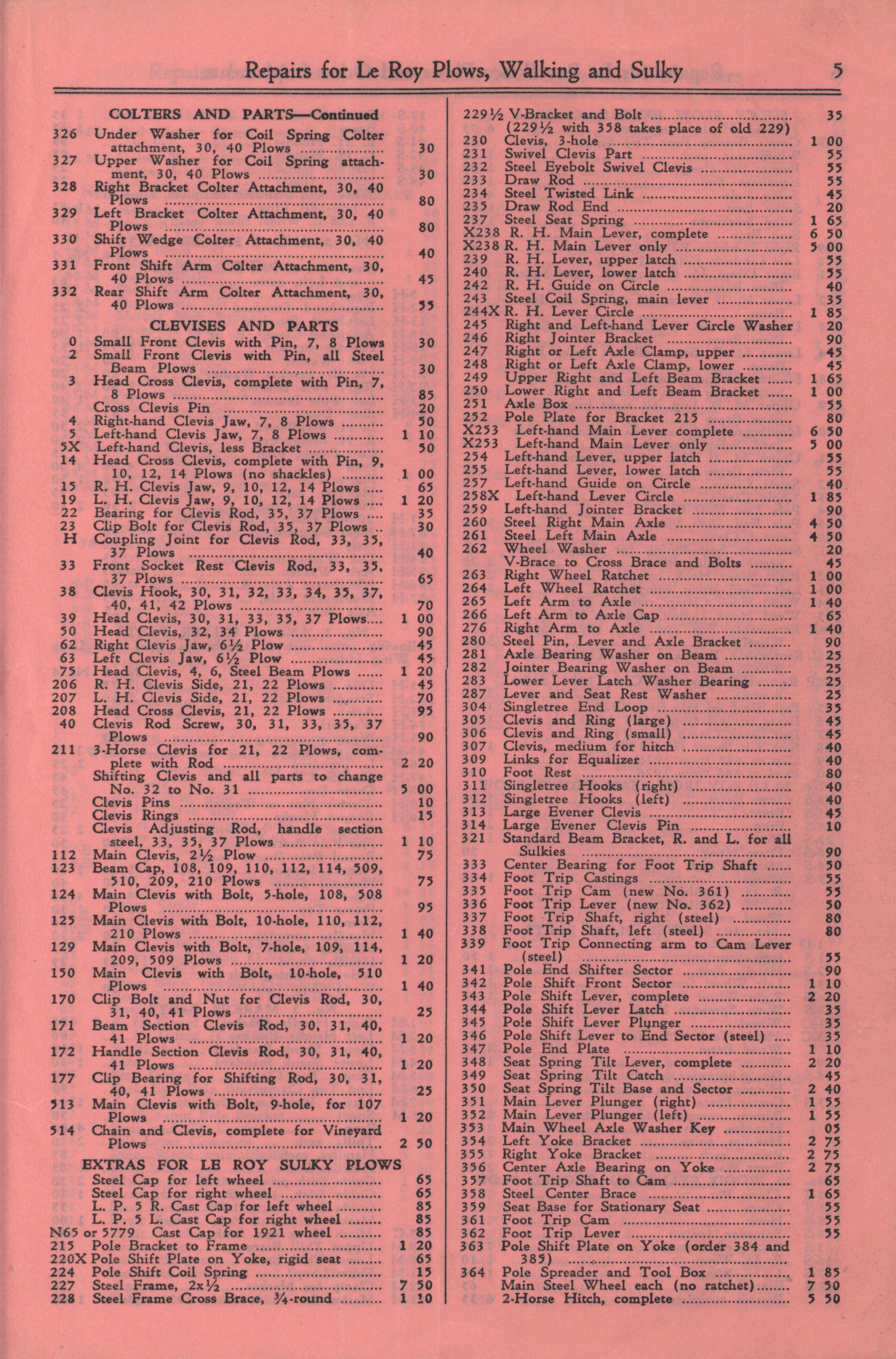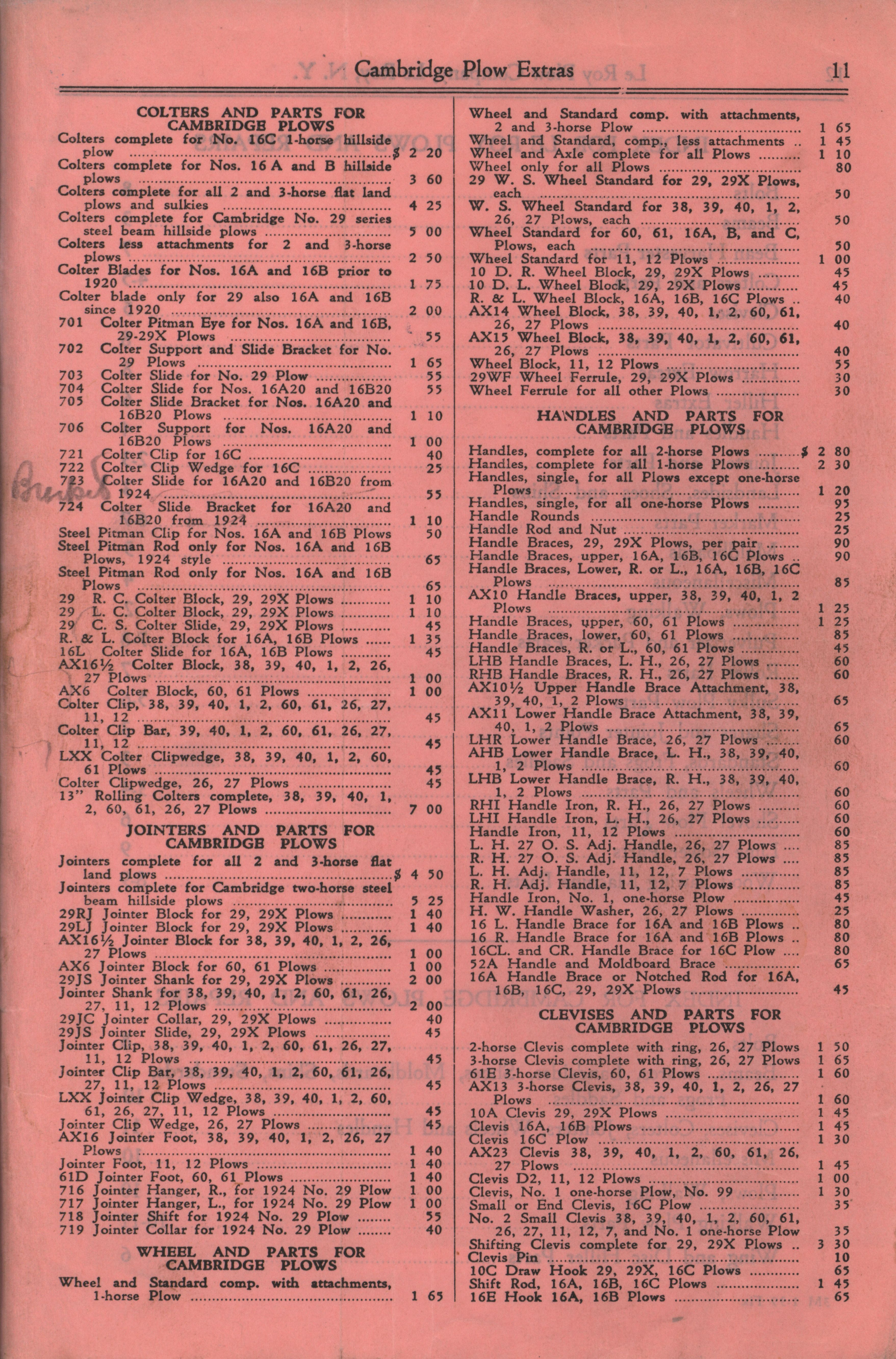 - Le Roy and Cambridge Walking Plows and All Repairs 1939 price list