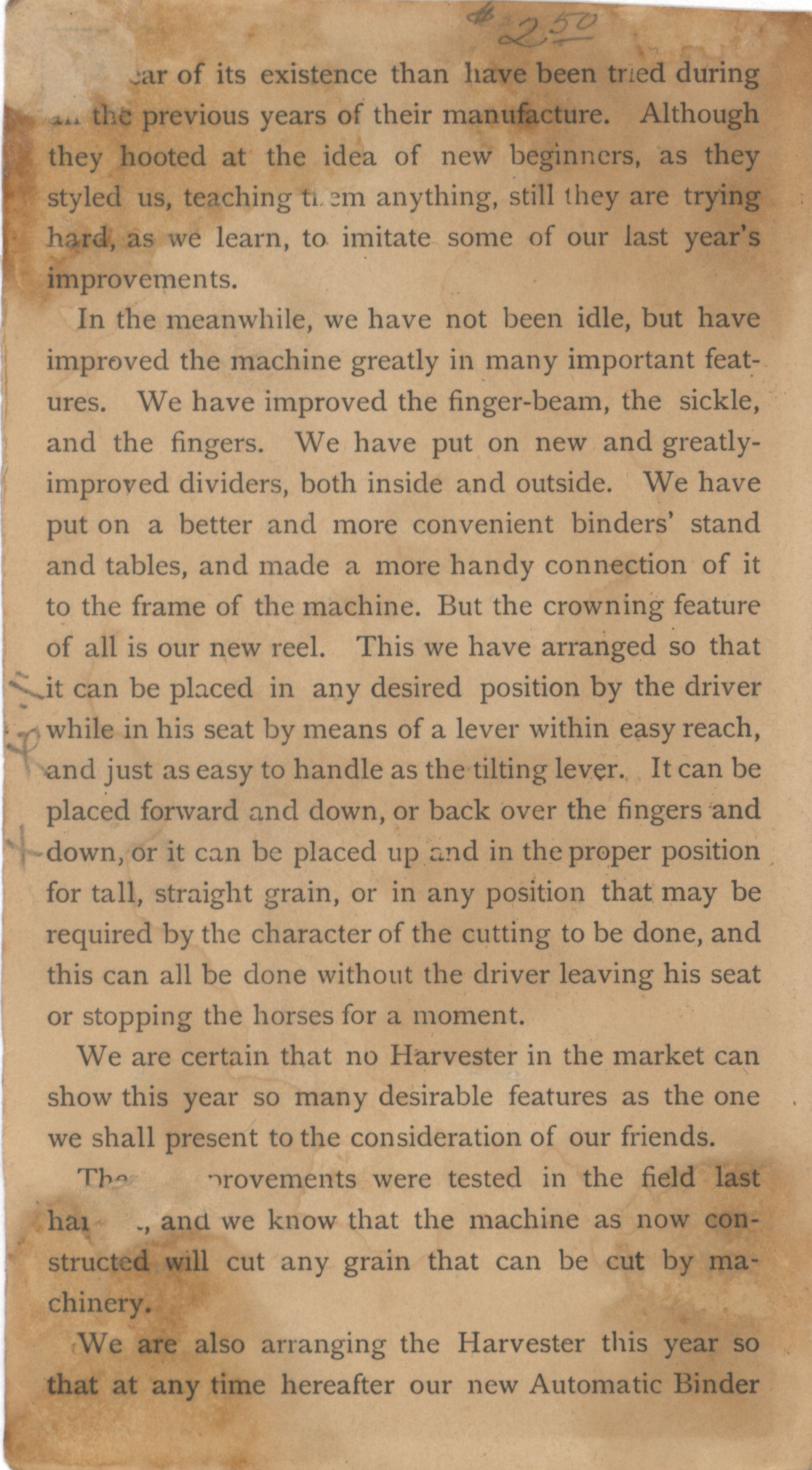 - "Harvester Automatic Binder illustrated advertisement", Agricultural Machinery Literature Collection, Iowa State University Library Digital Collections