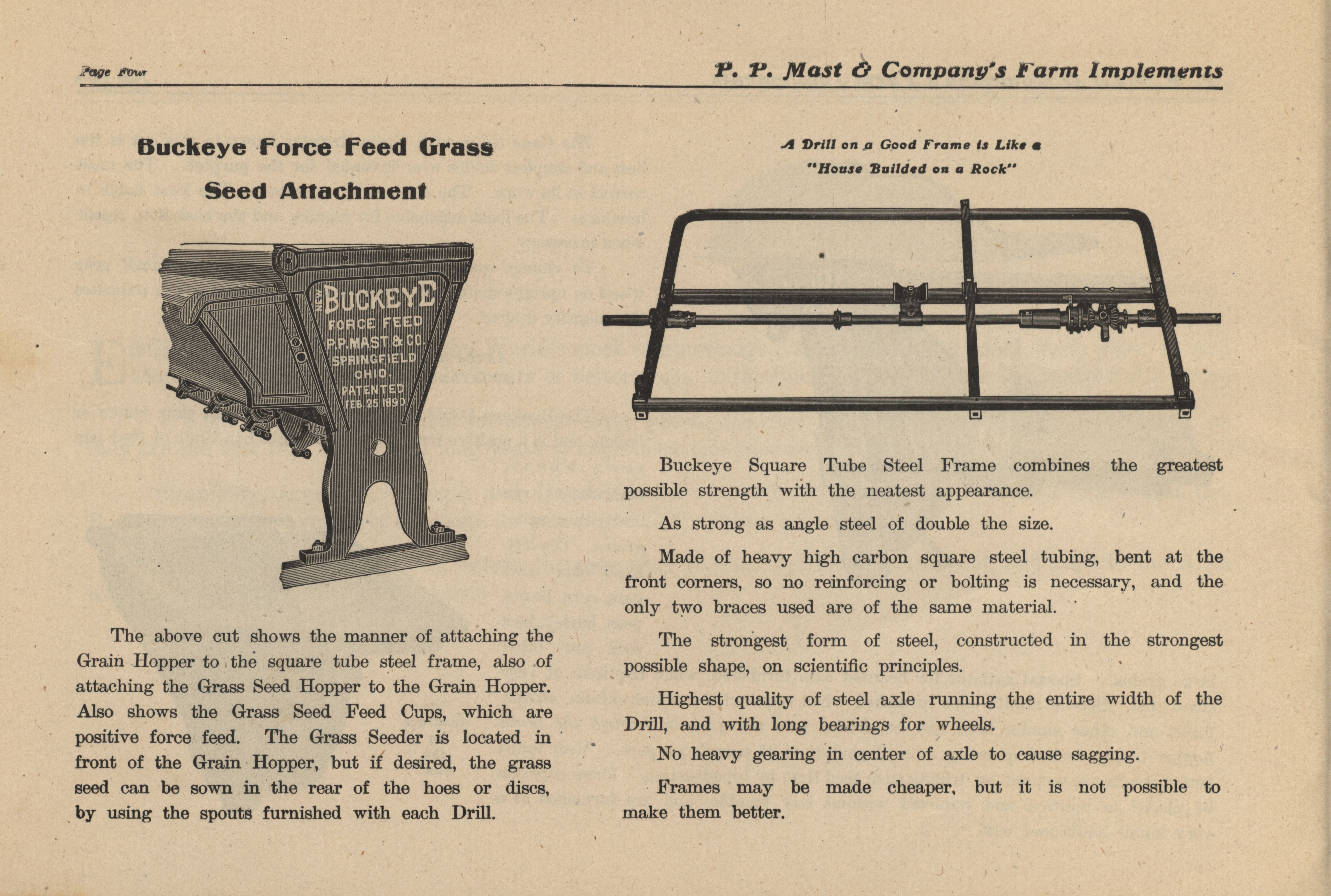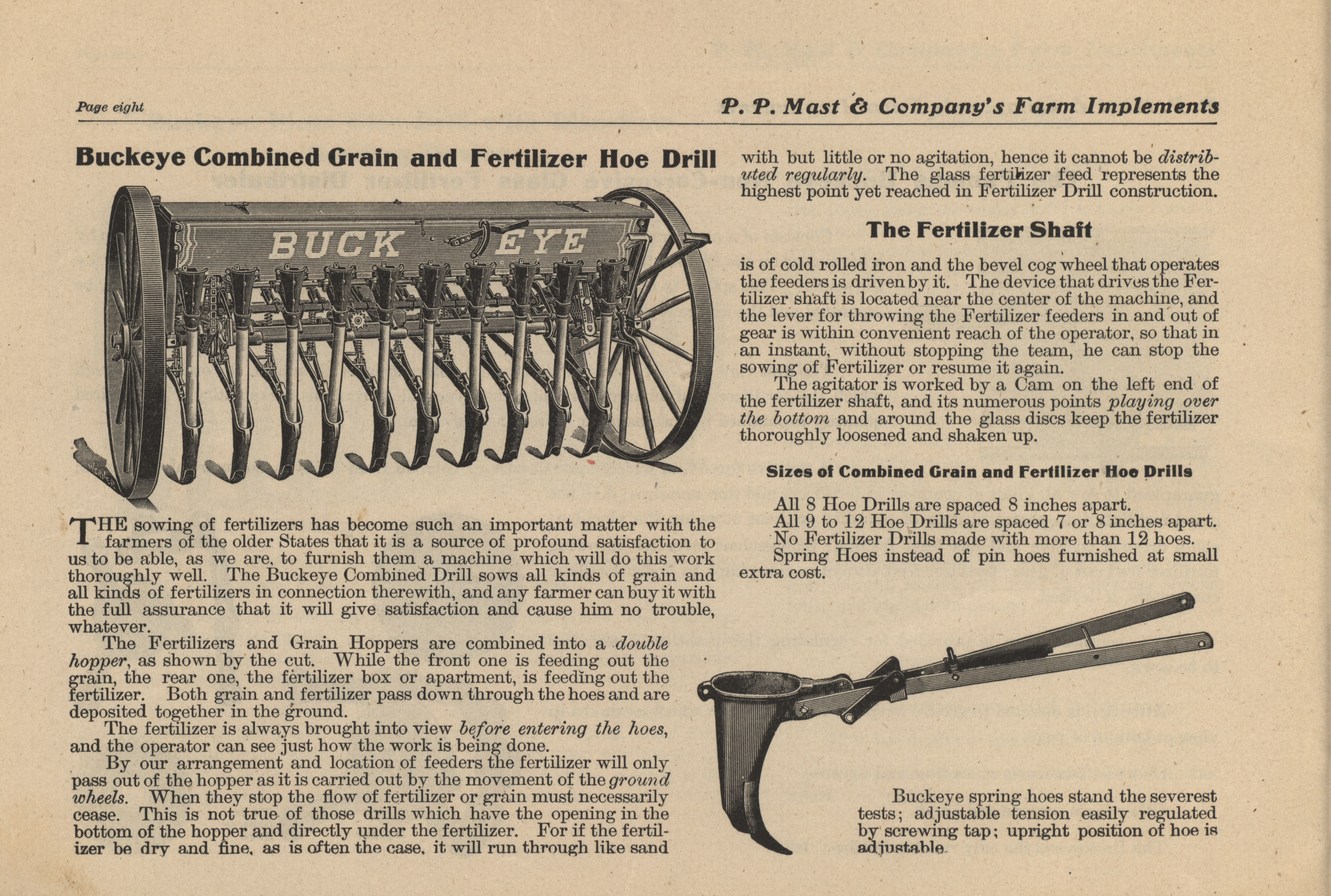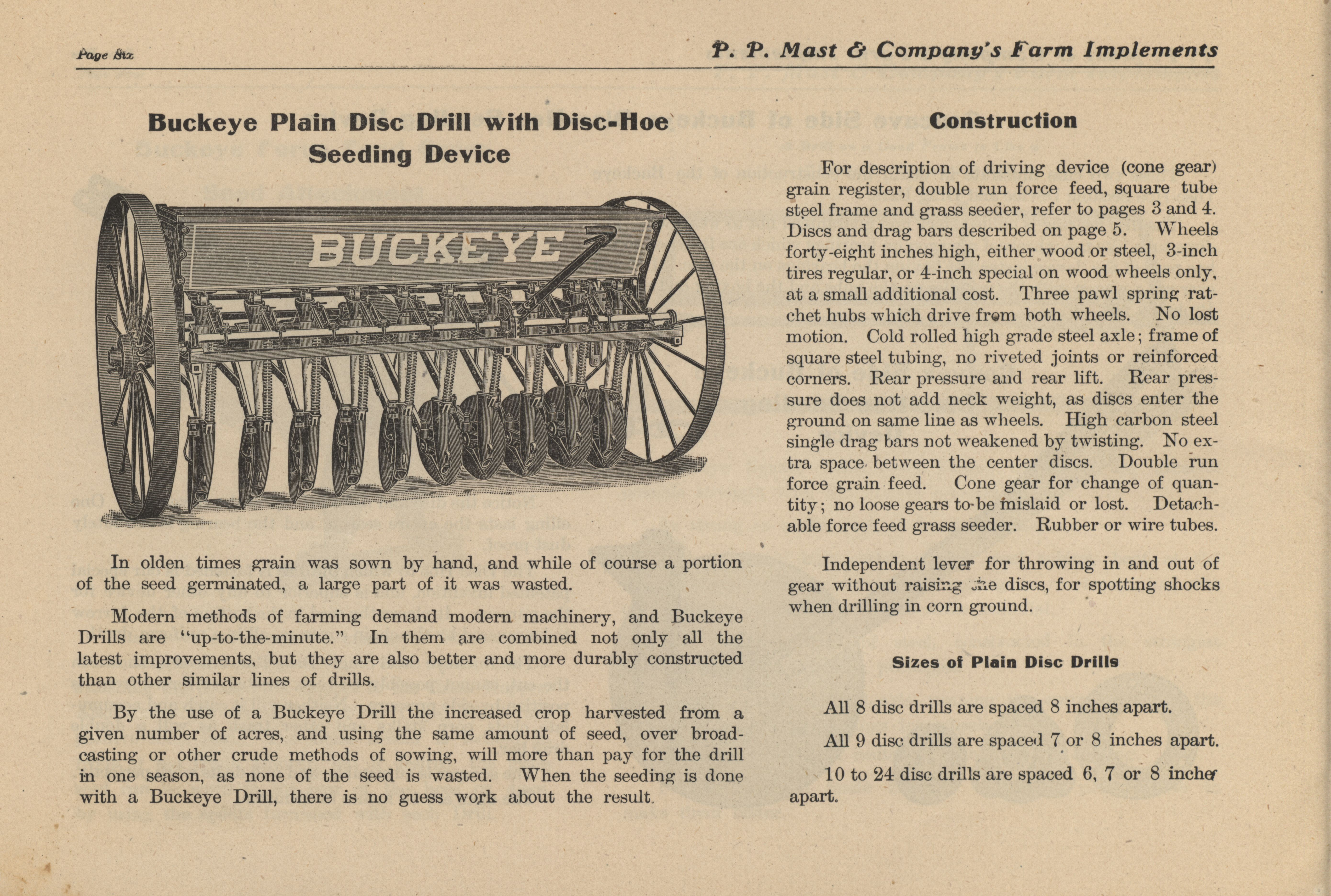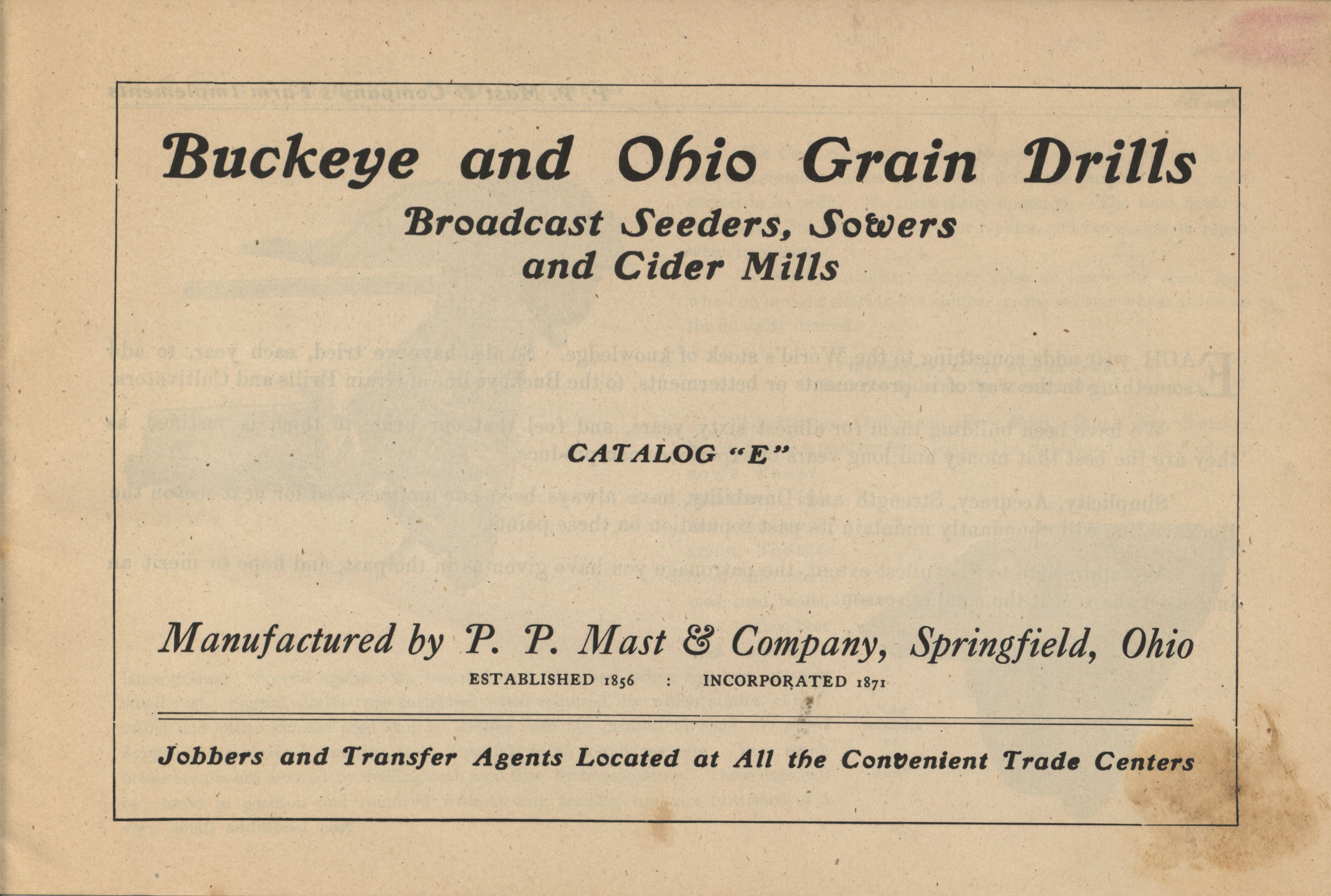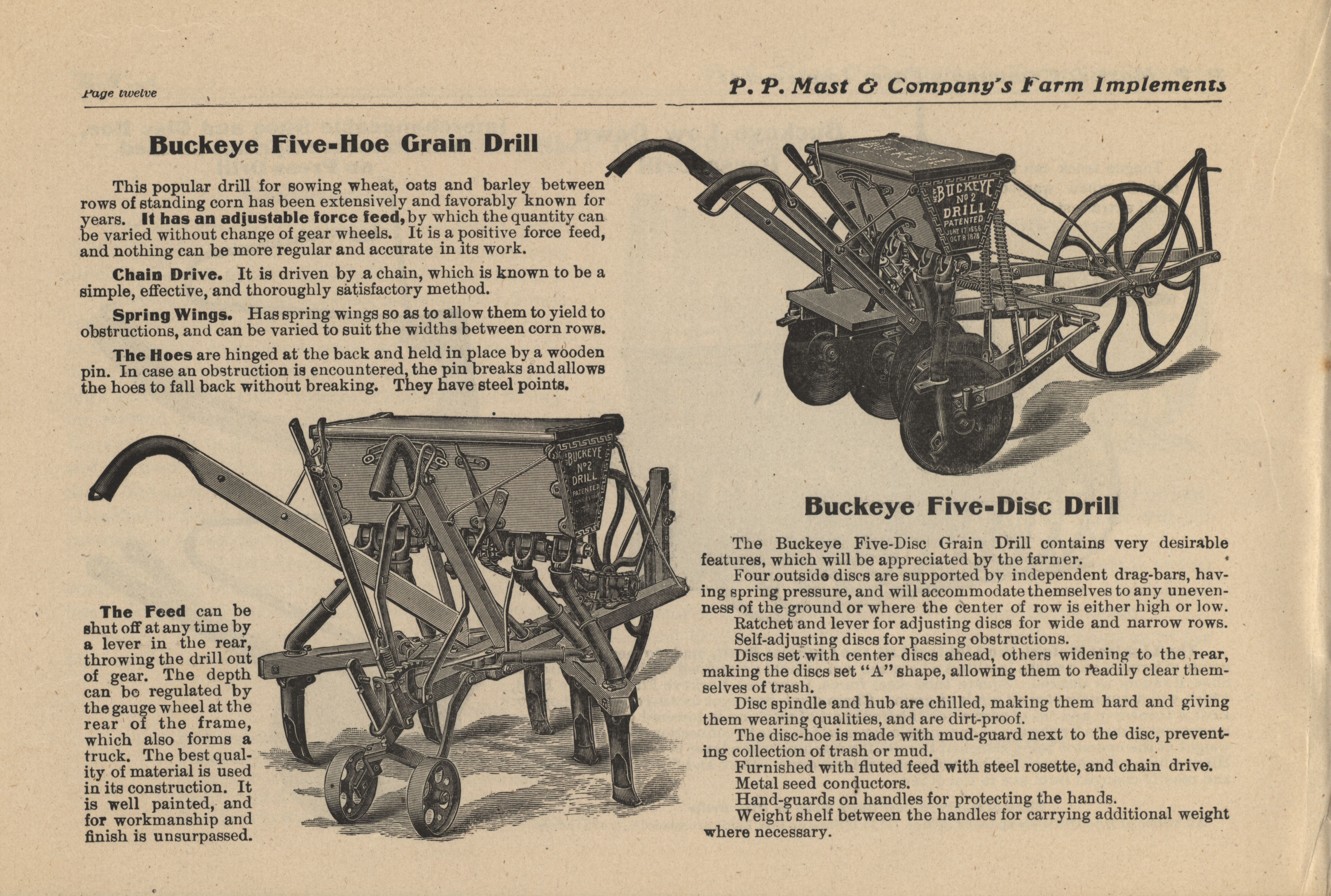 - "P. P. Mast and Company Buckeye and Ohio Grain Drills catalog", Agricultural Machinery Literature Collection, Iowa State University Library Digital Collections