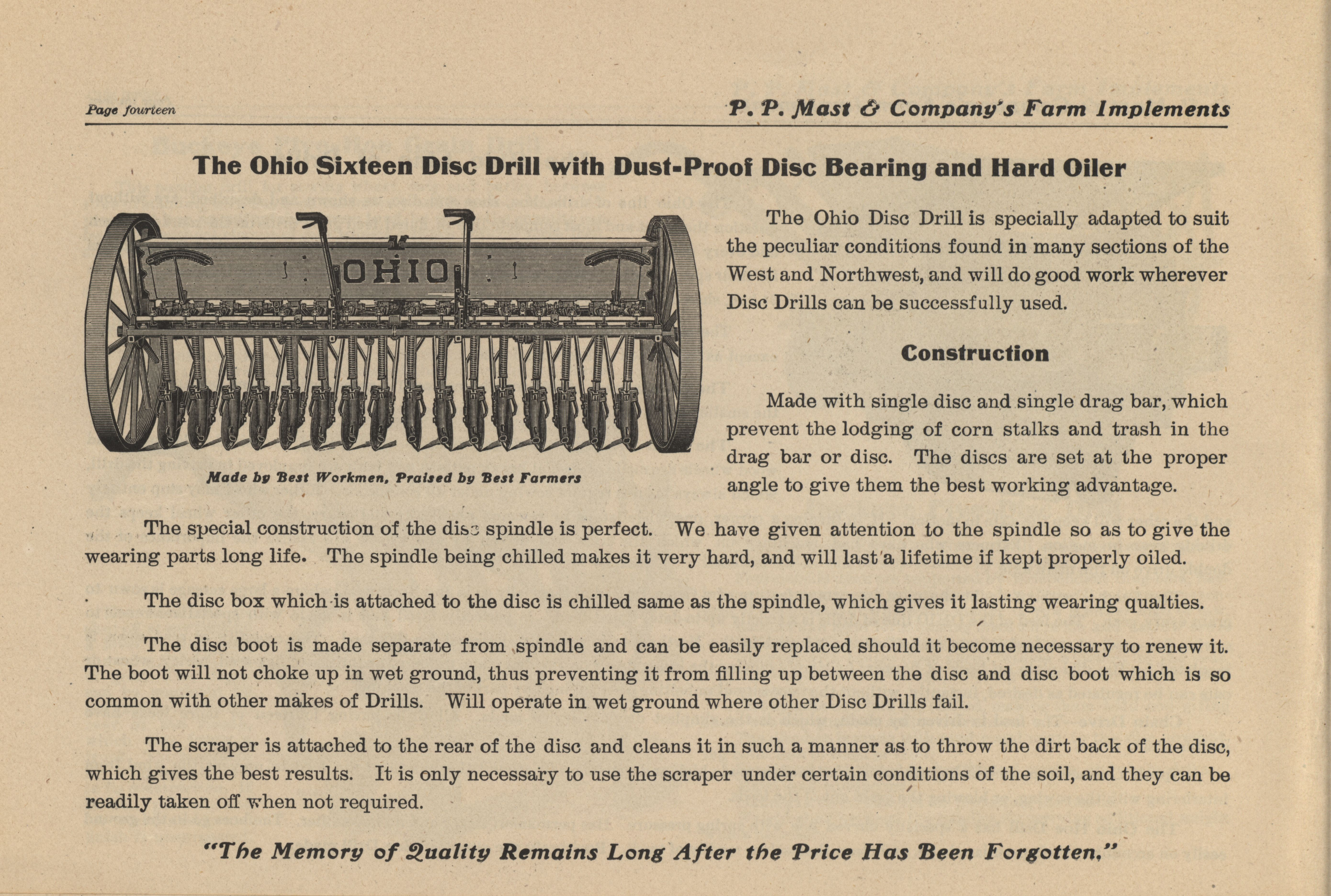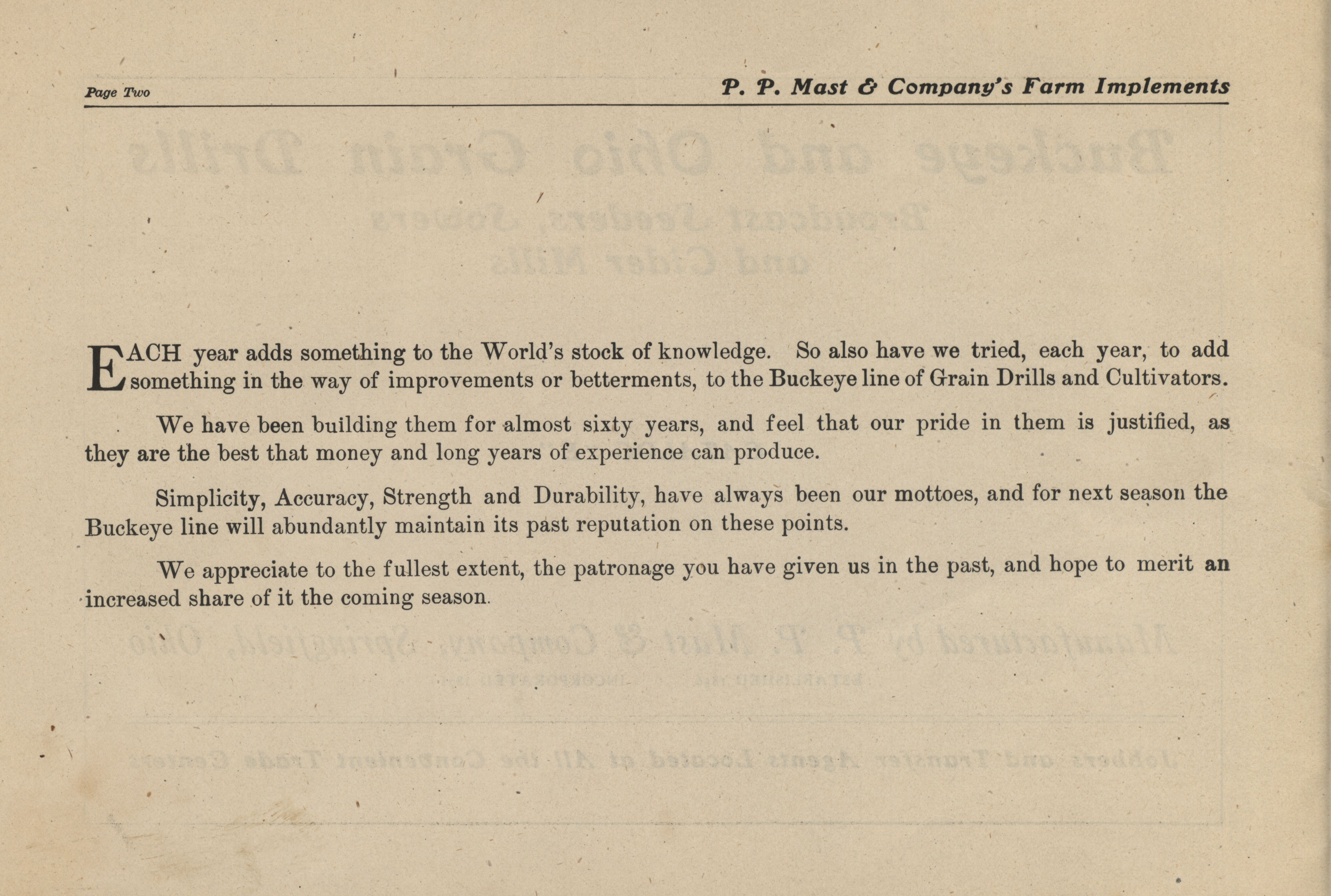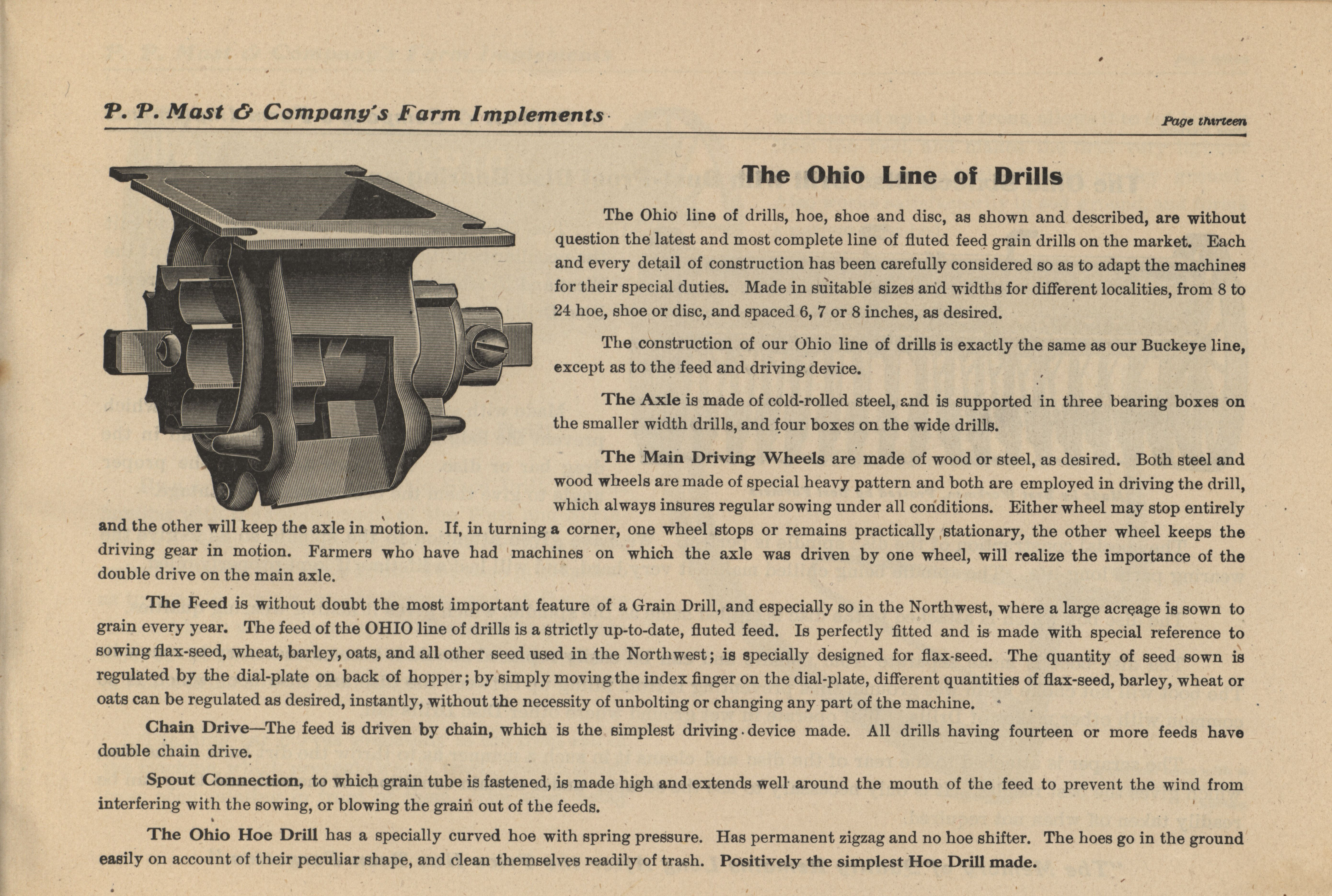 - P. P. Mast and Company Buckeye and Ohio Grain Drills catalog