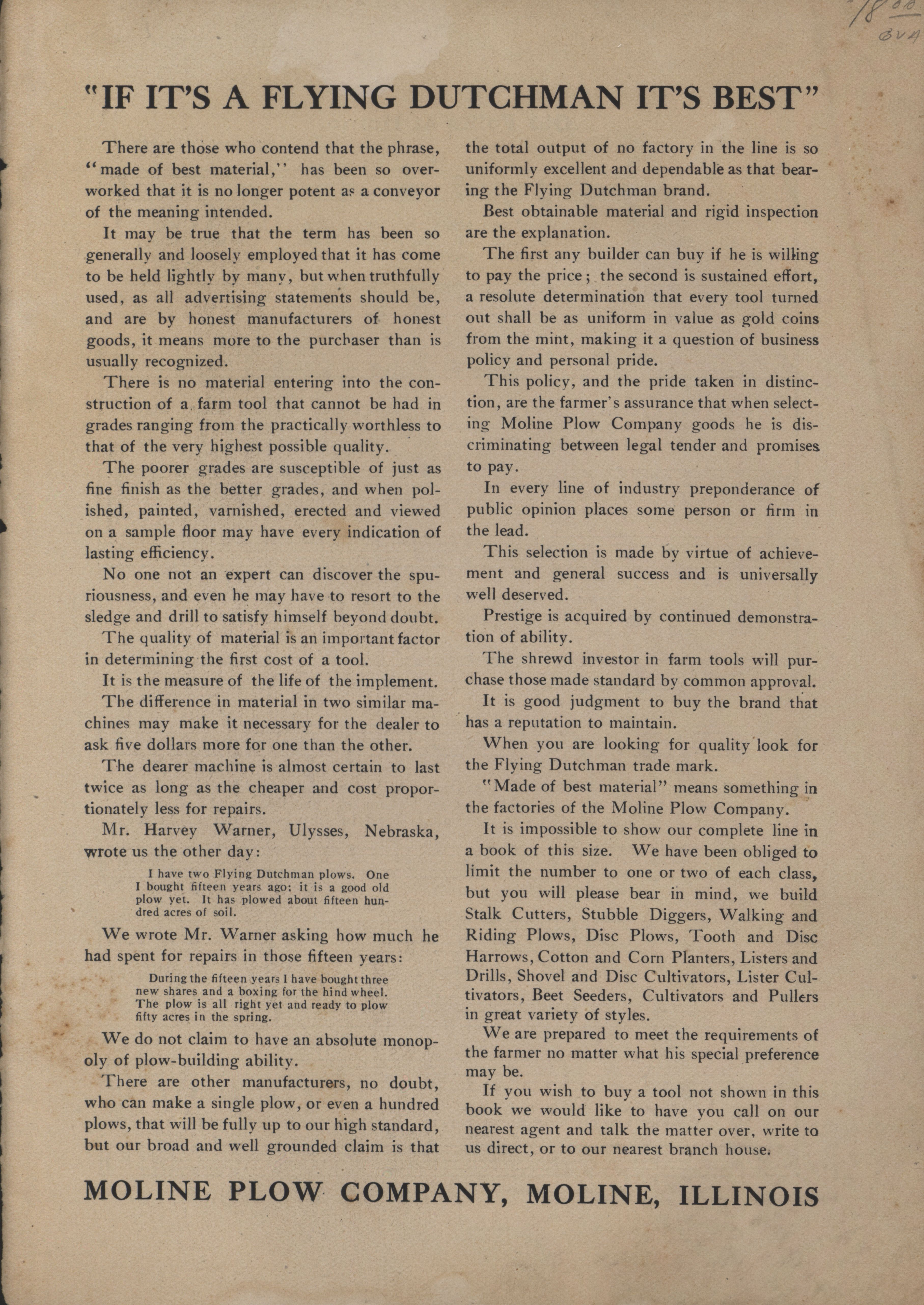 - "Moline Plow Company Flying Dutchman Souvenir Song Book", Agricultural Machinery Literature Collection, Iowa State University Library Digital Collections
