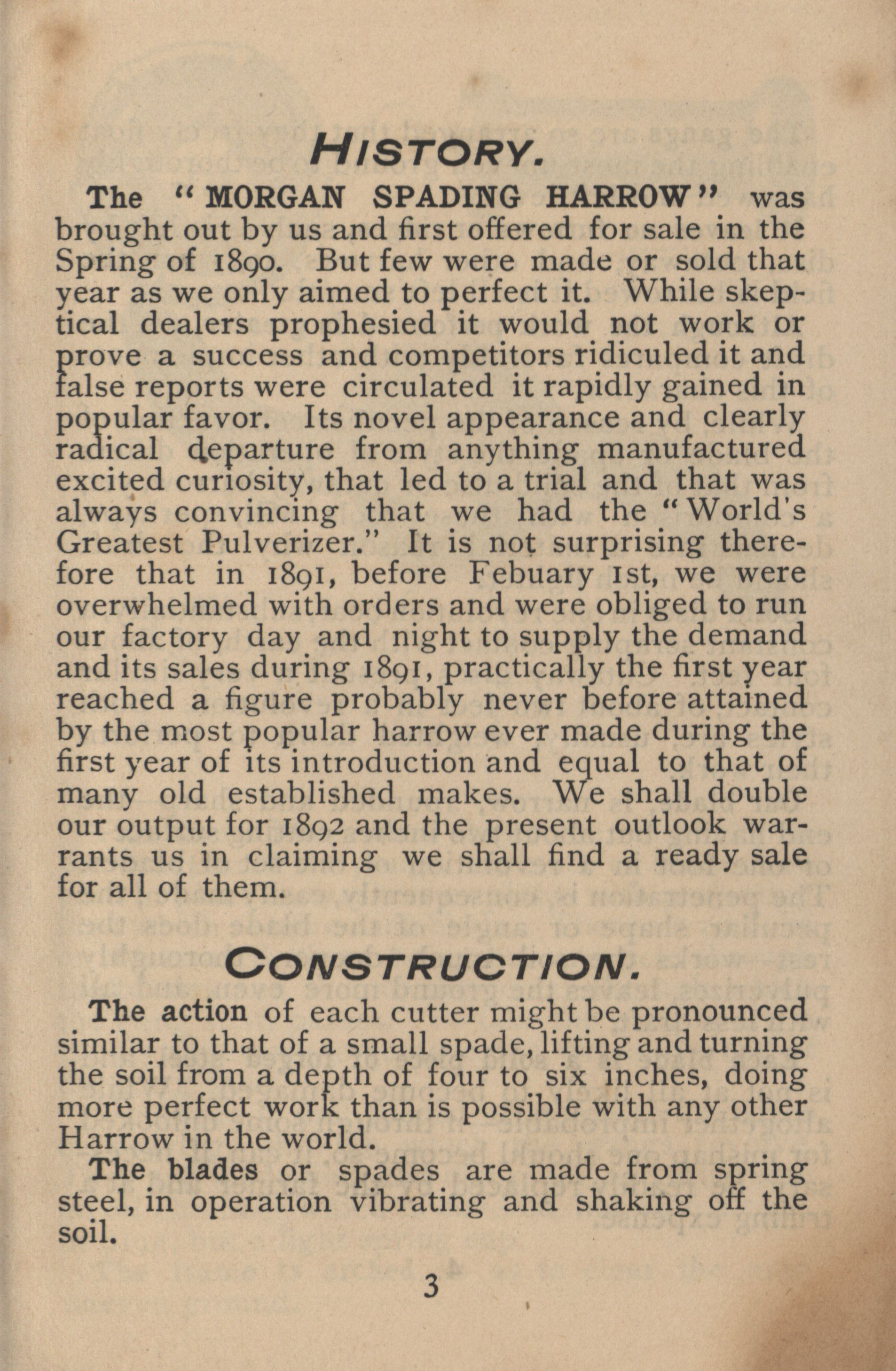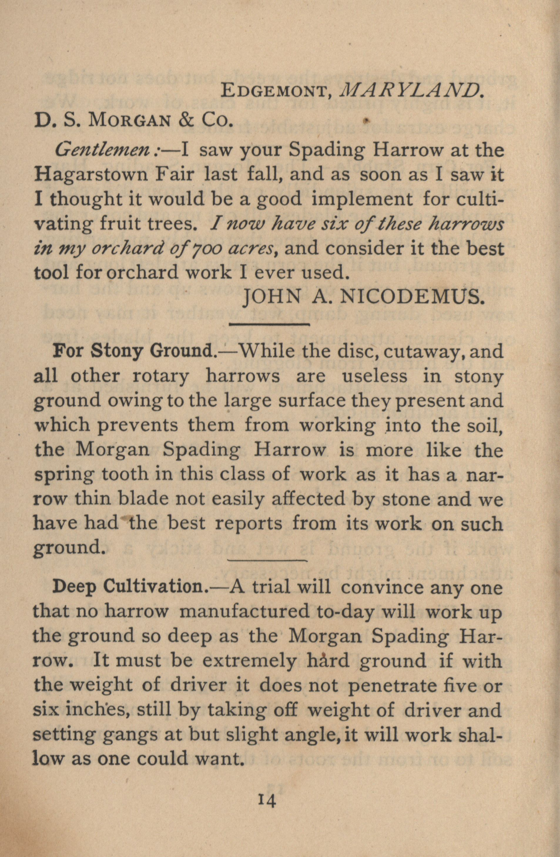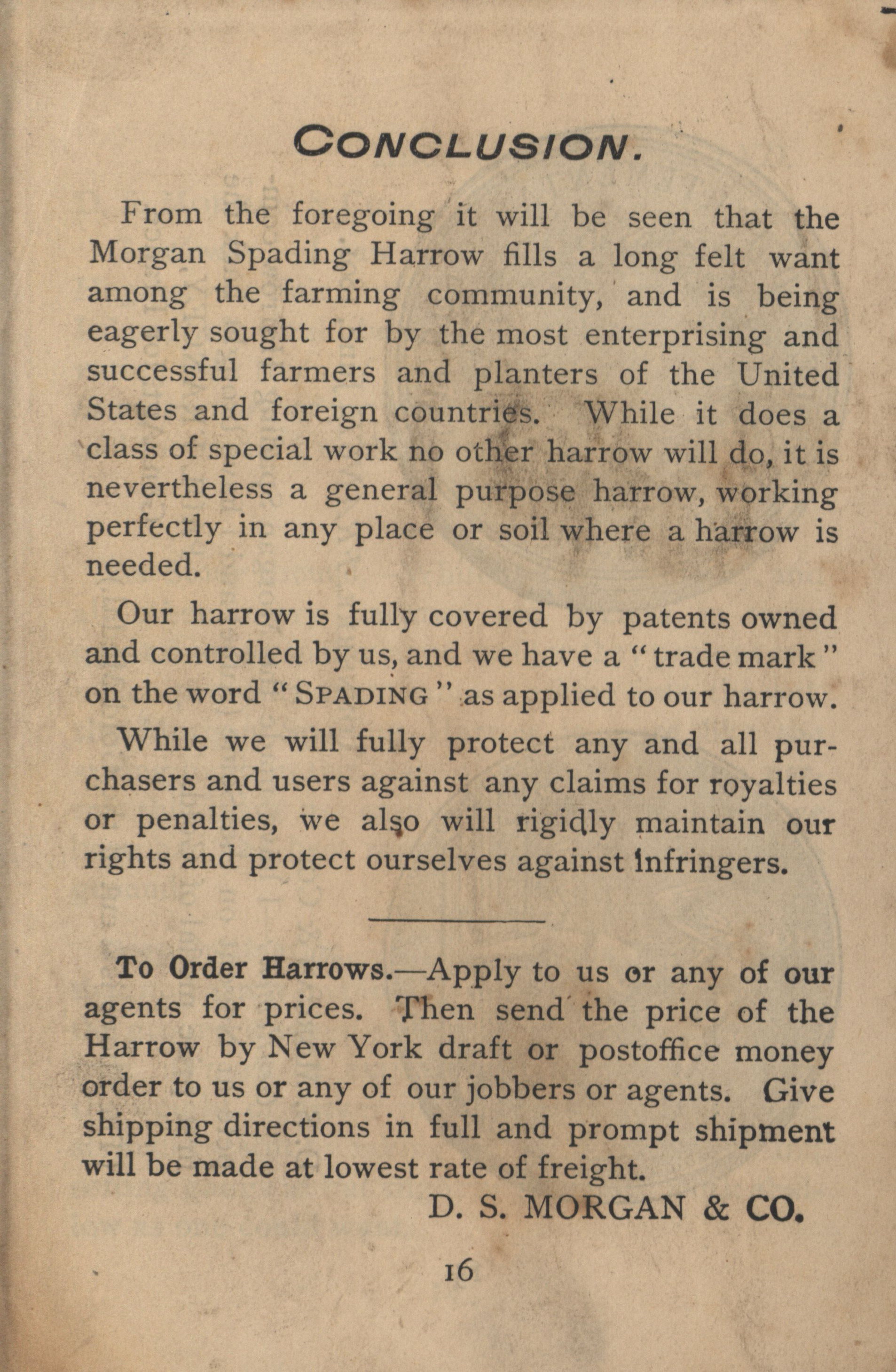 - "D. S. Morgan and Company The Morgan Spading Harrows catalog", Agricultural Machinery Literature Collection, Iowa State University Library Digital Collections