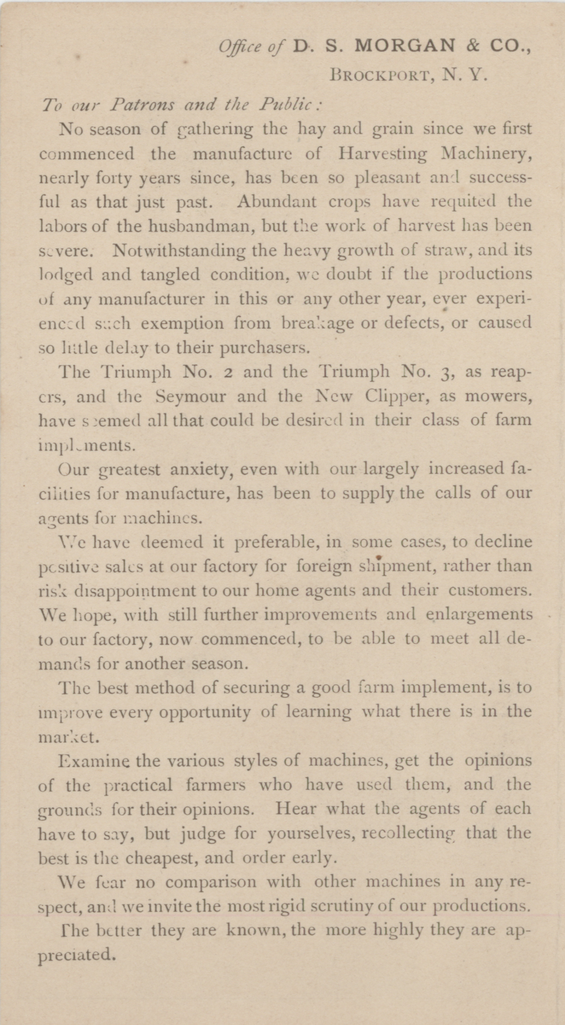 - "D. S. Morgan and Company catalog", Agricultural Machinery Literature Collection, Iowa State University Library Digital Collections