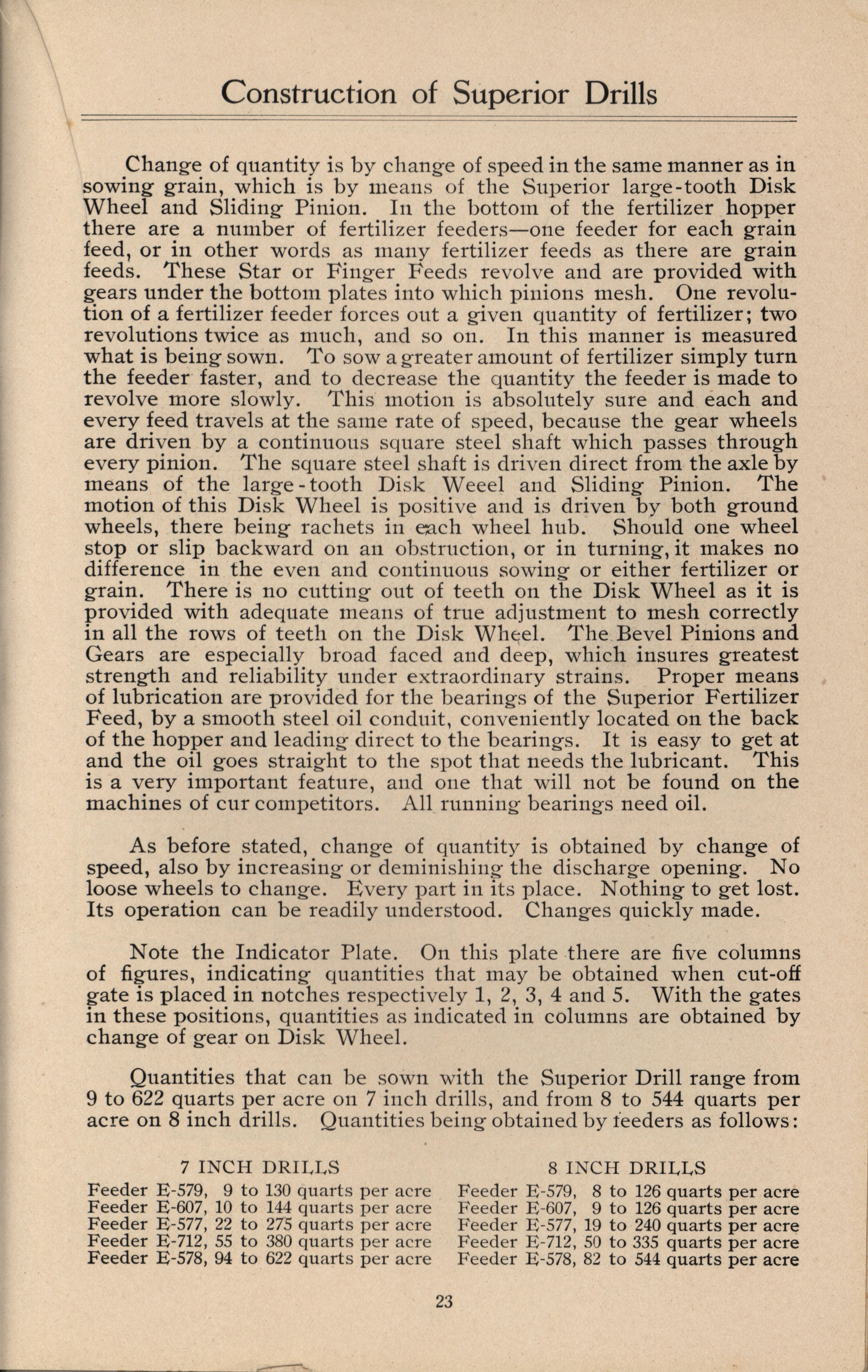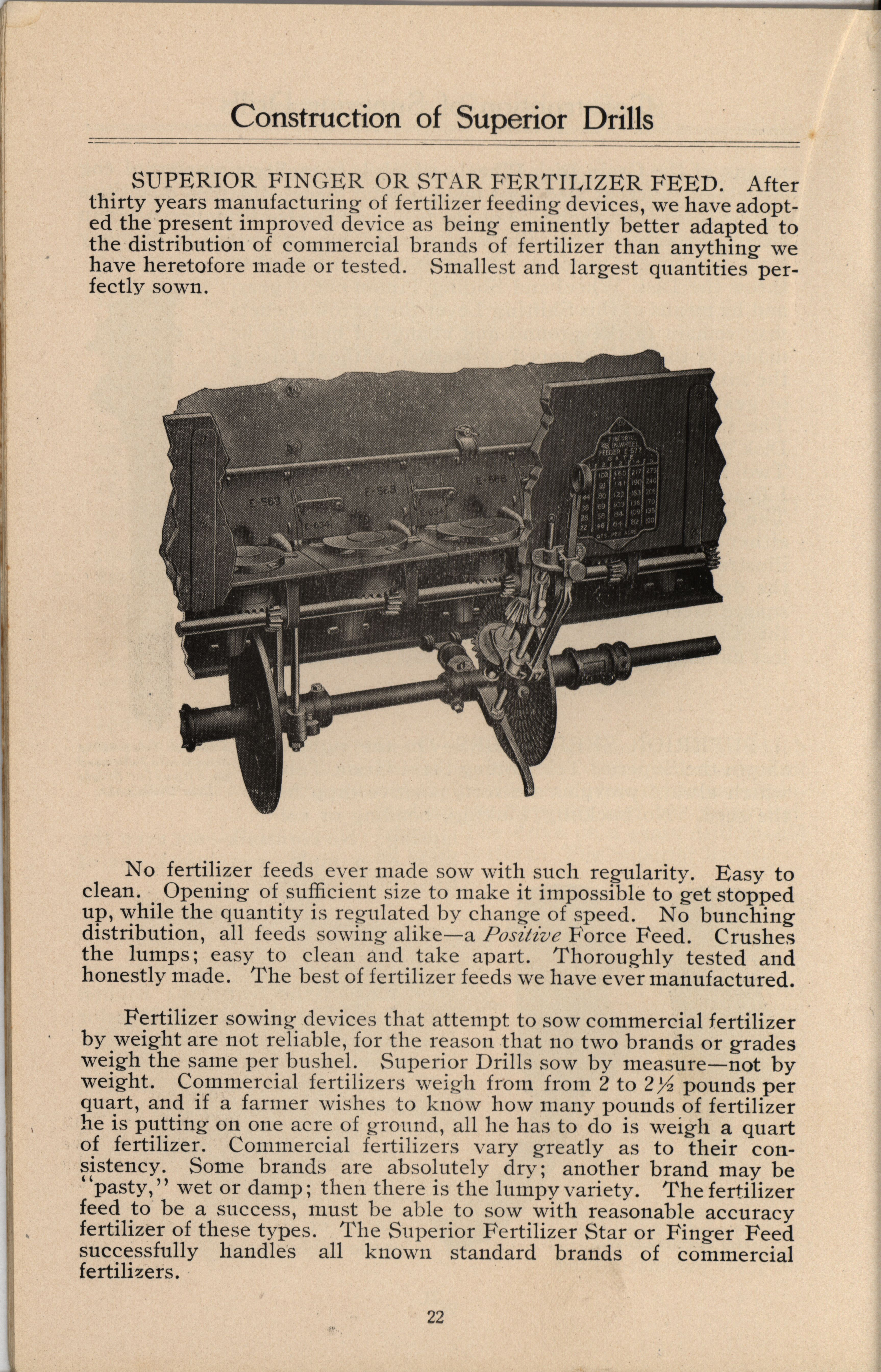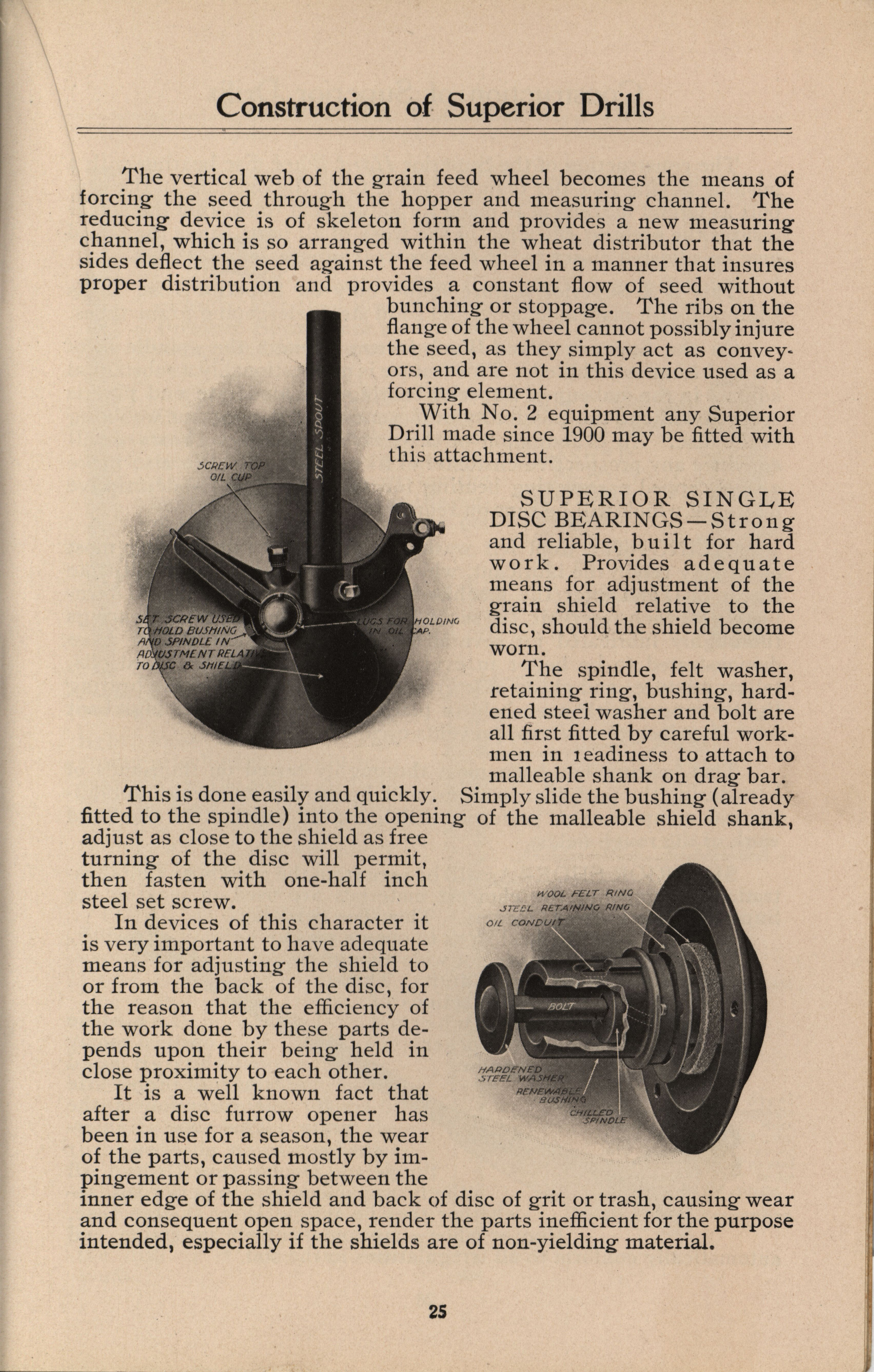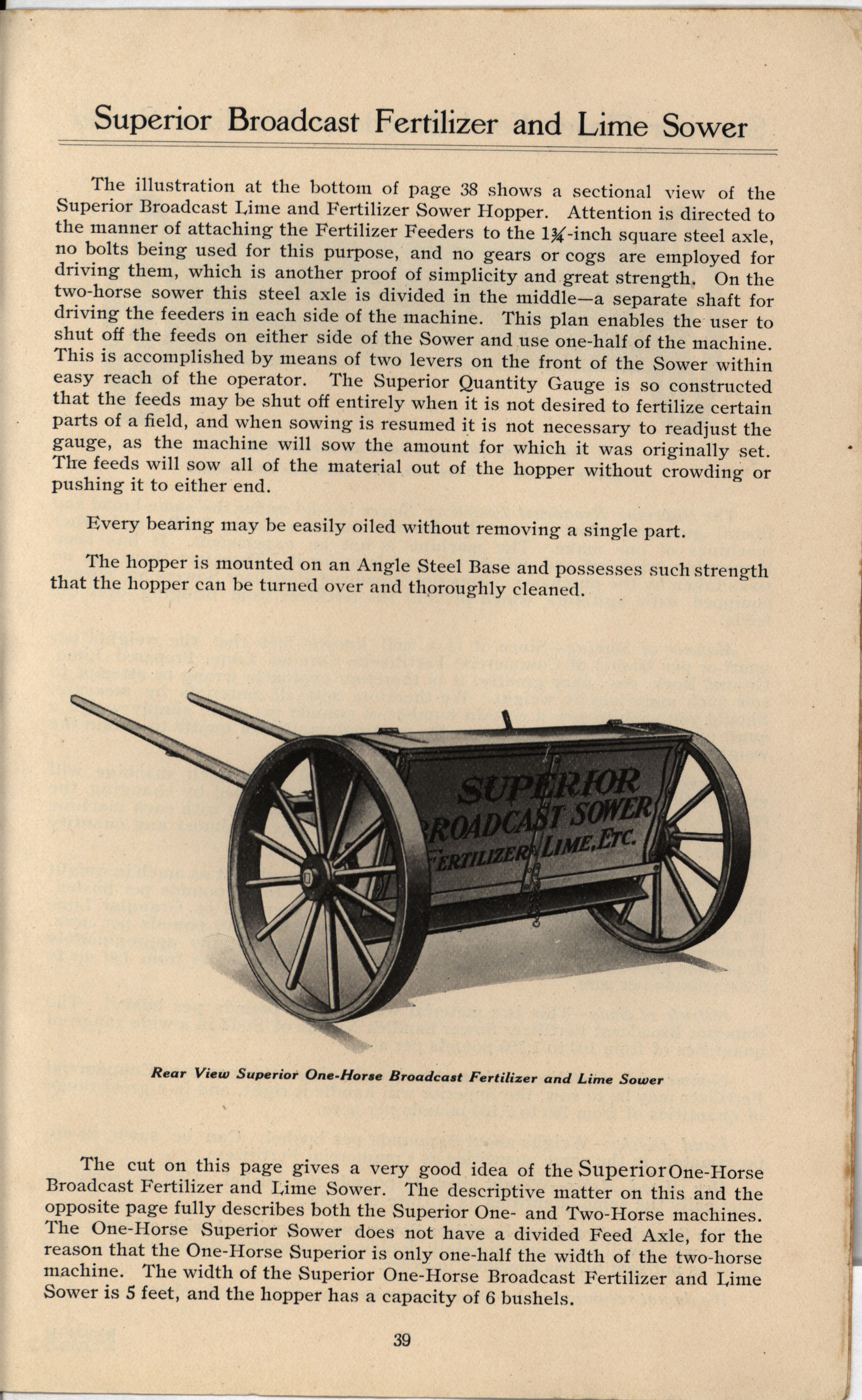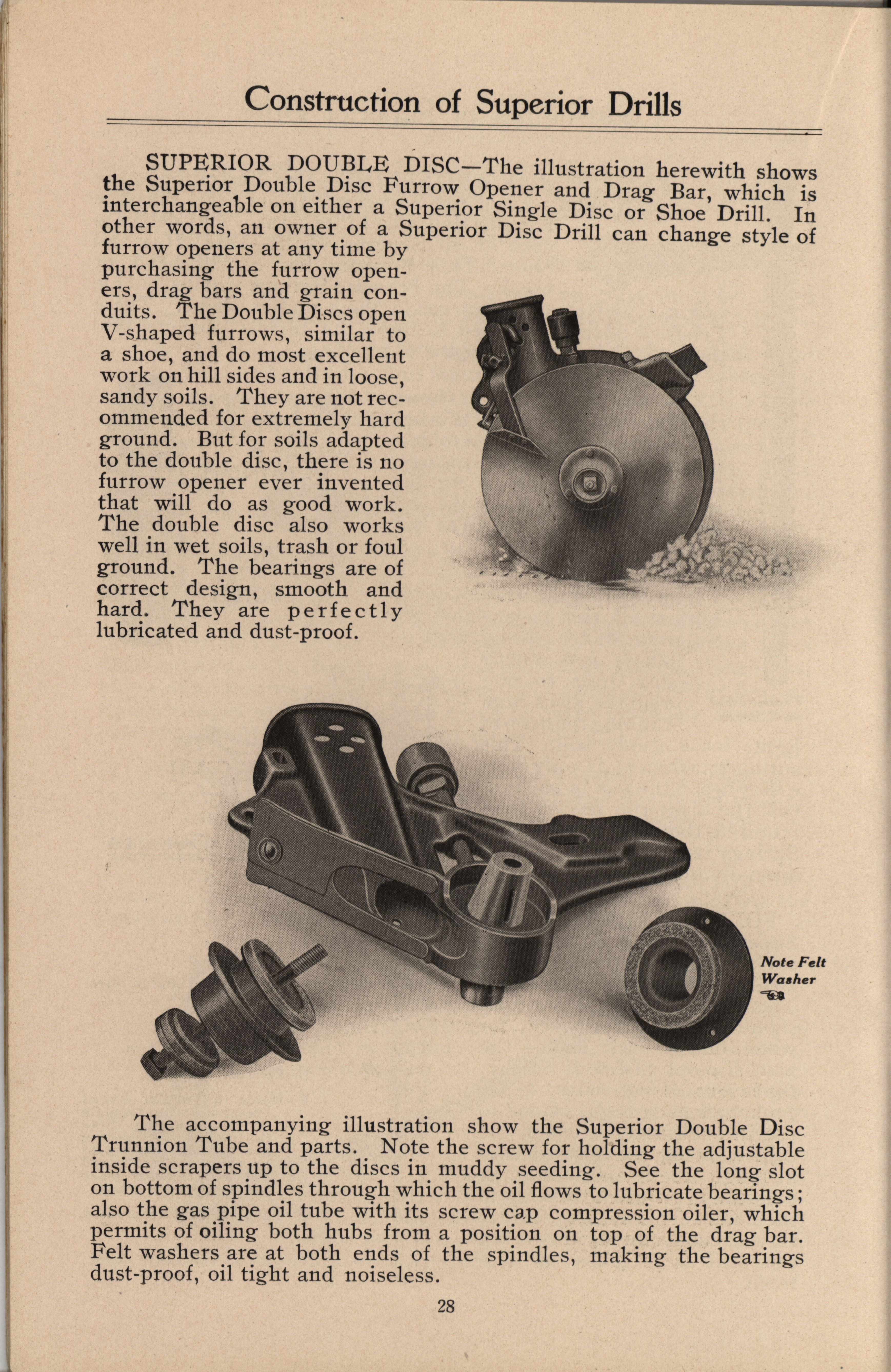 - Catalog by the American Seeding Machine Company describing the Superior Grain Drills product line including illustrations.