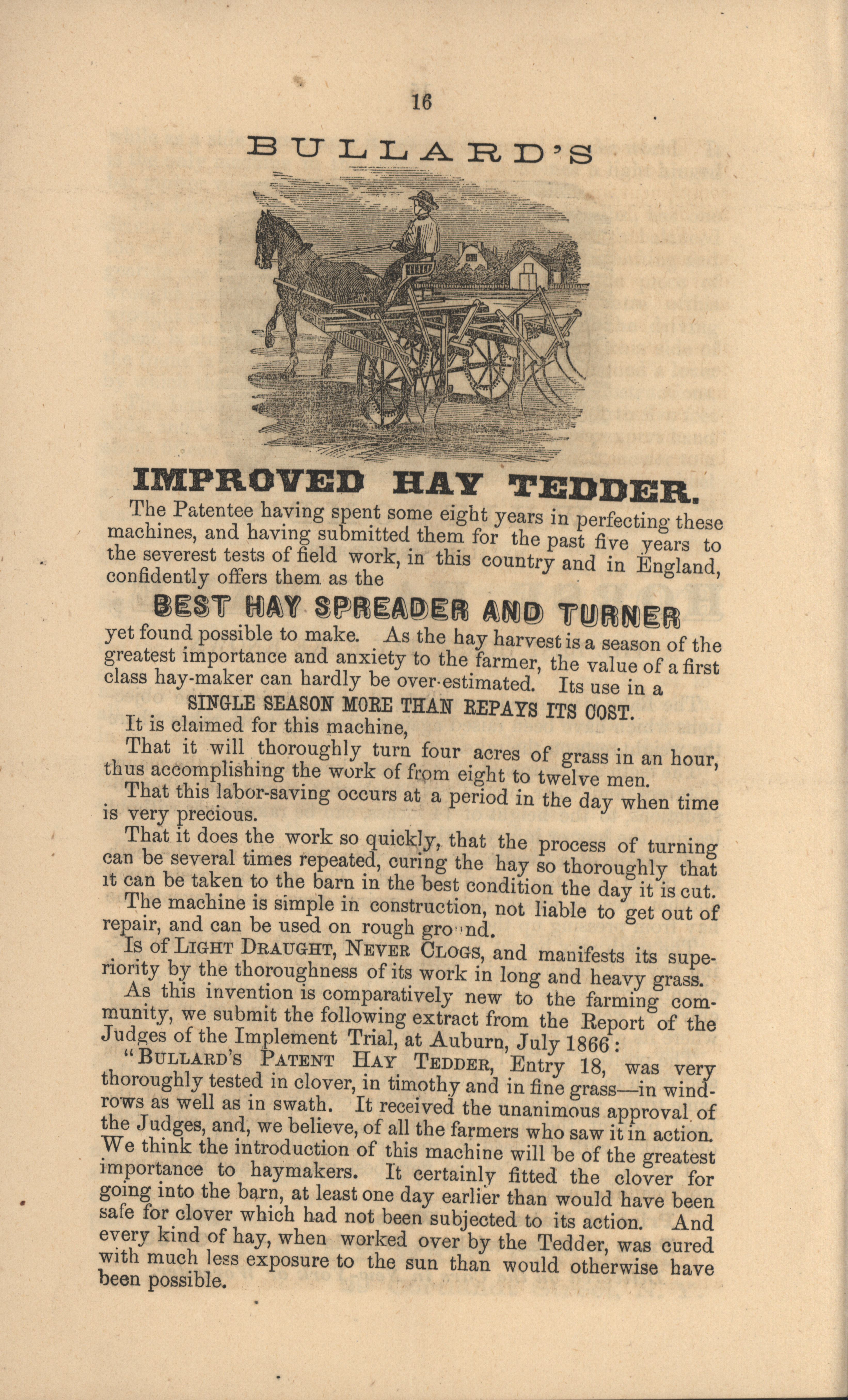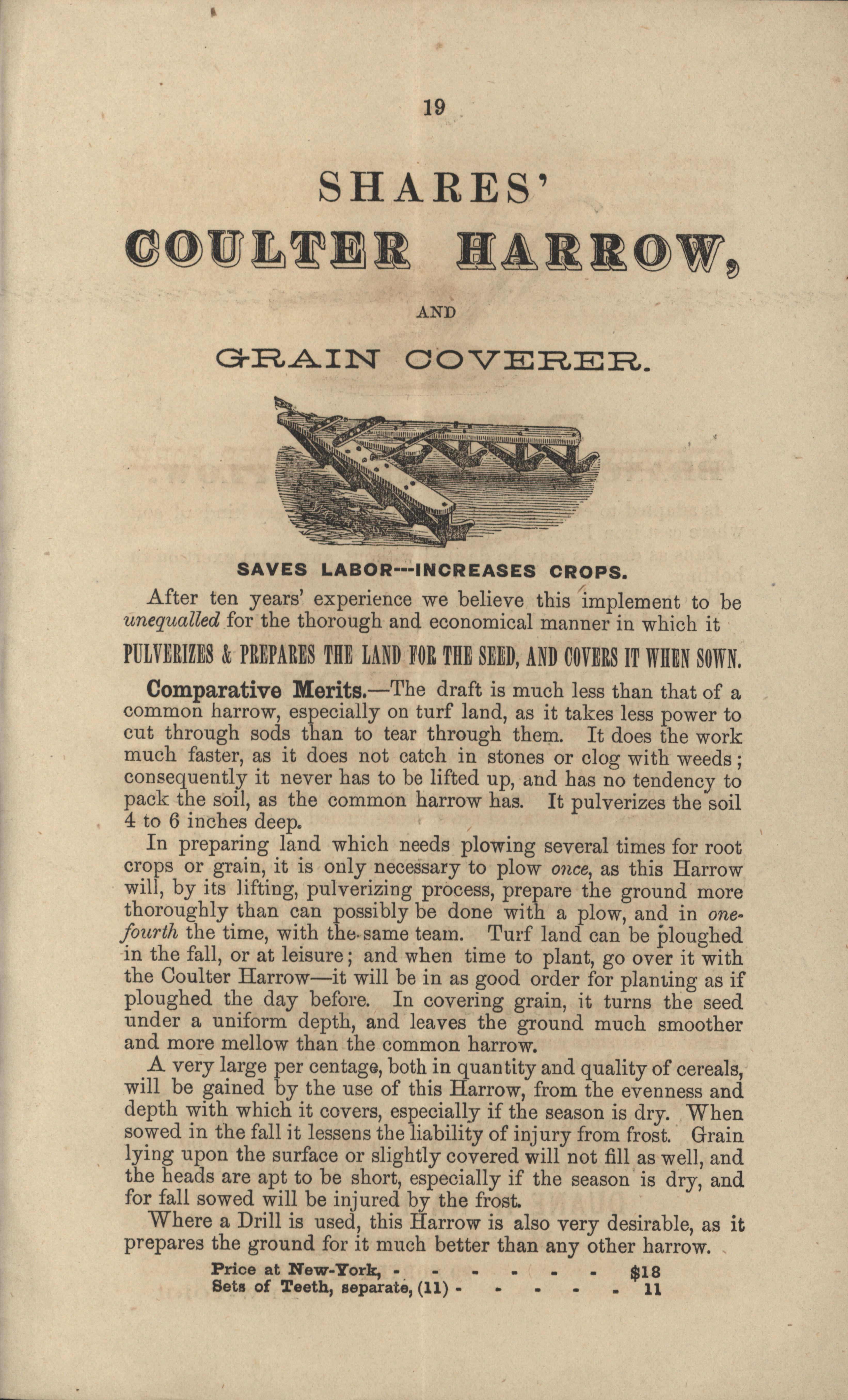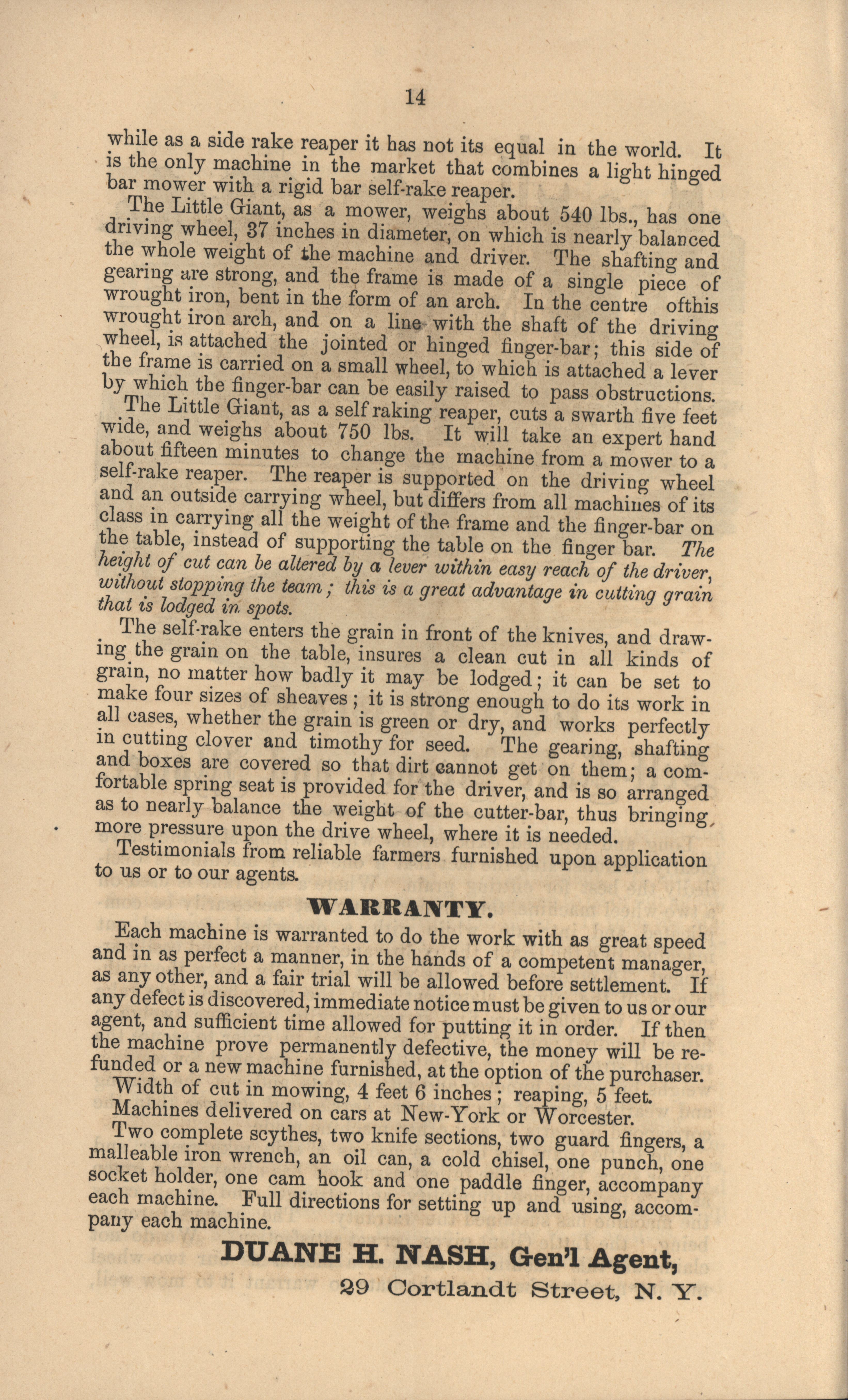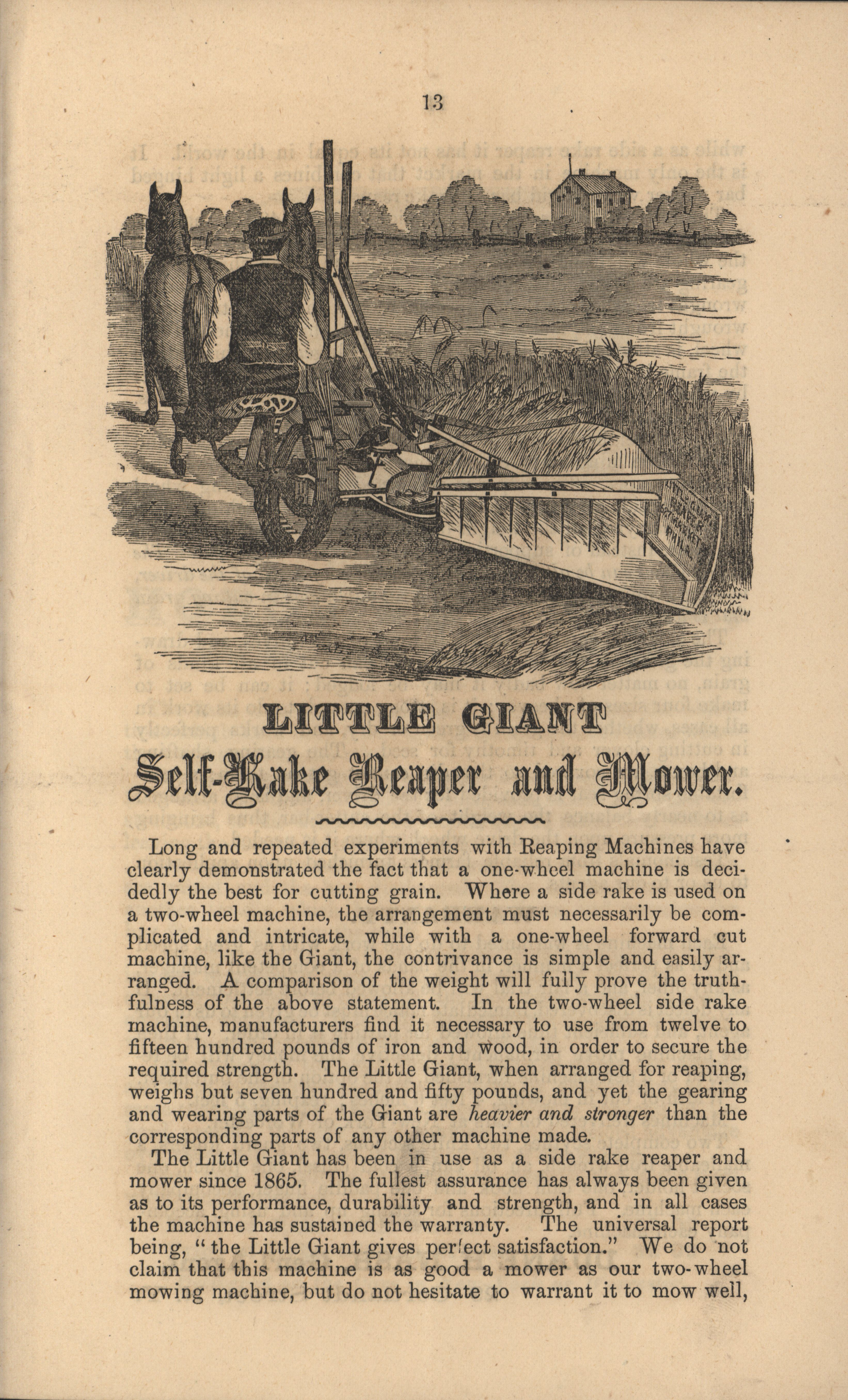 - Illustrated catalog describing the agricultural implements offered by Duane H. Nash in 1869.