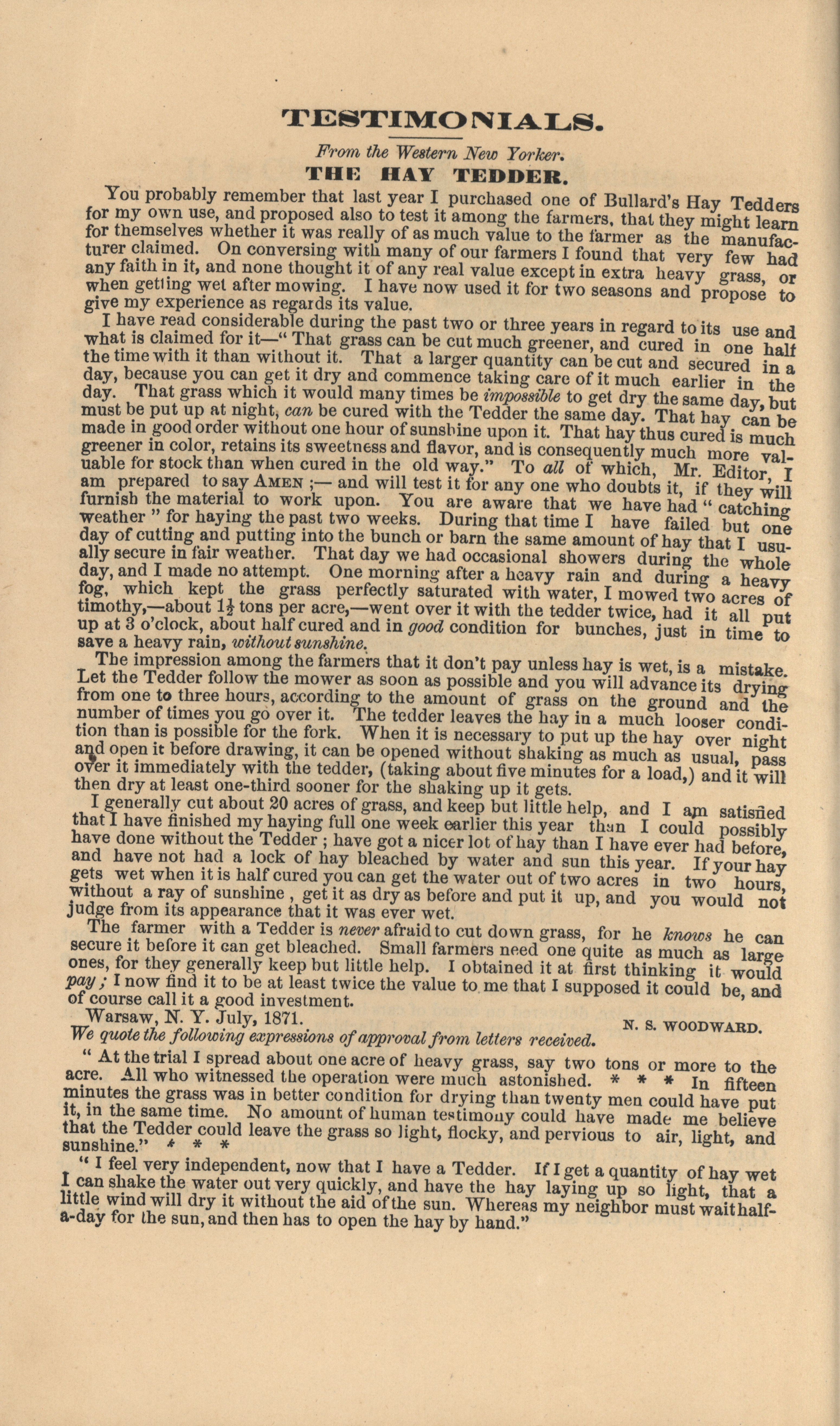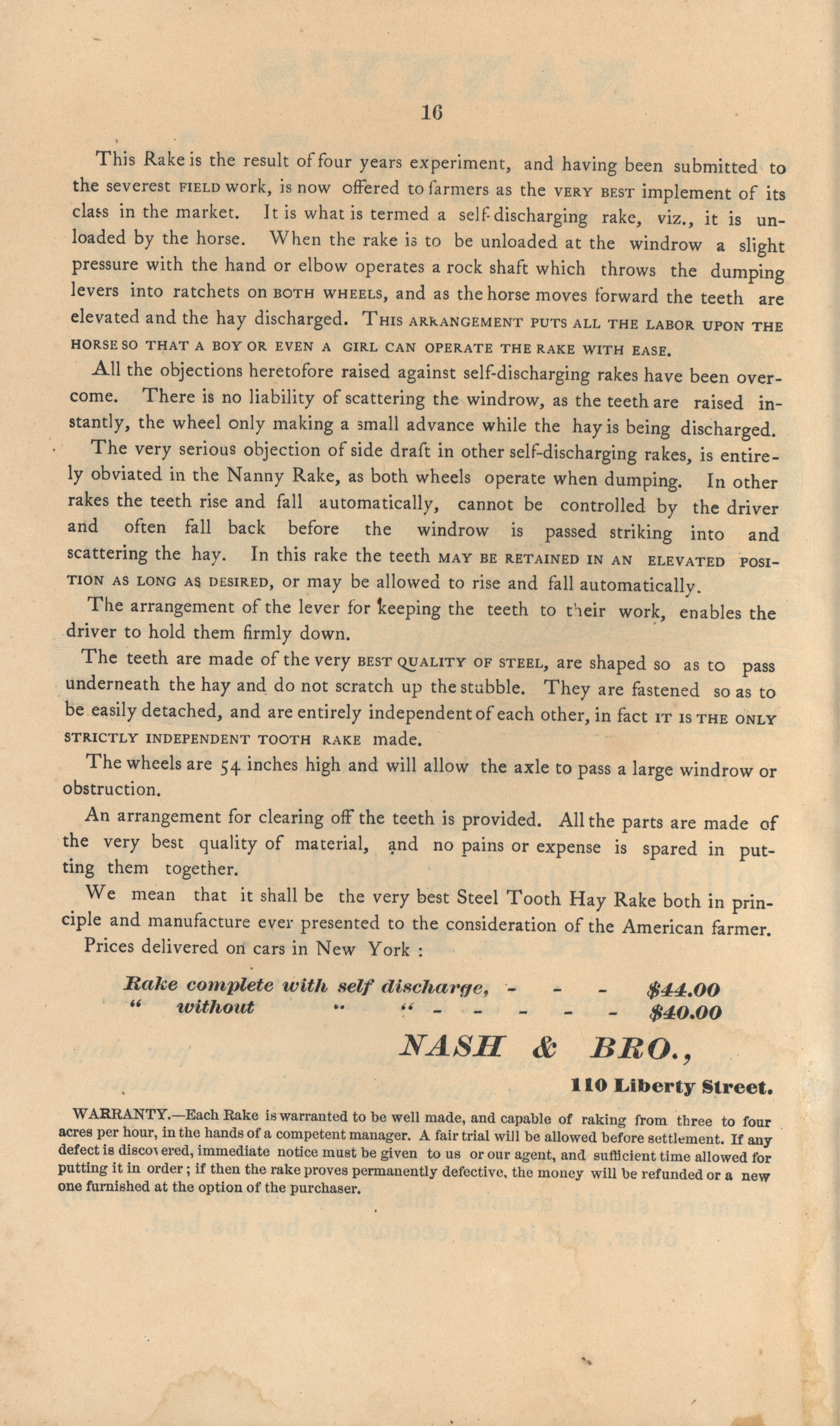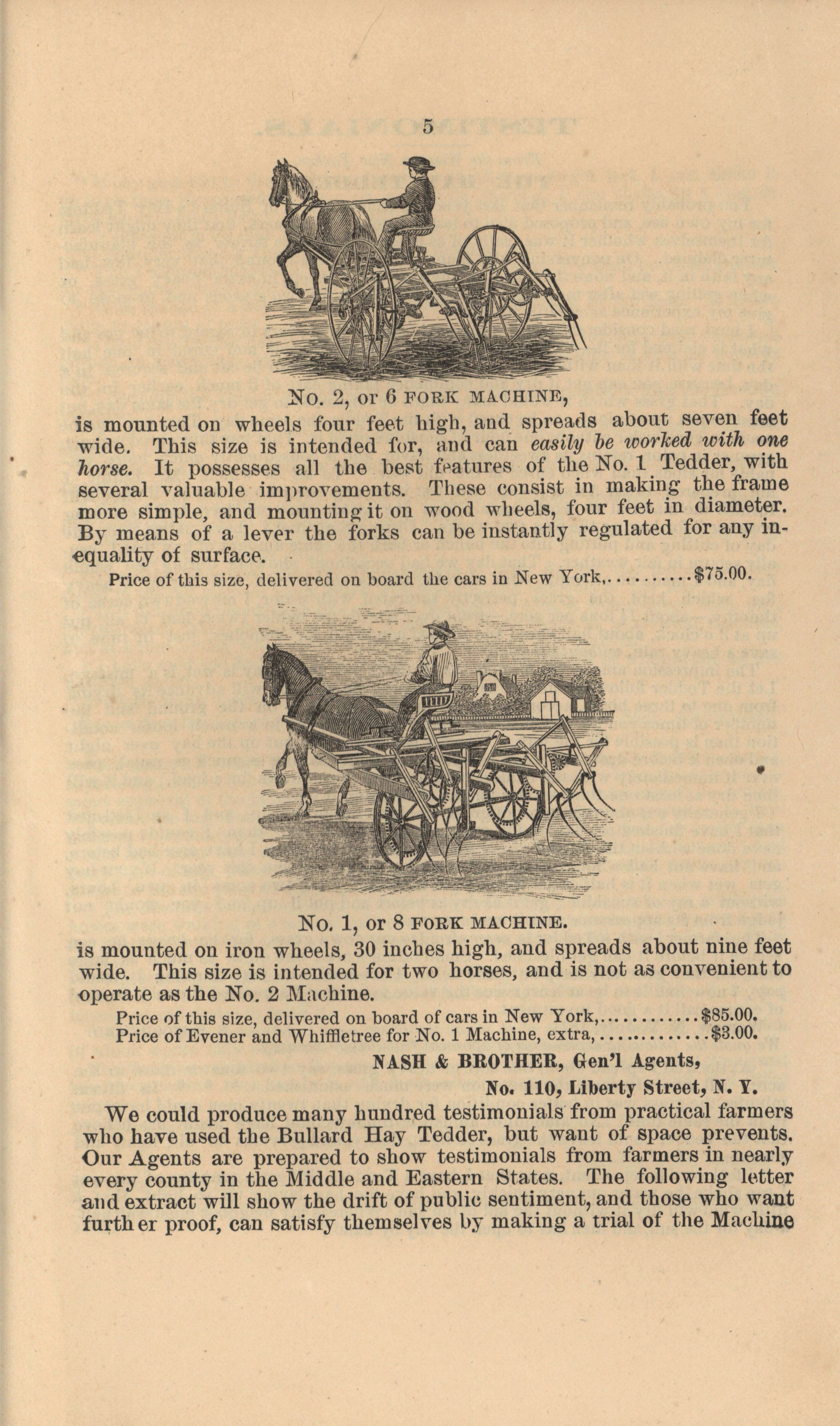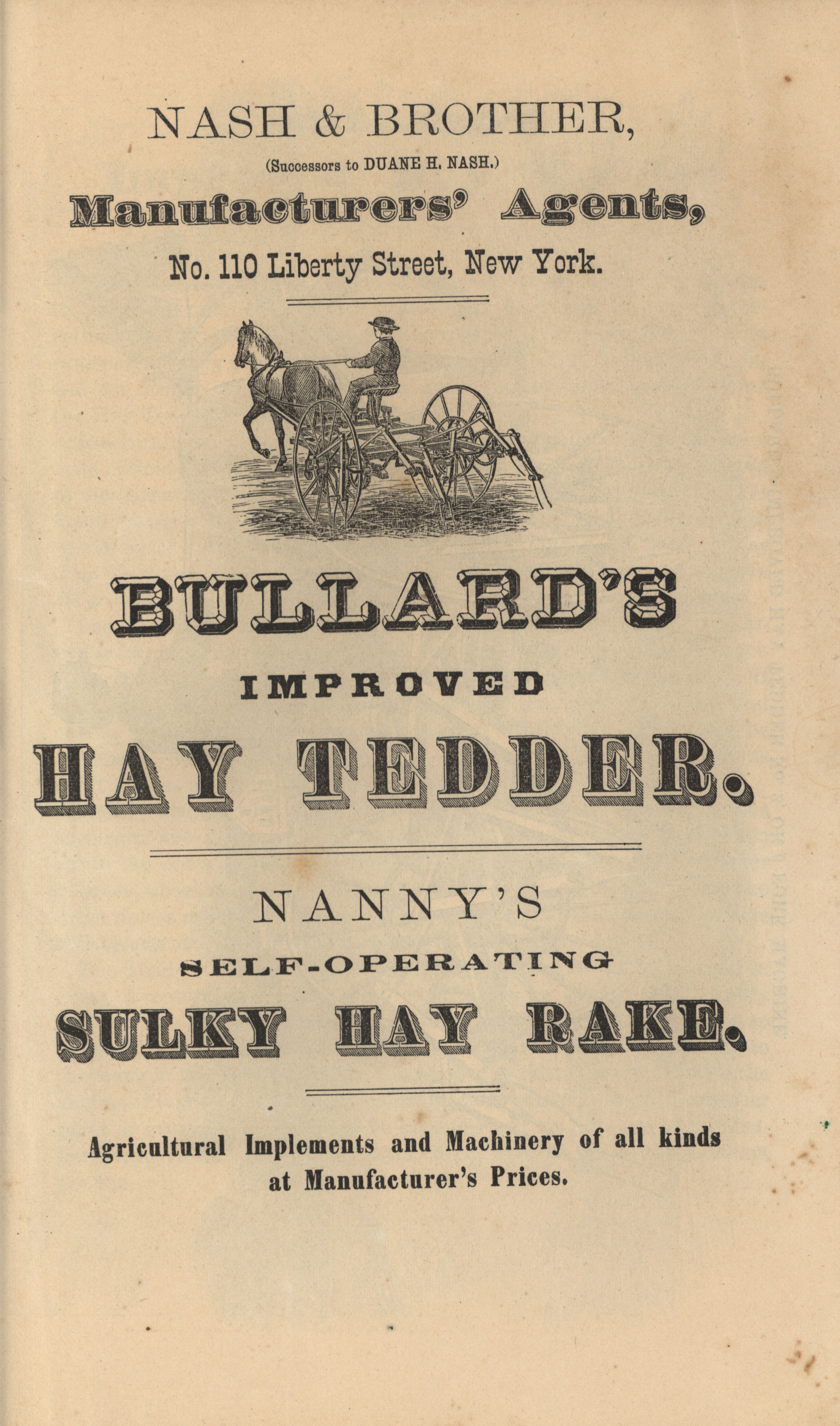 - Illustrated catalog describing the agricultural products offered by Nash and Brother Agricultural Implements and Machinery in 1871.