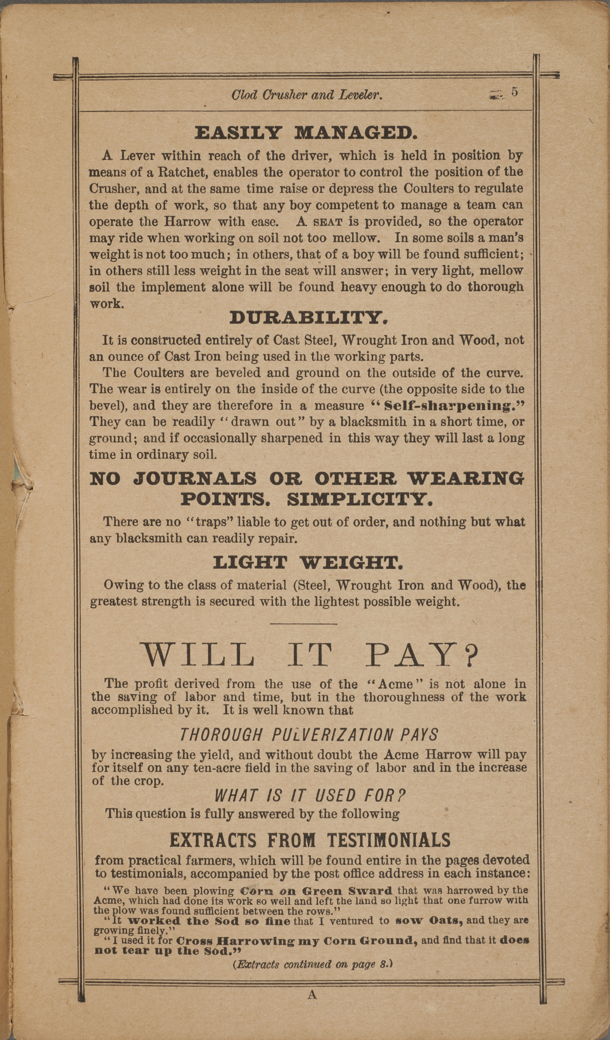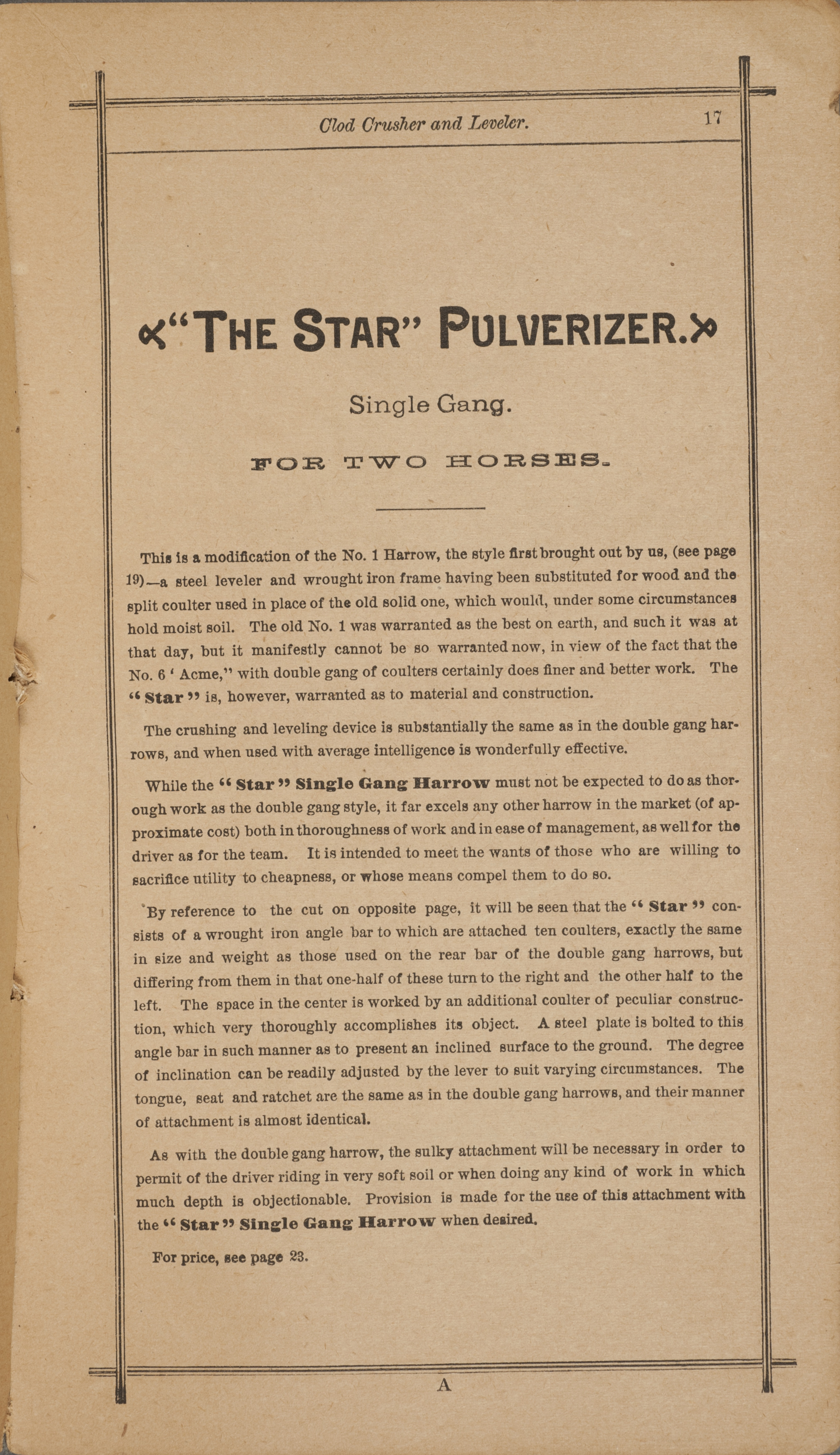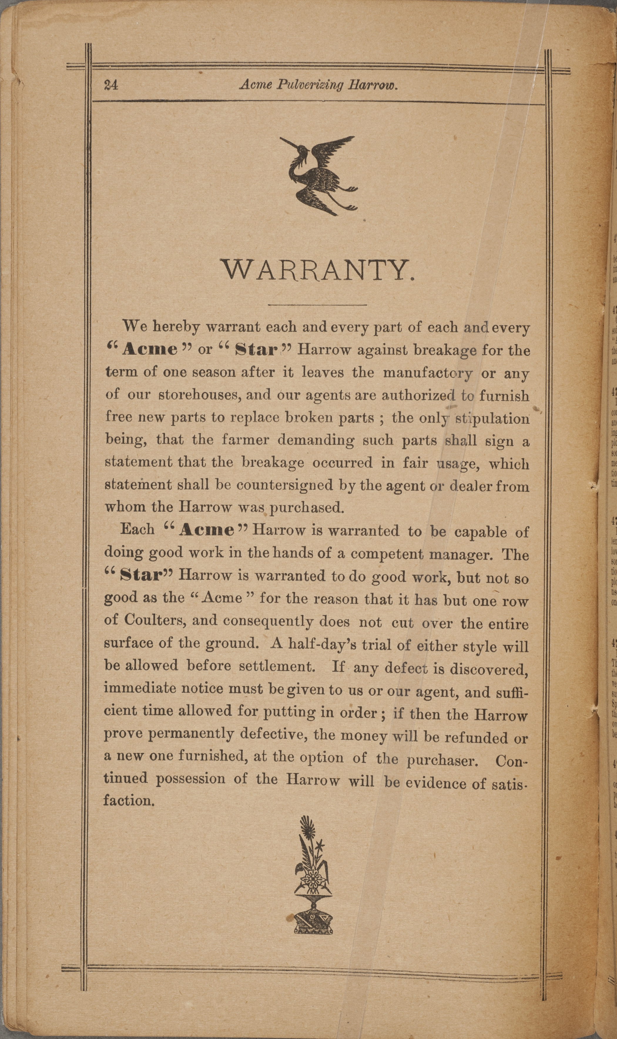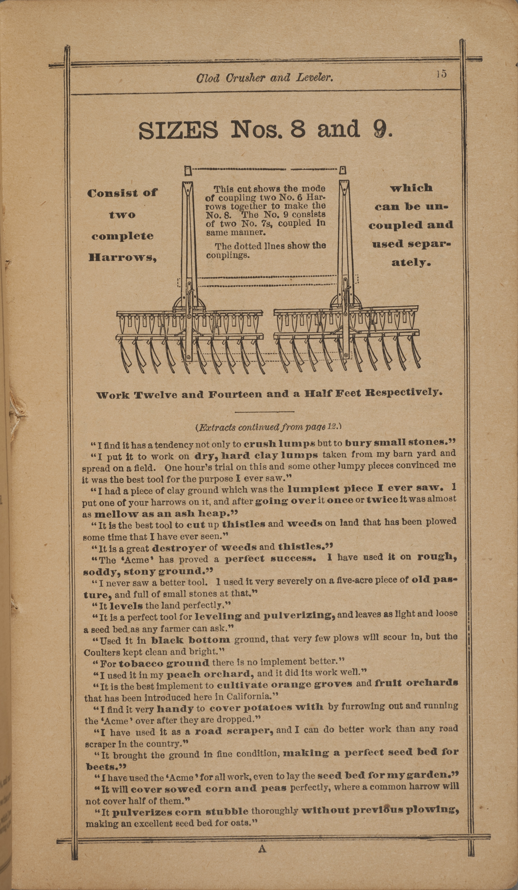- Illustrated catalog describing the acme agricultural implements offered by Nash and Brother Manufactory.