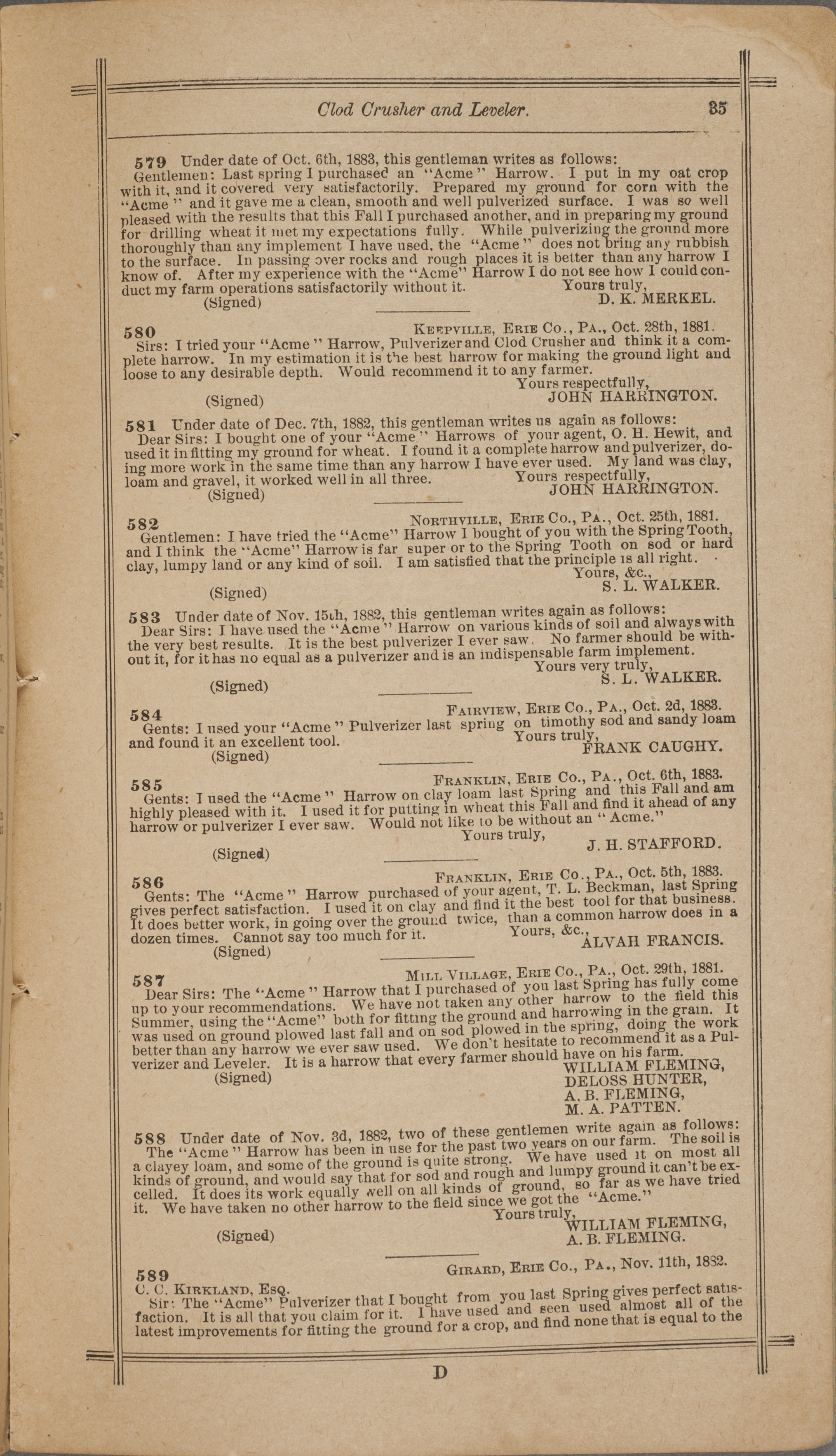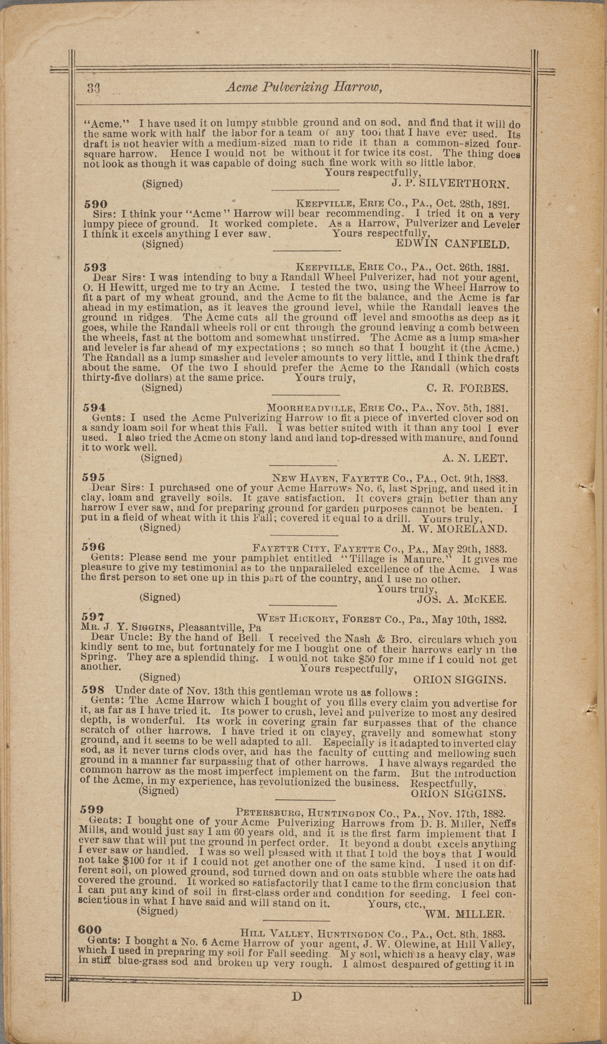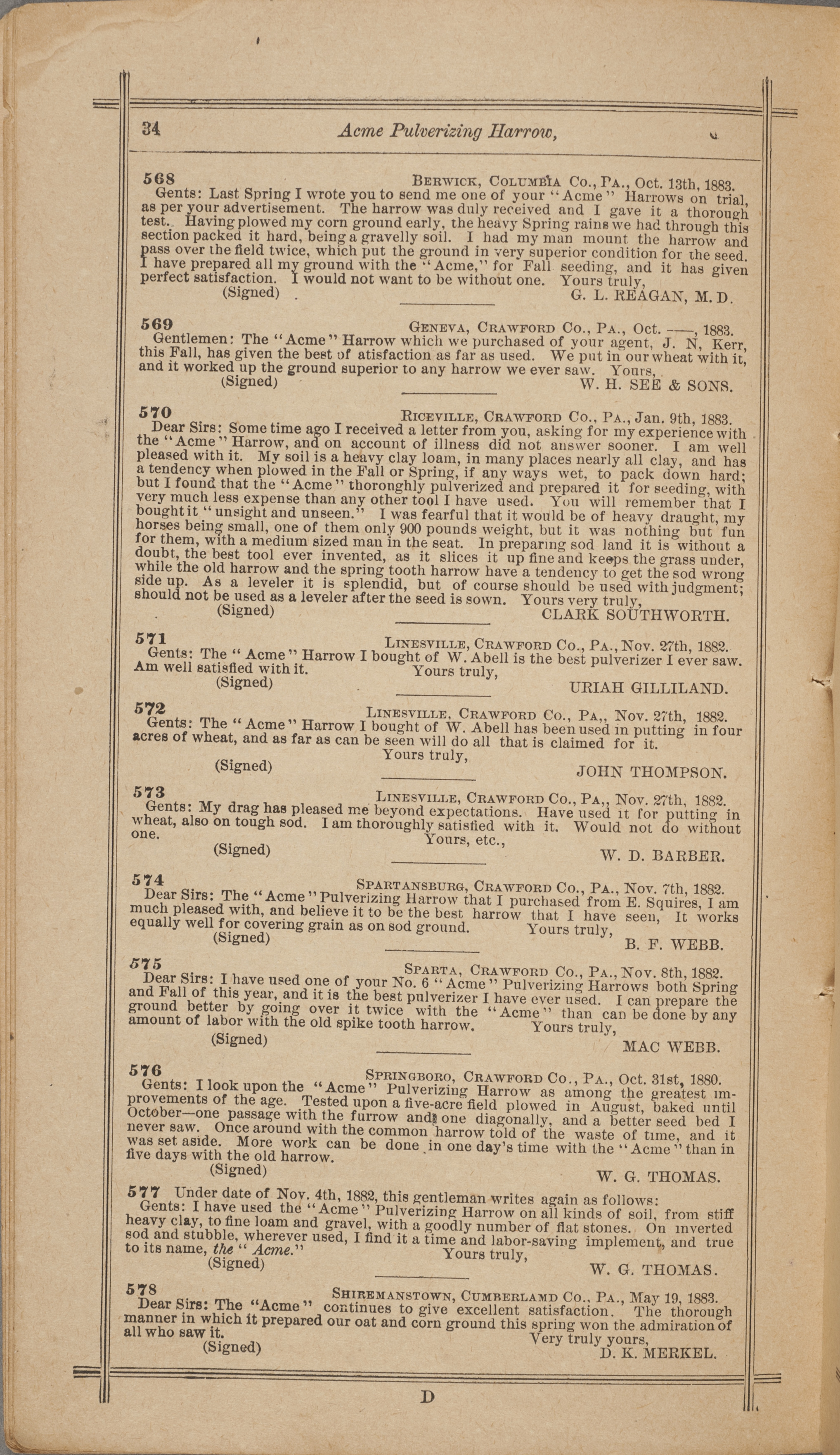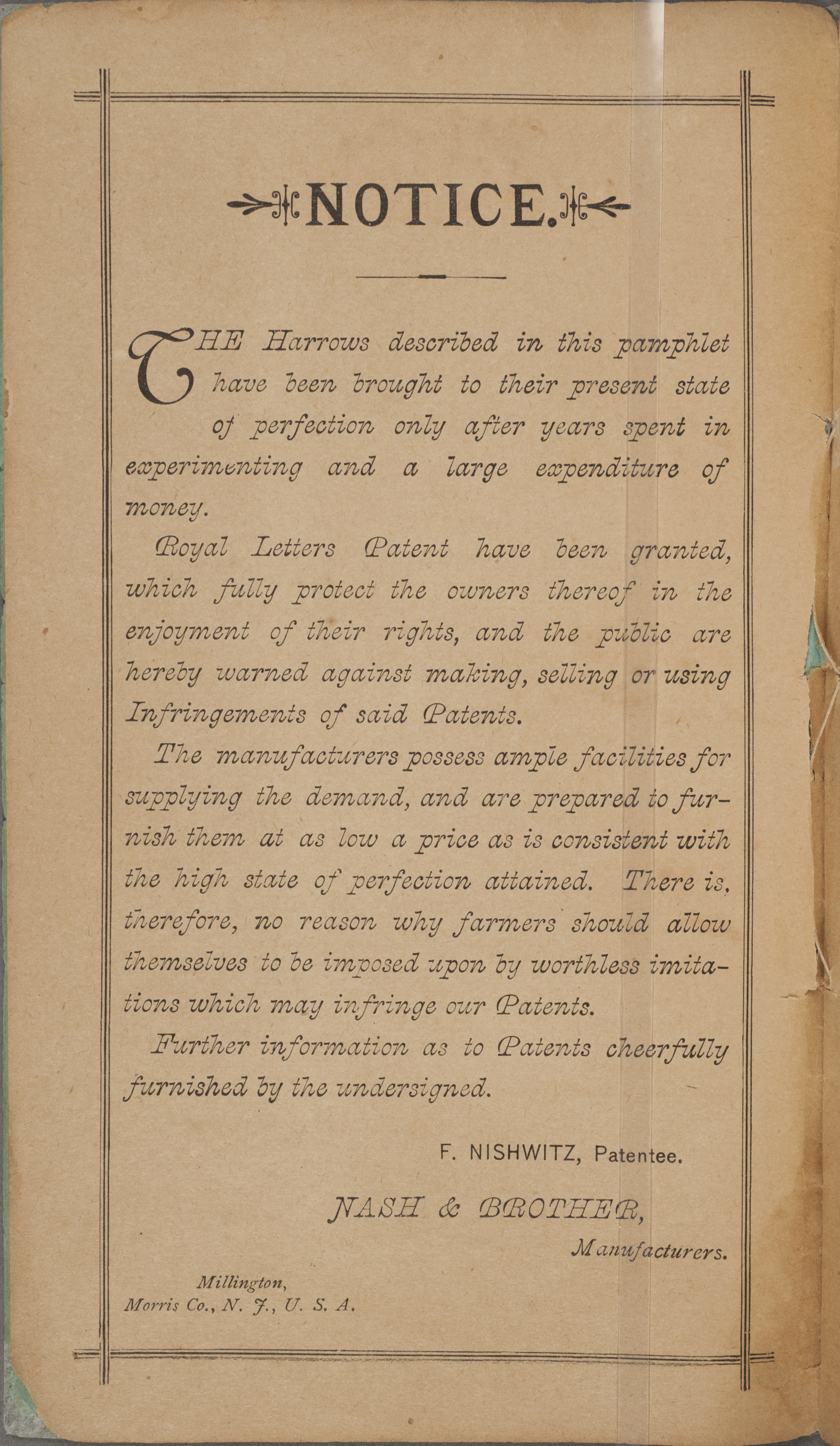 - "Nash and Brother Manufactory Acme catalog", Agricultural Machinery Literature Collection, Iowa State University Library Digital Collections