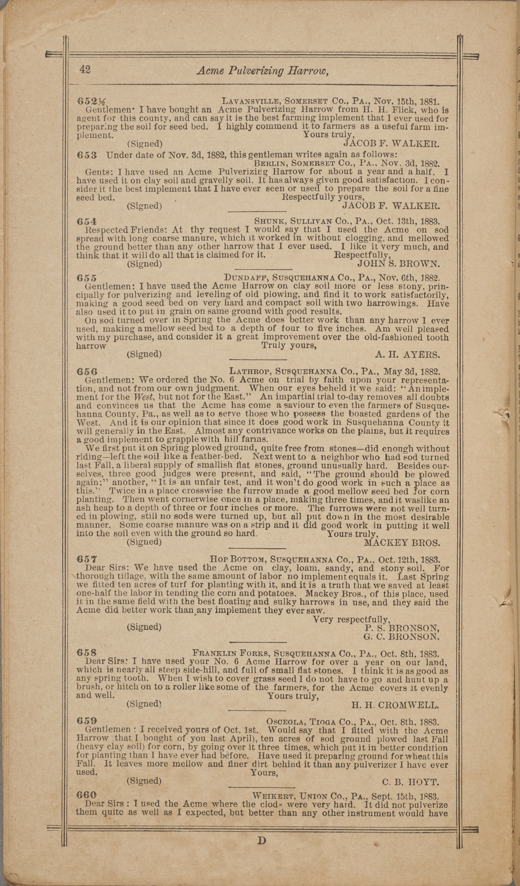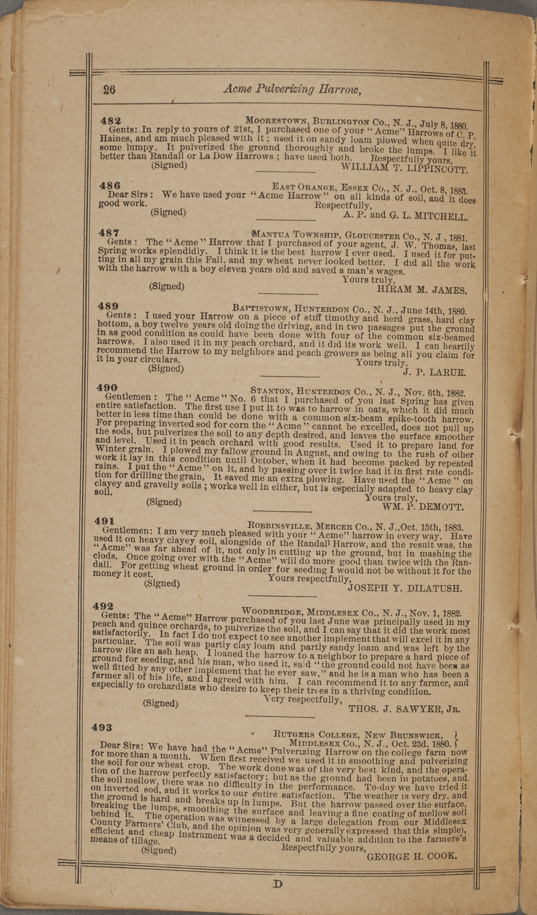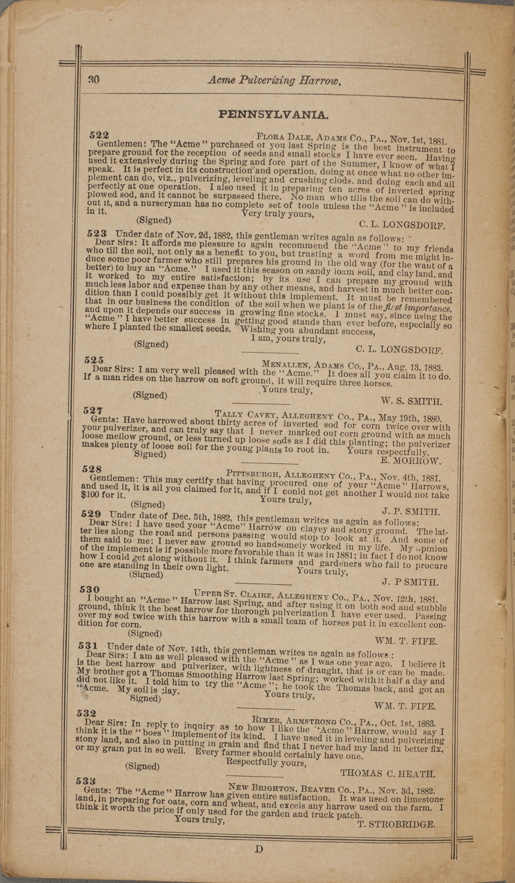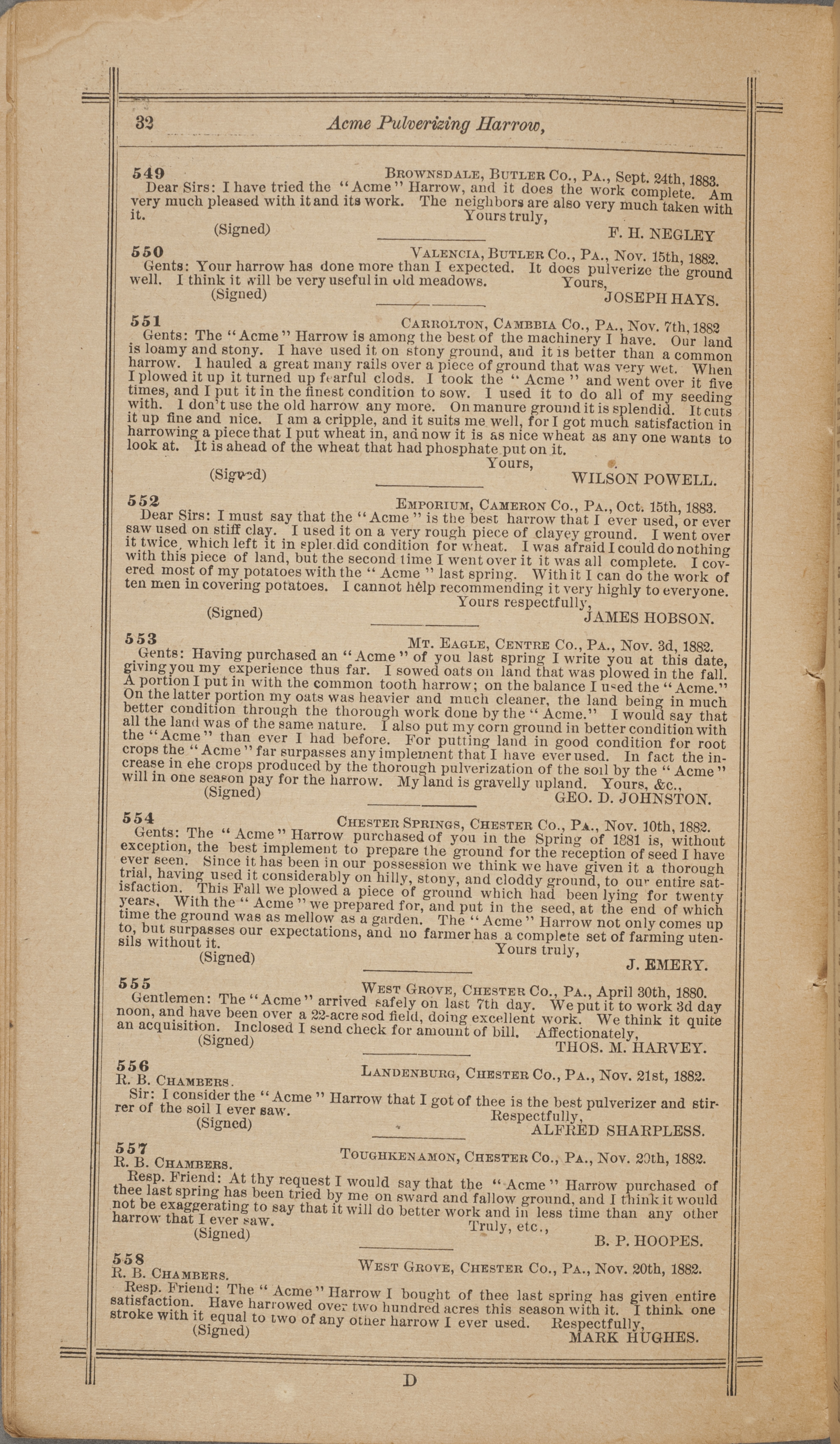 - "Nash and Brother Manufactory Acme catalog", Agricultural Machinery Literature Collection, Iowa State University Library Digital Collections