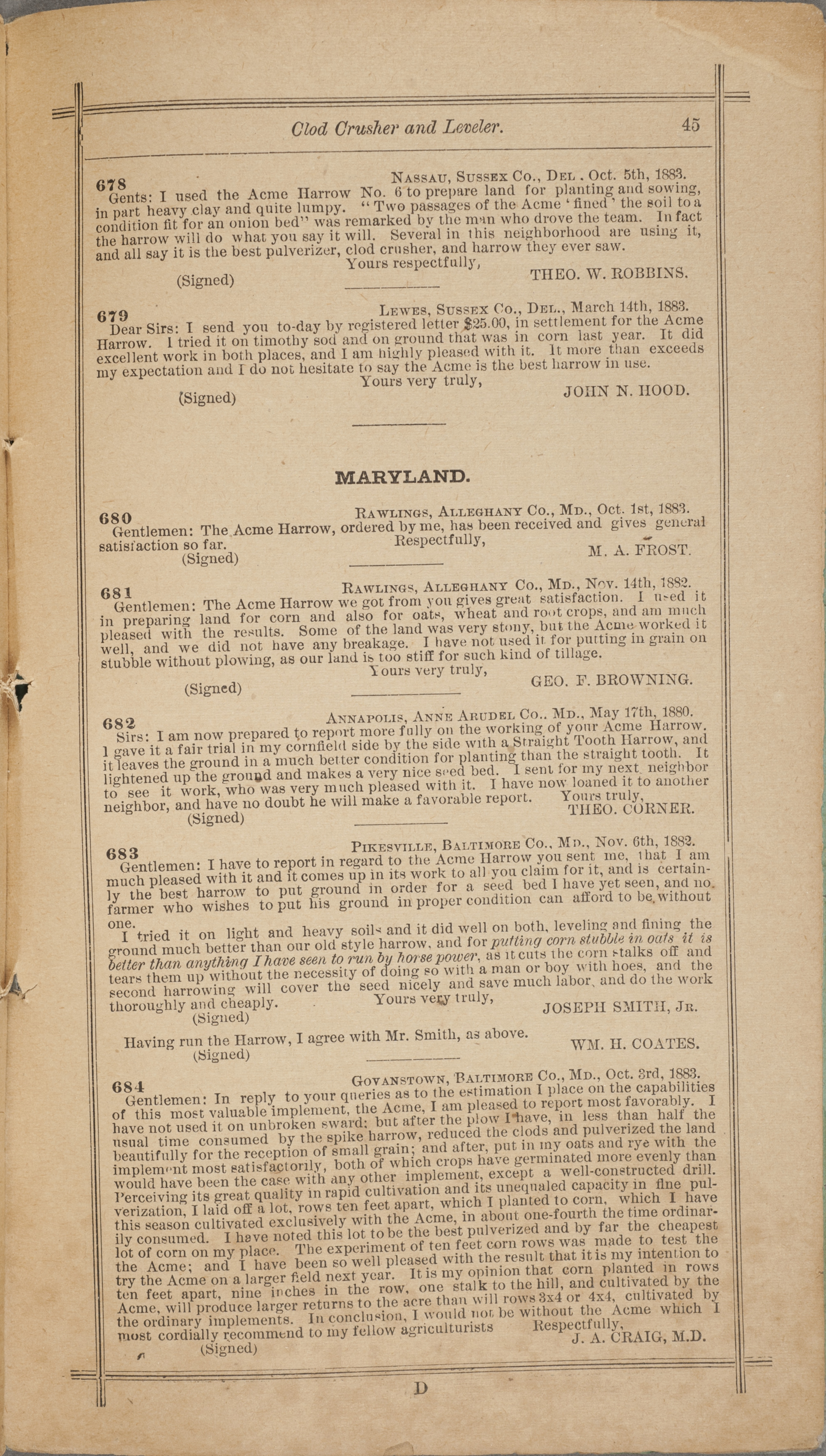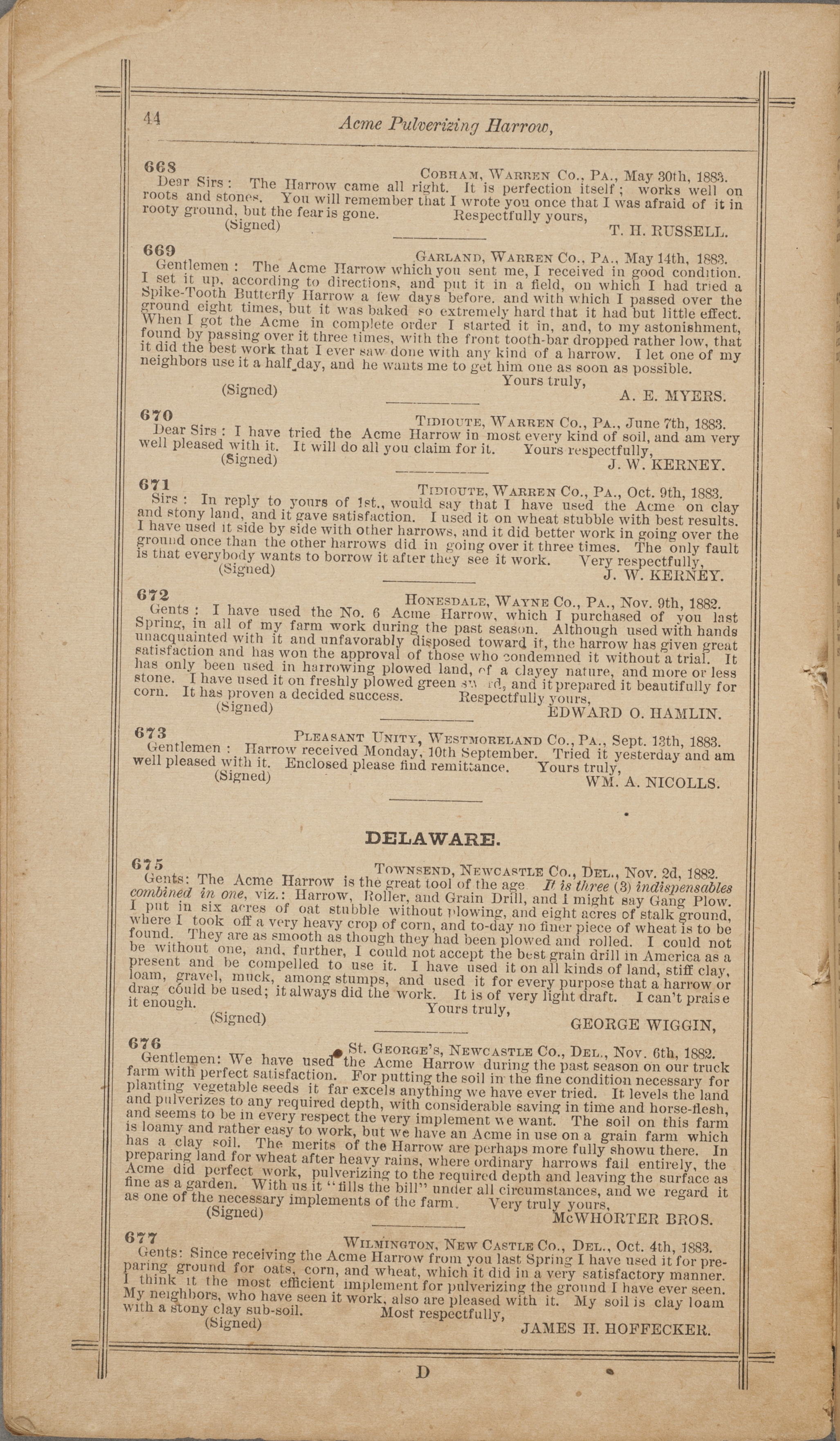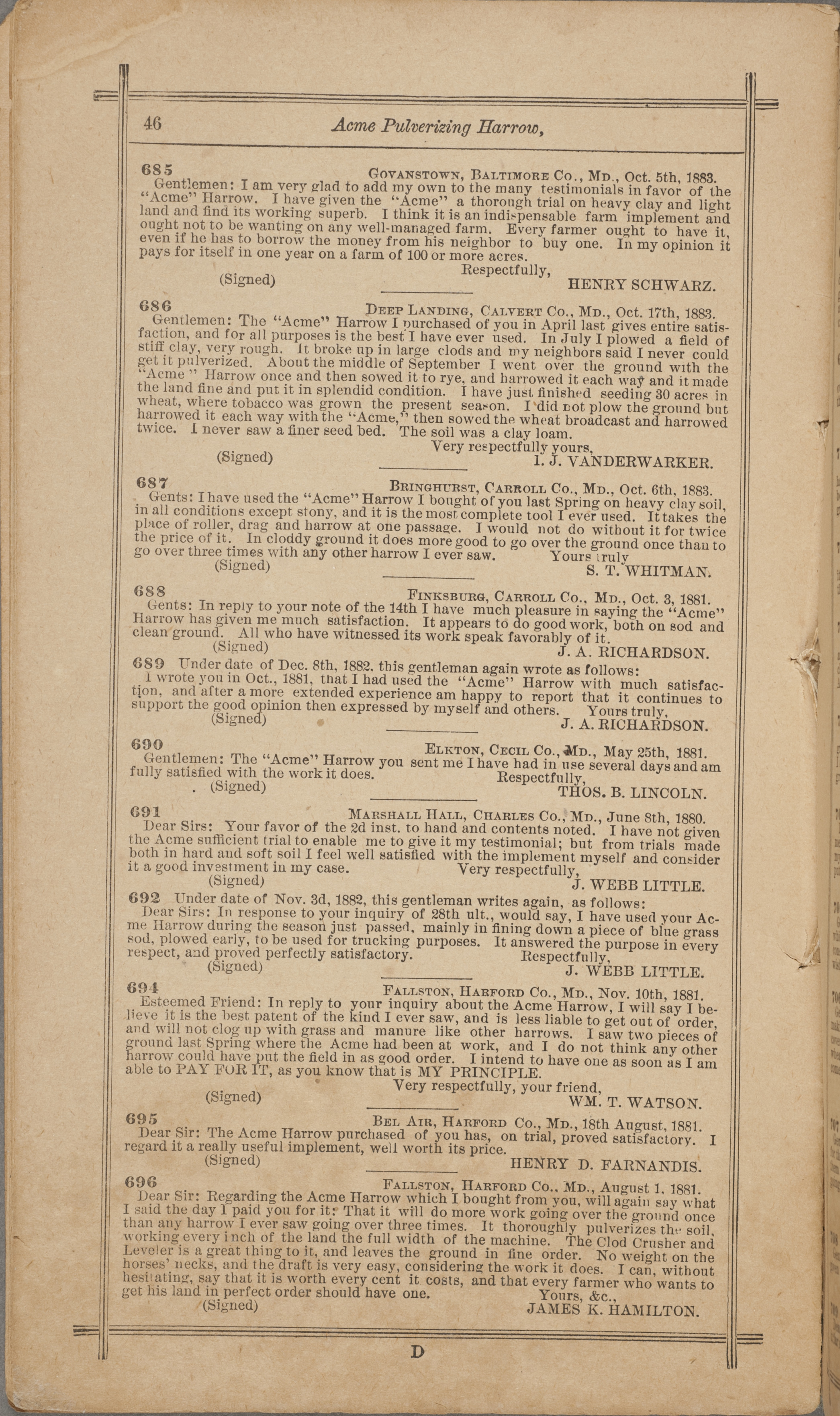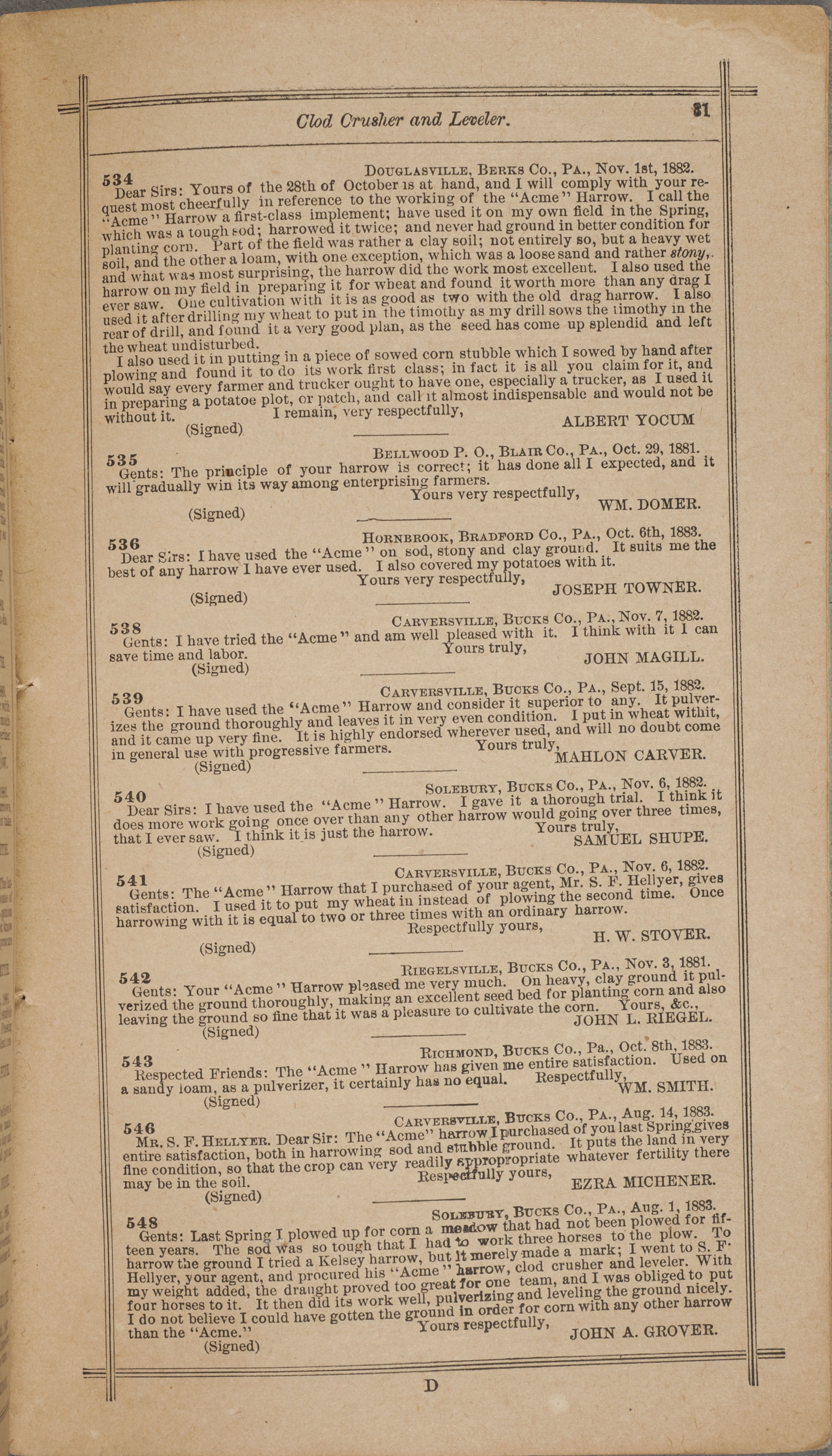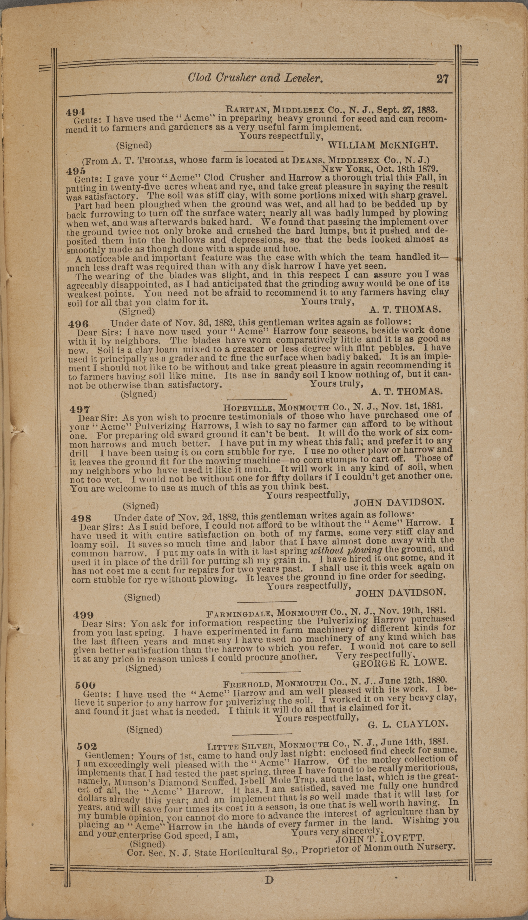 - "Nash and Brother Manufactory Acme catalog", Agricultural Machinery Literature Collection, Iowa State University Library Digital Collections