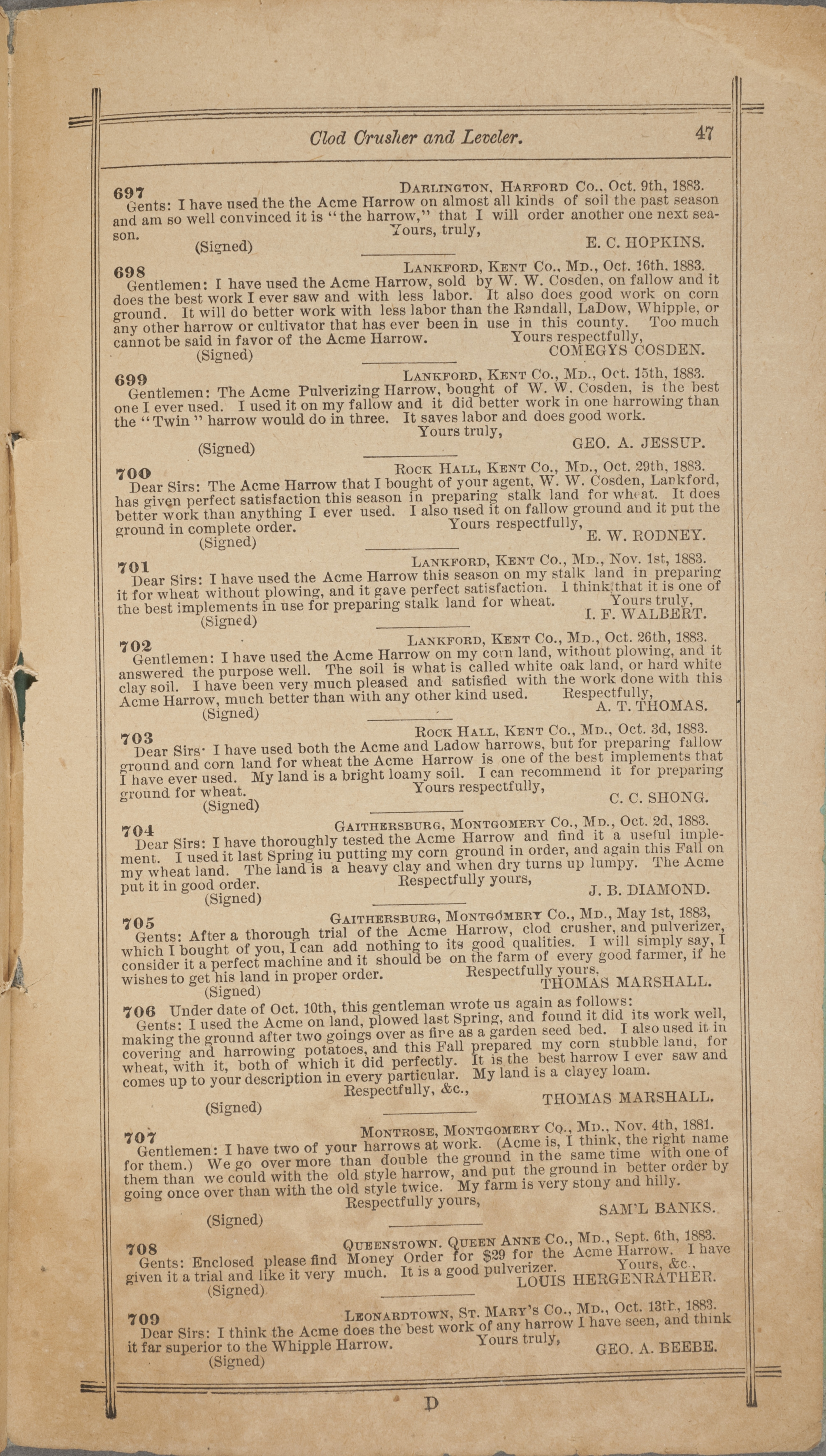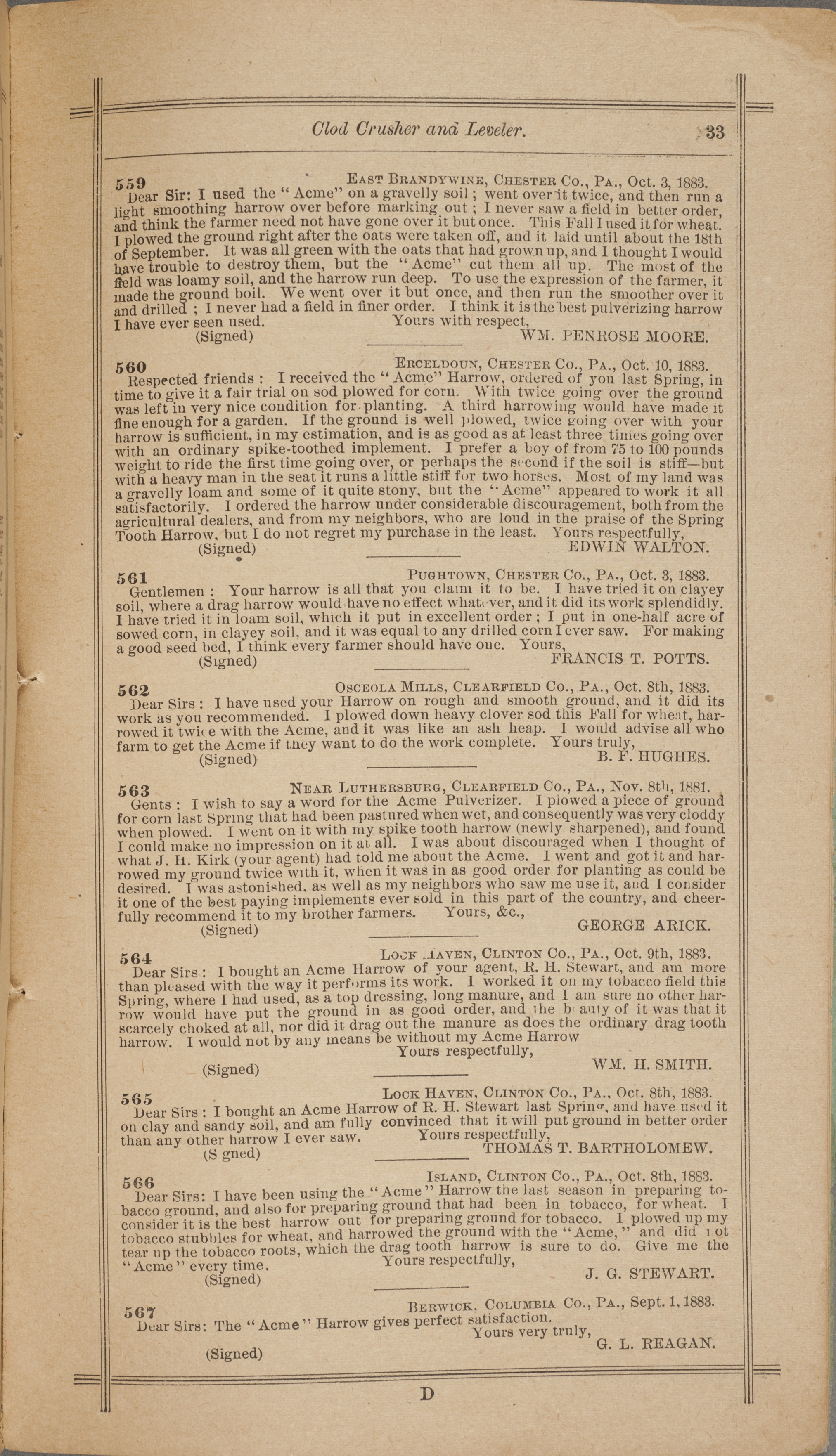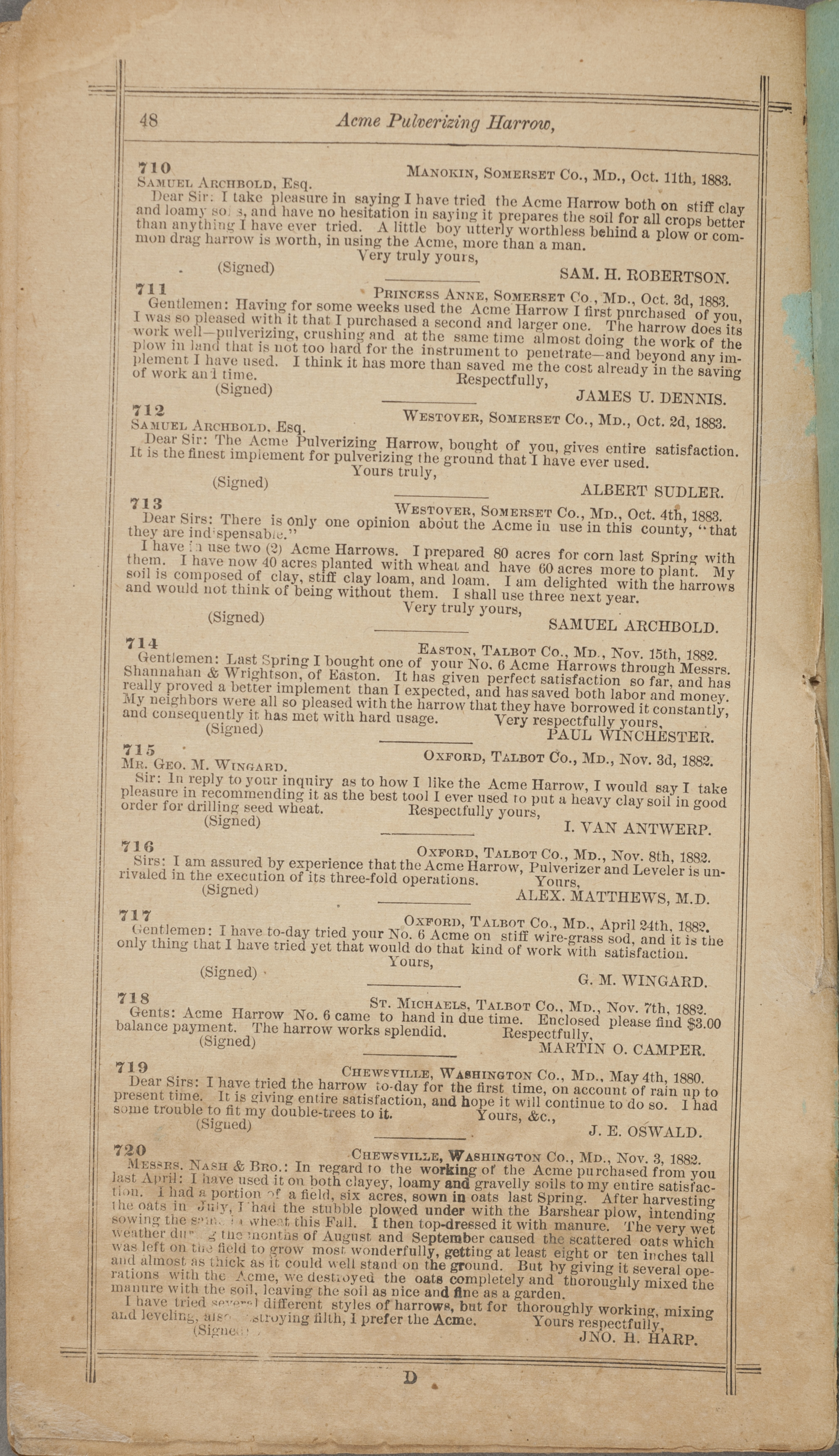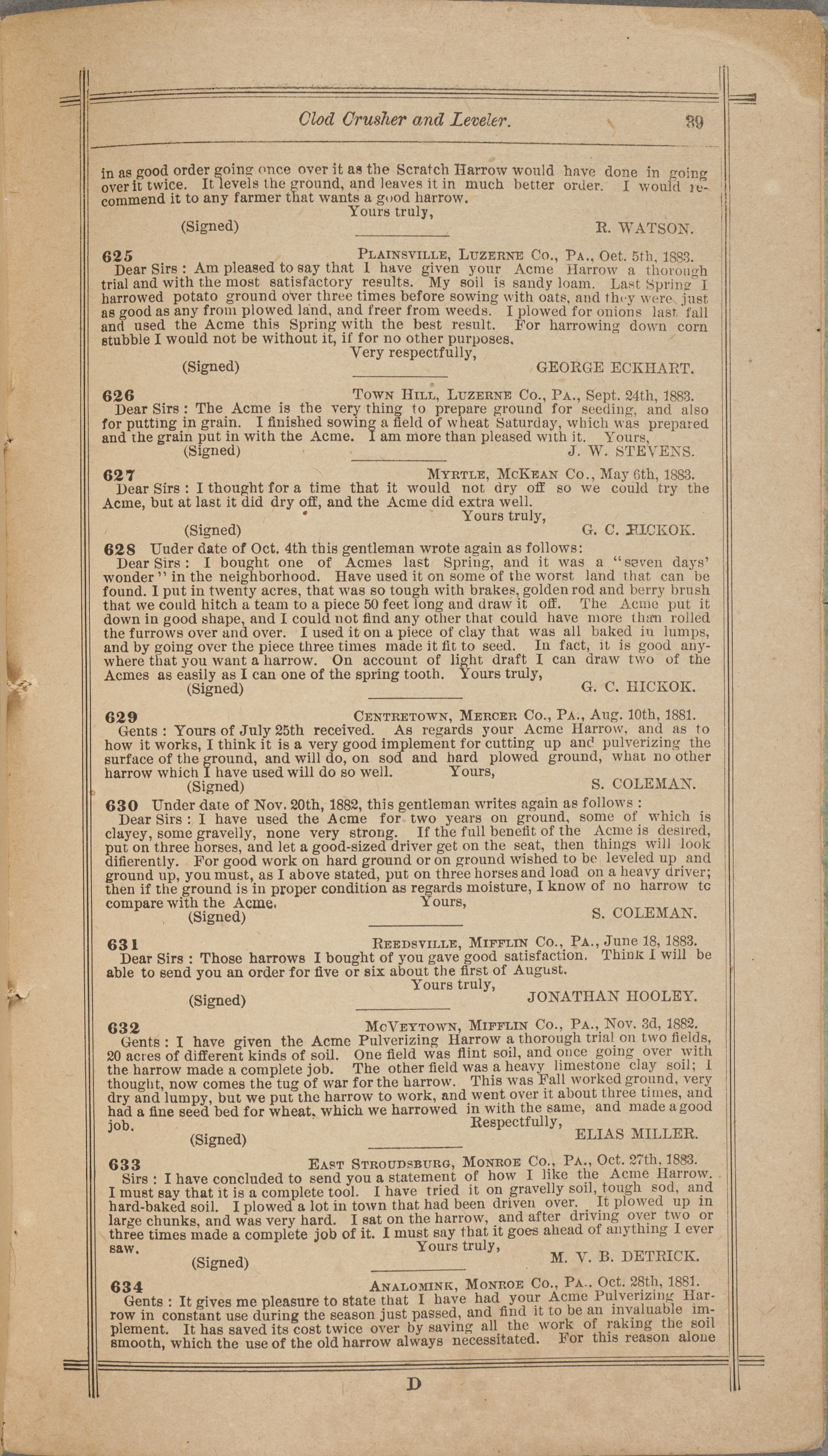 - "Nash and Brother Manufactory Acme catalog", Agricultural Machinery Literature Collection, Iowa State University Library Digital Collections