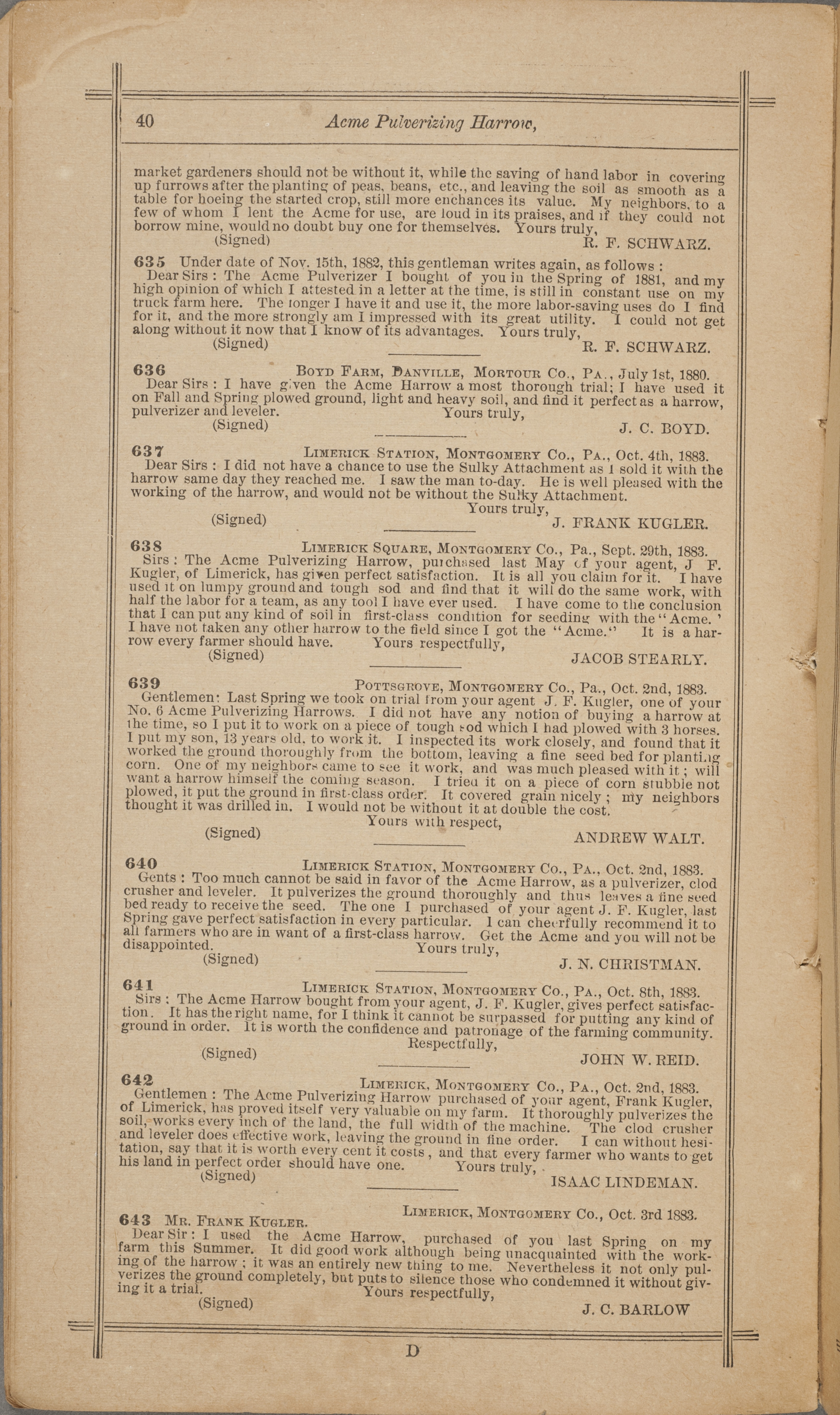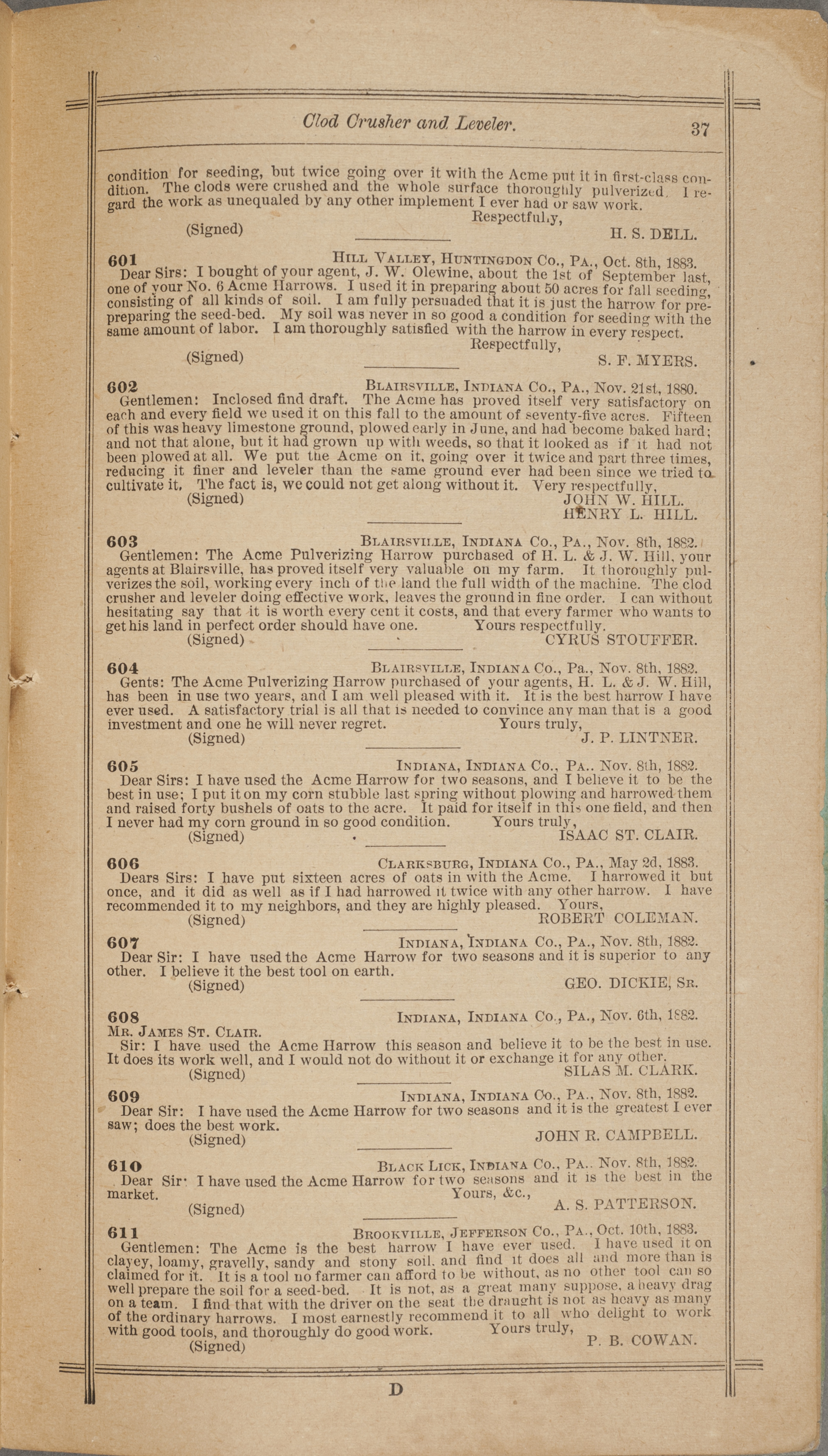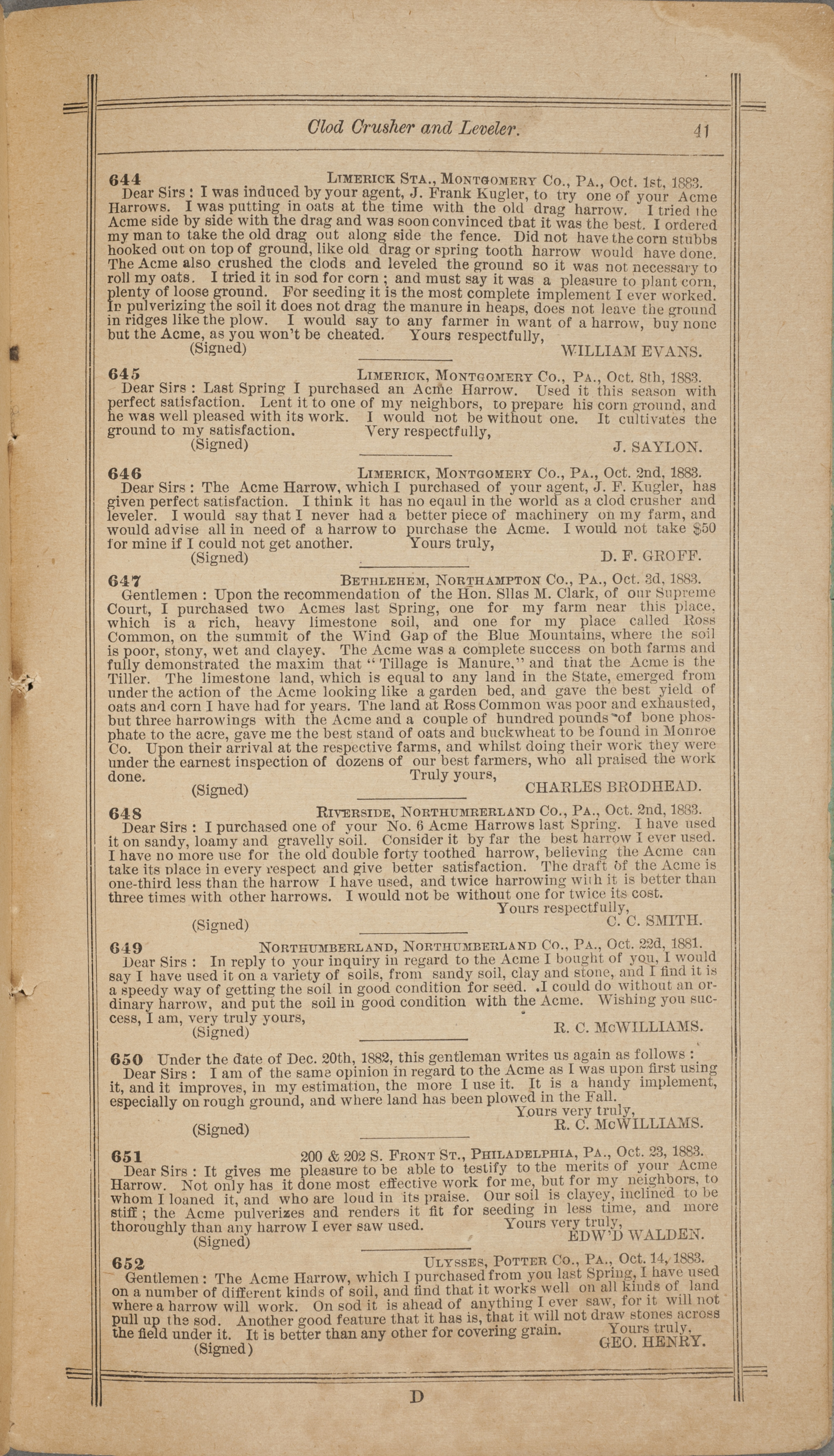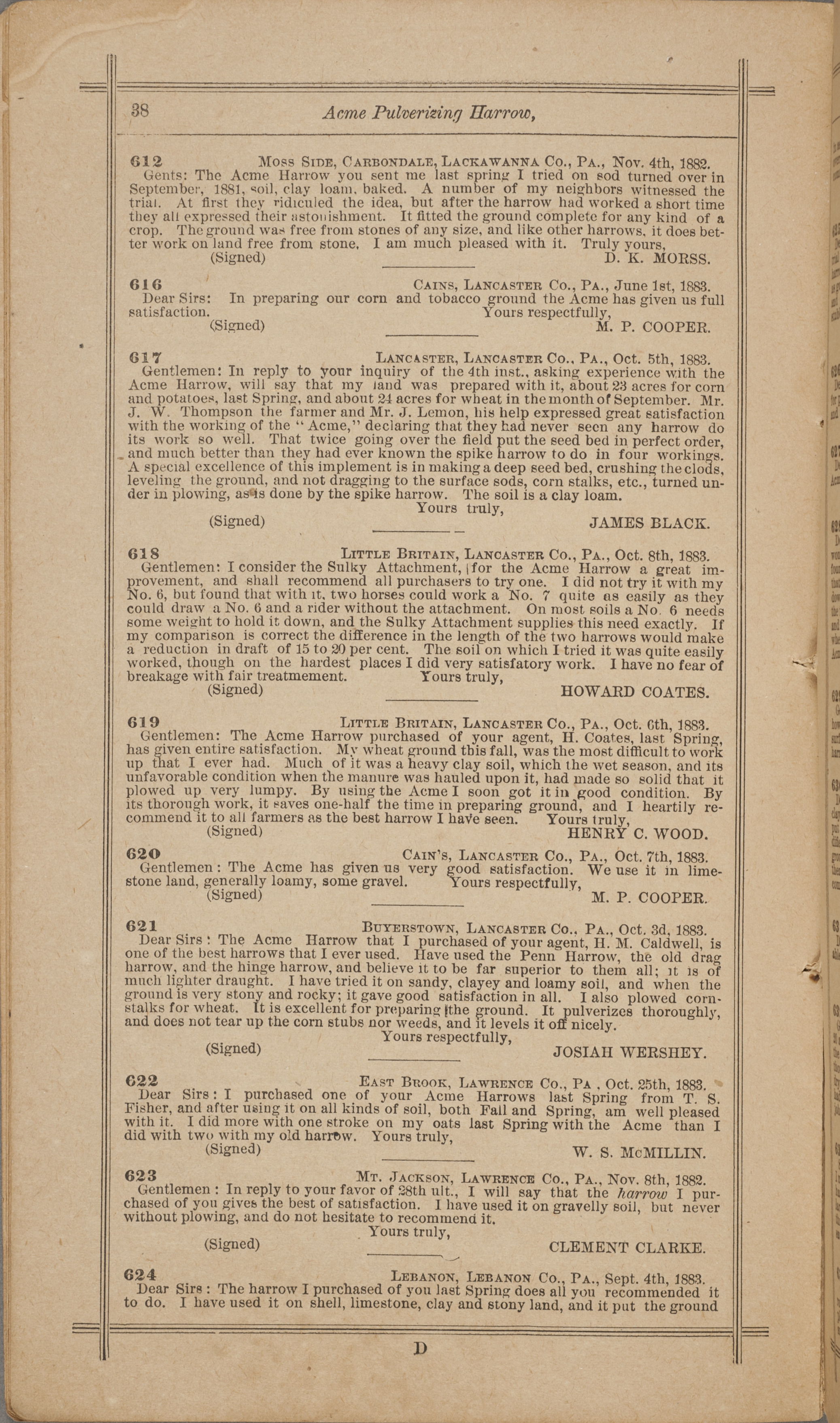 - "Nash and Brother Manufactory Acme catalog", Agricultural Machinery Literature Collection, Iowa State University Library Digital Collections