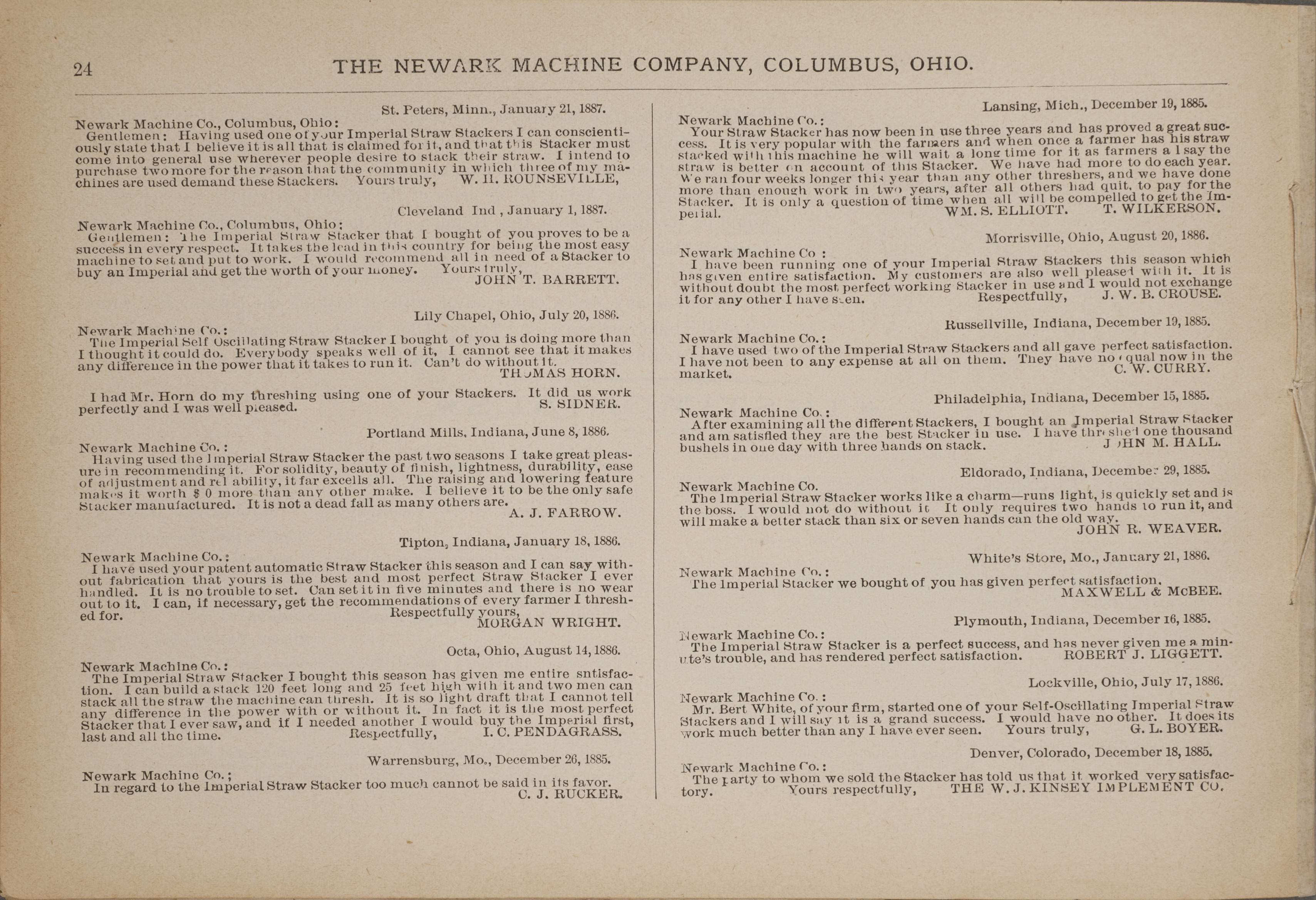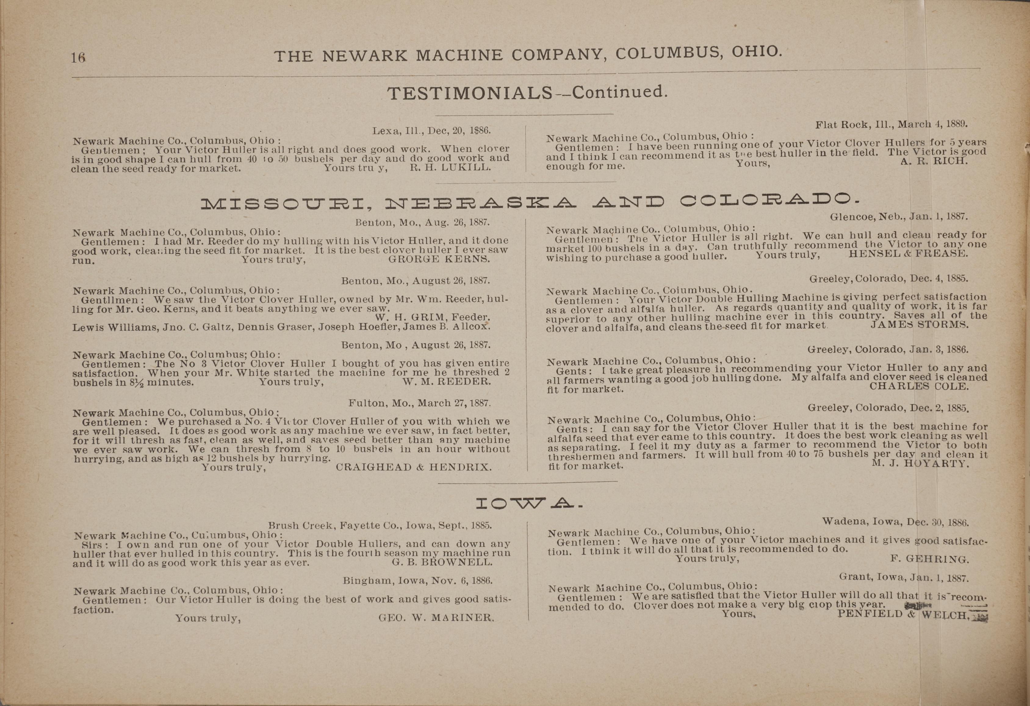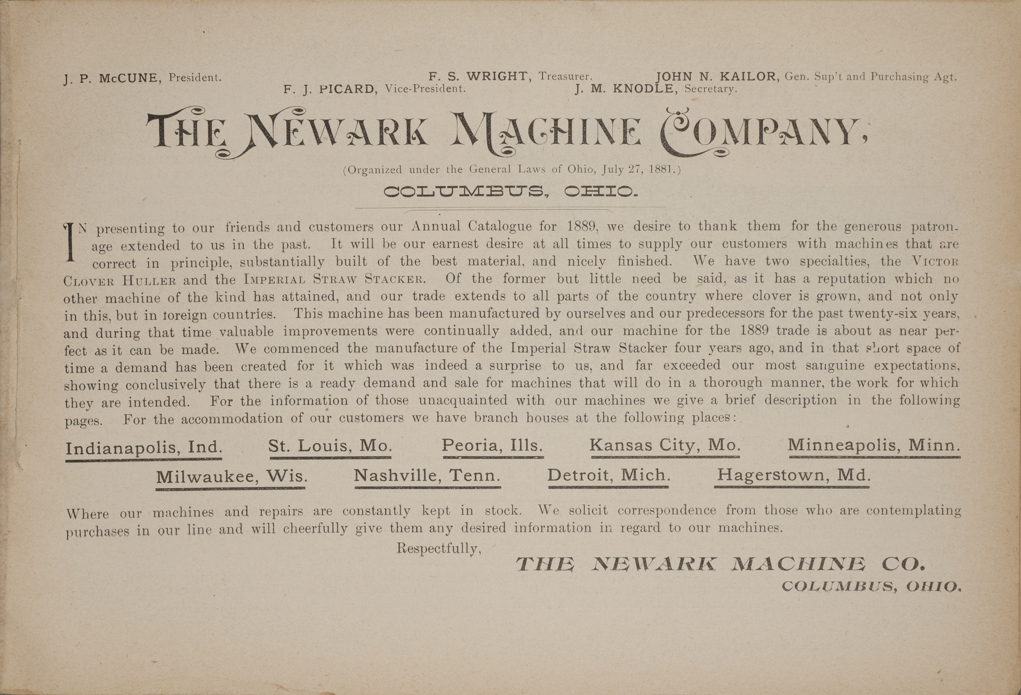 - "Newark Machine Company catalog", Agricultural Machinery Literature Collection, Iowa State University Library Digital Collections