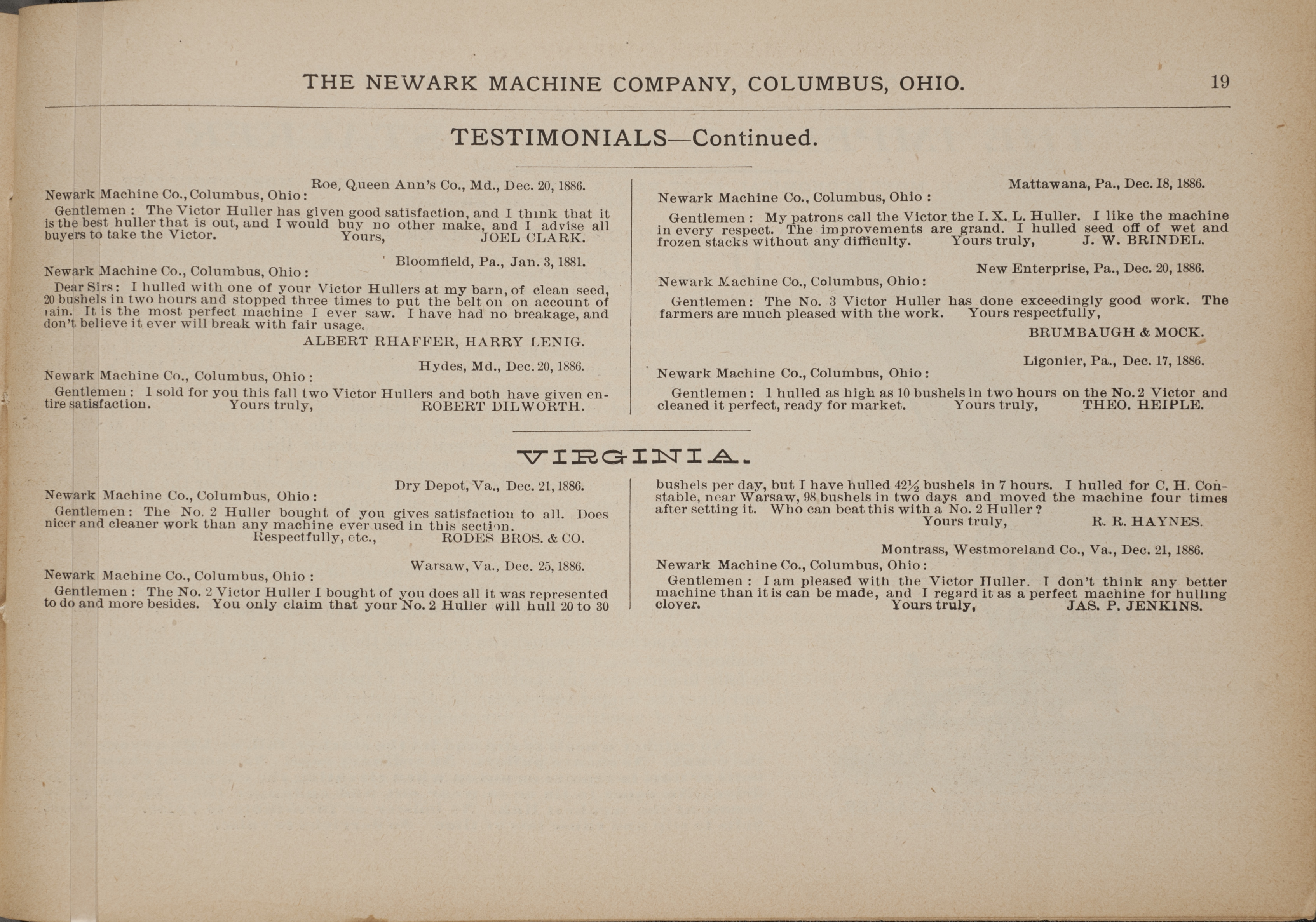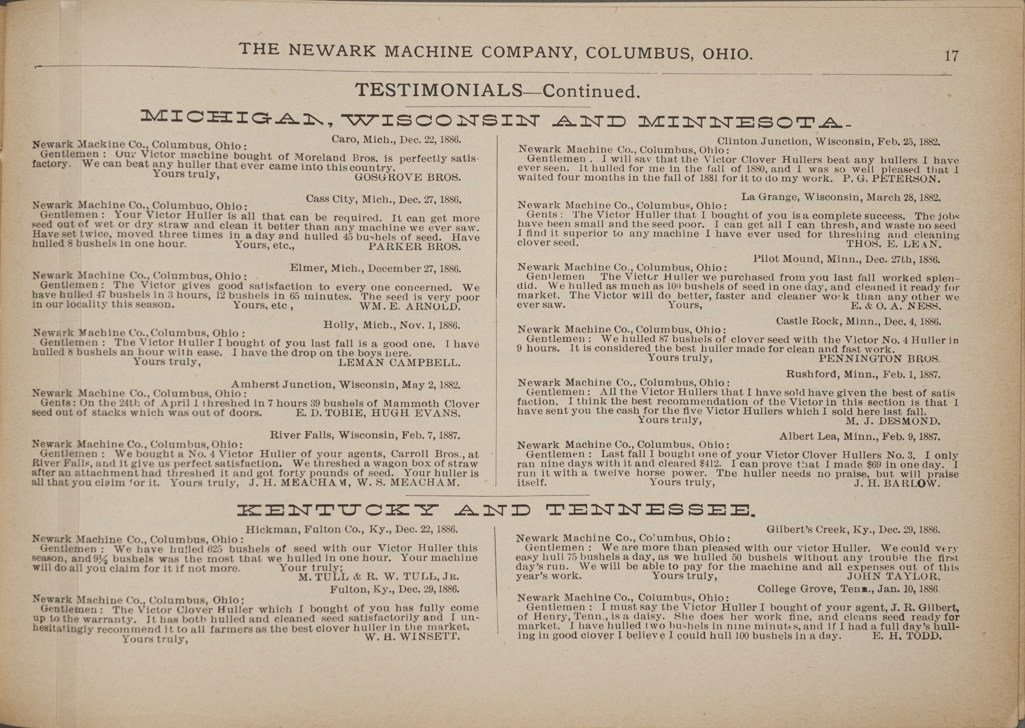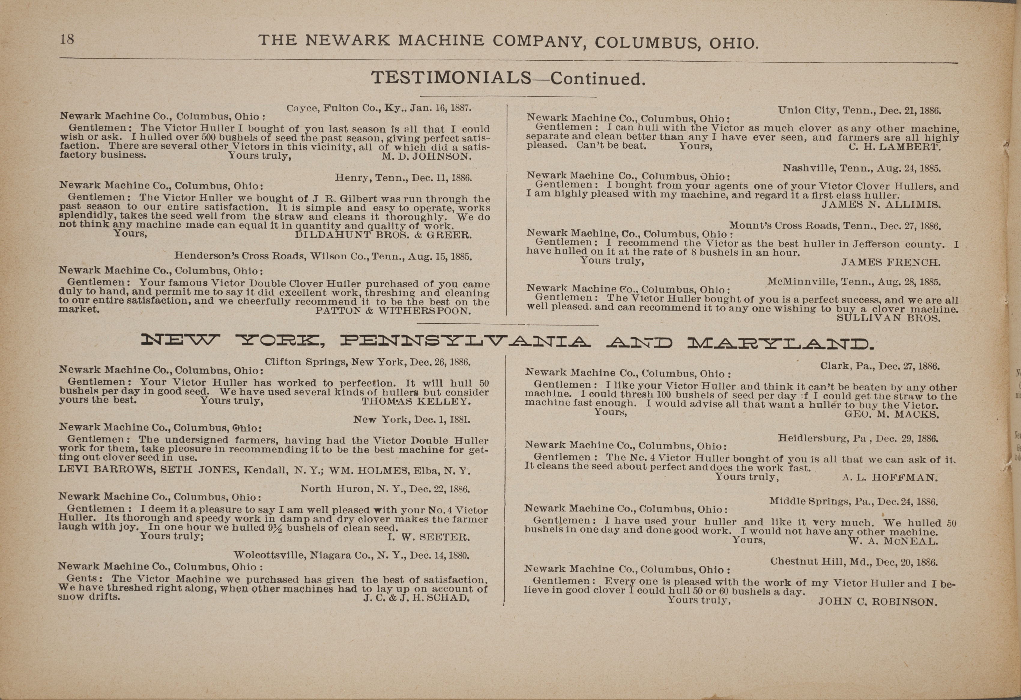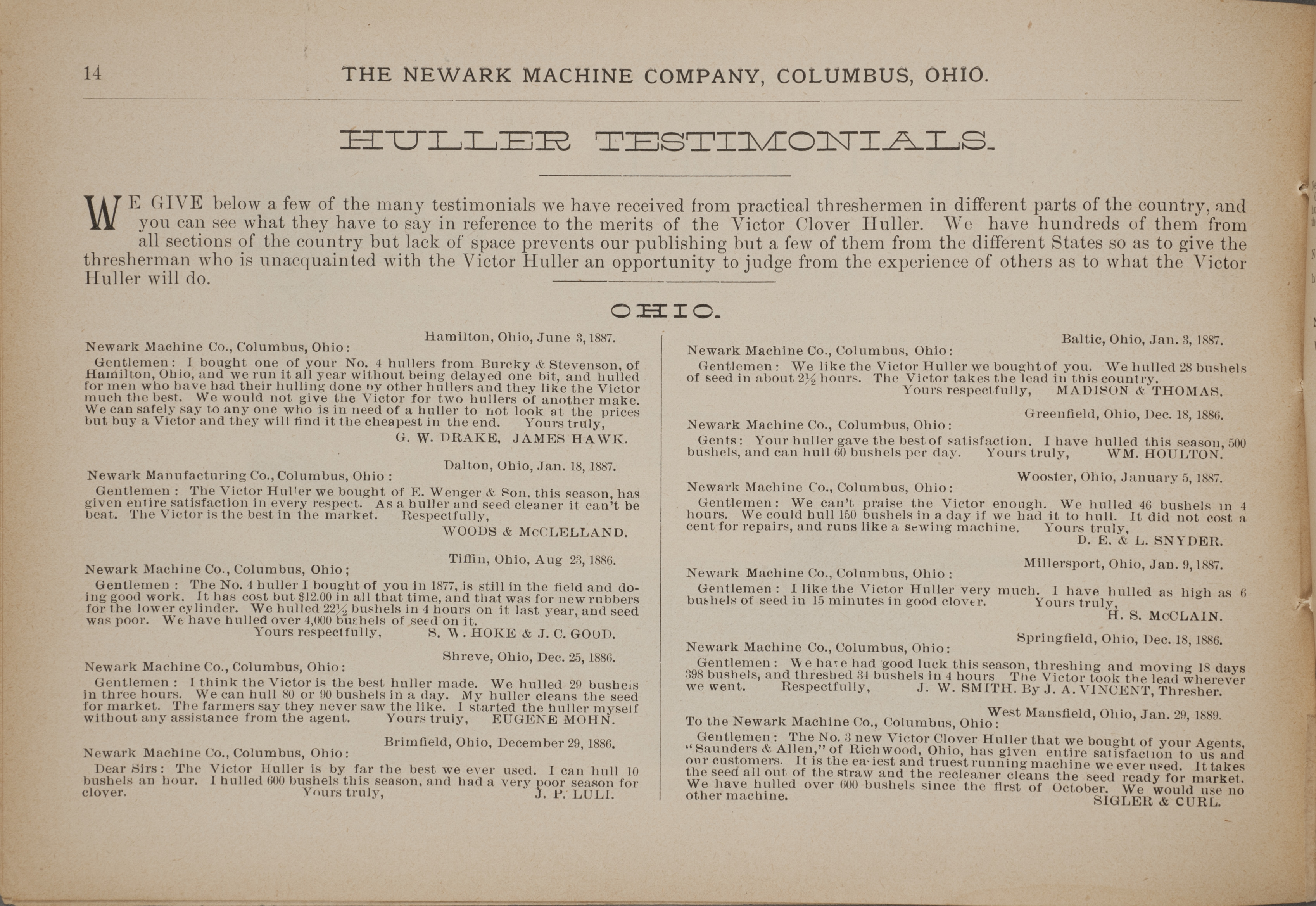 - "Newark Machine Company catalog", Agricultural Machinery Literature Collection, Iowa State University Library Digital Collections