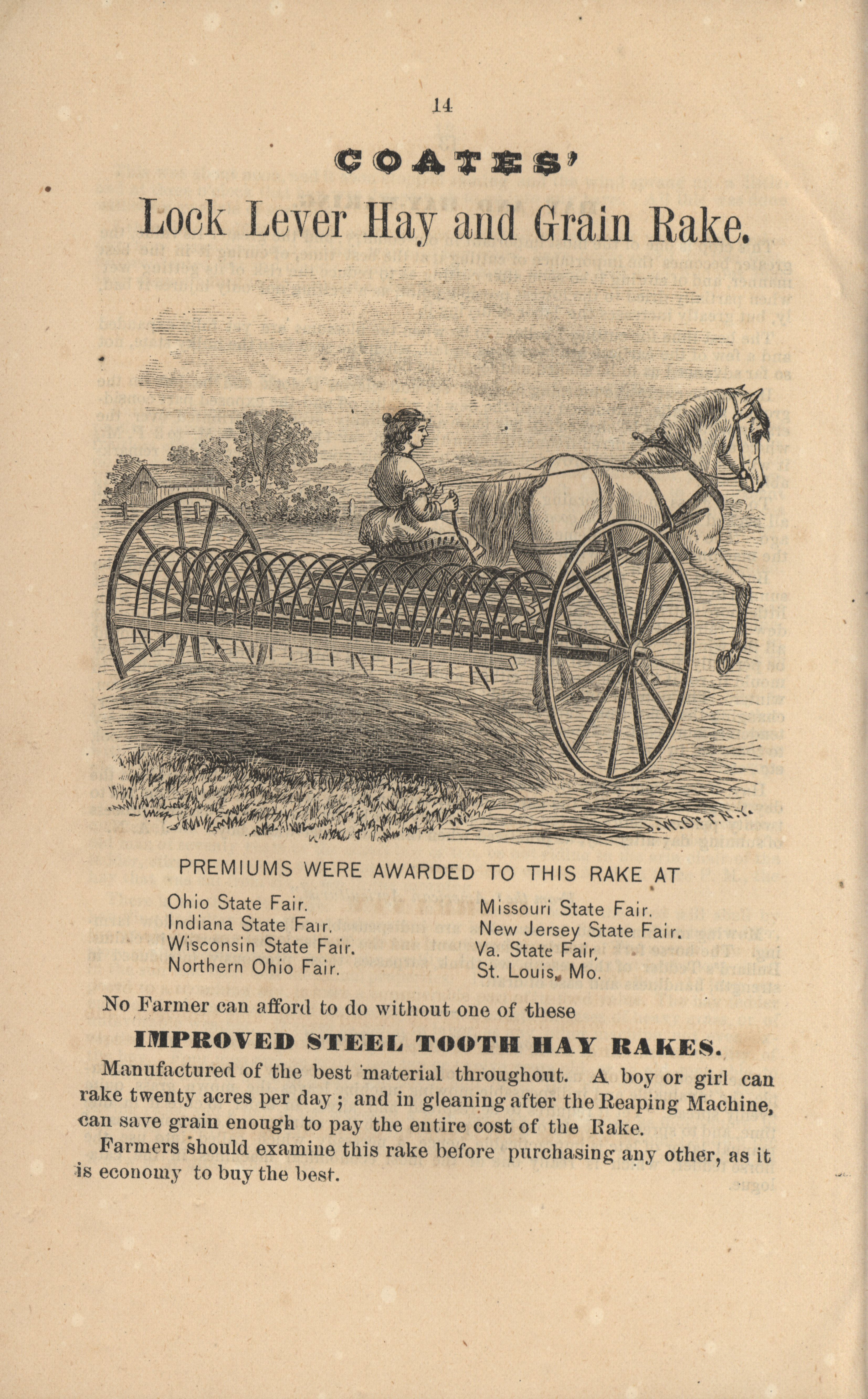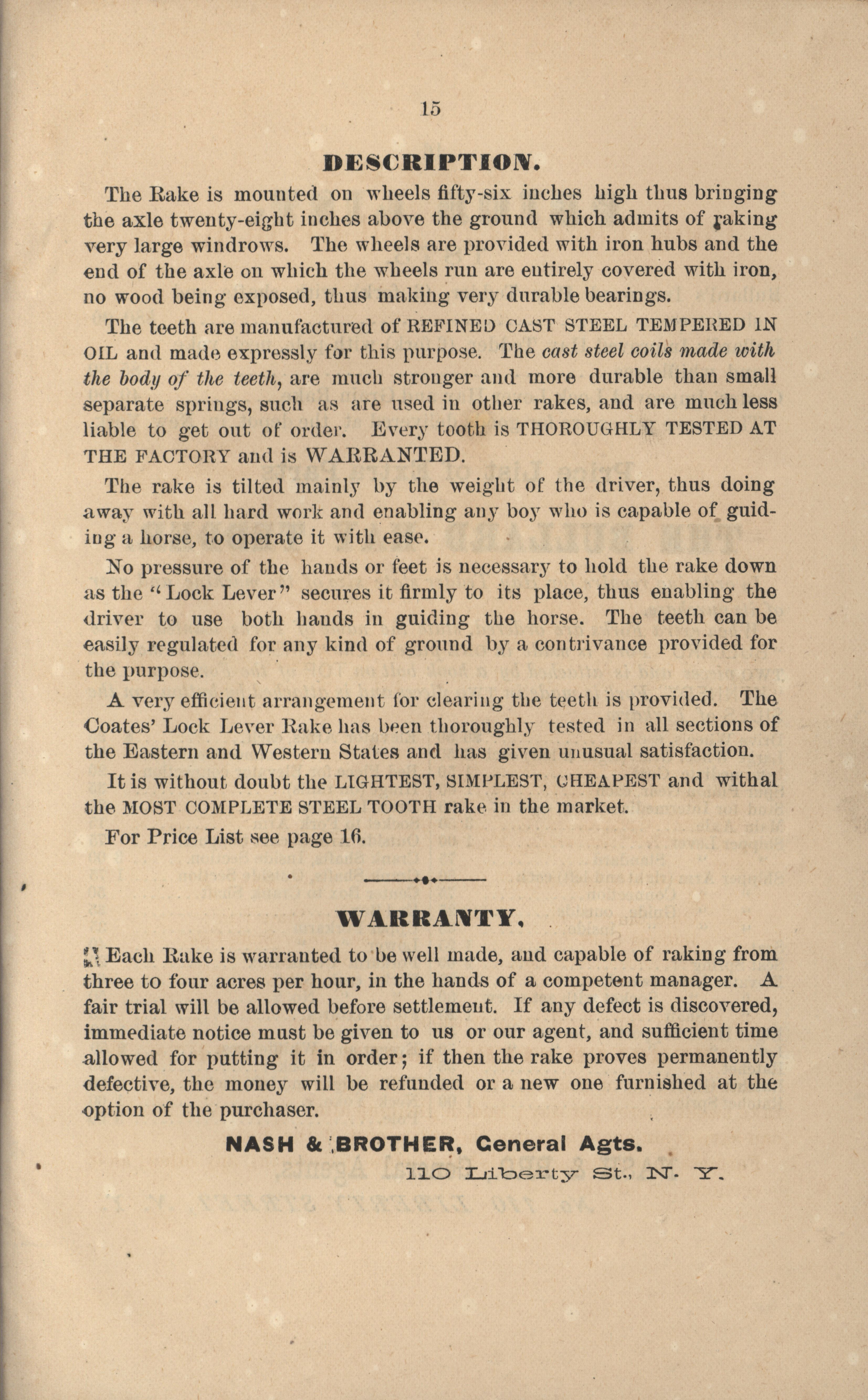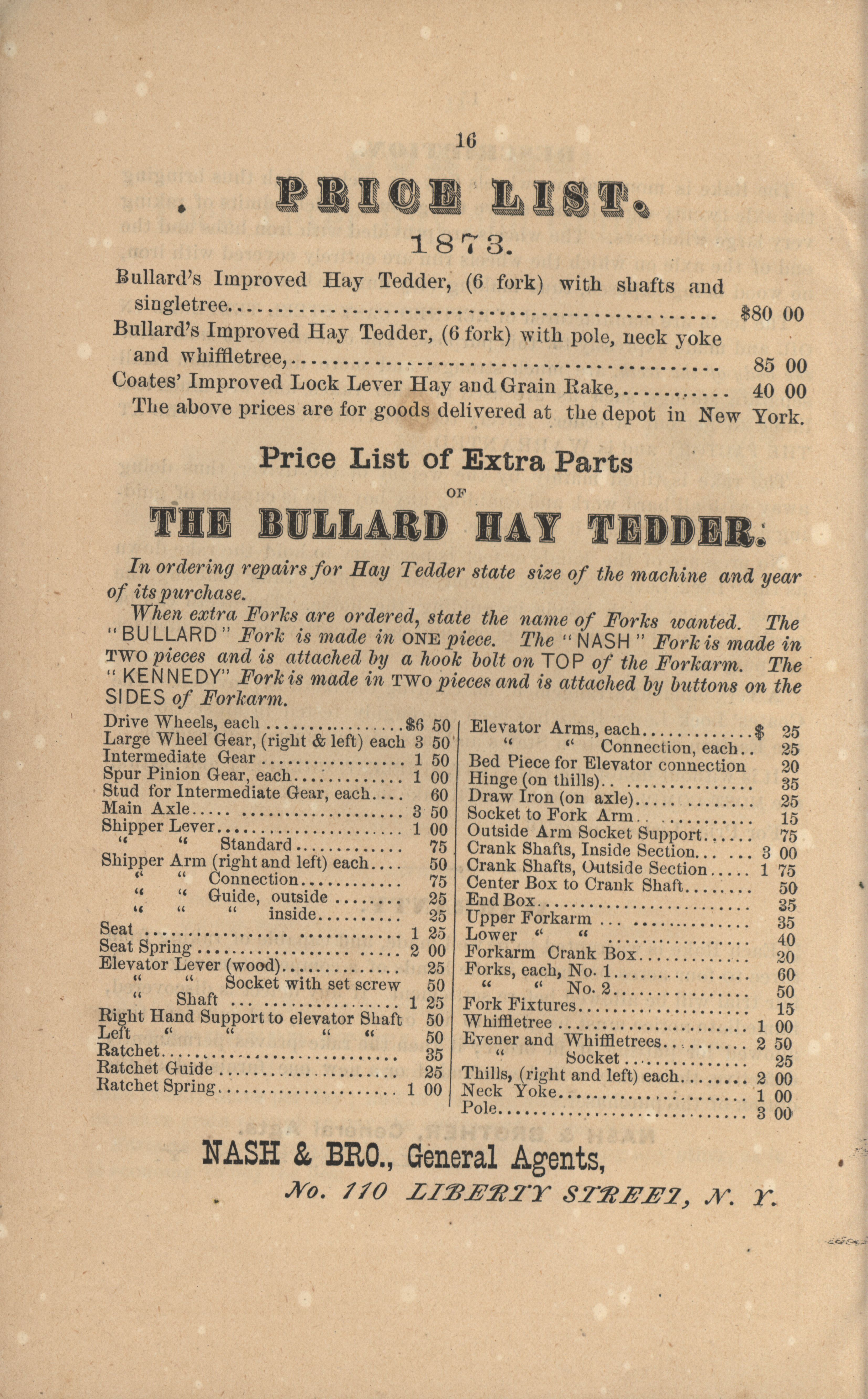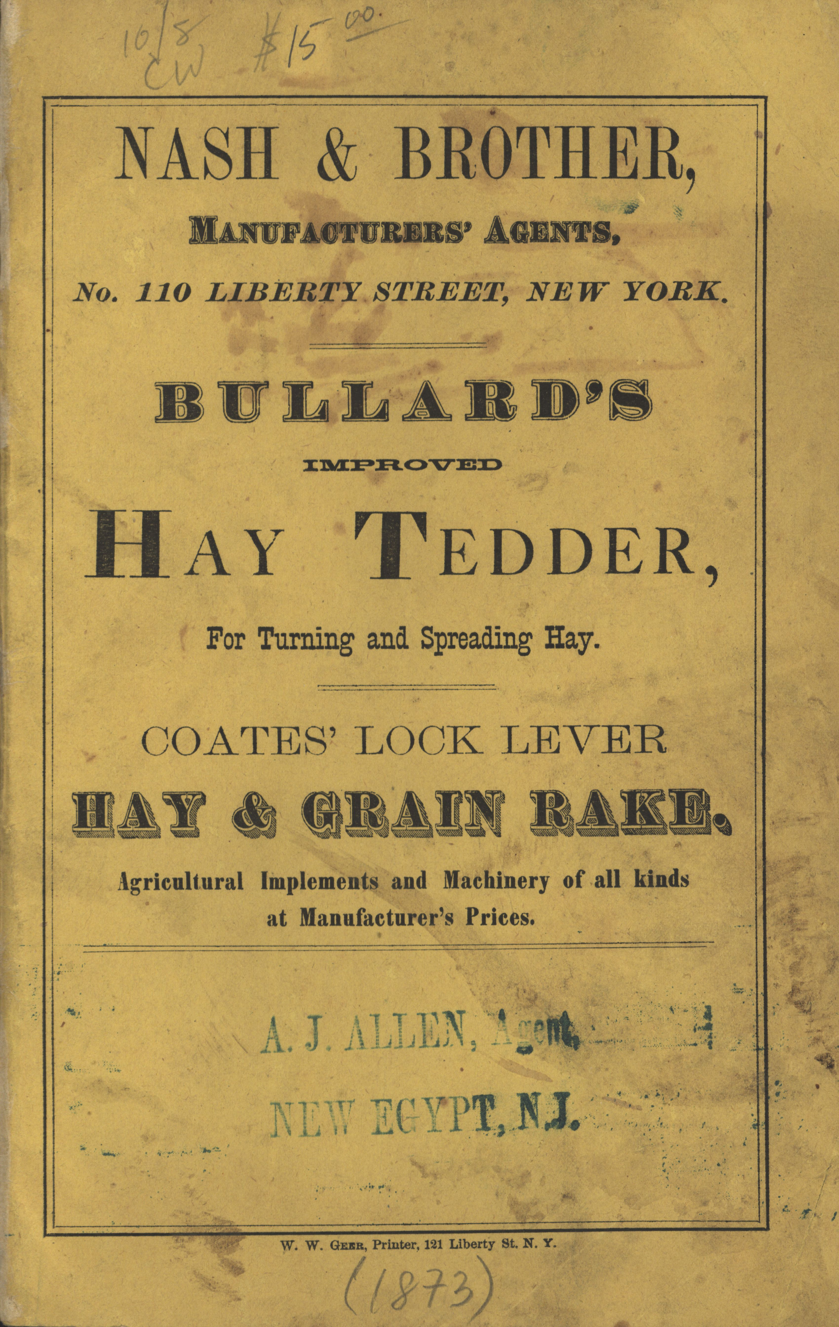 - Illustrated catalog describing the products offered by Nash and Brother Agricultural Implements and Machinery in 1873.
