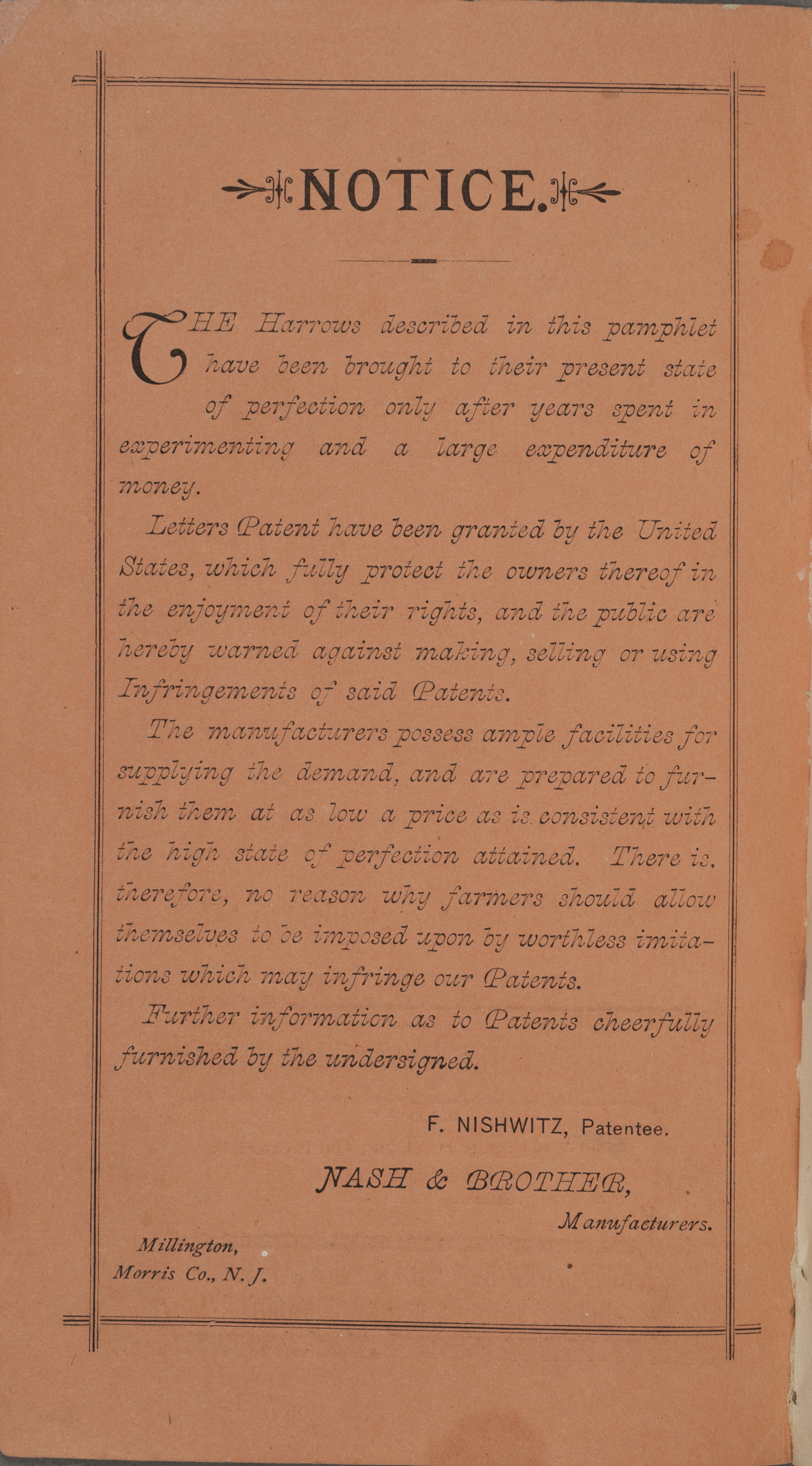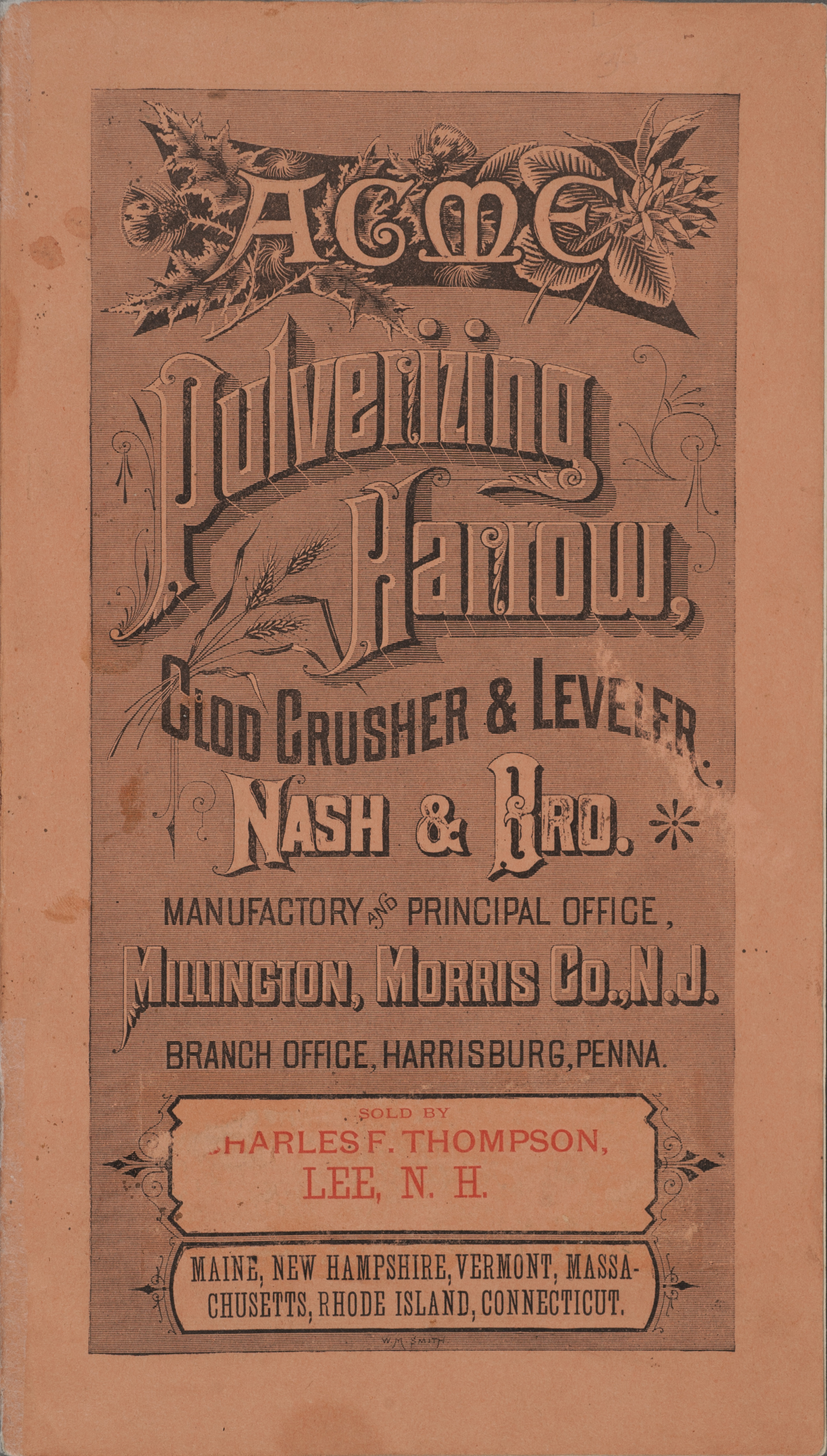 - Illustrated catalog describing the agricultural implements offered by Nash and Brother Manufactory.