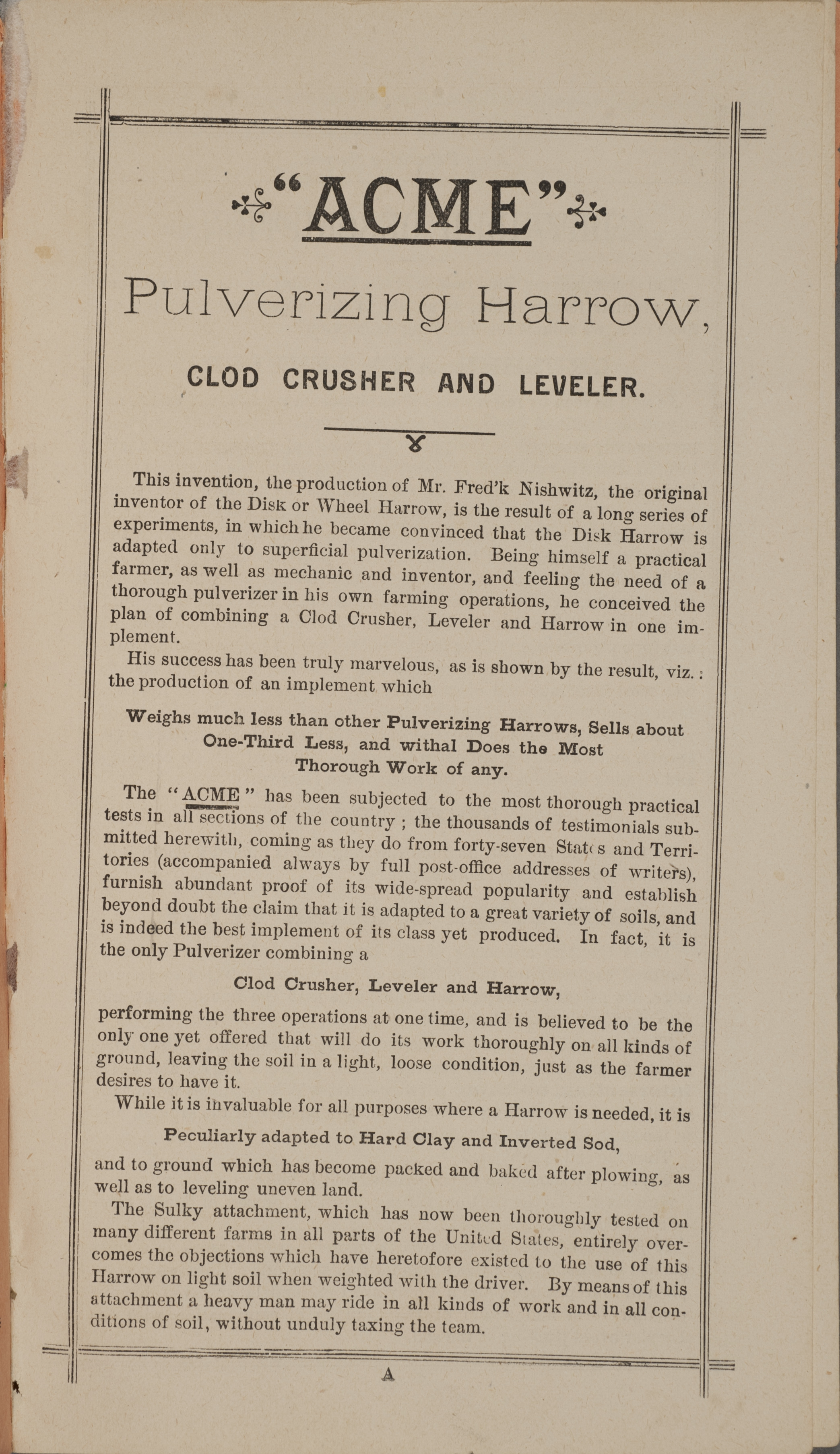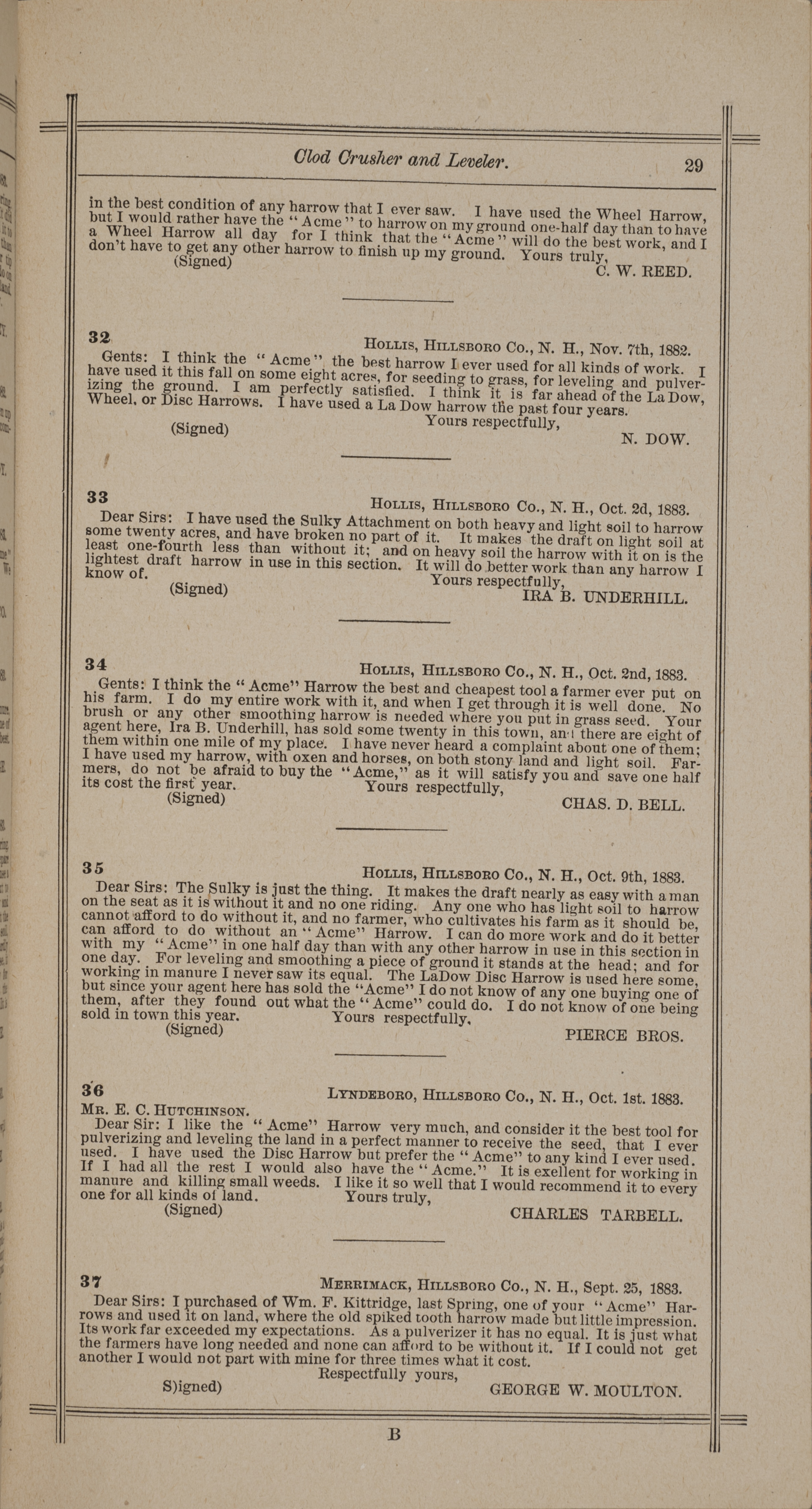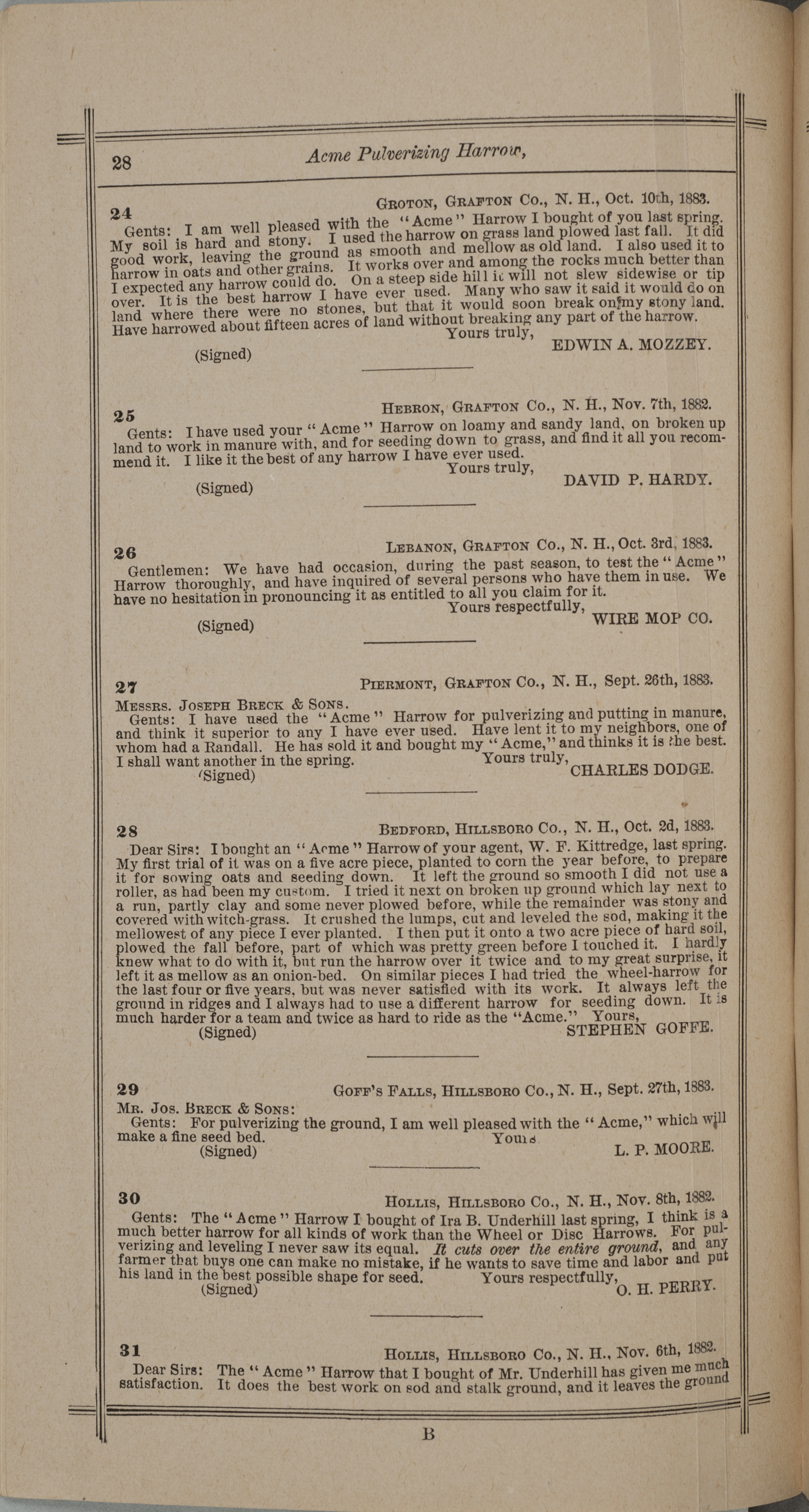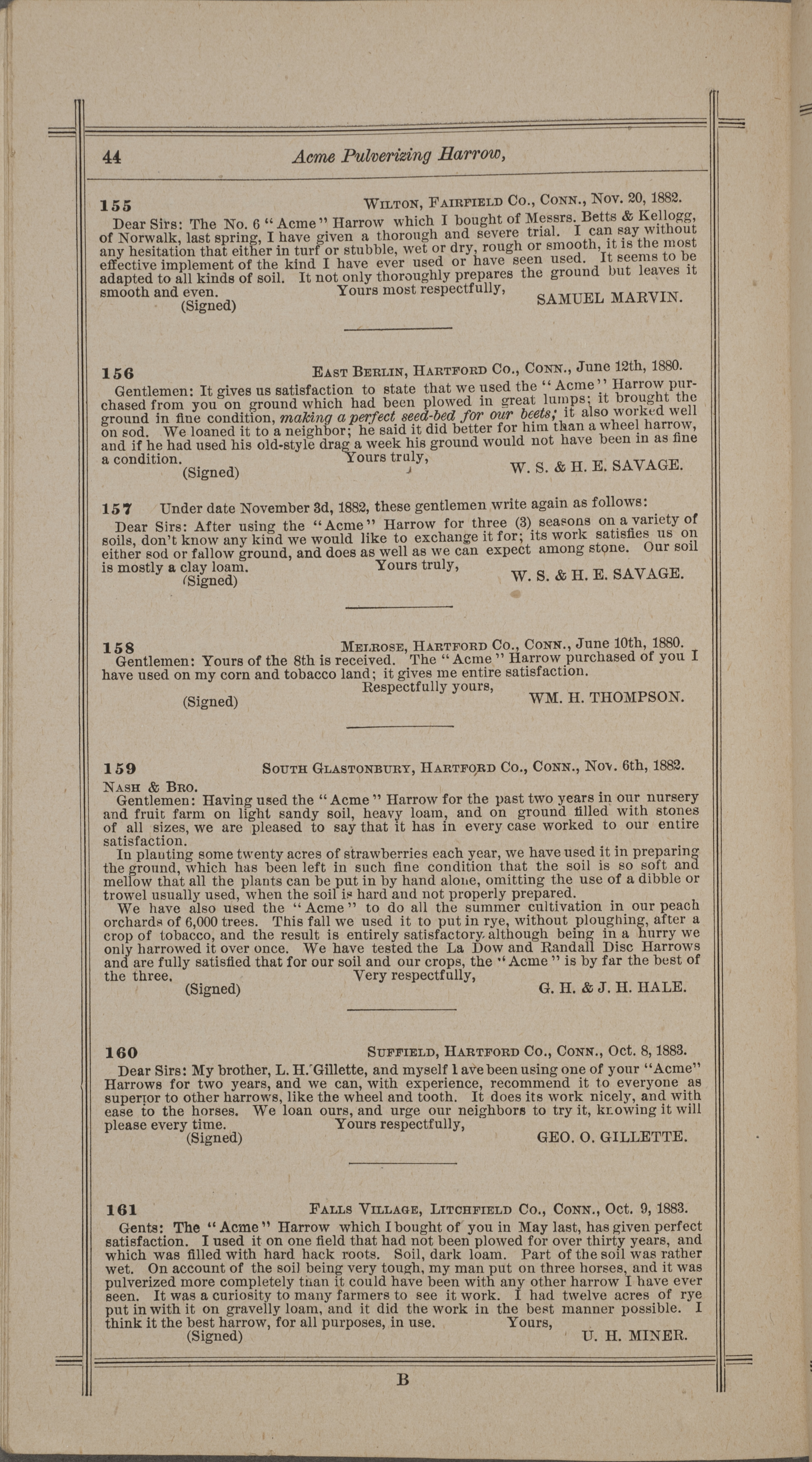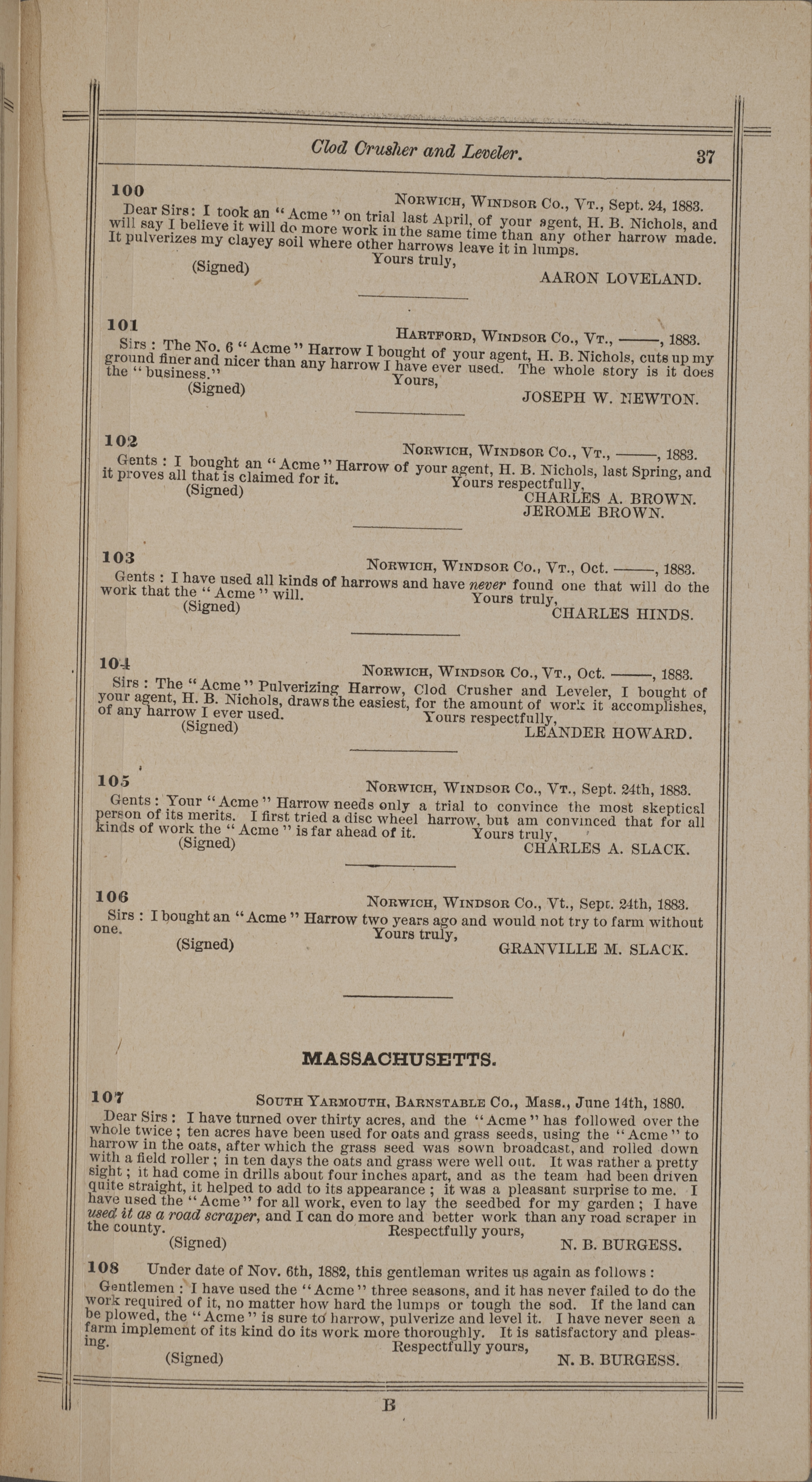 - "Nash and Brother Manufactory Acme catalog", Agricultural Machinery Literature Collection, Iowa State University Library Digital Collections