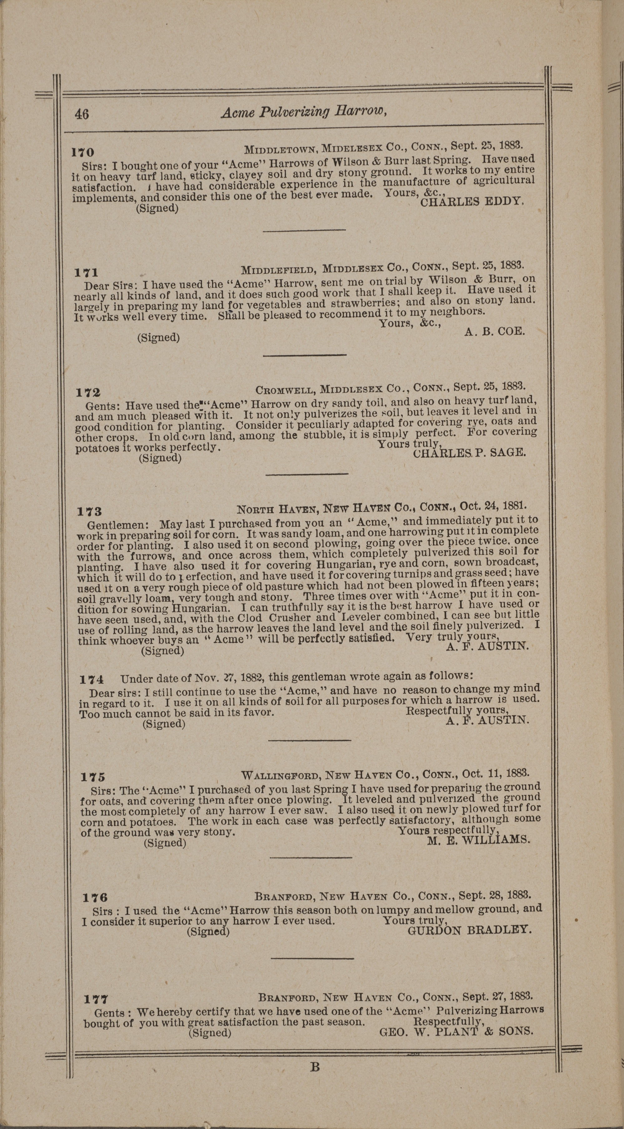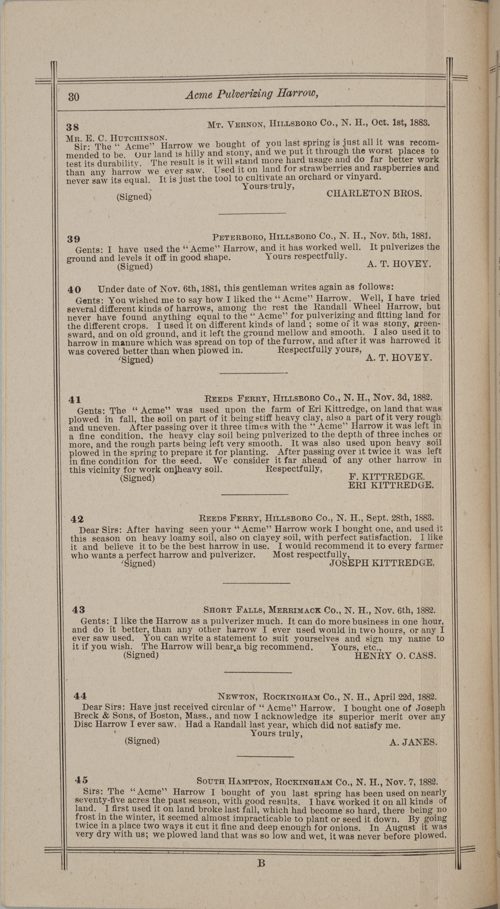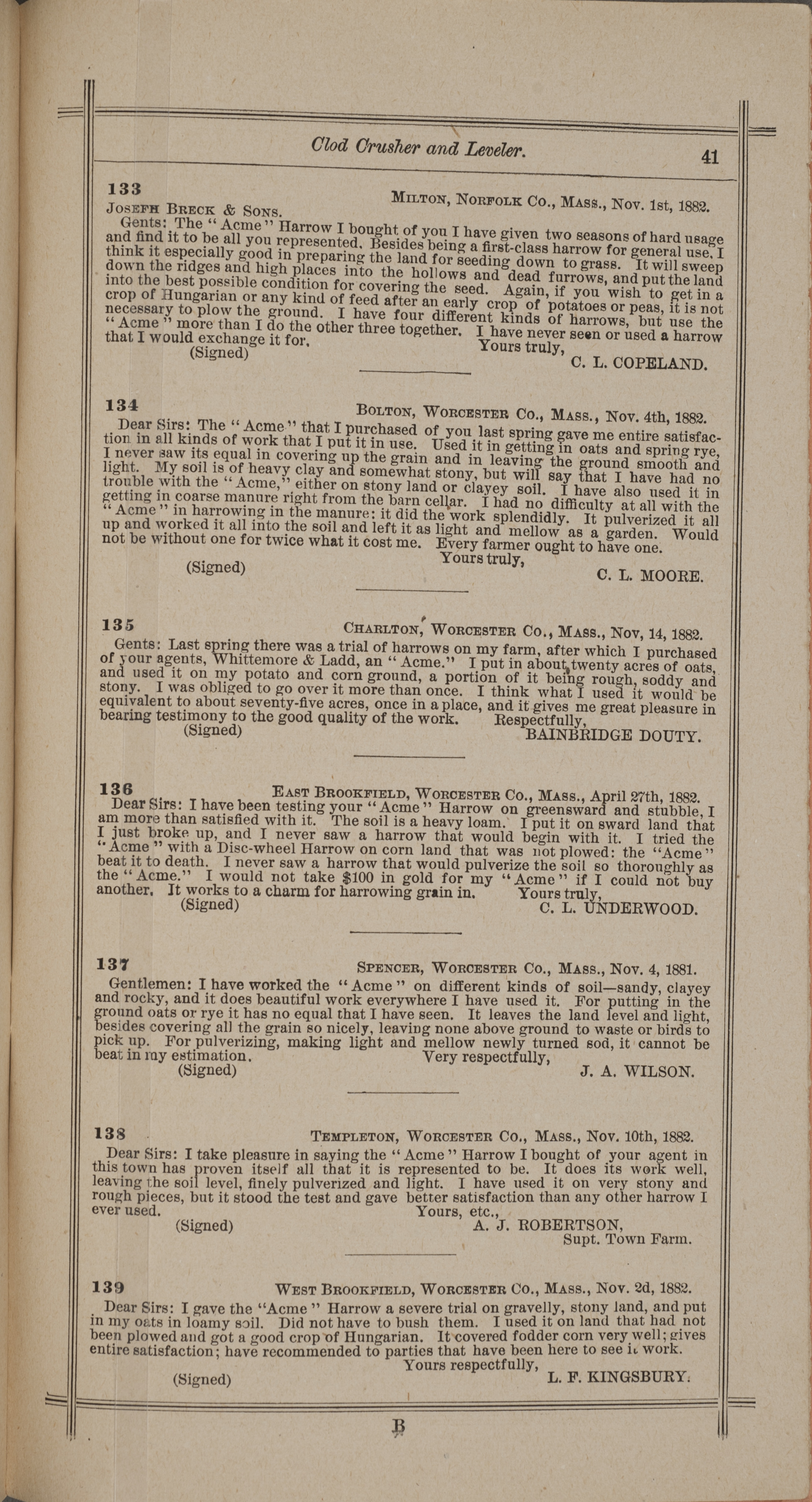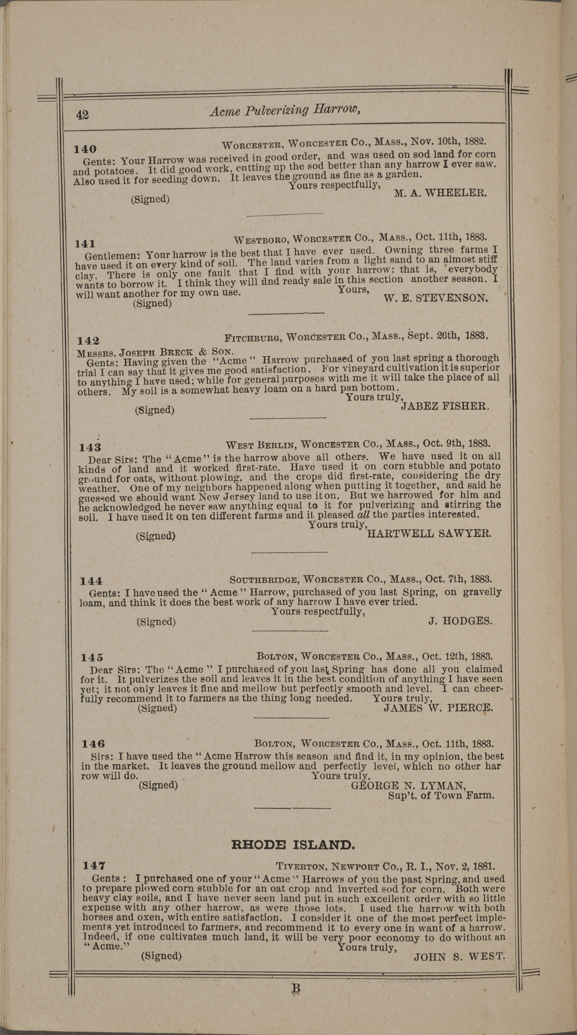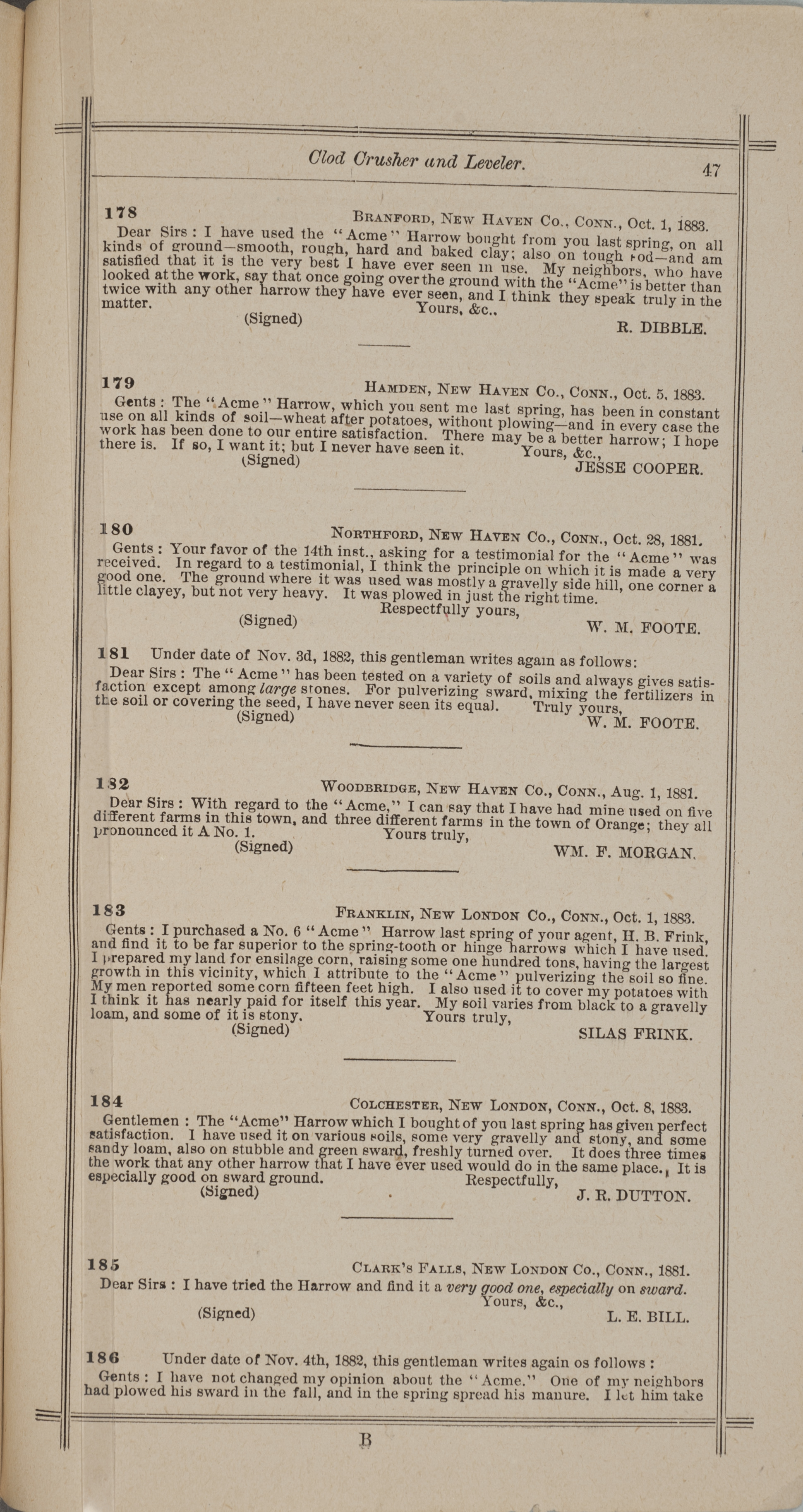 - "Nash and Brother Manufactory Acme catalog", Agricultural Machinery Literature Collection, Iowa State University Library Digital Collections