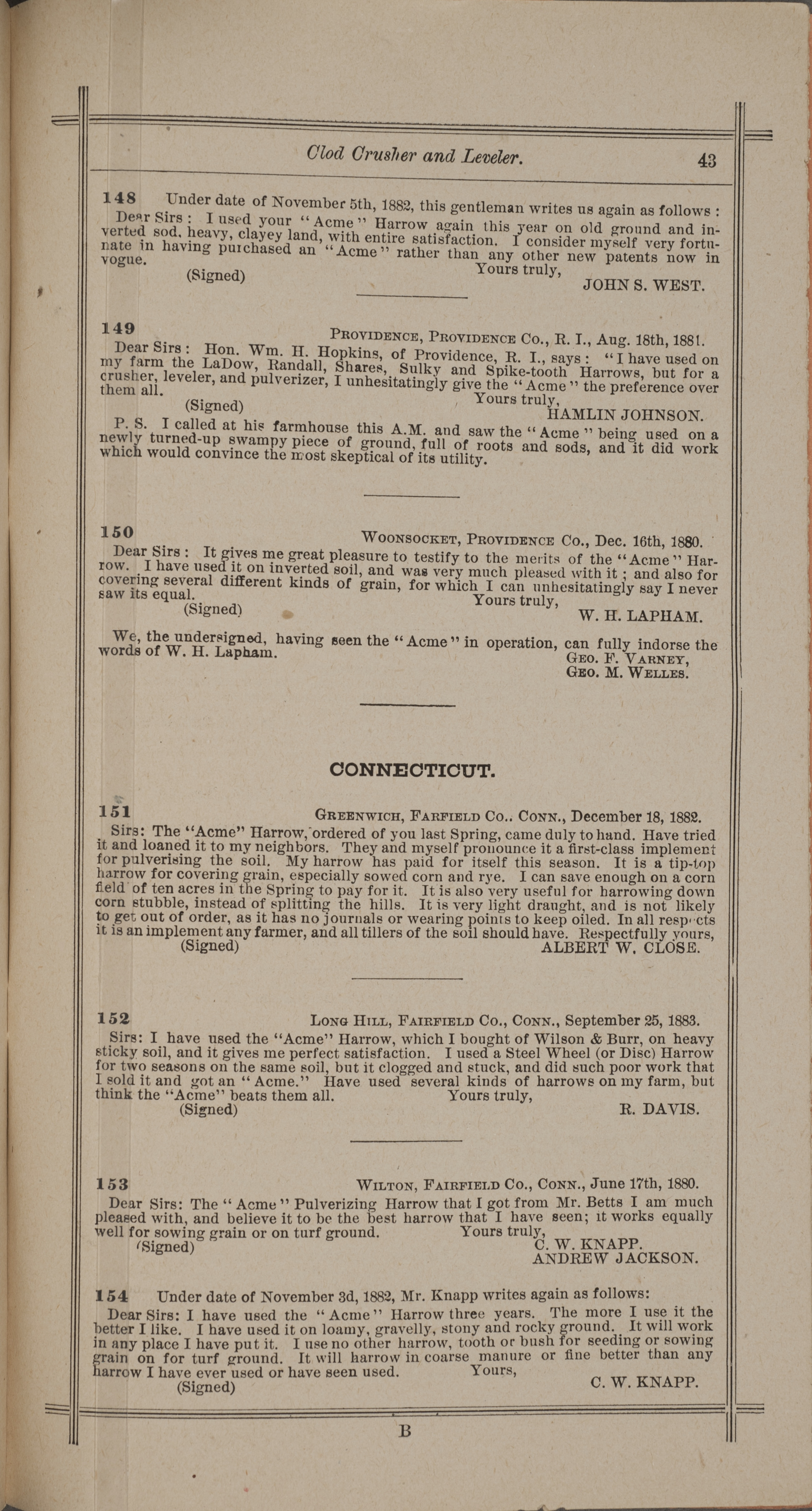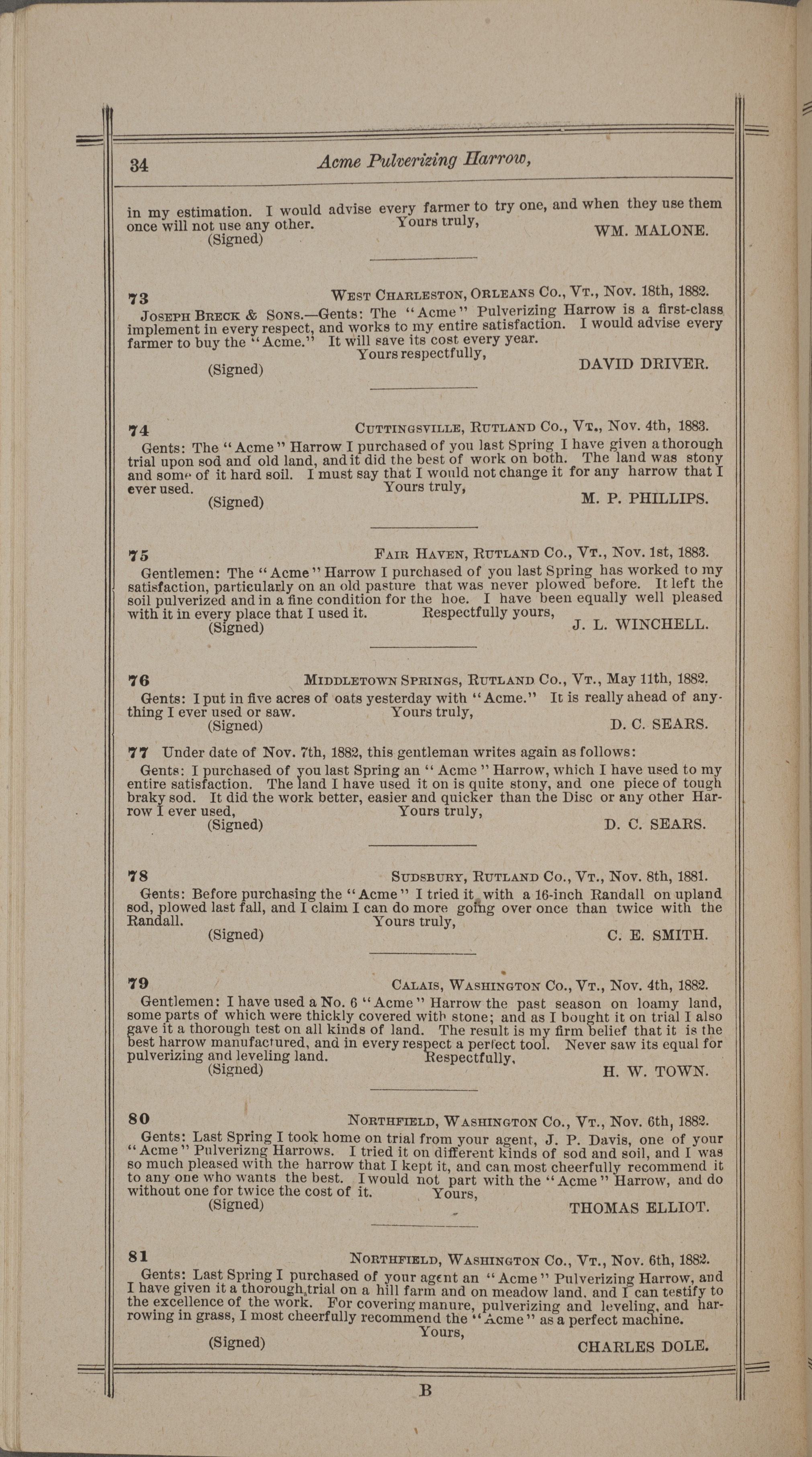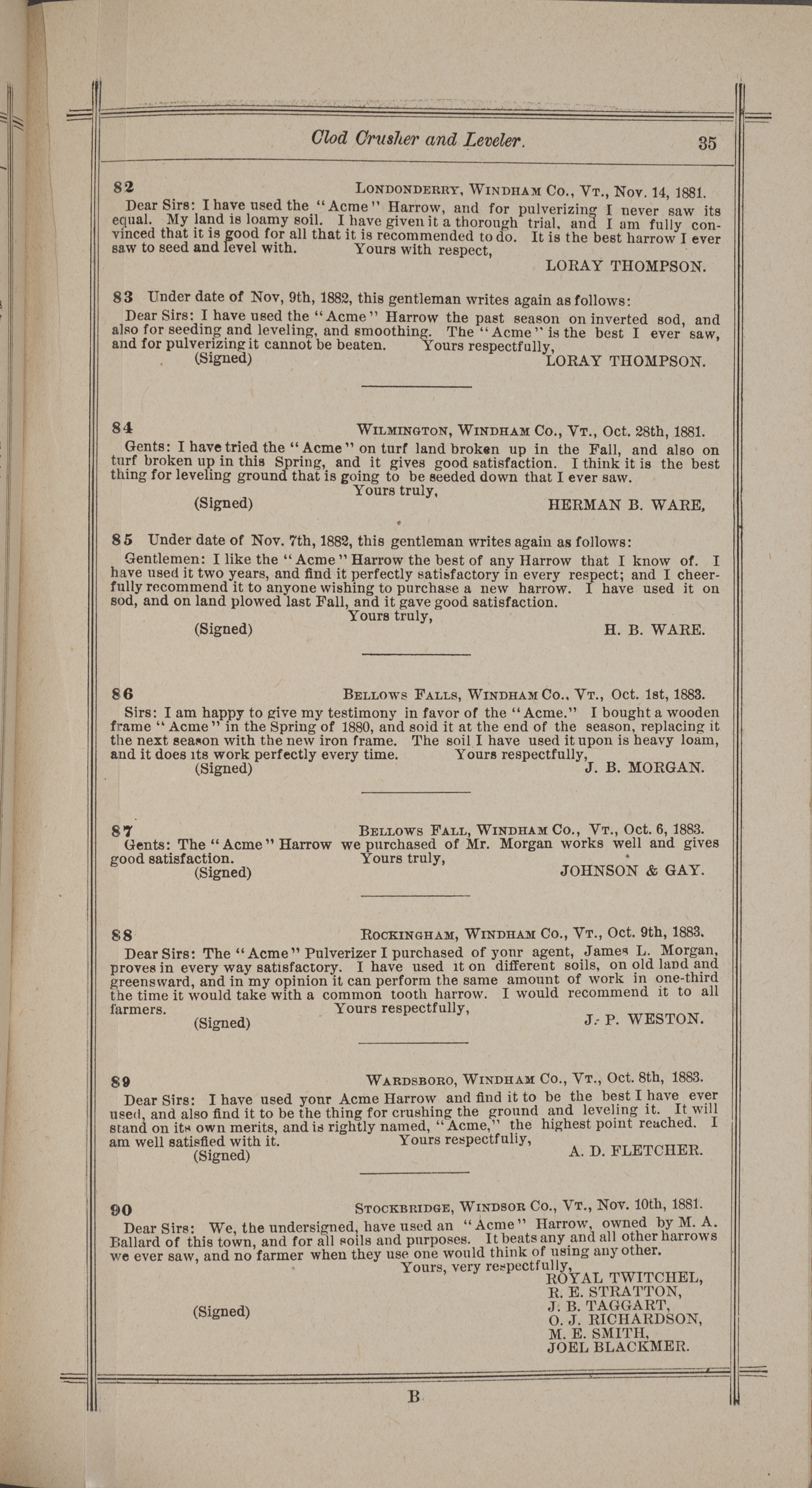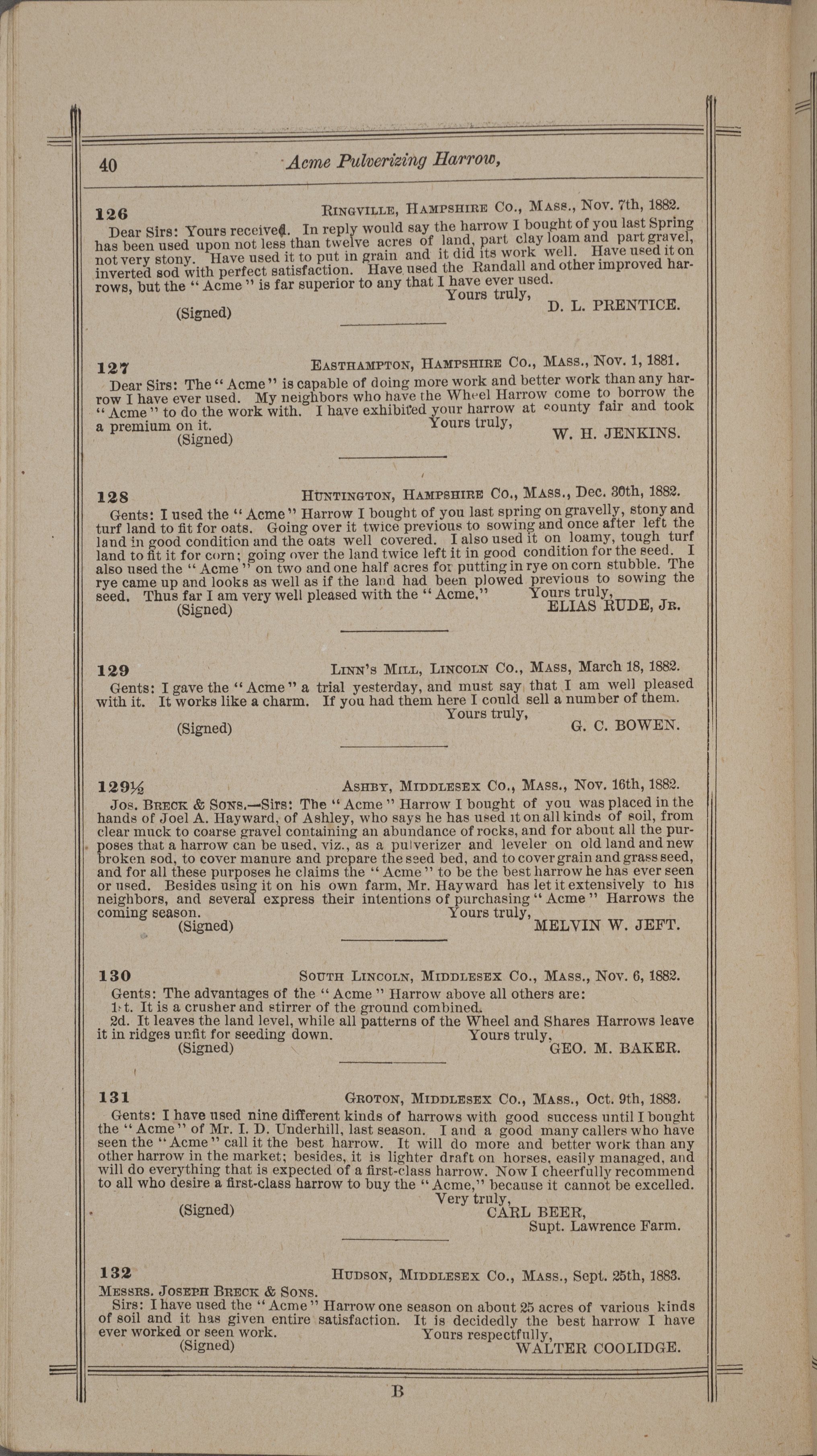 - "Nash and Brother Manufactory Acme catalog", Agricultural Machinery Literature Collection, Iowa State University Library Digital Collections
