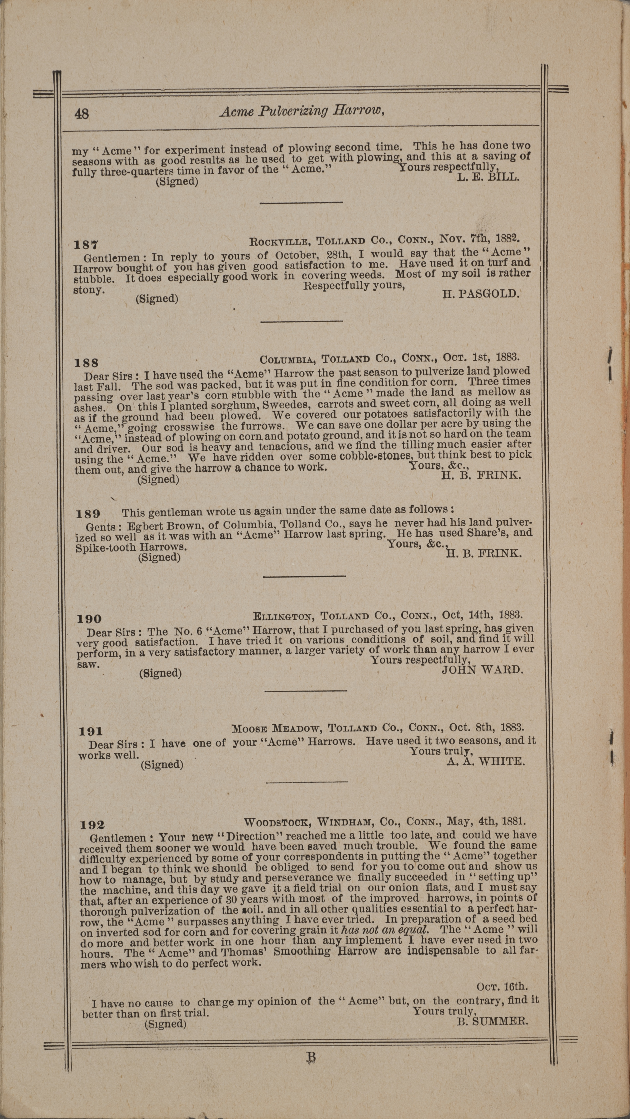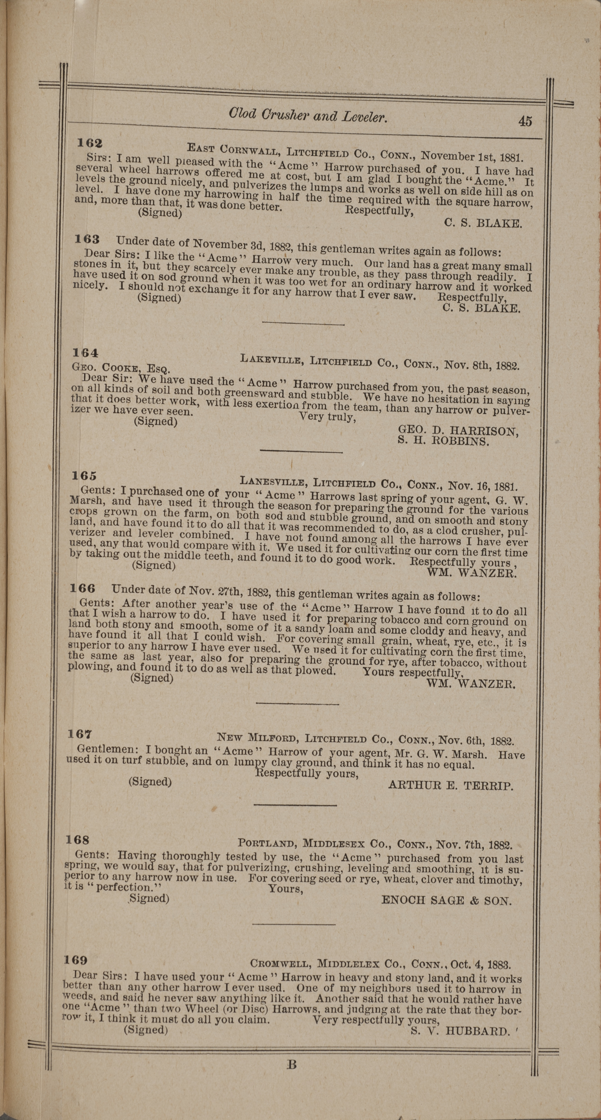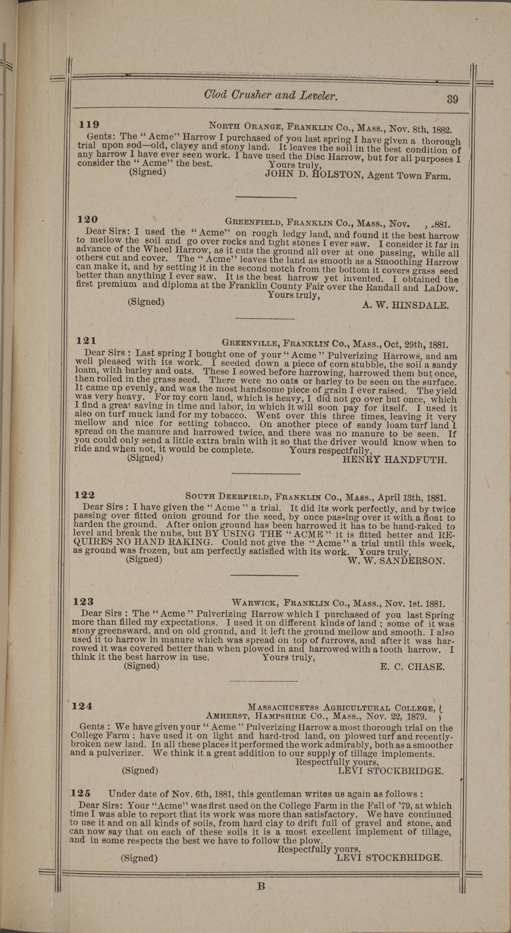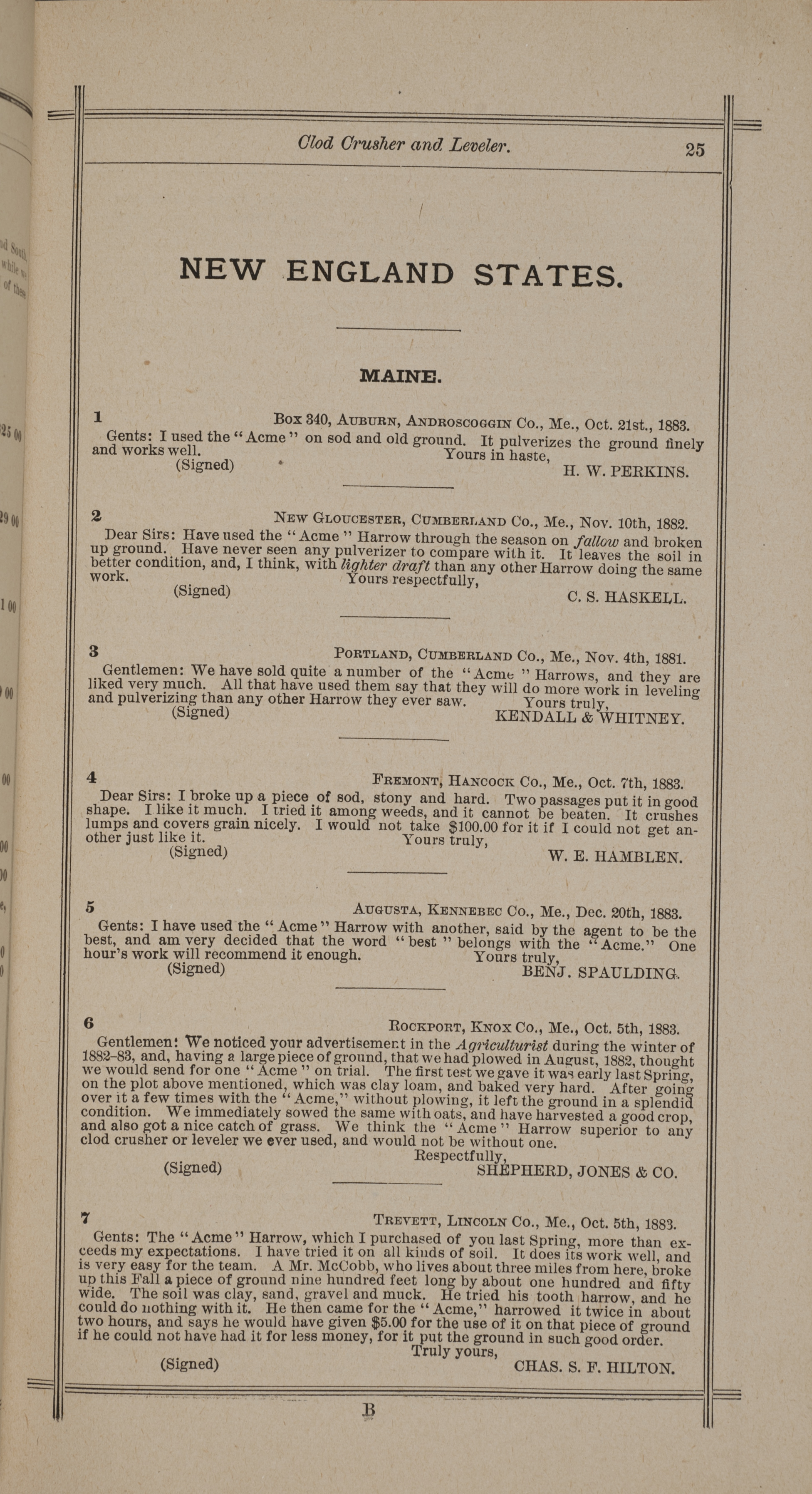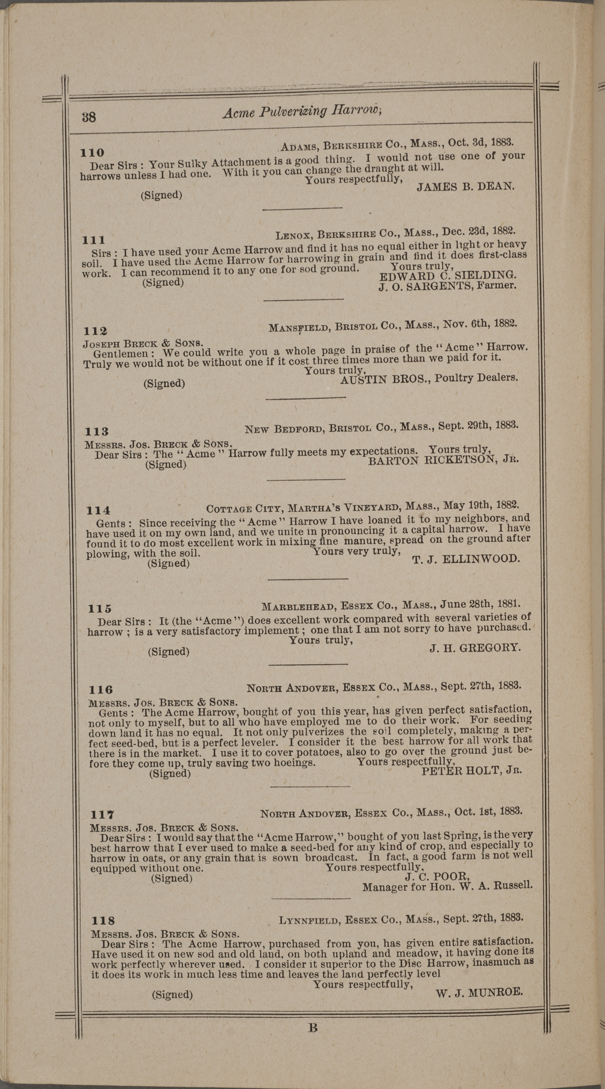 - "Nash and Brother Manufactory Acme catalog", Agricultural Machinery Literature Collection, Iowa State University Library Digital Collections