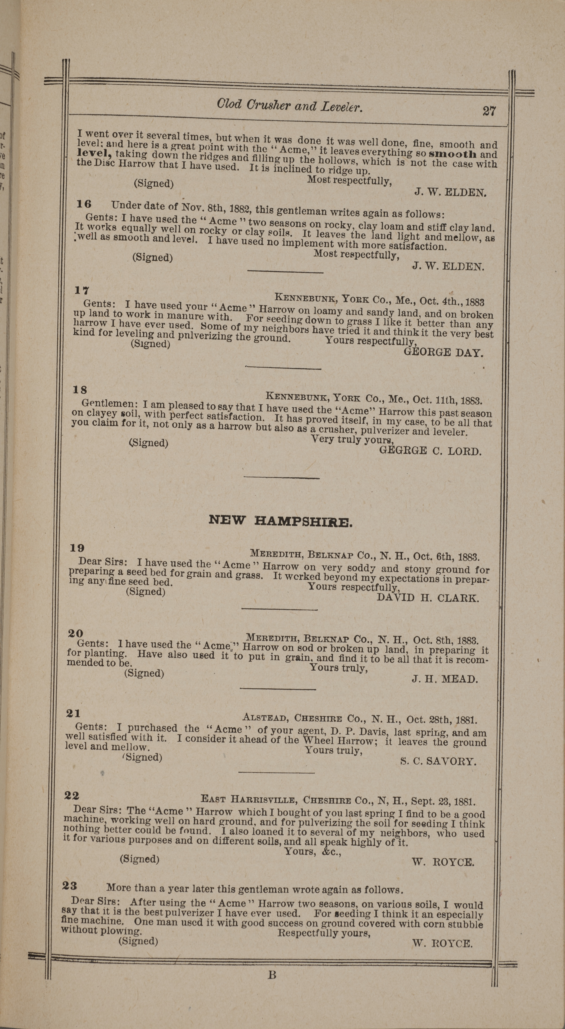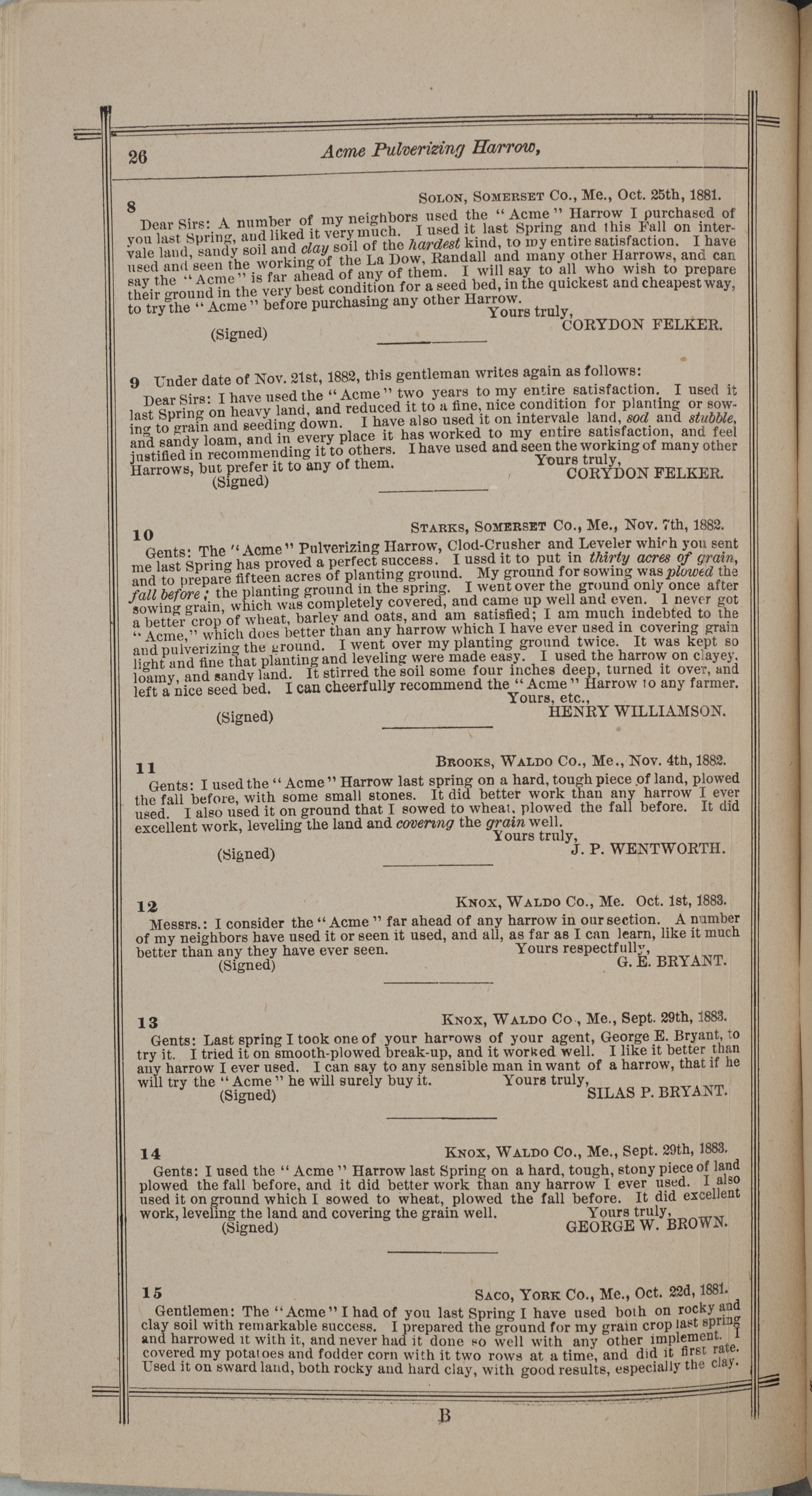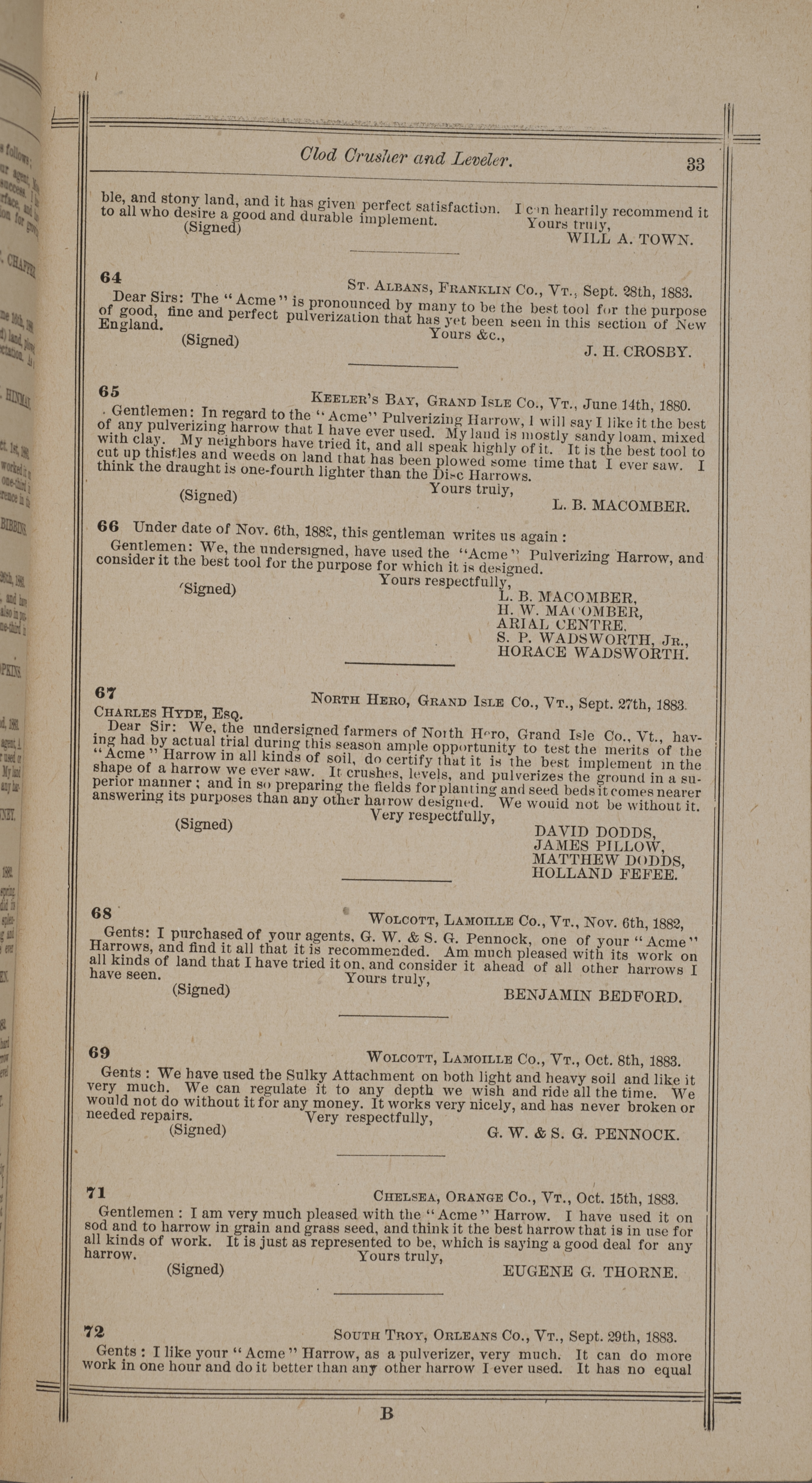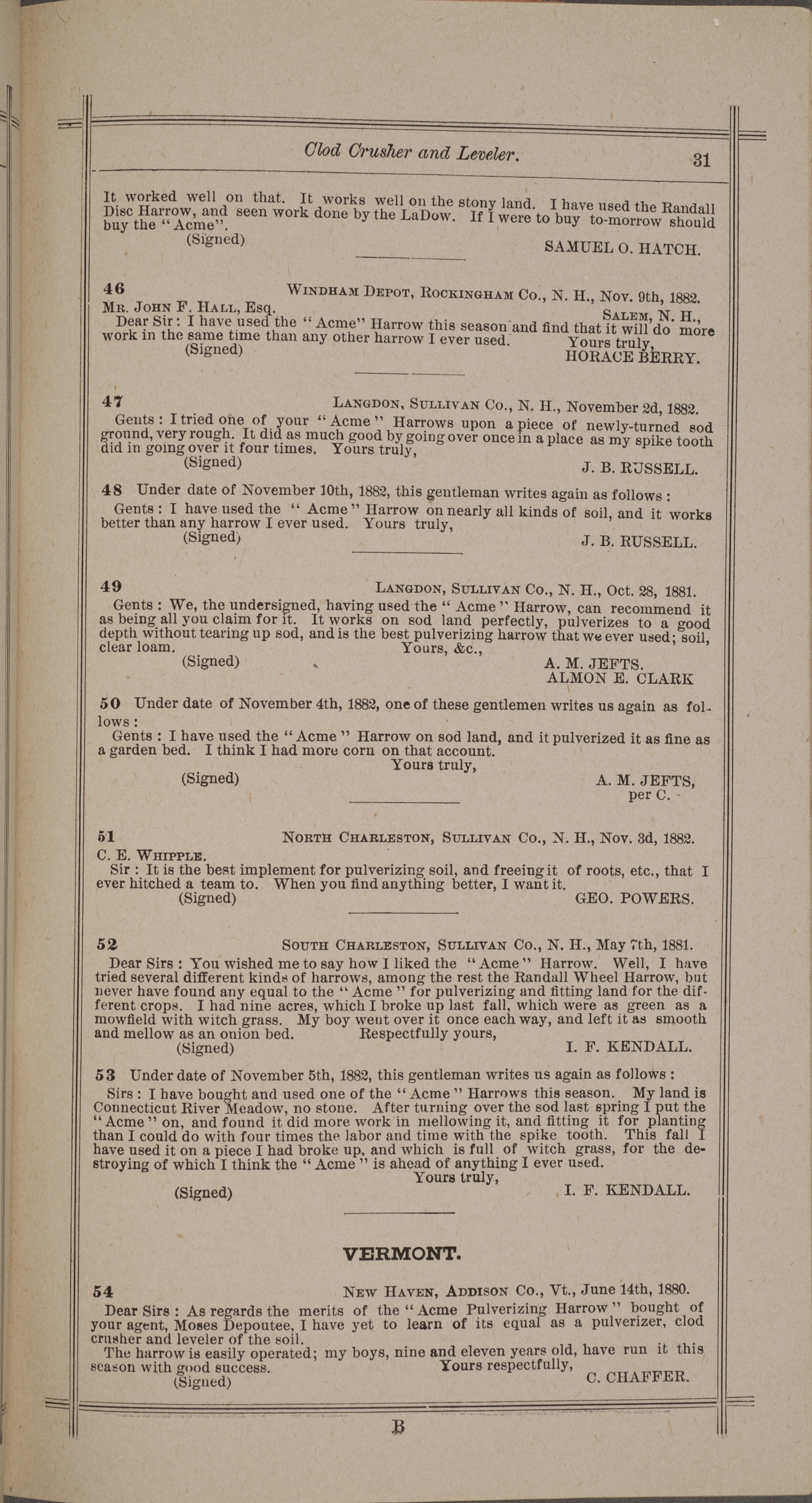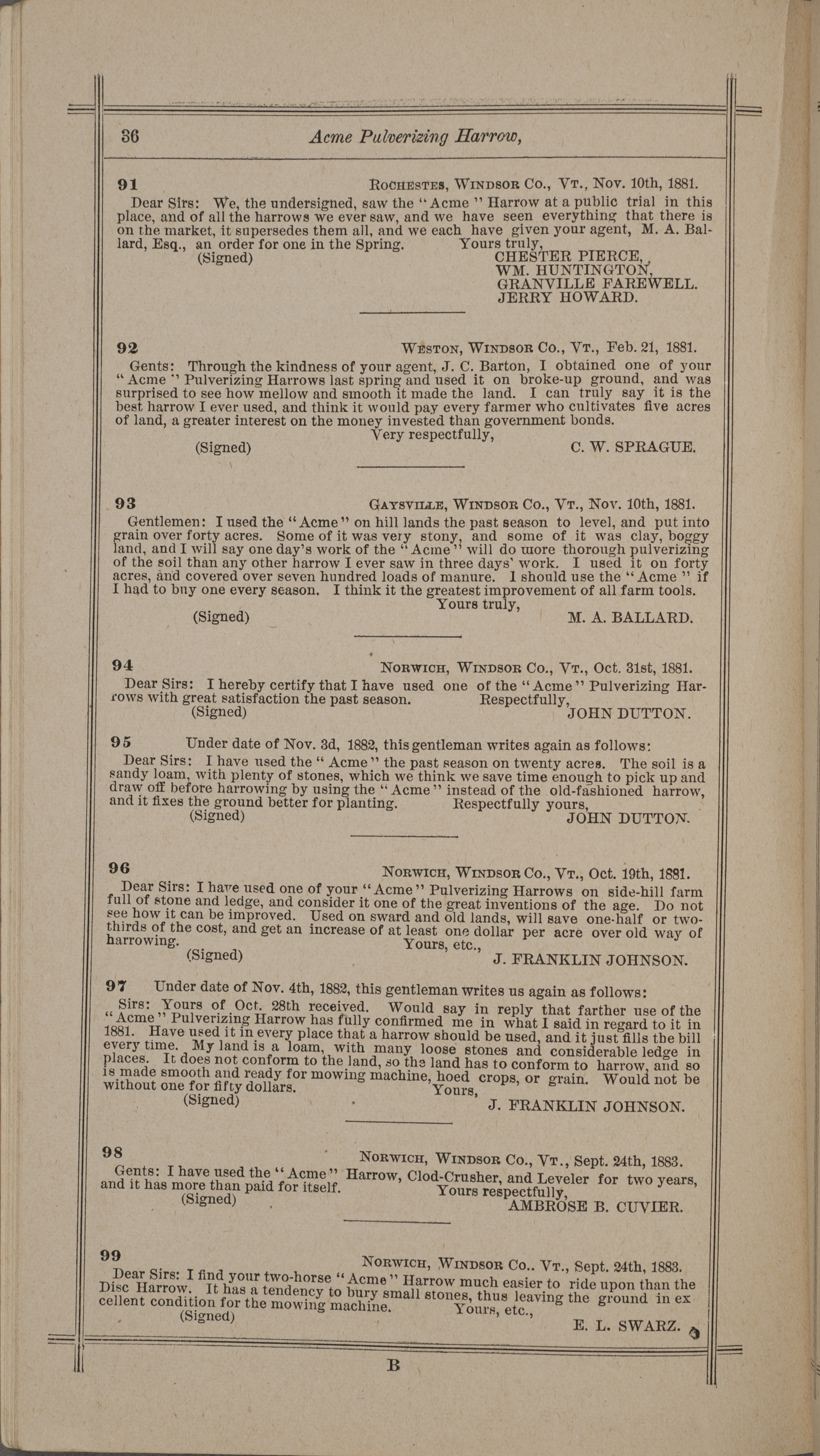 - "Nash and Brother Manufactory Acme catalog", Agricultural Machinery Literature Collection, Iowa State University Library Digital Collections