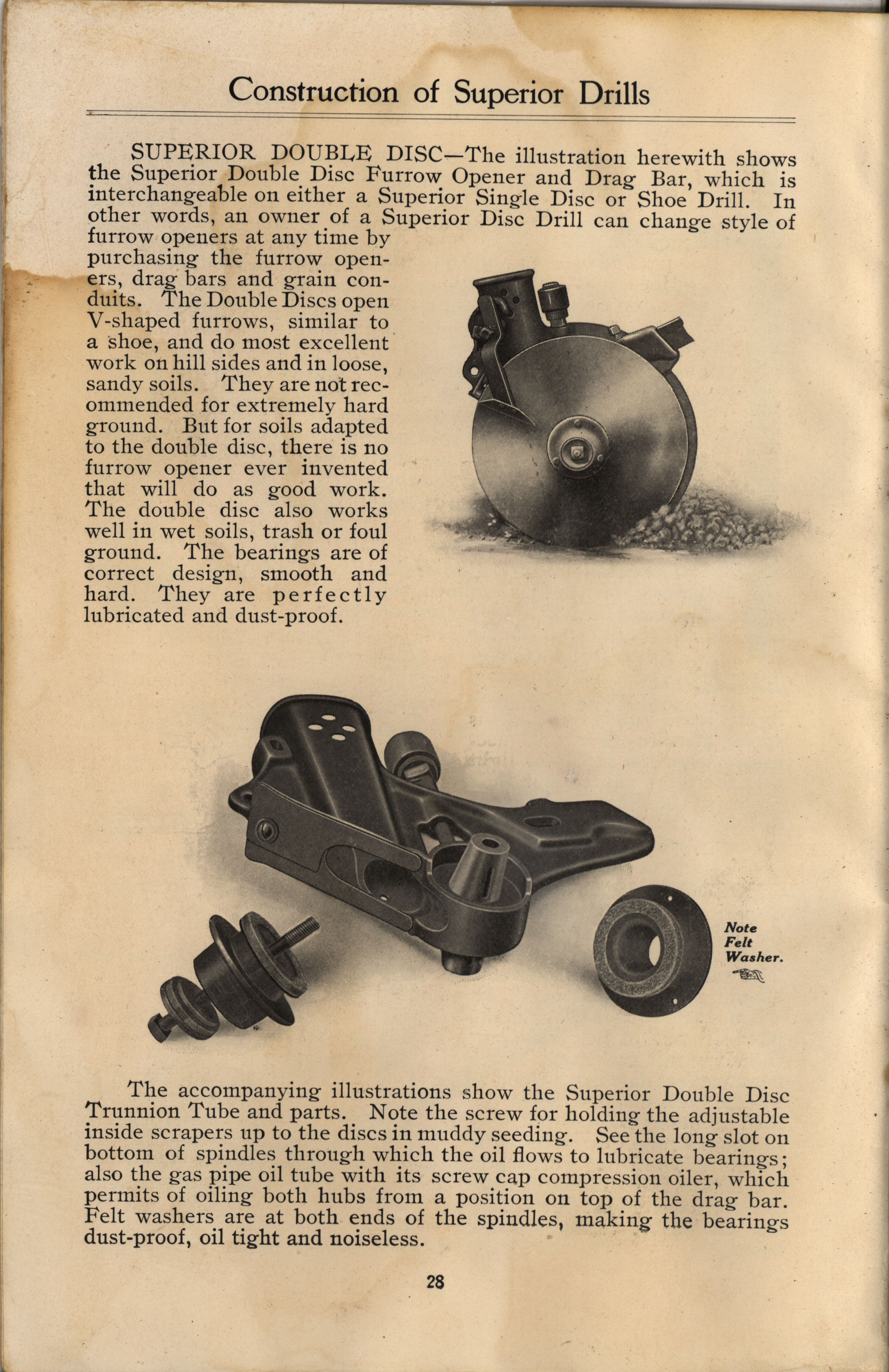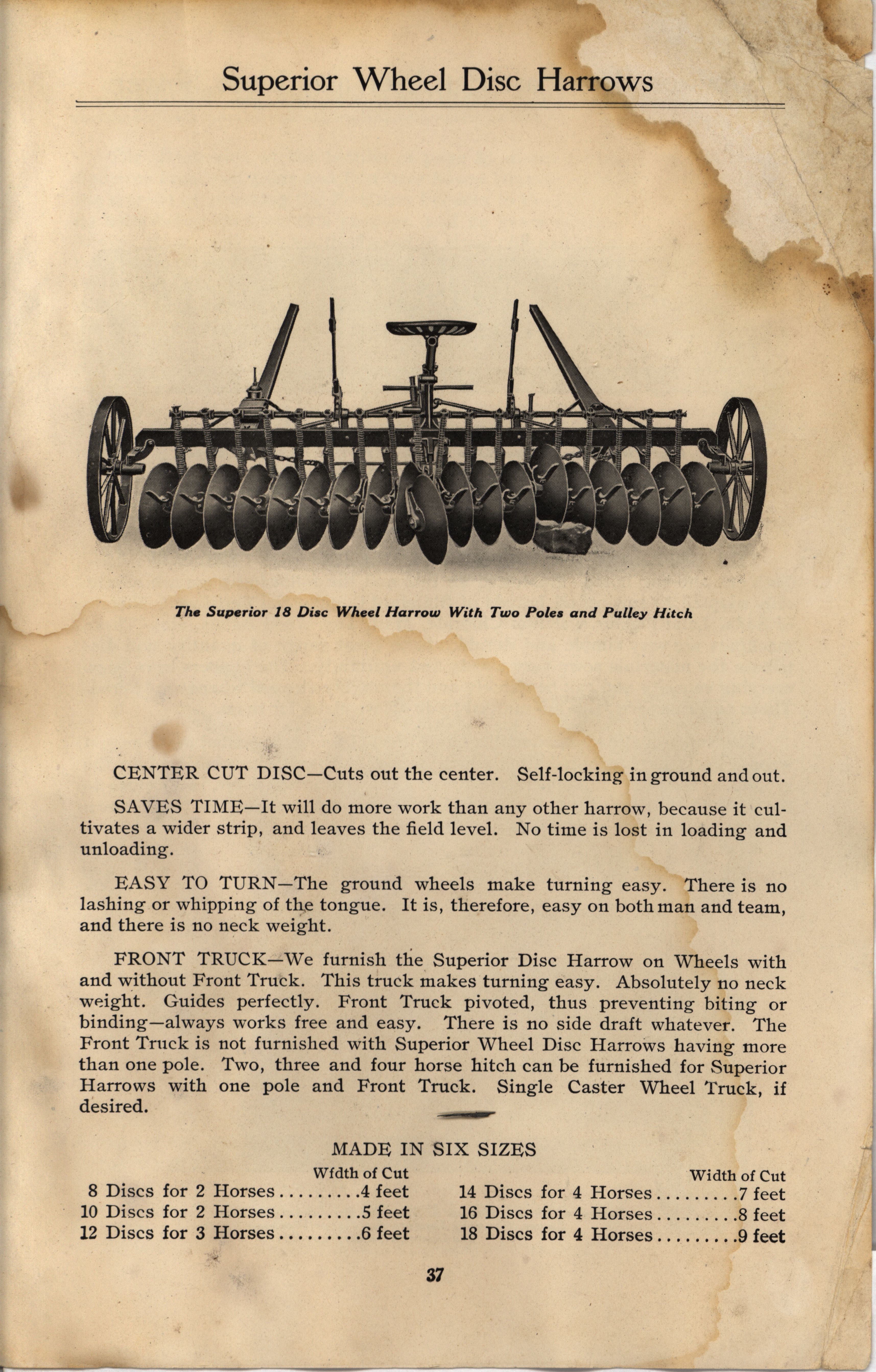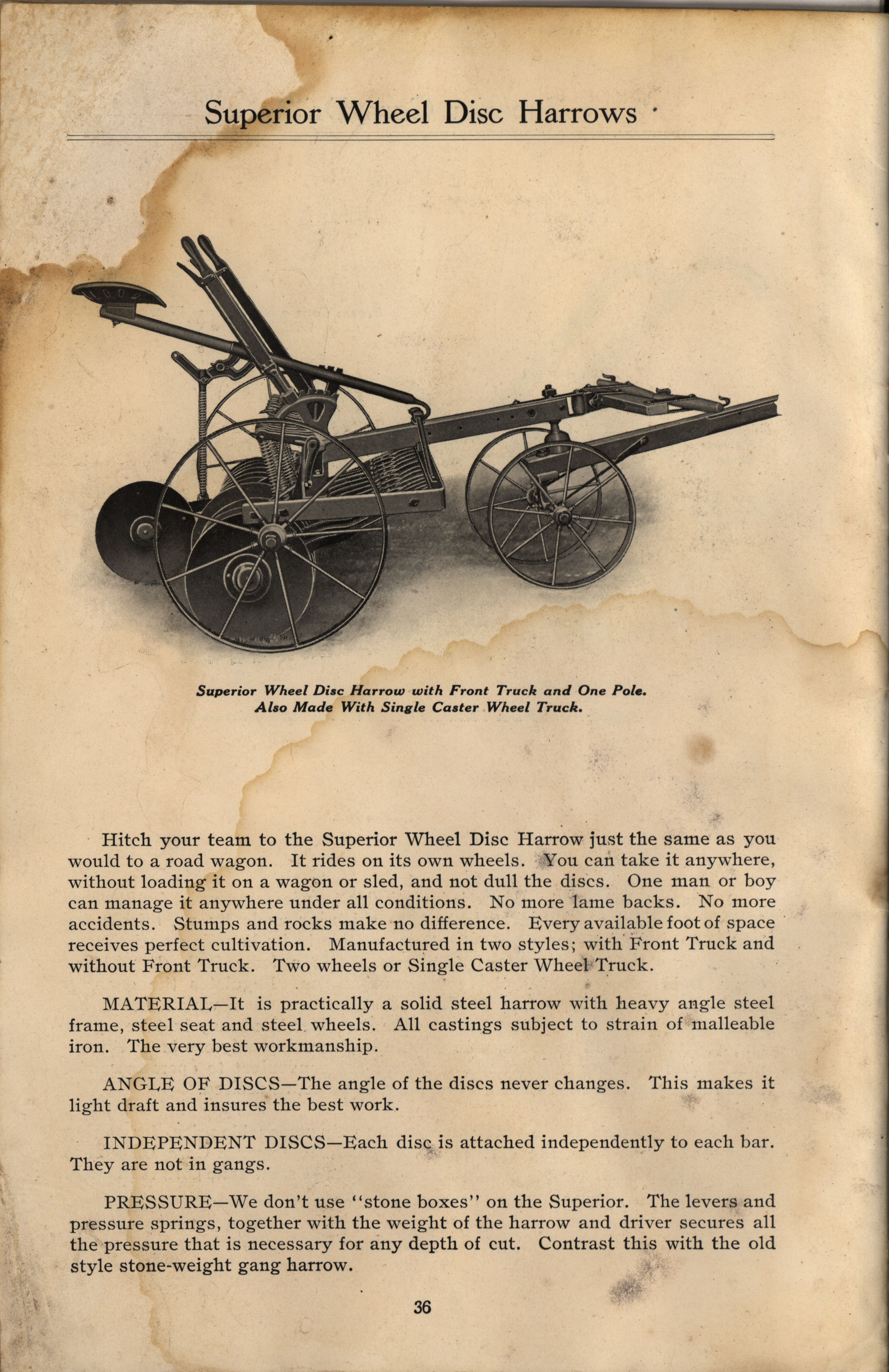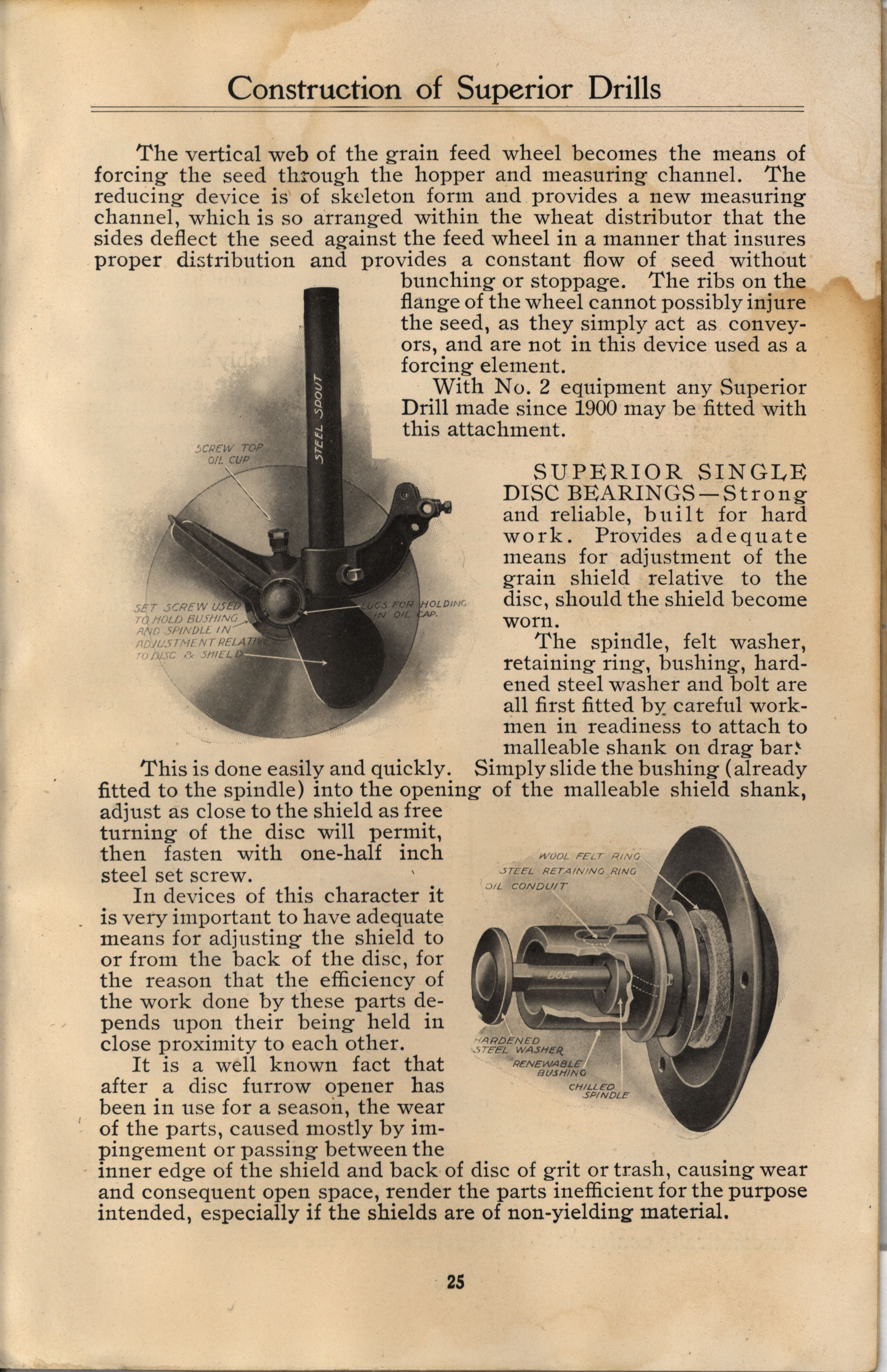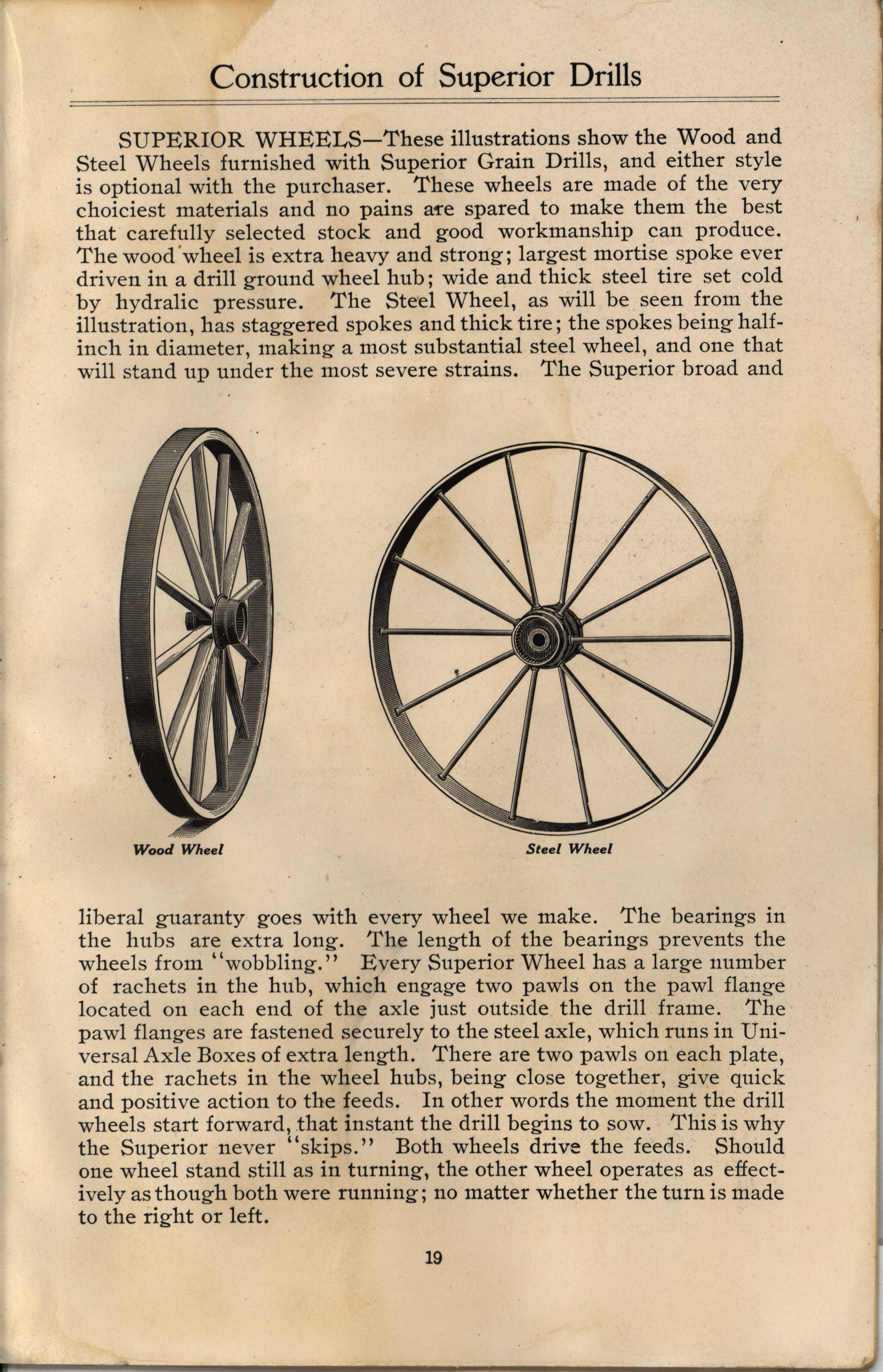 - Catalog from 1910 by the American Seeding Machine Company describing the products offered in their Super Grain Drill line including illustrations.