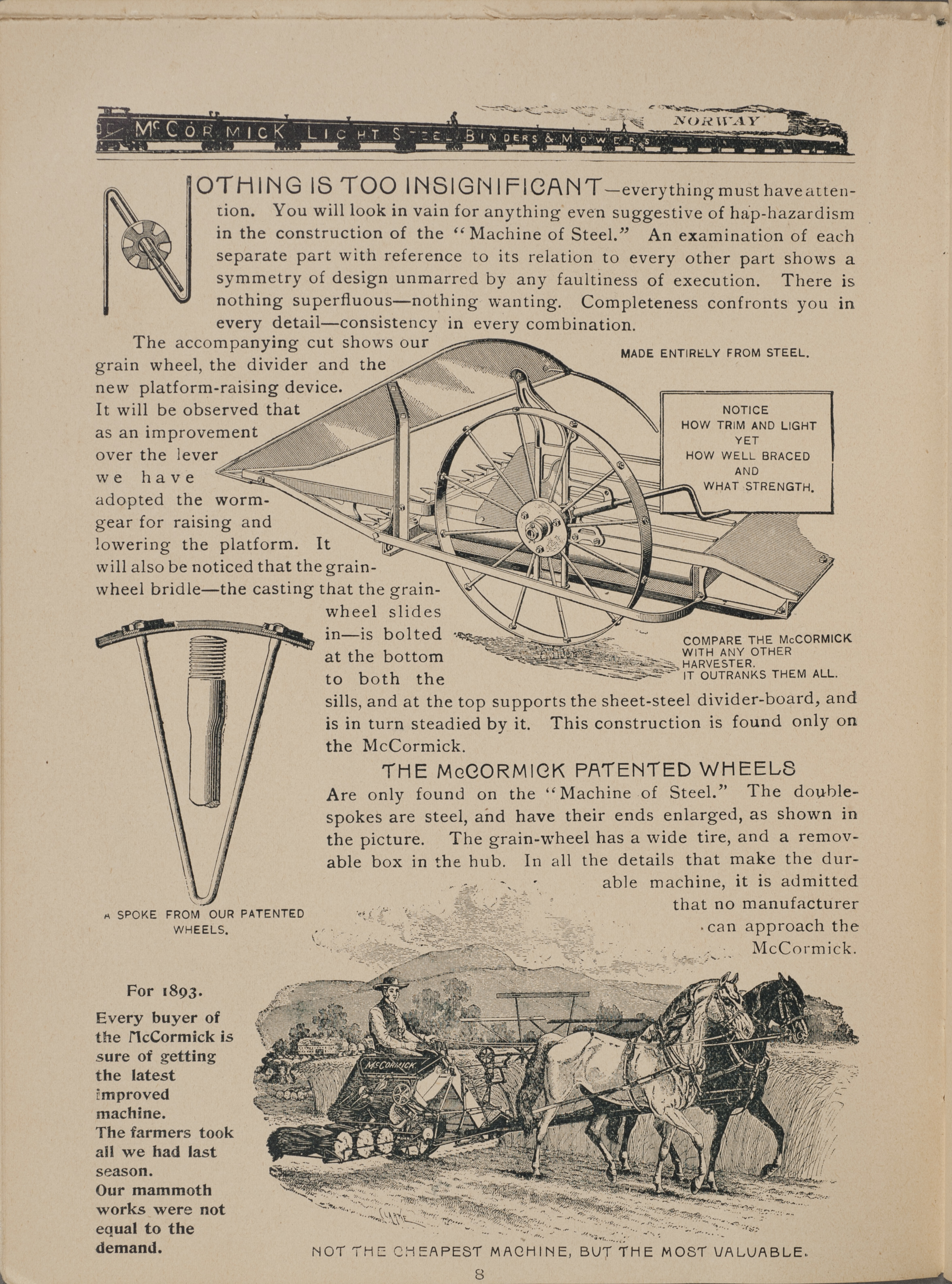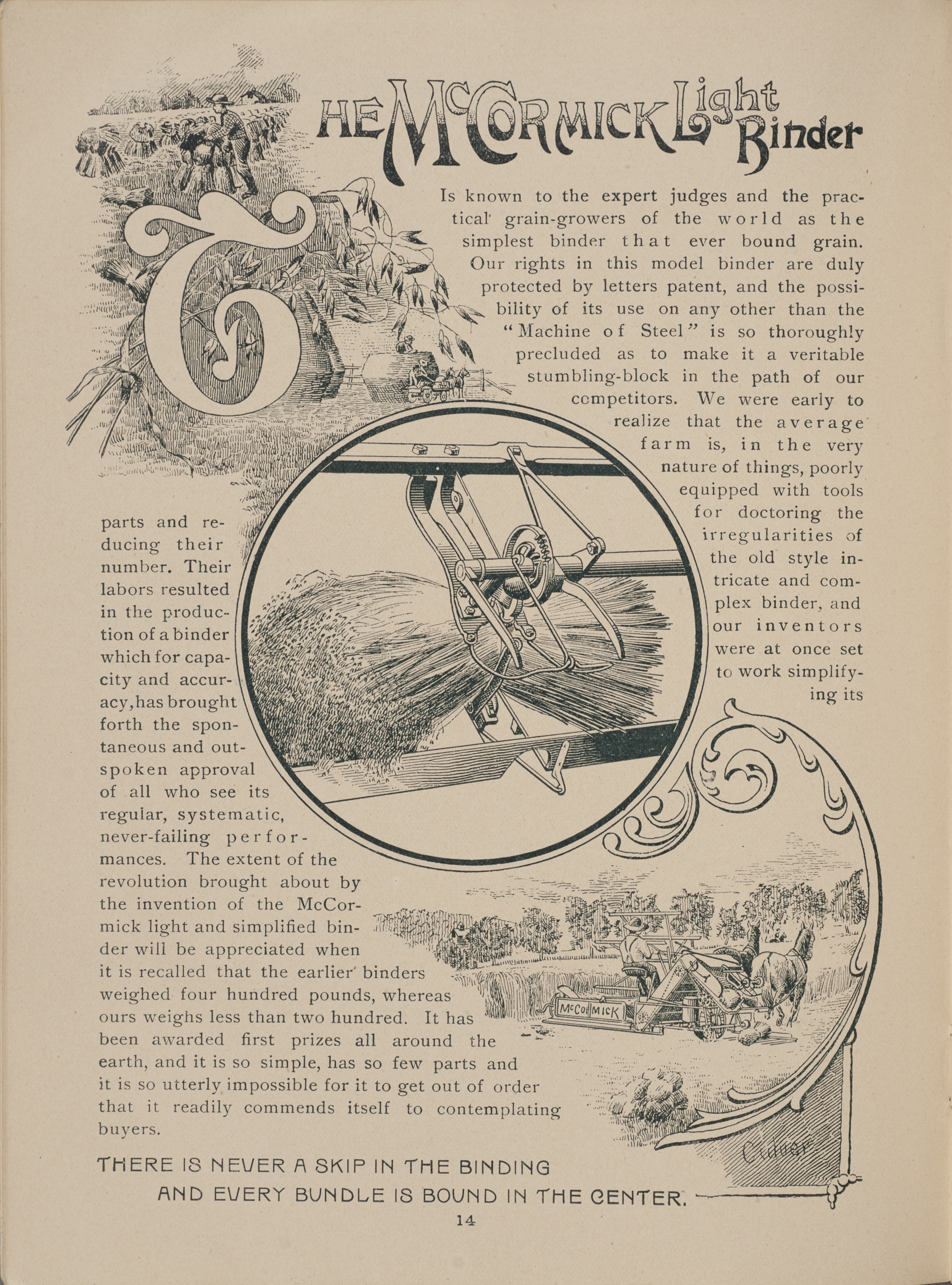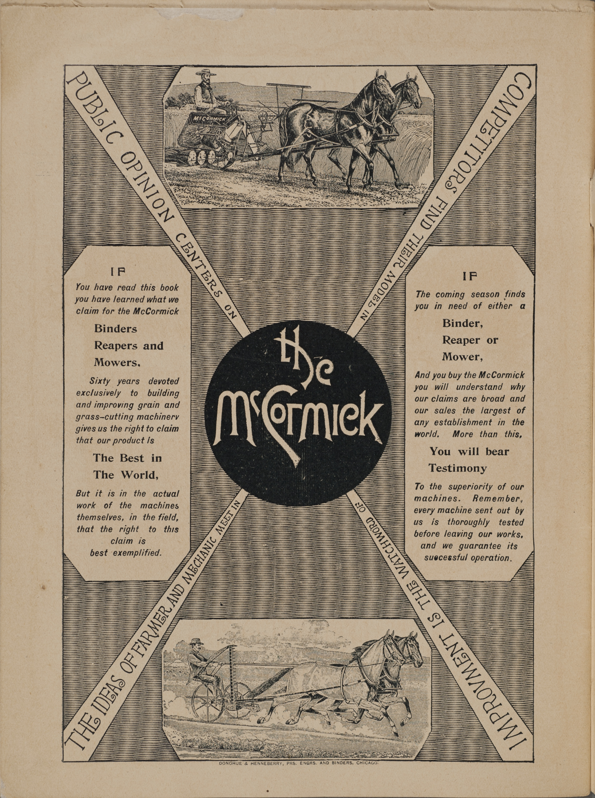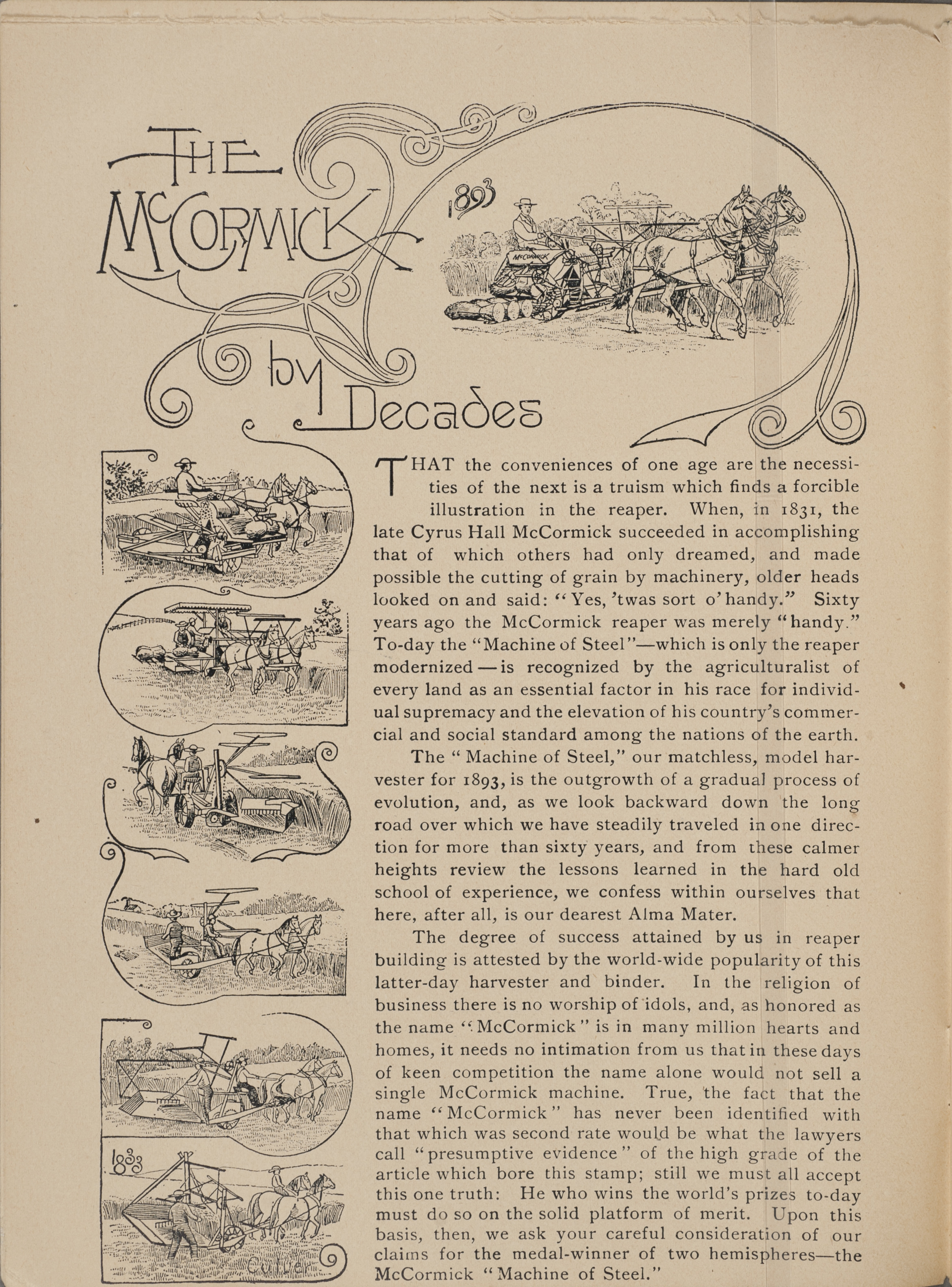 - Illustrated catalog describing the agricultural implements offered by McCormick Harvesting Machine Company in 1893.