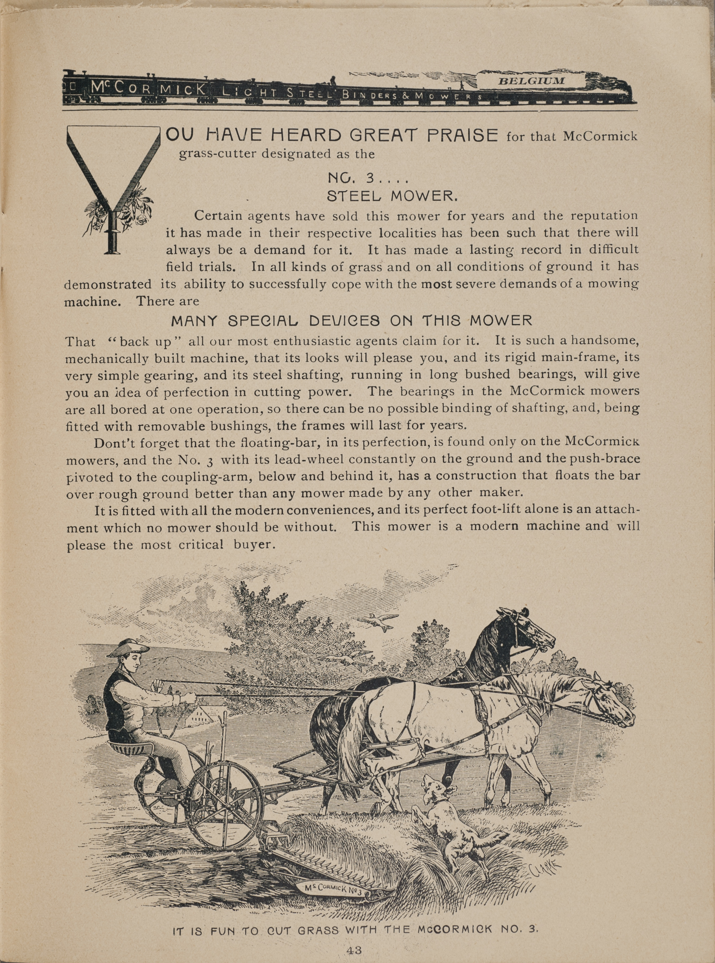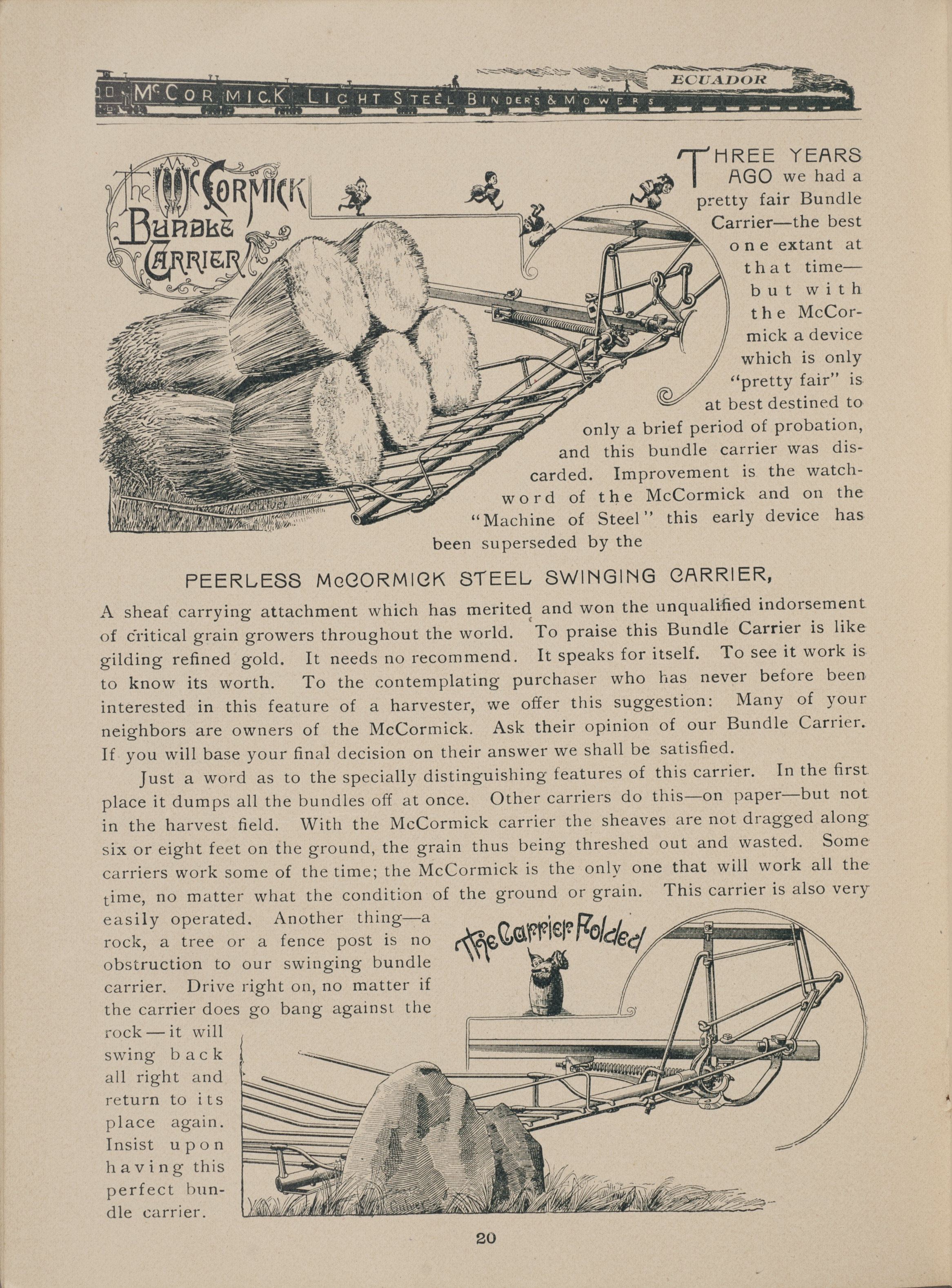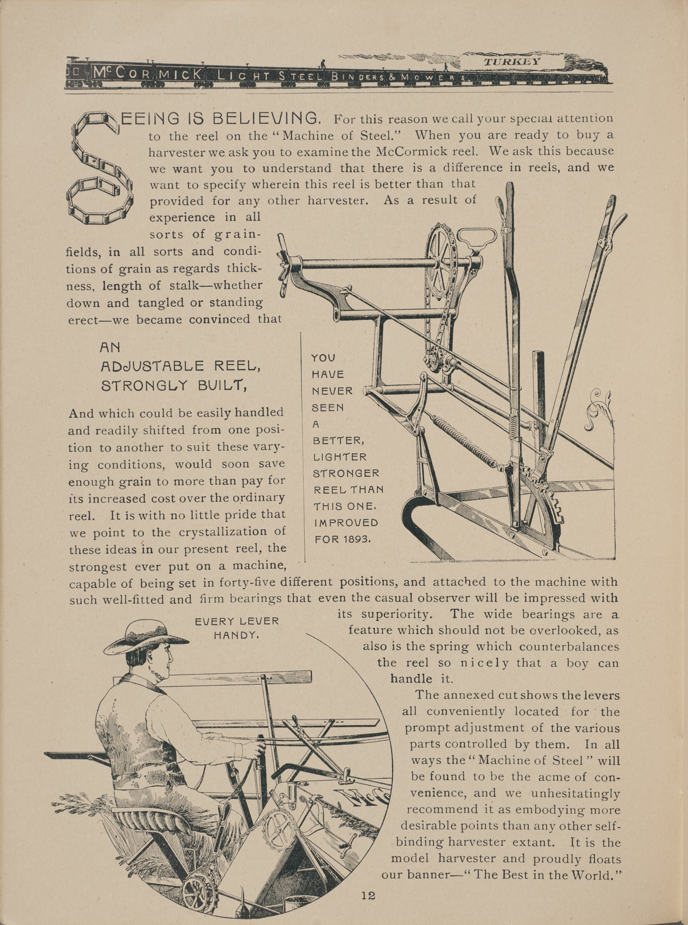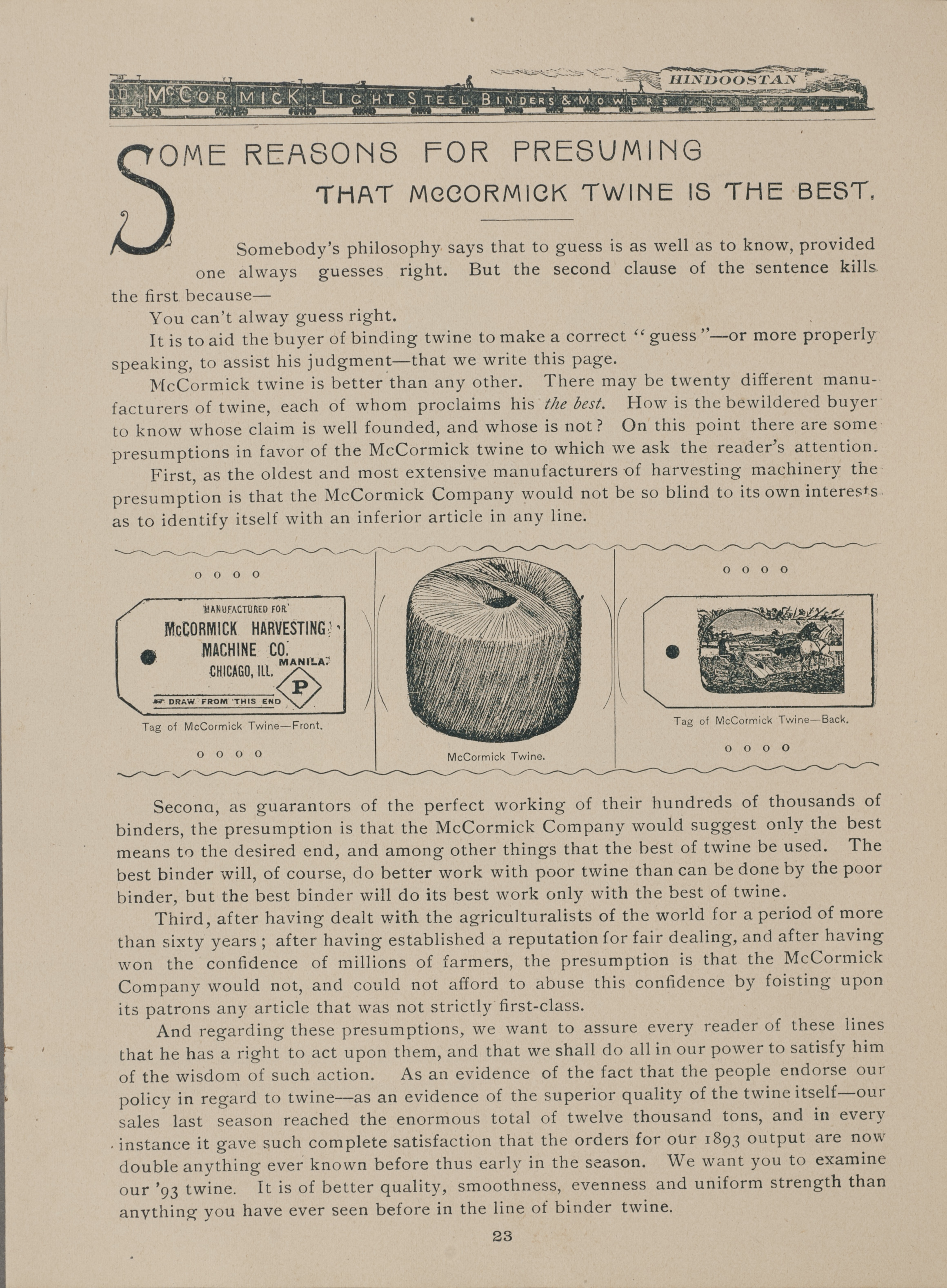 - Illustrated catalog describing the agricultural implements offered by McCormick Harvesting Machine Company in 1893.