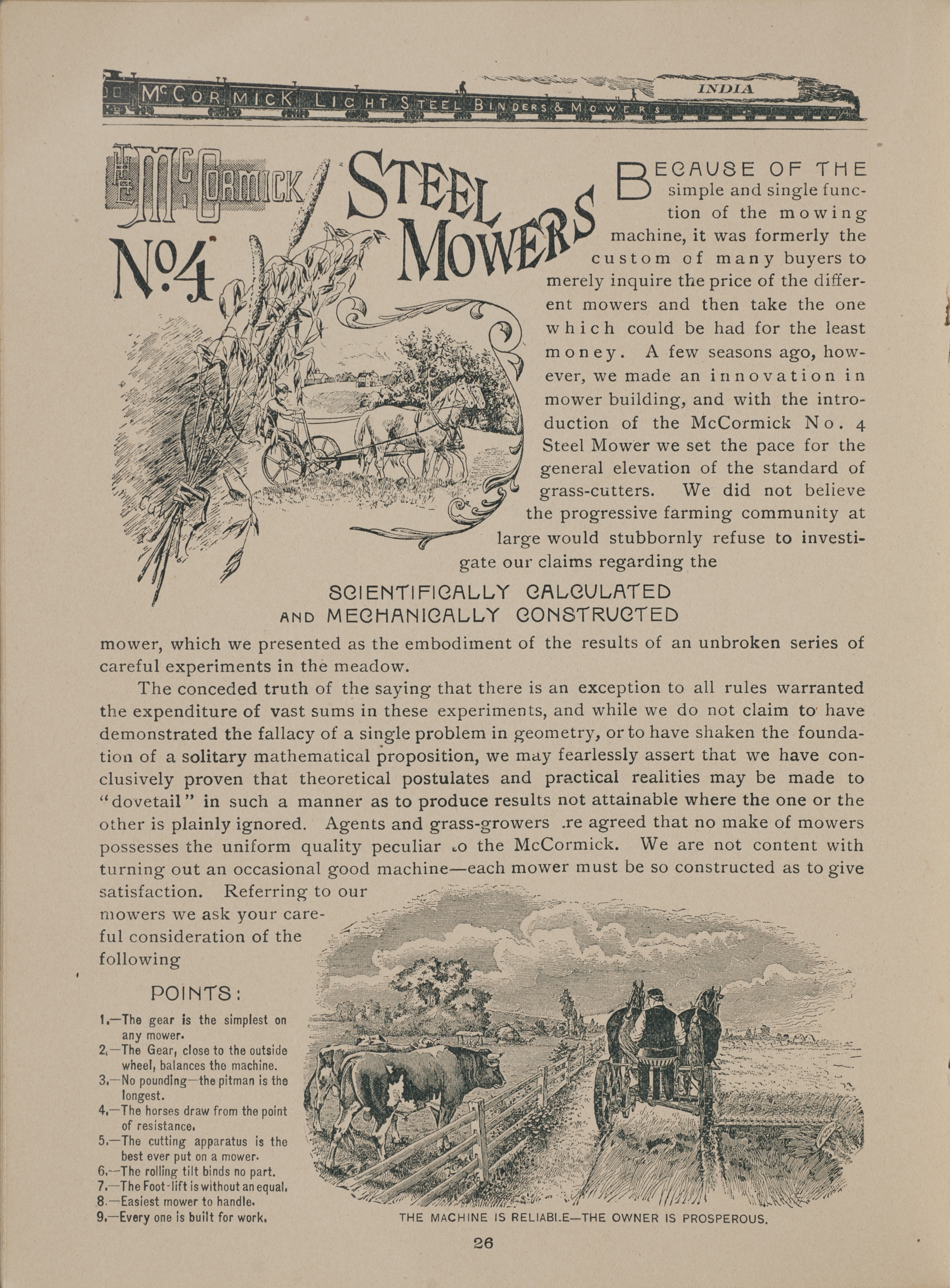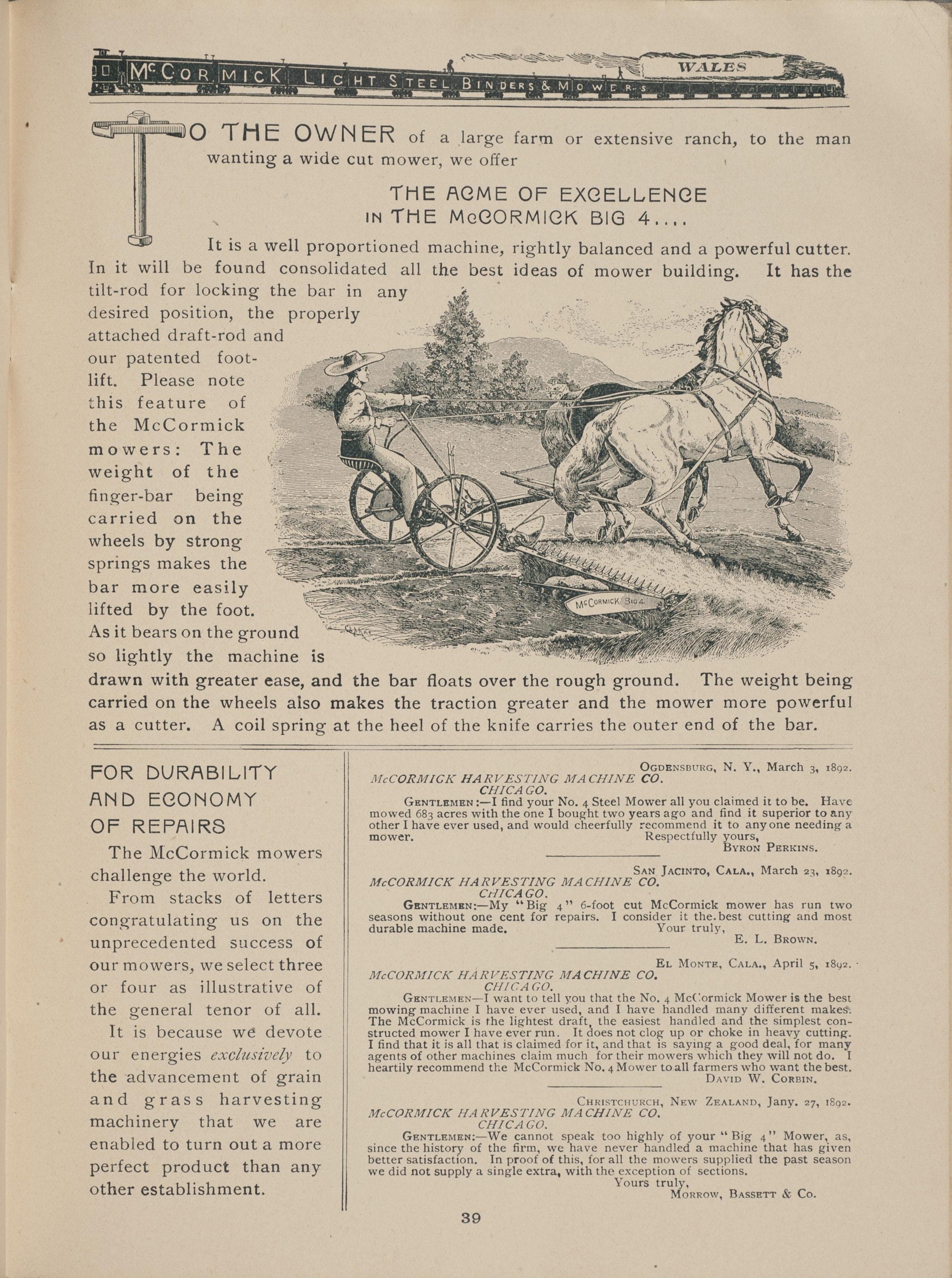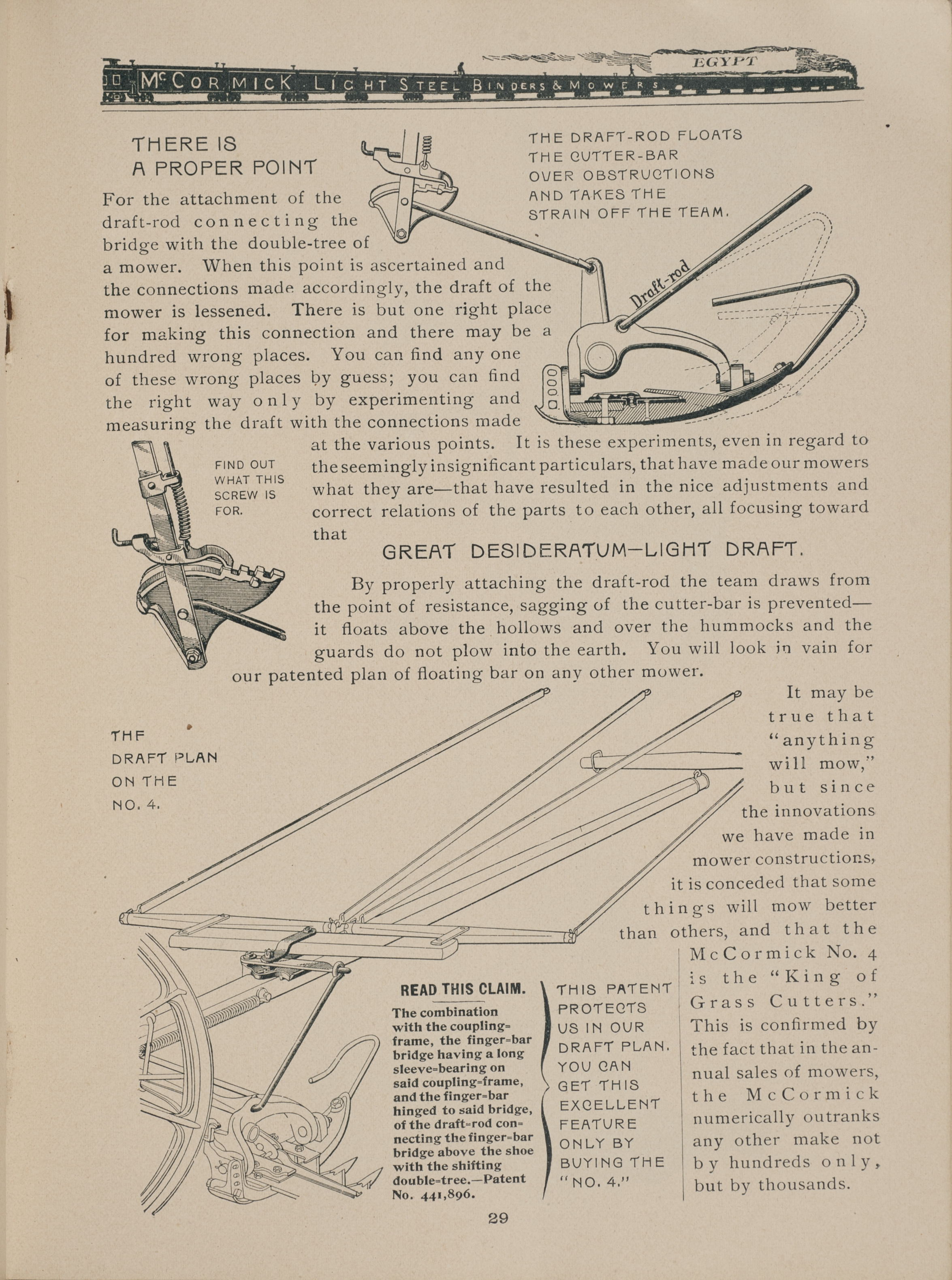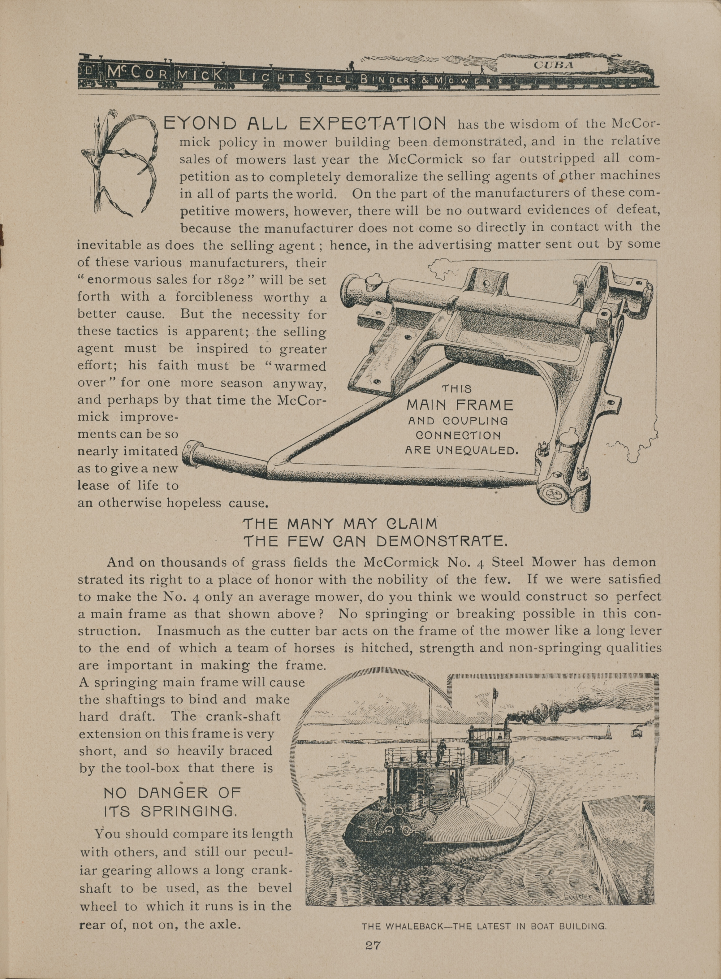 - Illustrated catalog describing the agricultural implements offered by McCormick Harvesting Machine Company in 1893.