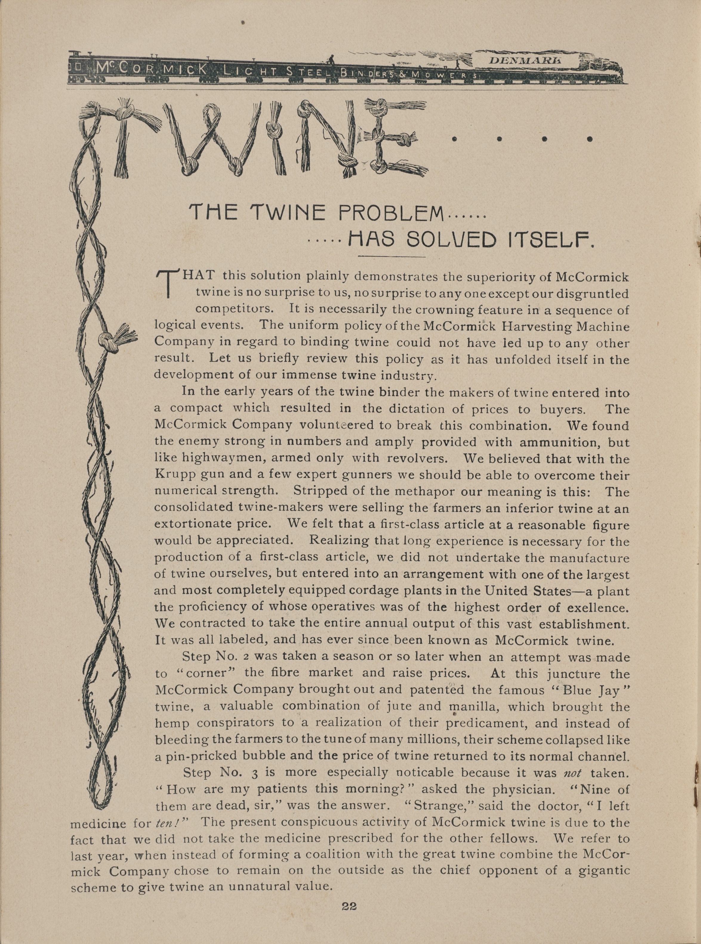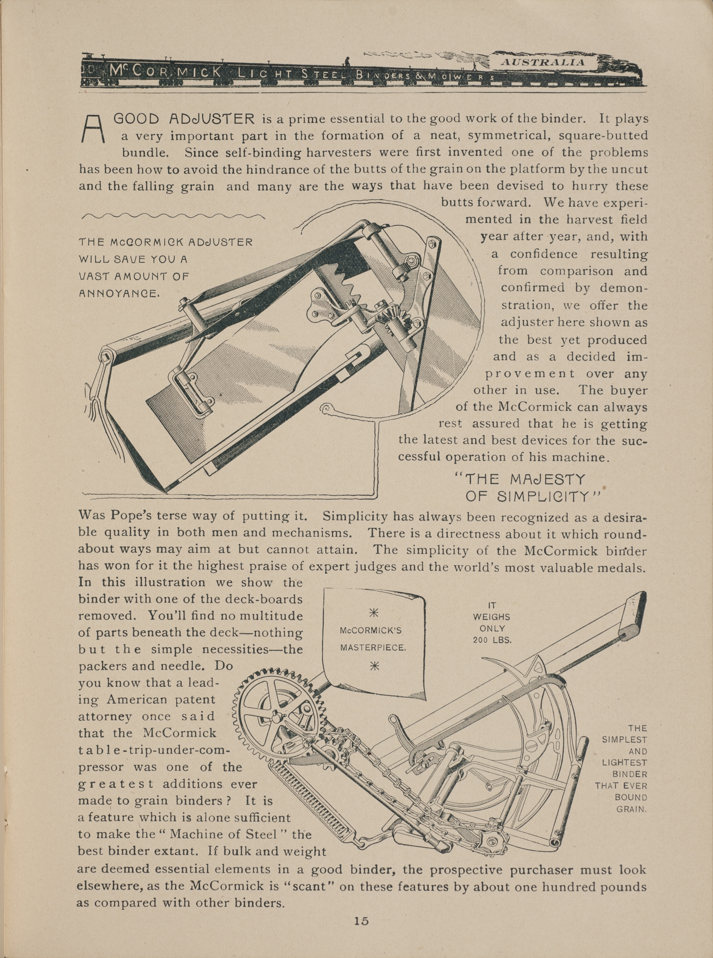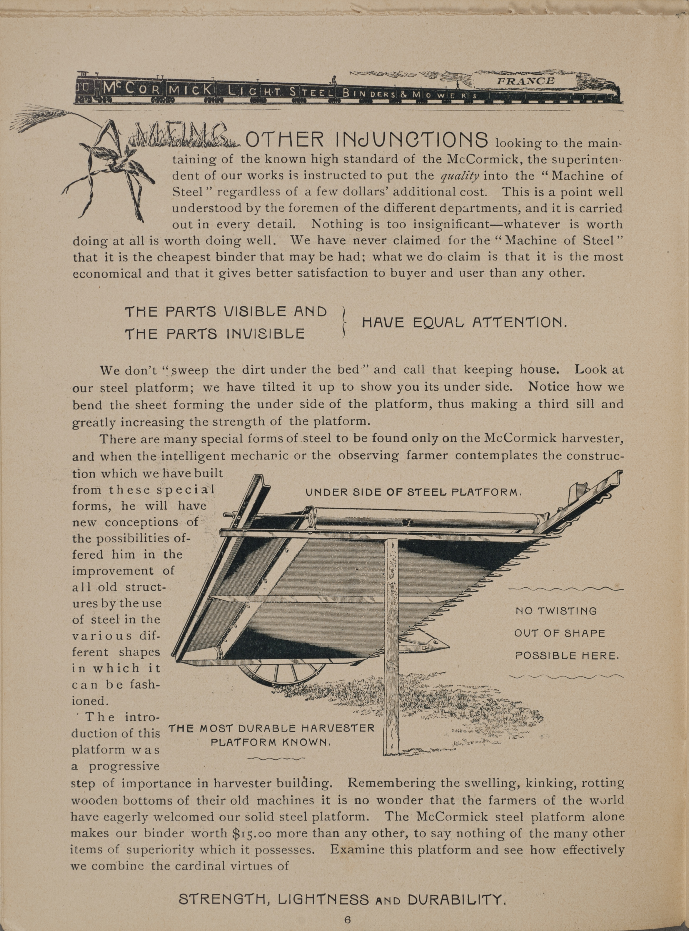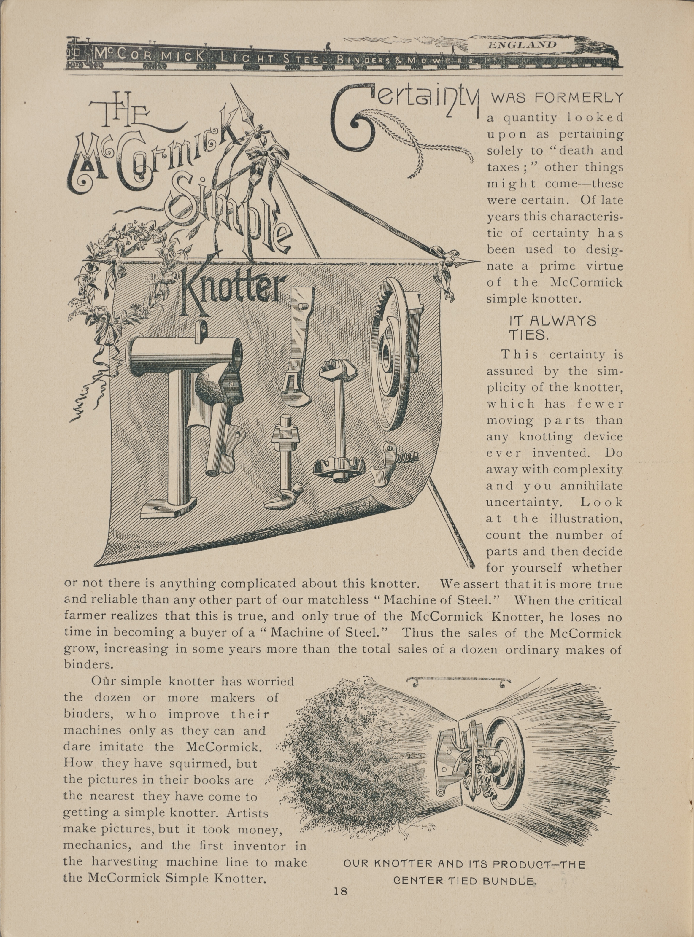 - Illustrated catalog describing the agricultural implements offered by McCormick Harvesting Machine Company in 1893.