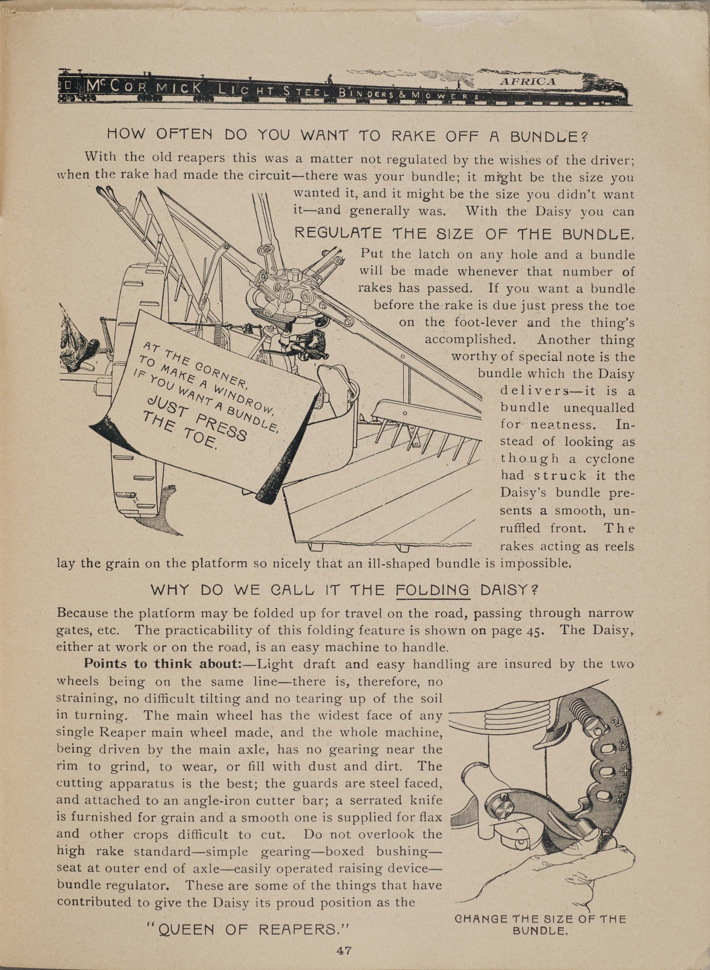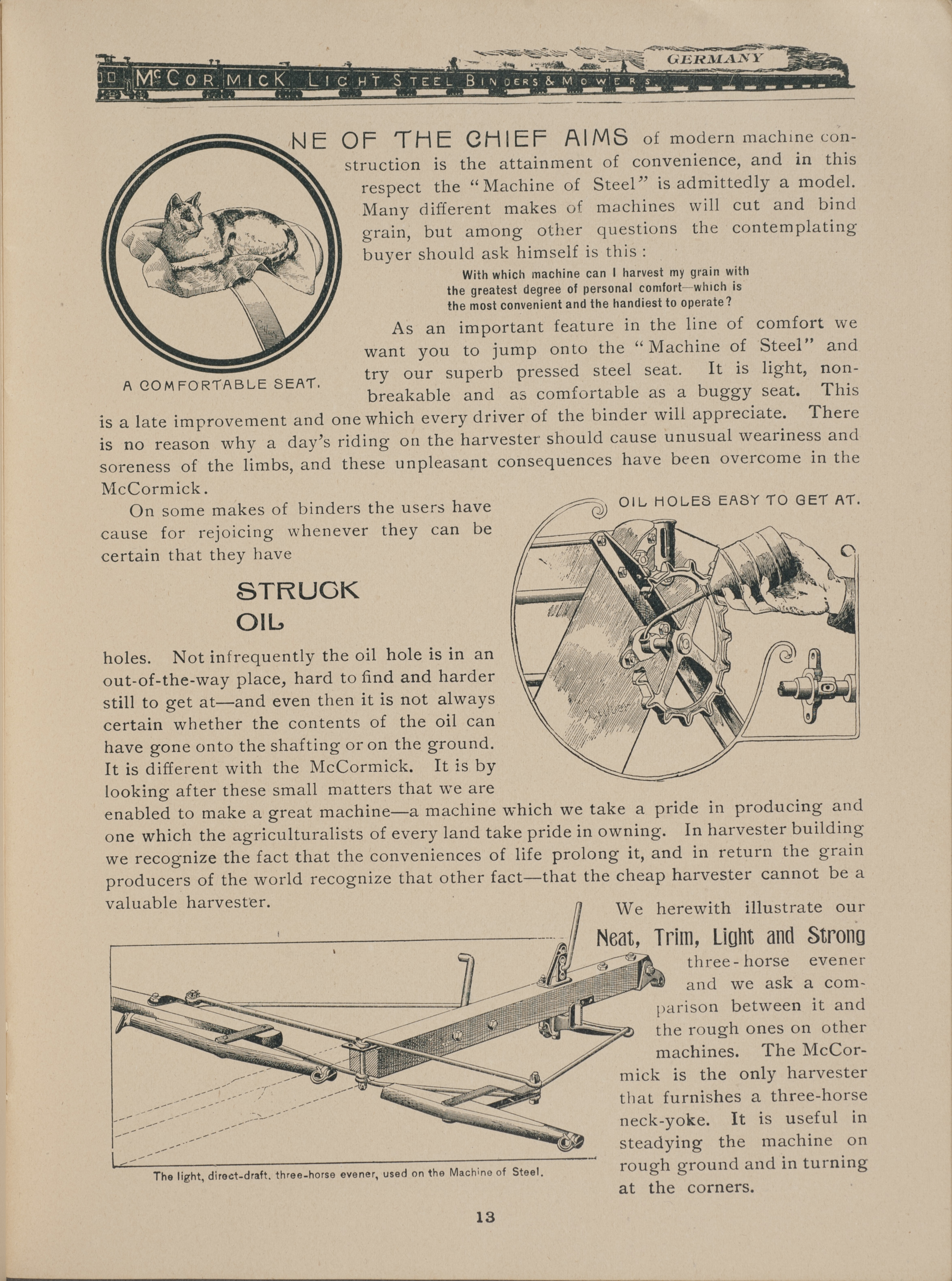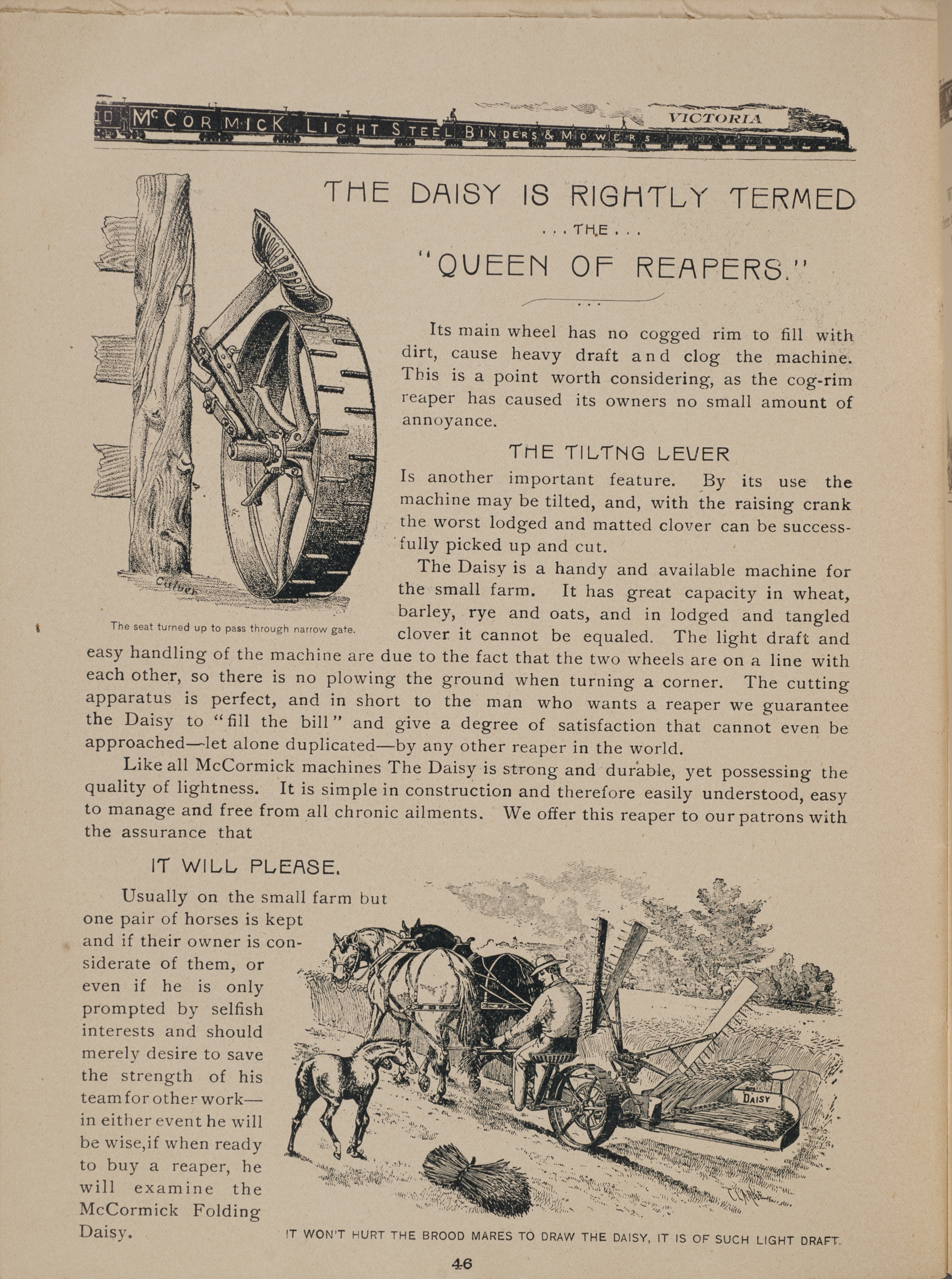 - "McCormick Harvesting Machine Company catalog", Agricultural Machinery Literature Collection, Iowa State University Library Digital Collections