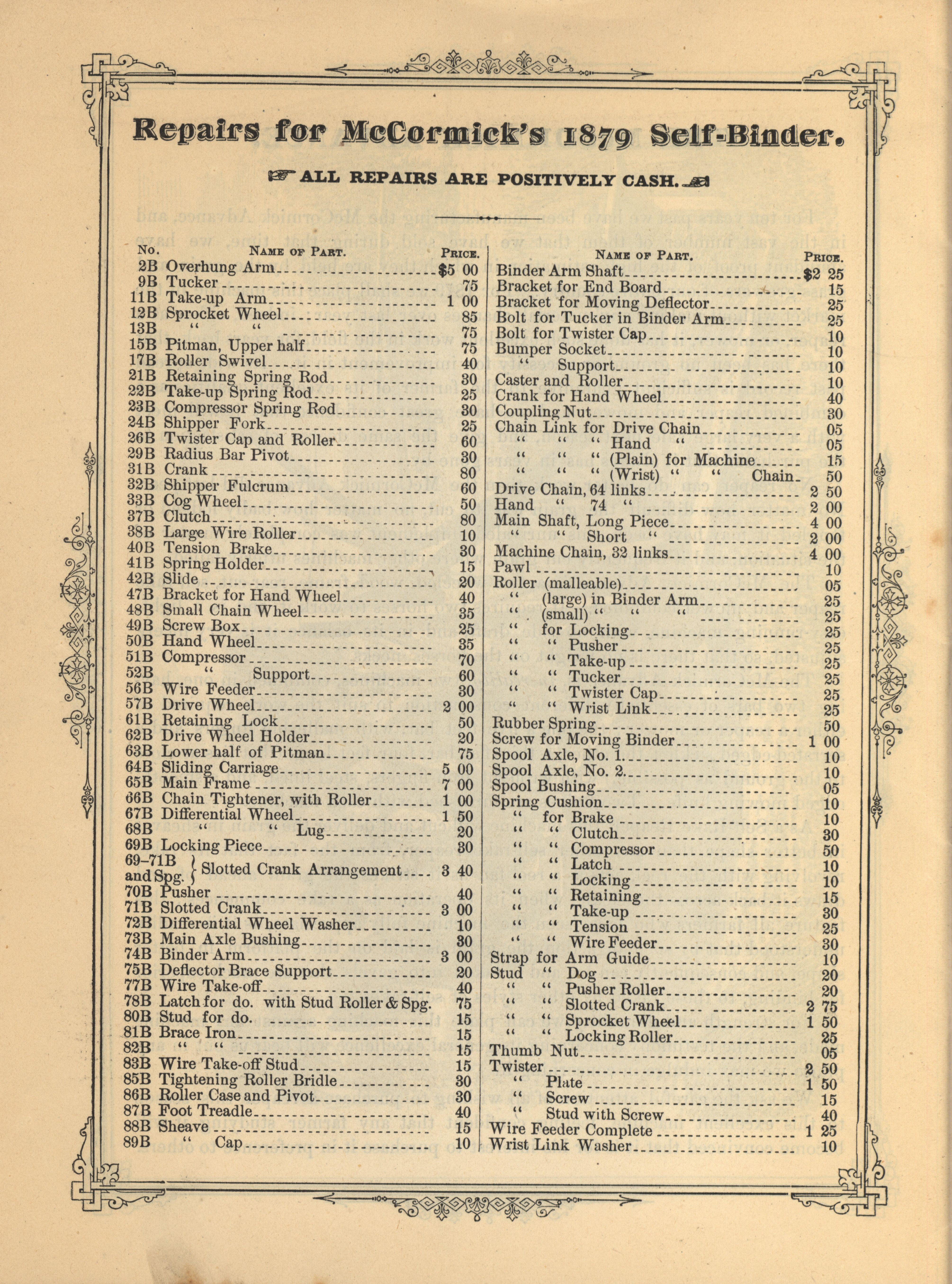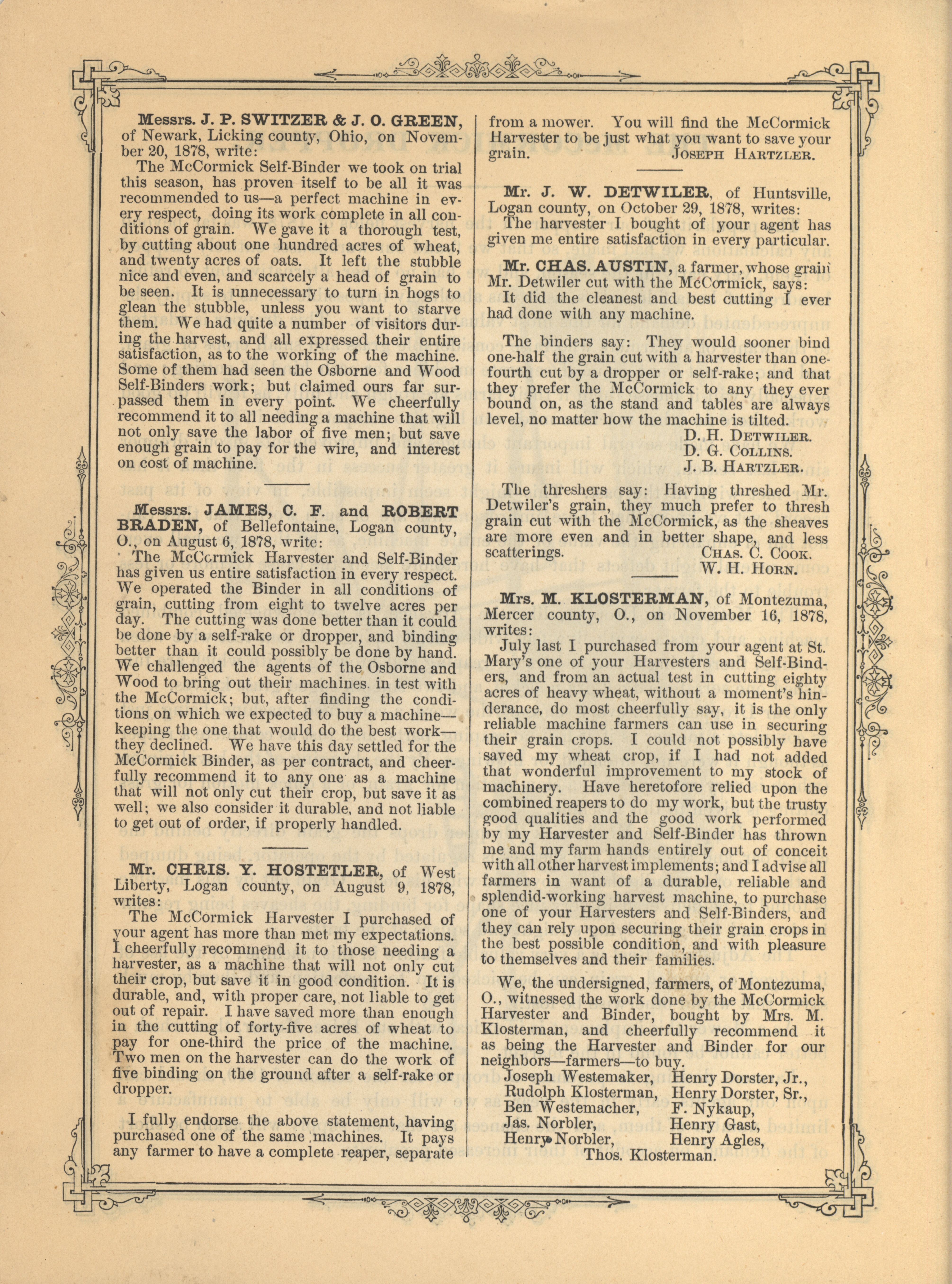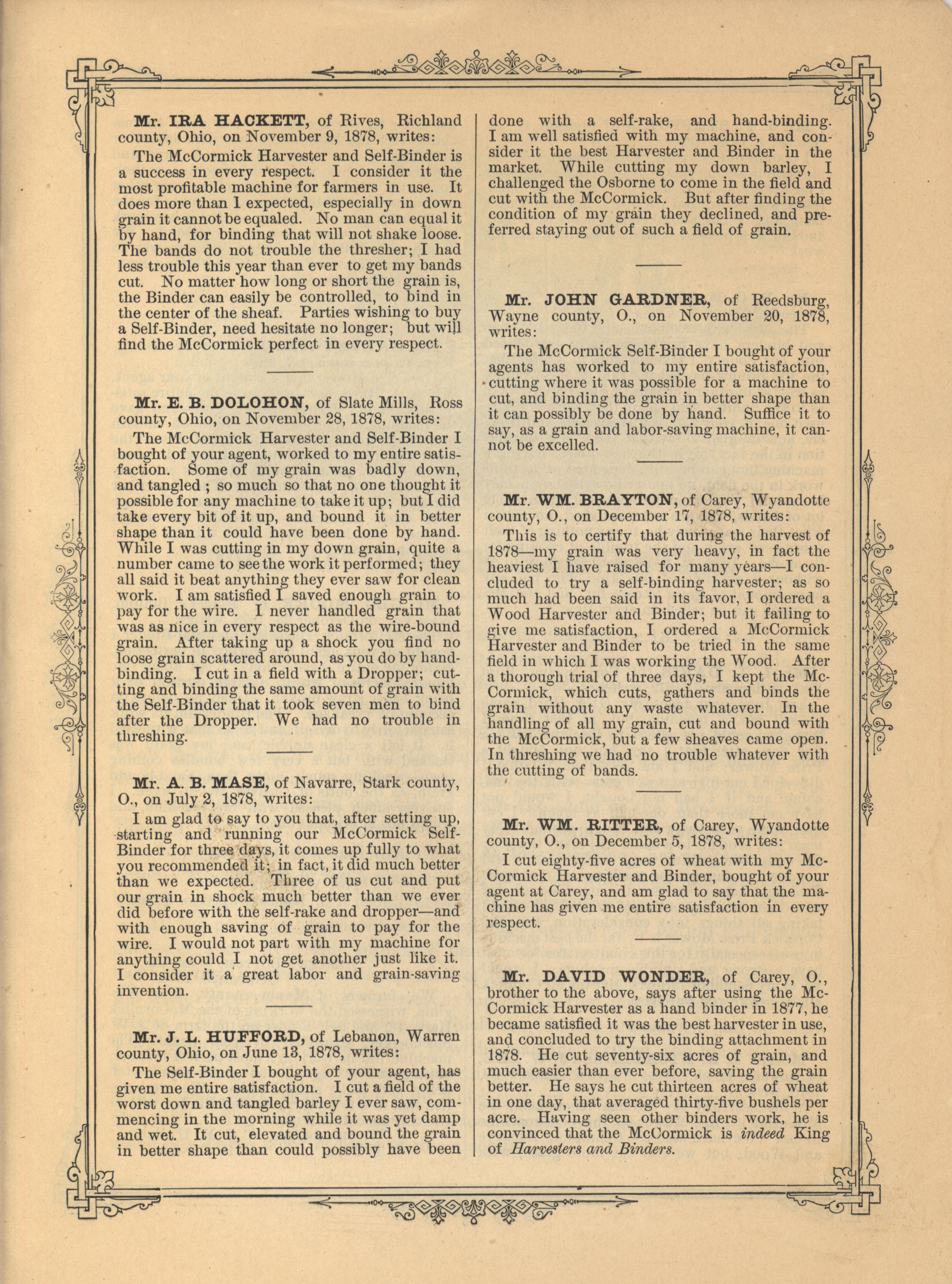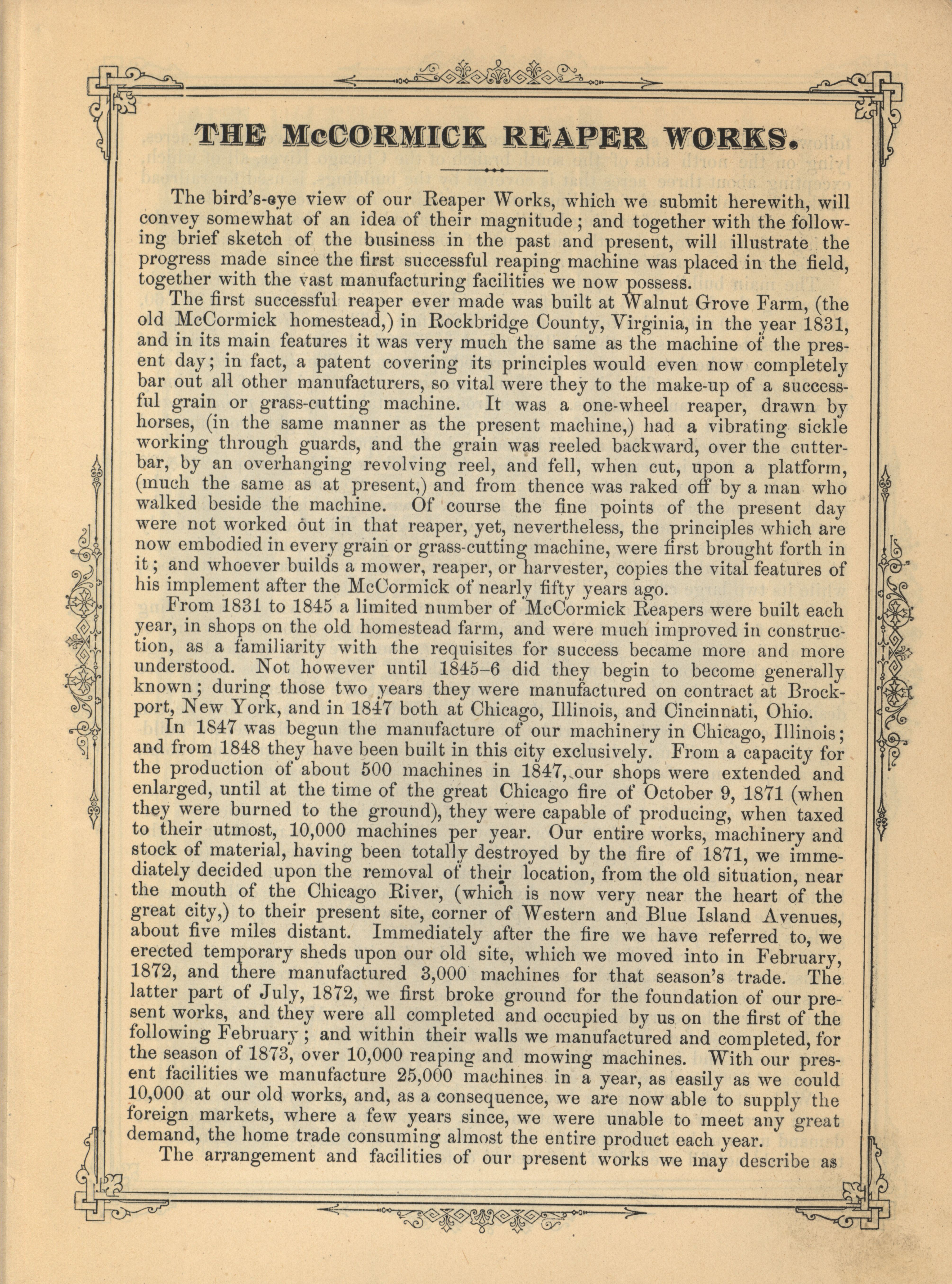 - "C. H. and L. J. McCormick harvesting machinery catalog", Agricultural Machinery Literature Collection, Iowa State University Library Digital Collections