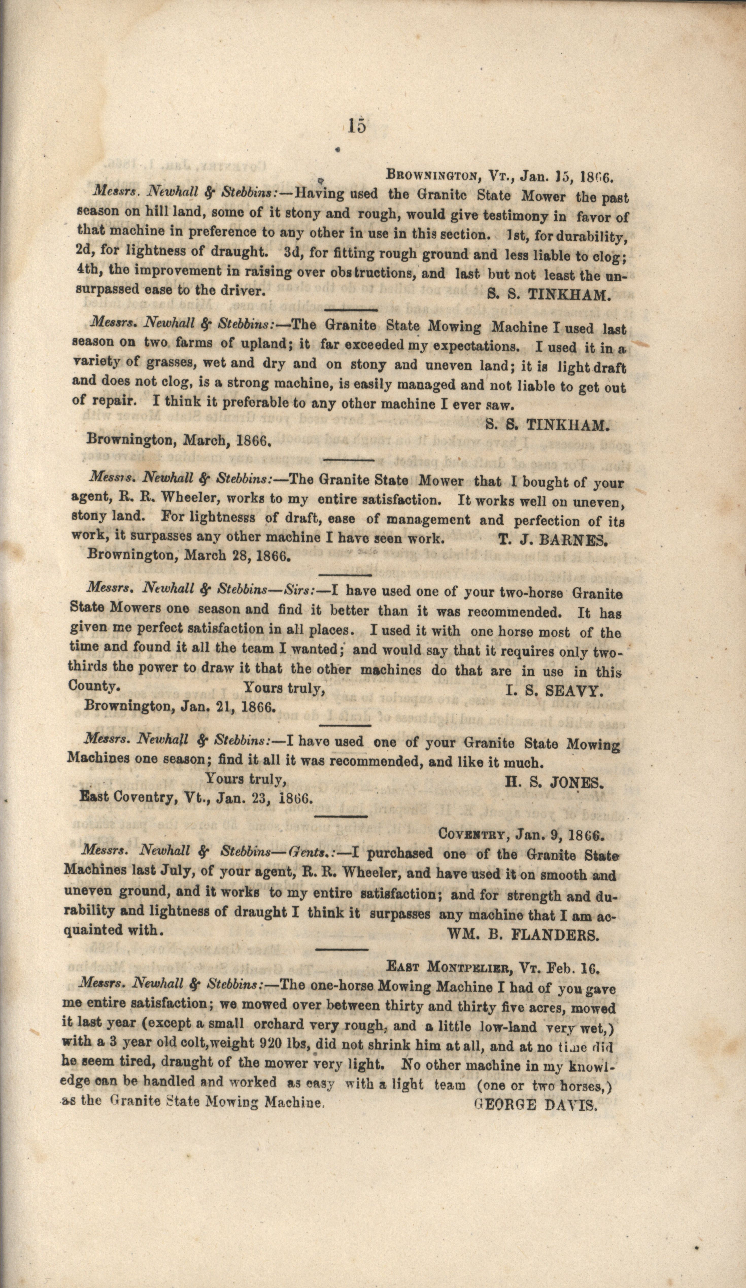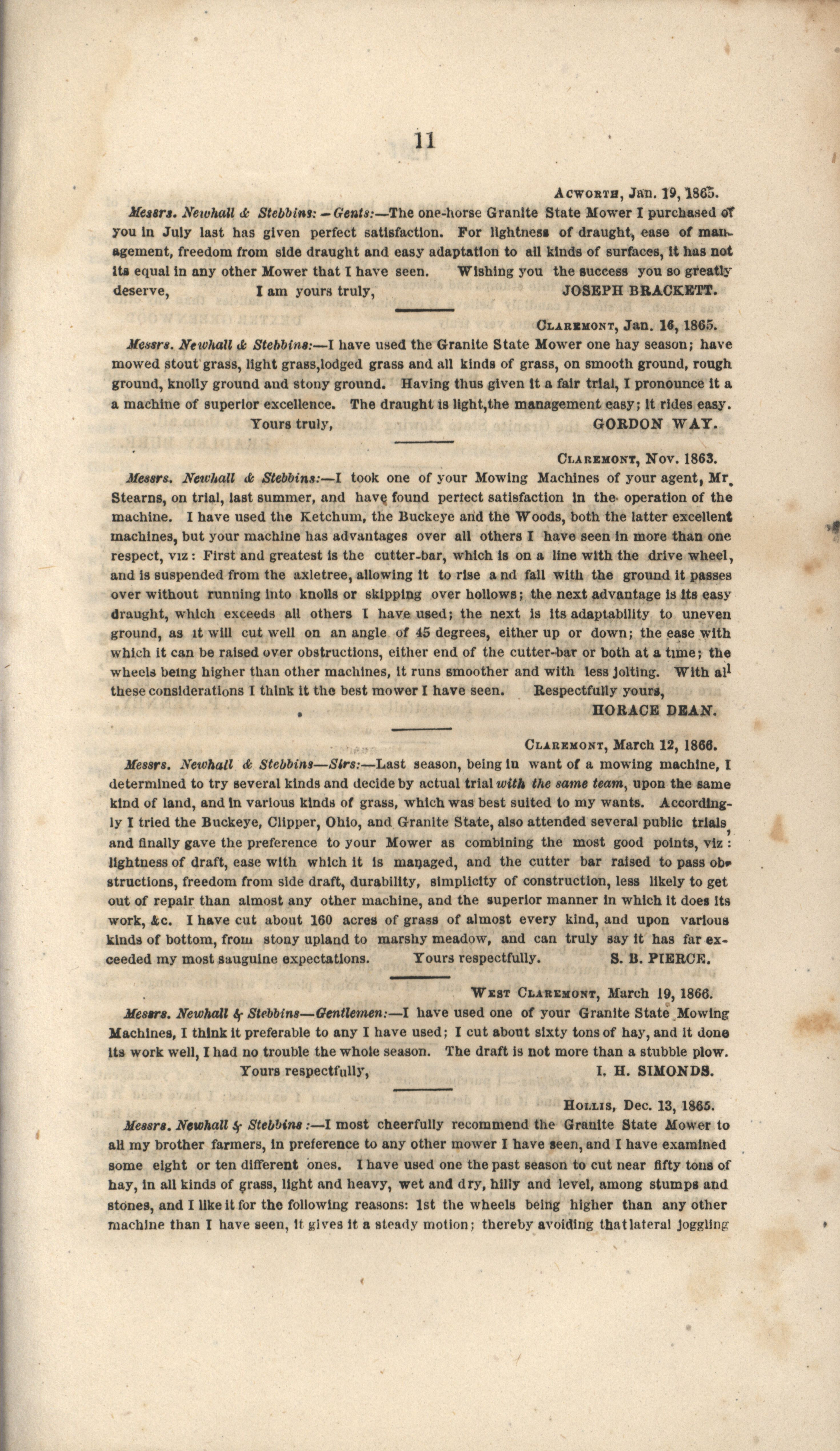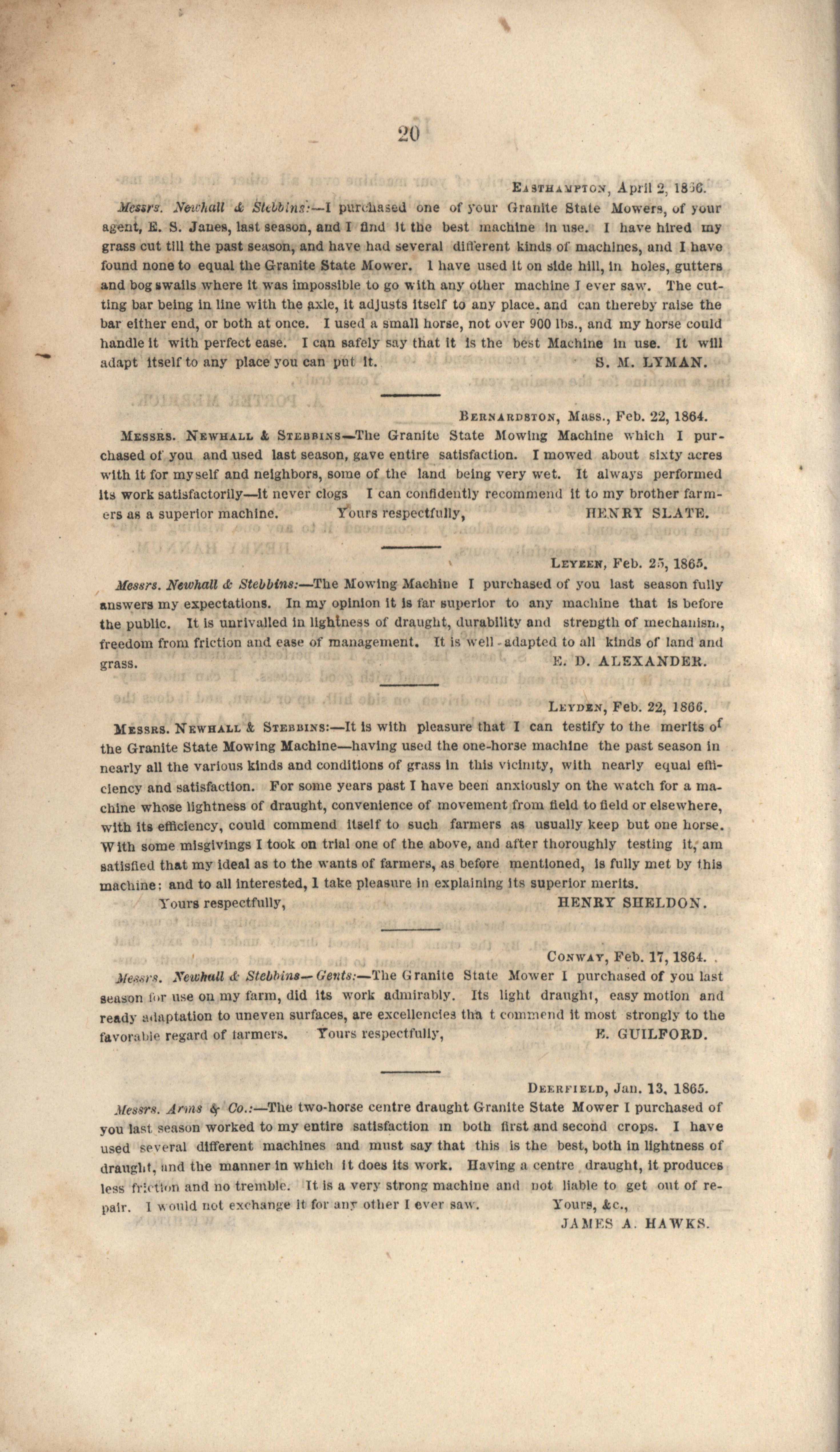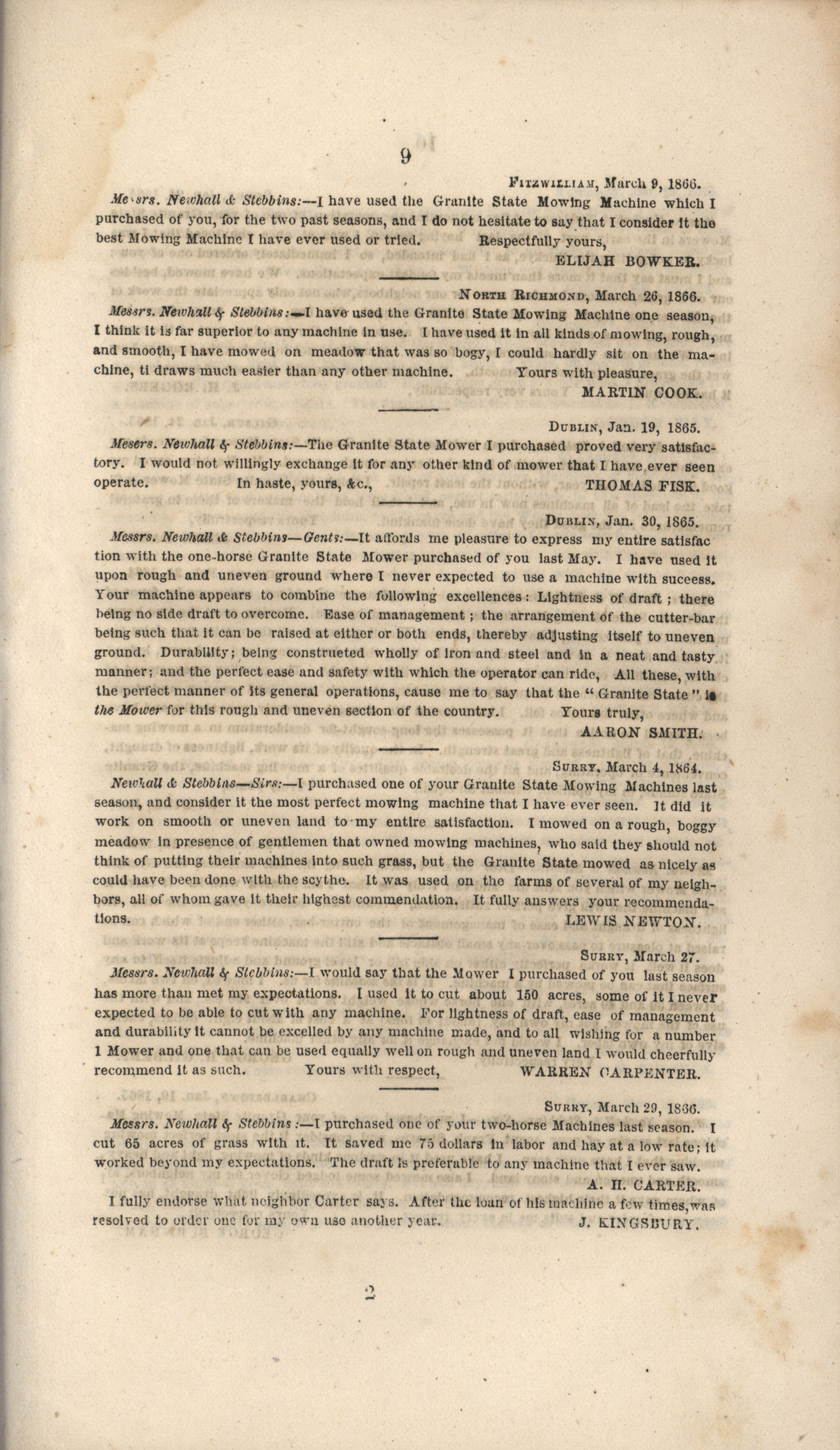 - "Newhall and Stebbins Granite State Mowing Machine catalog", Agricultural Machinery Literature Collection, Iowa State University Library Digital Collections