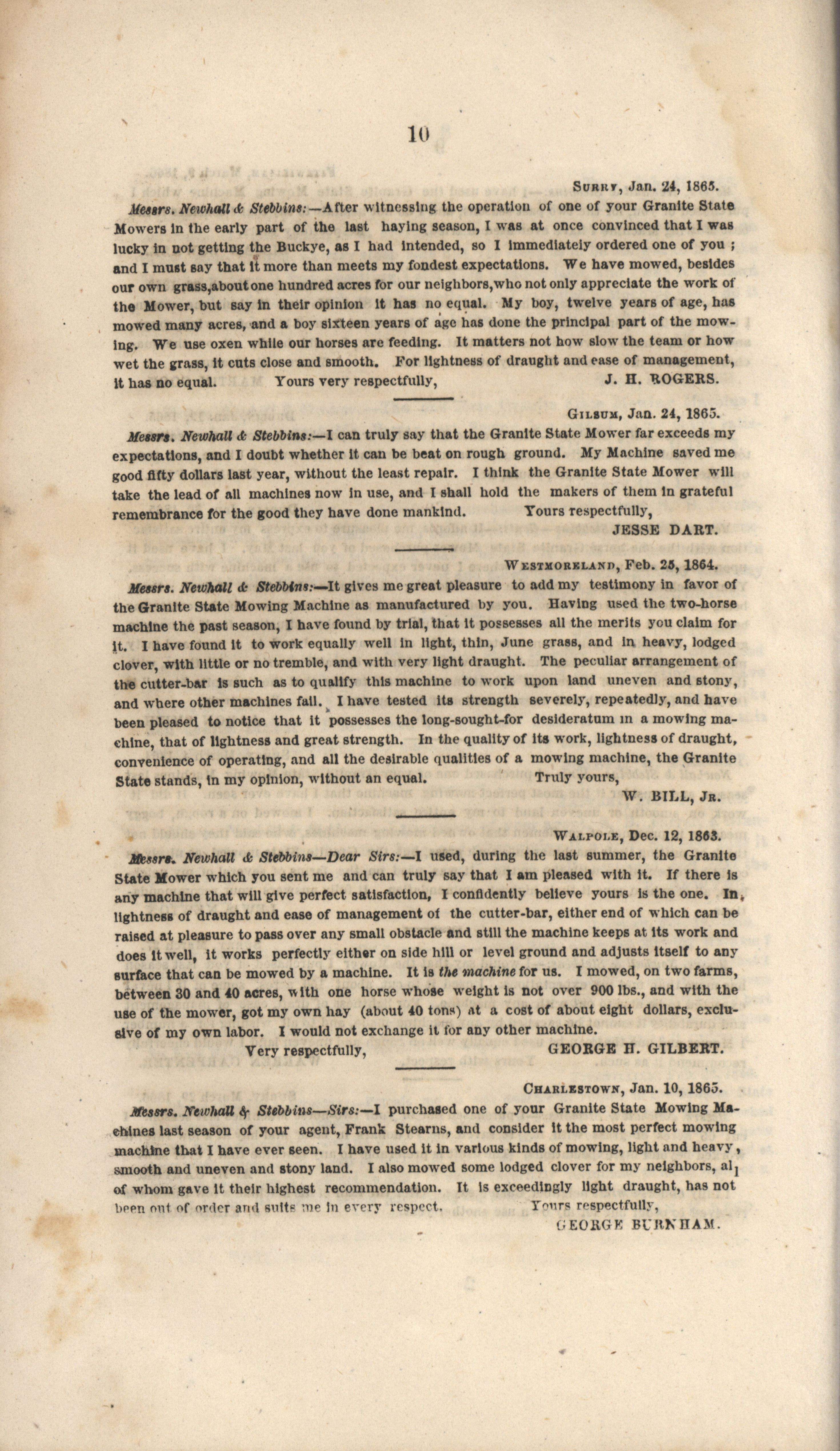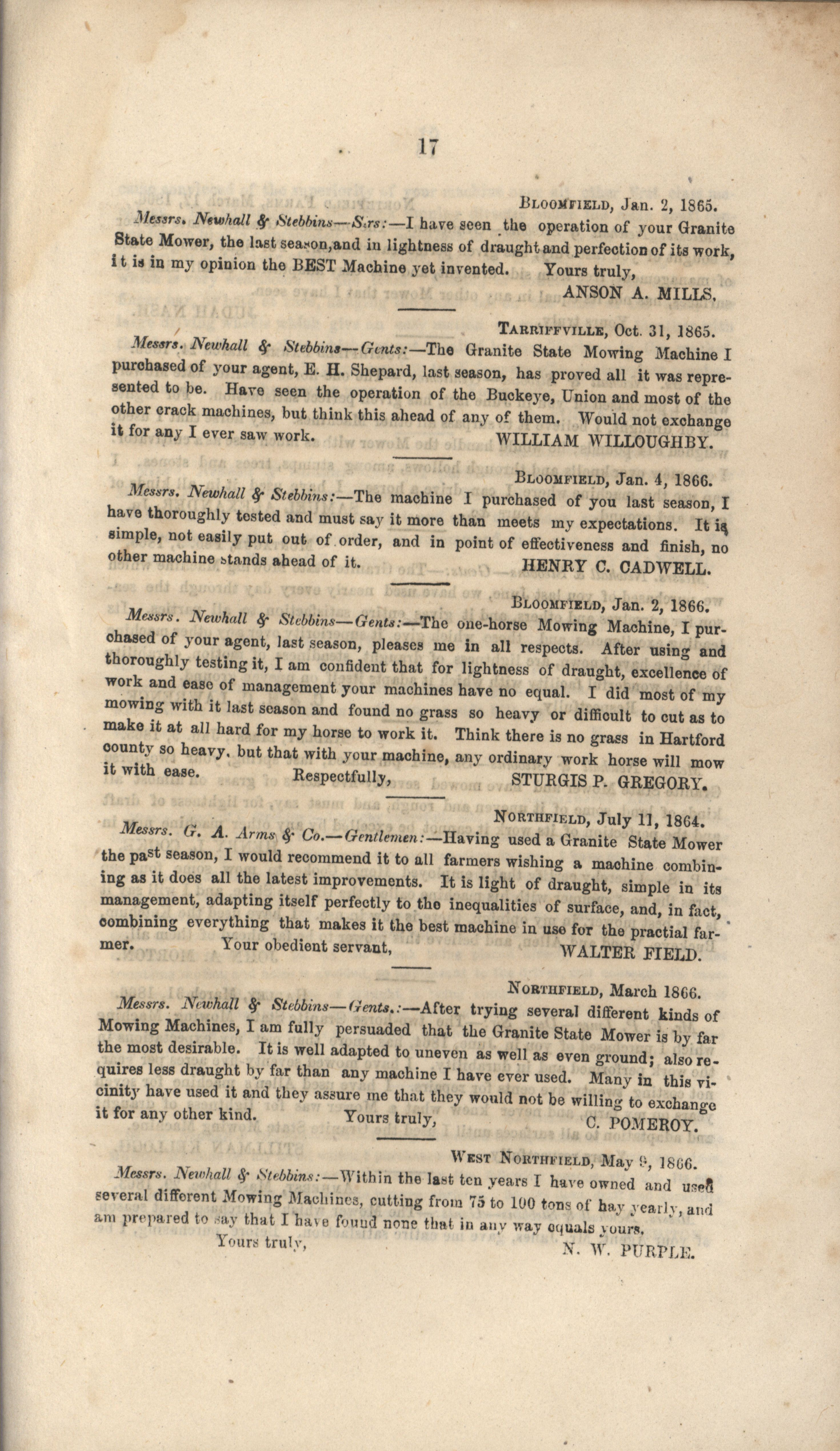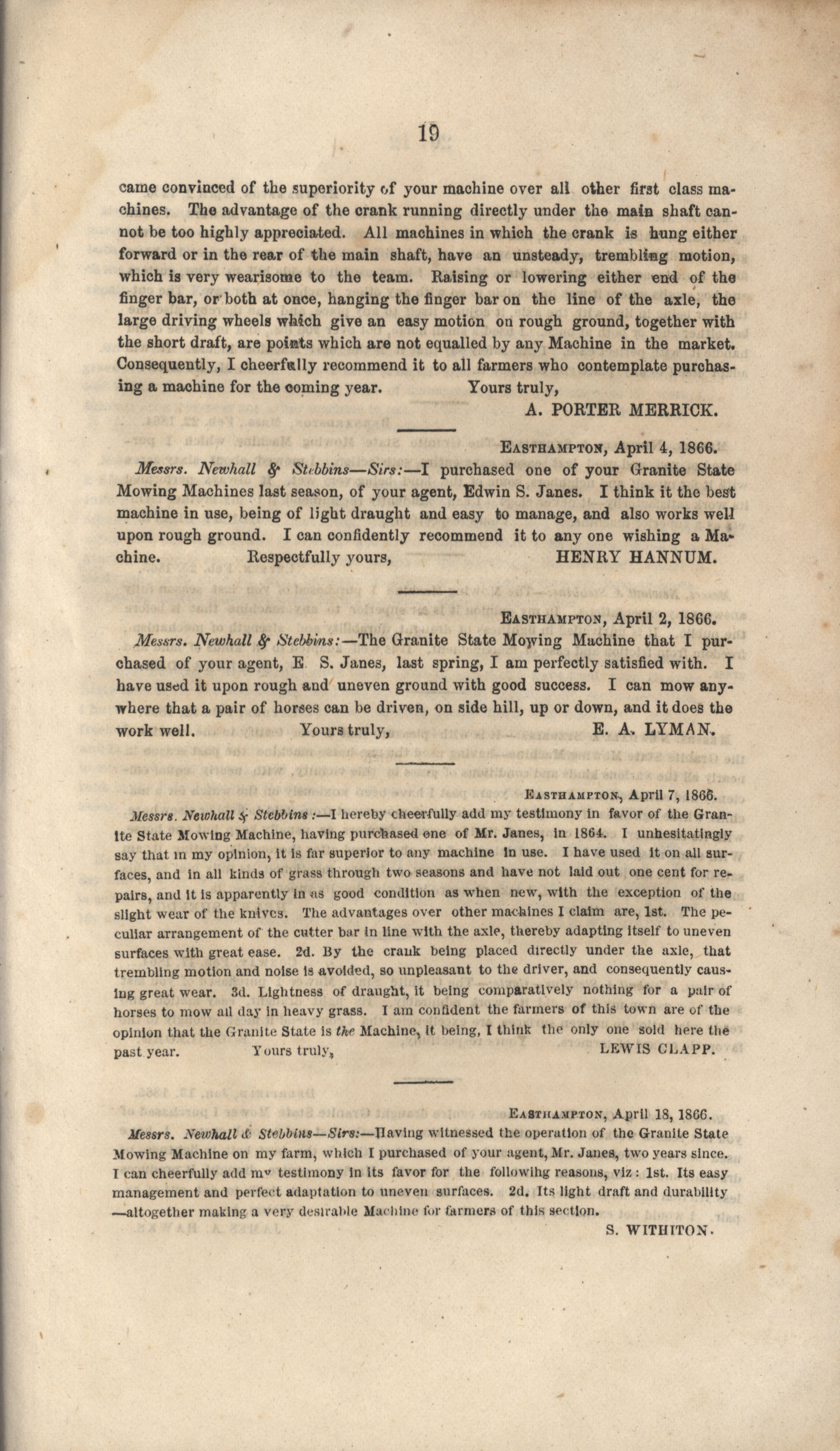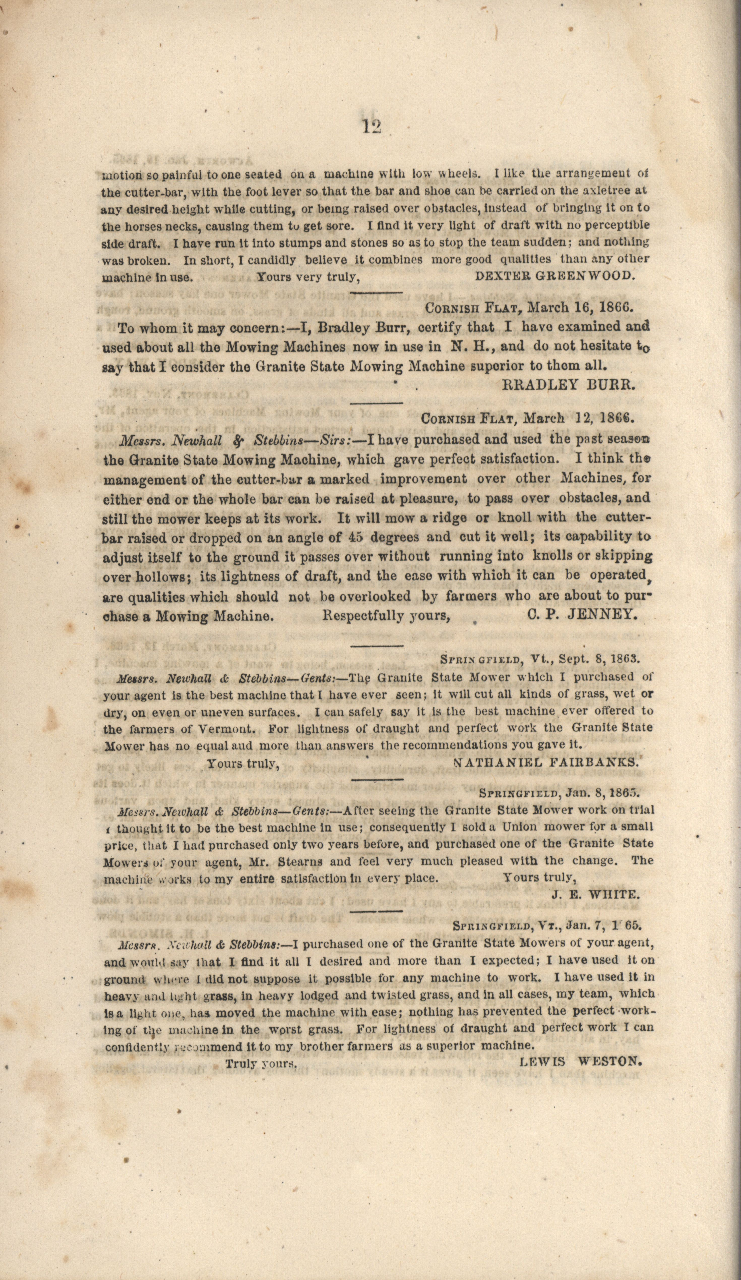 - "Newhall and Stebbins Granite State Mowing Machine catalog", Agricultural Machinery Literature Collection, Iowa State University Library Digital Collections