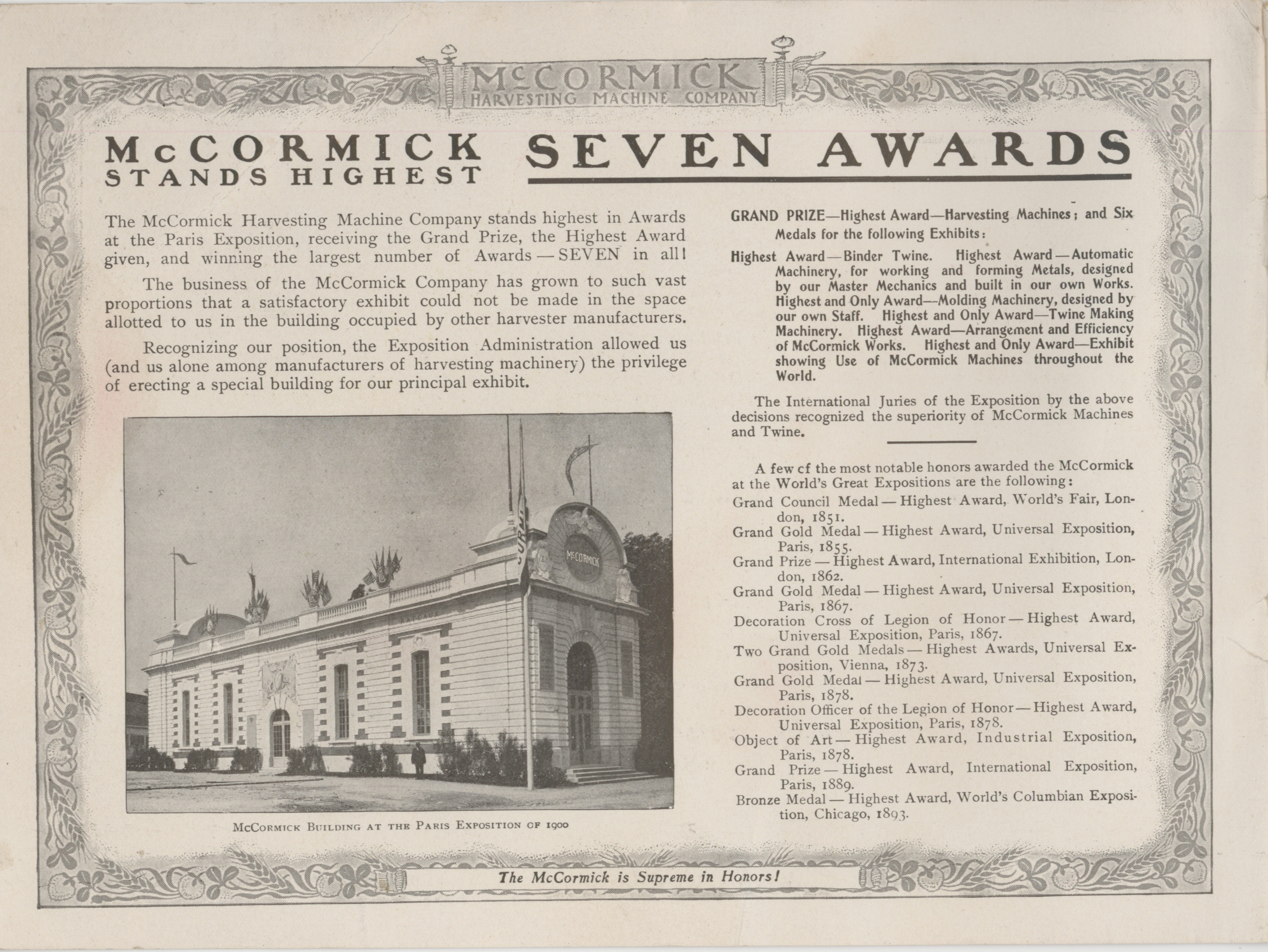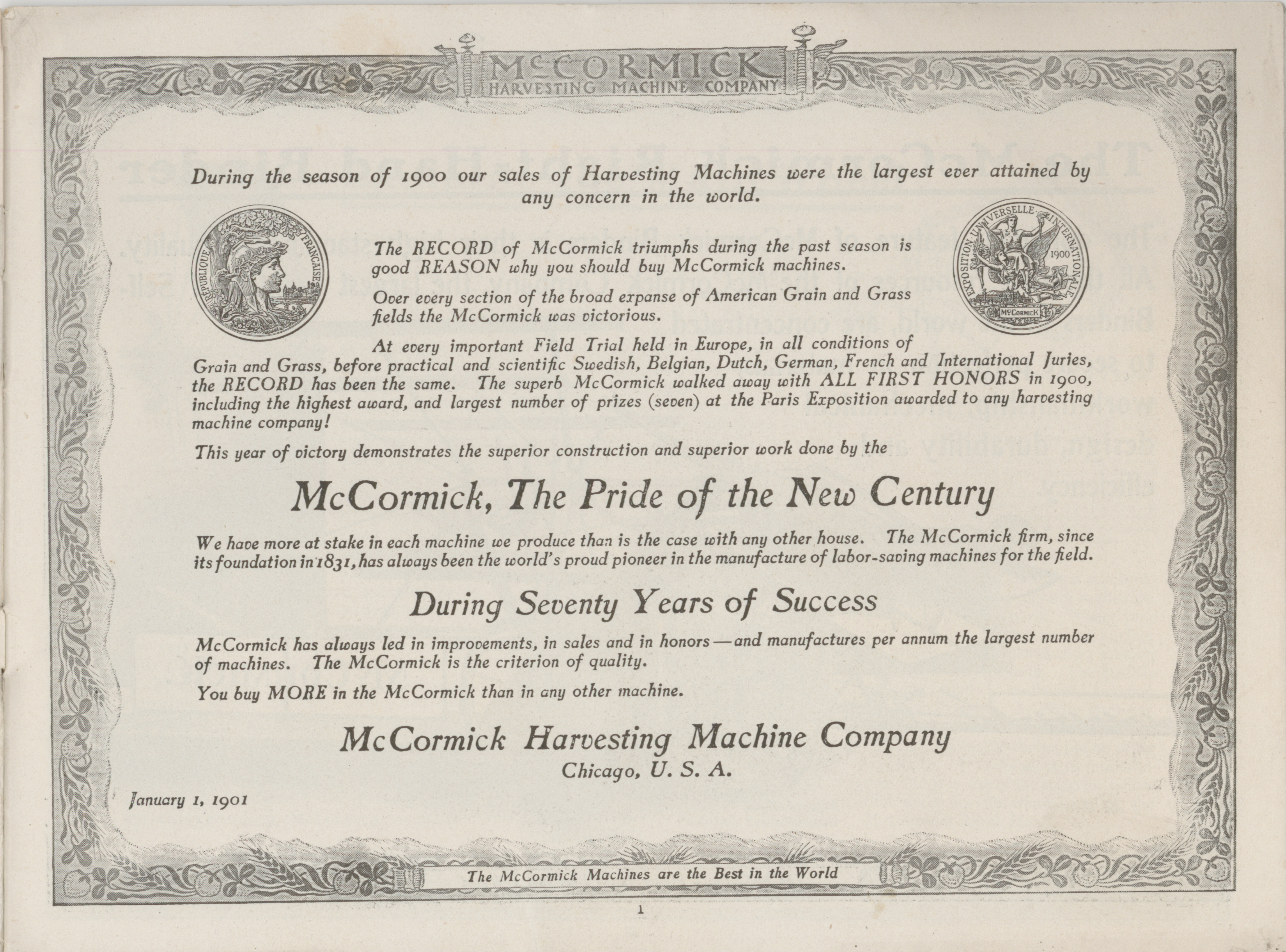 - Illustrated catalog describing the agricultural implements offered by McCormick Harvesting Machine Company in 1901.
