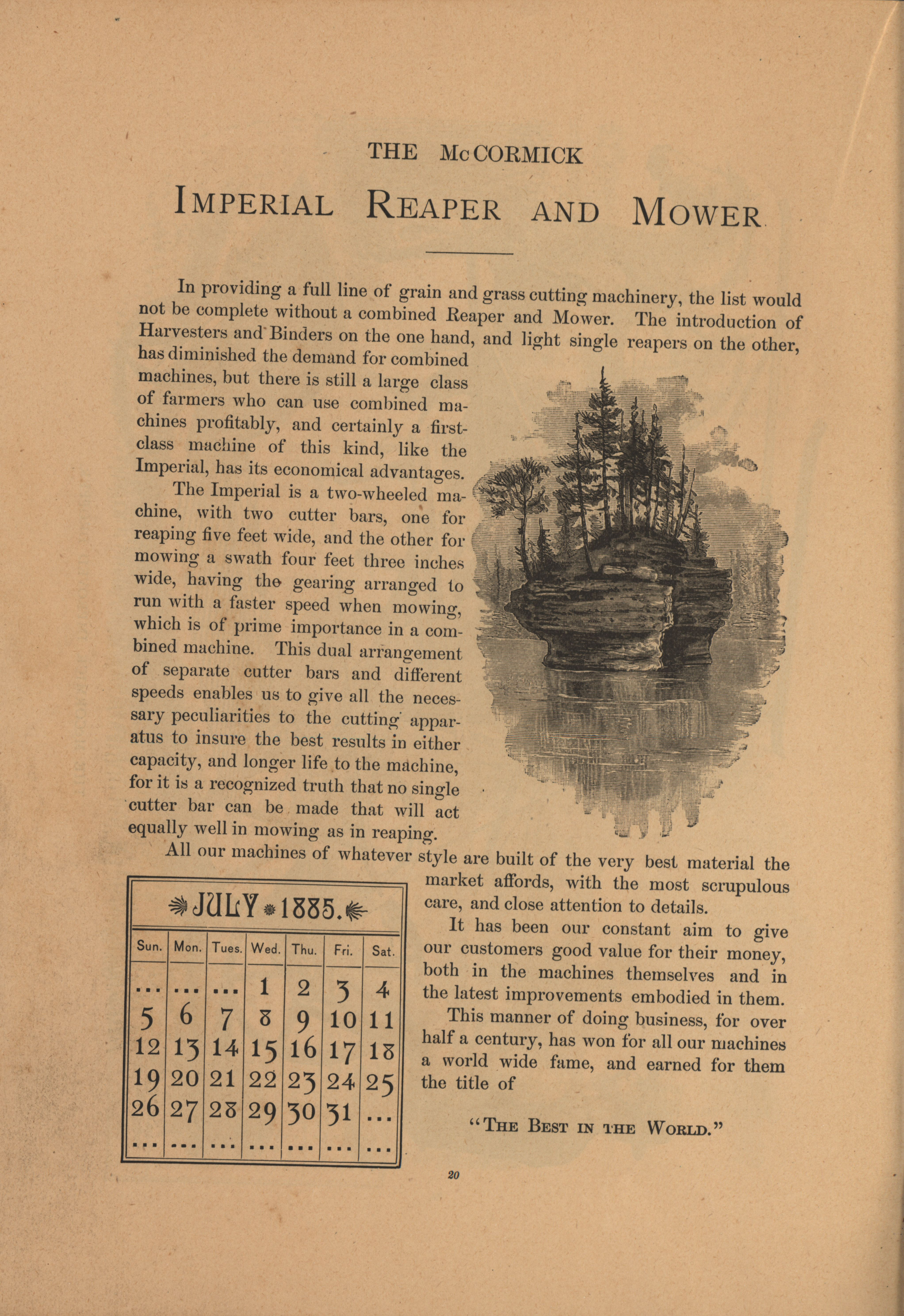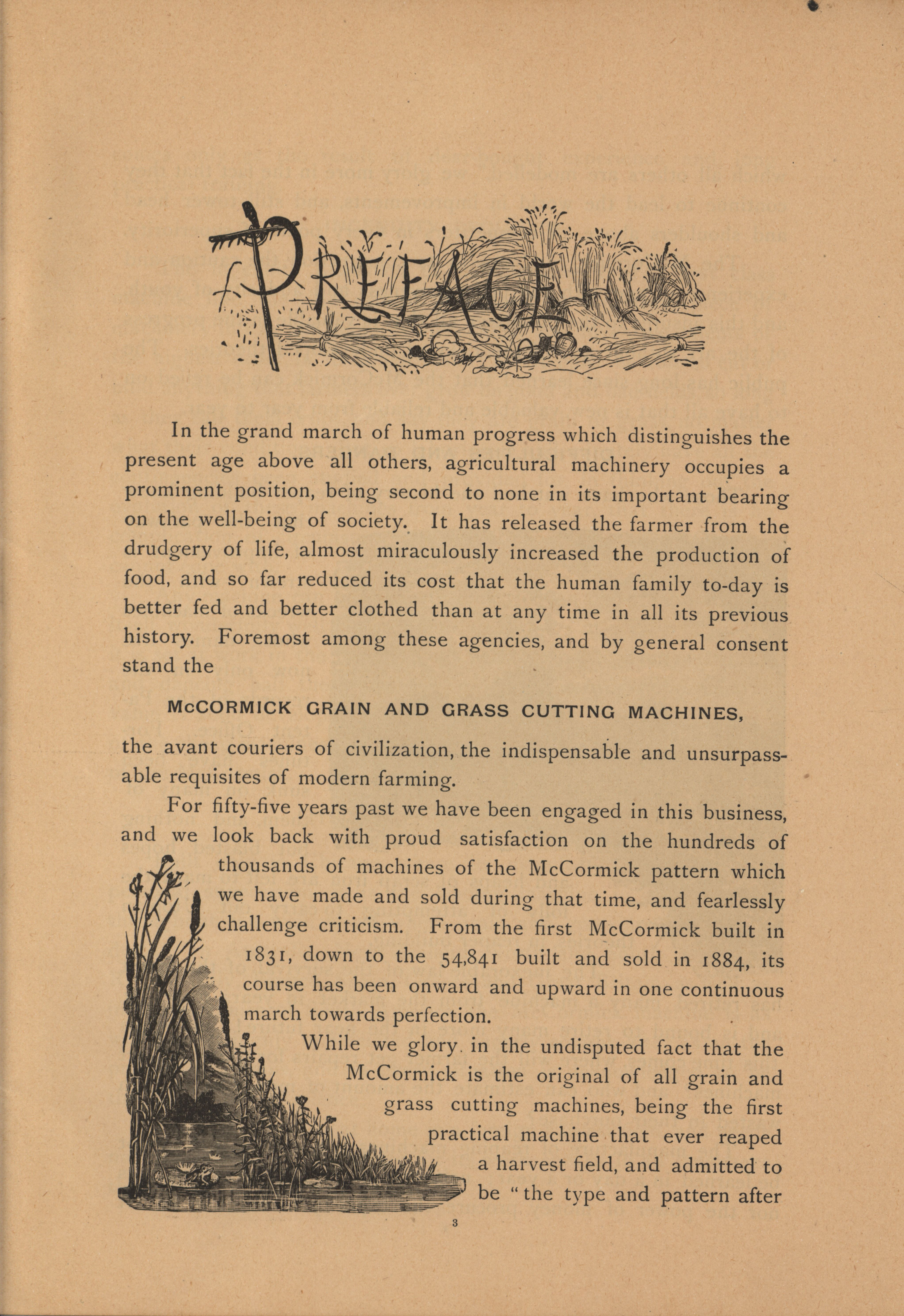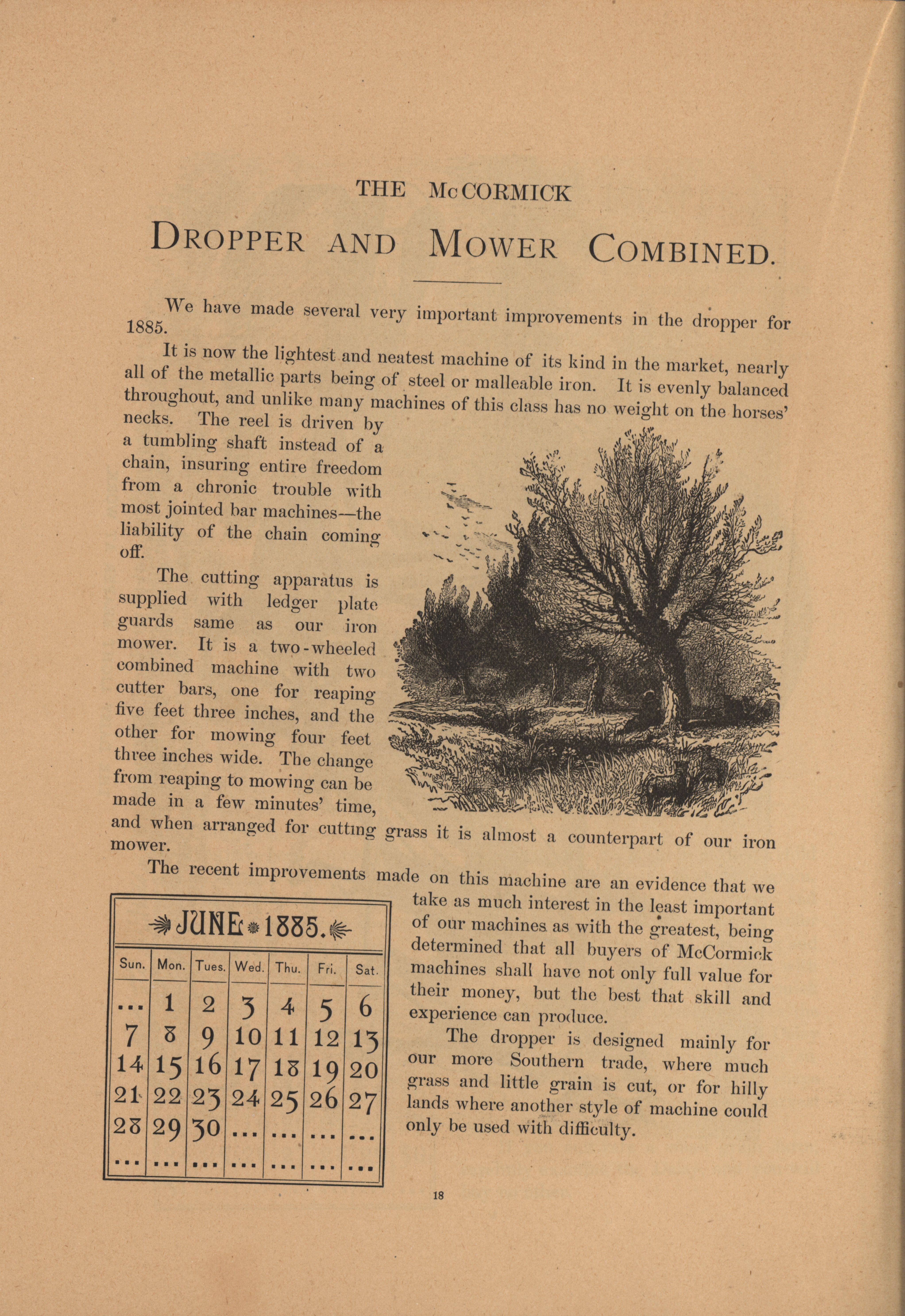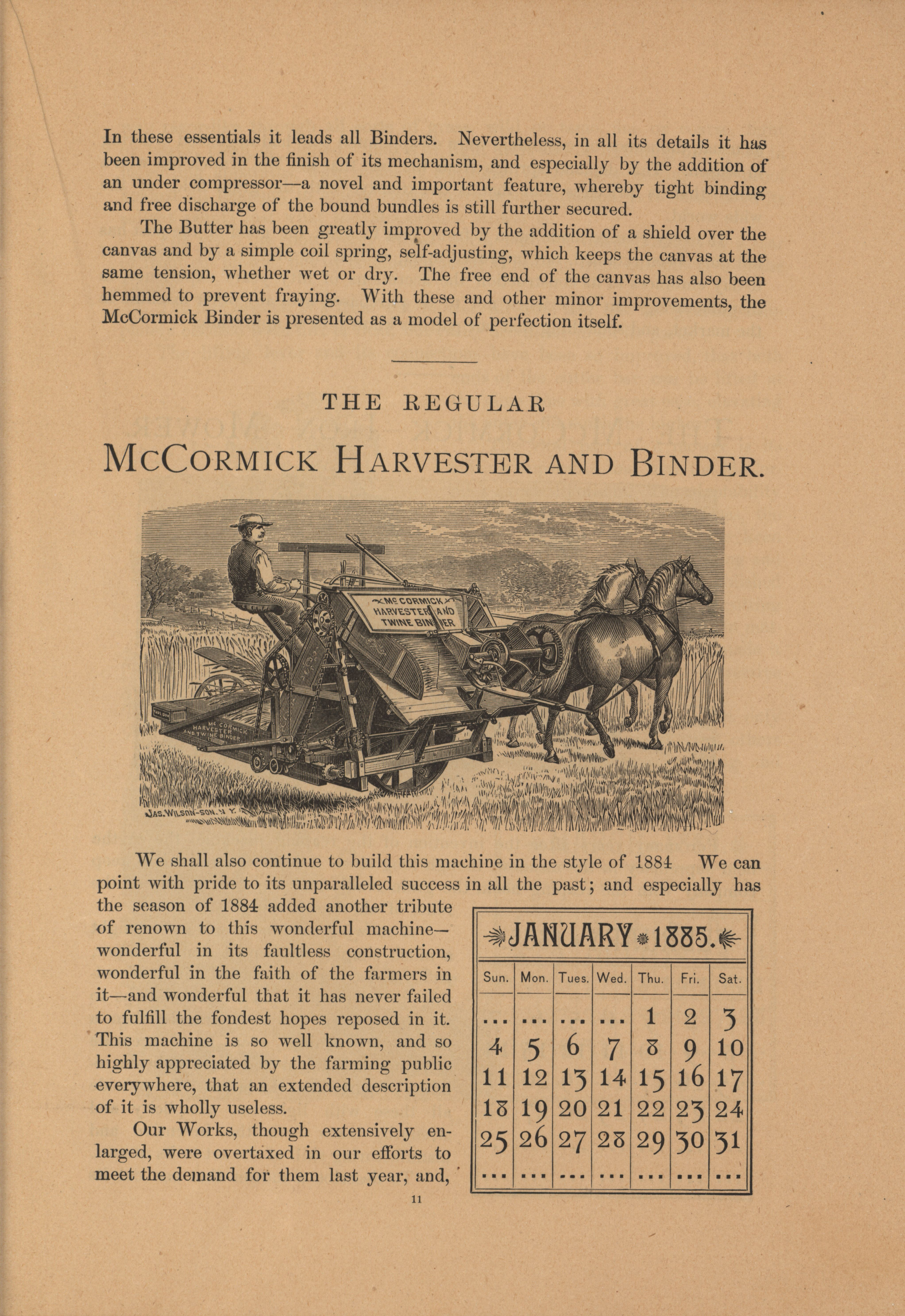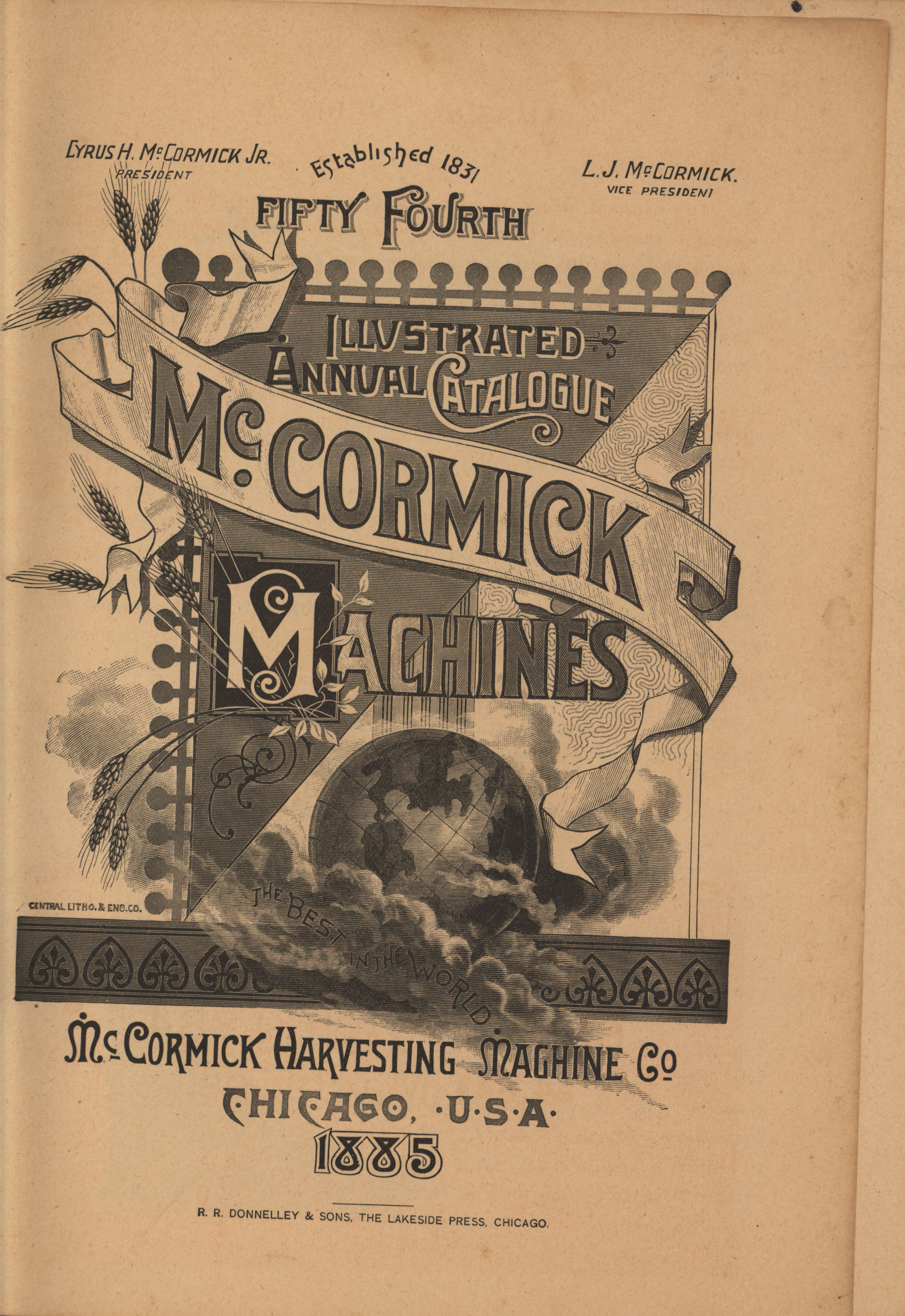 - Illustrated catalog describing the agricultural implements offered by McCormick Harvesting Machine Company in 1885.