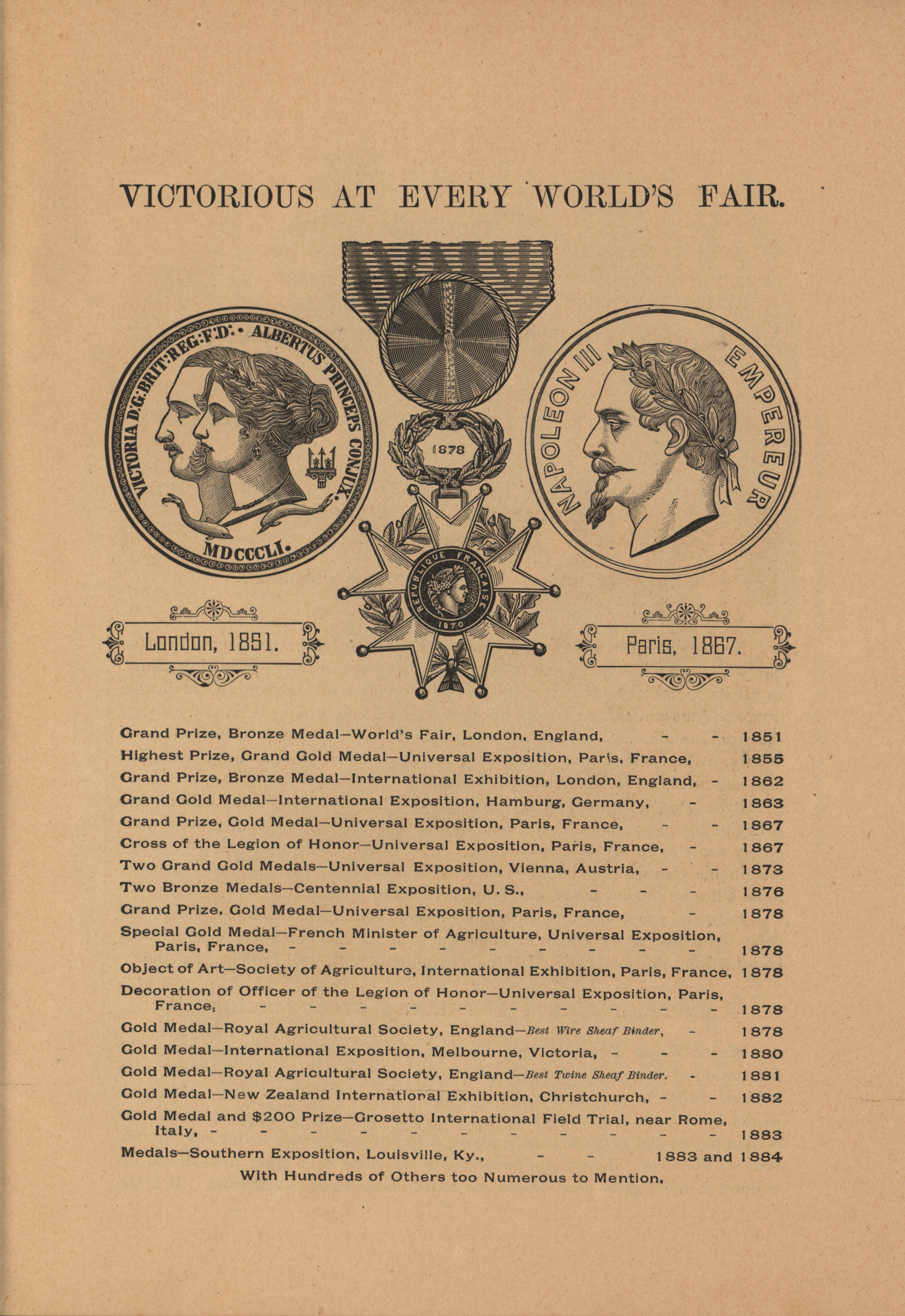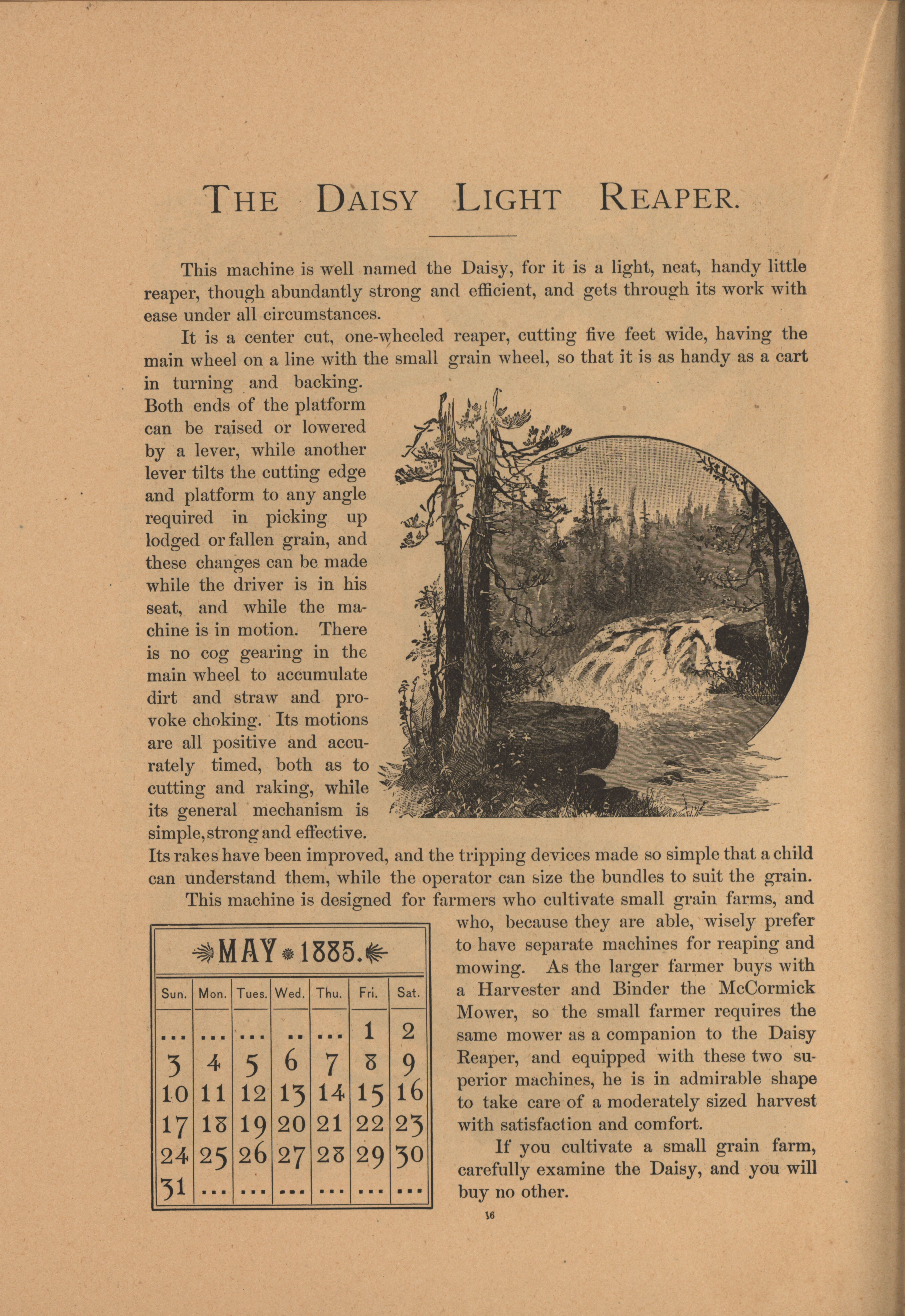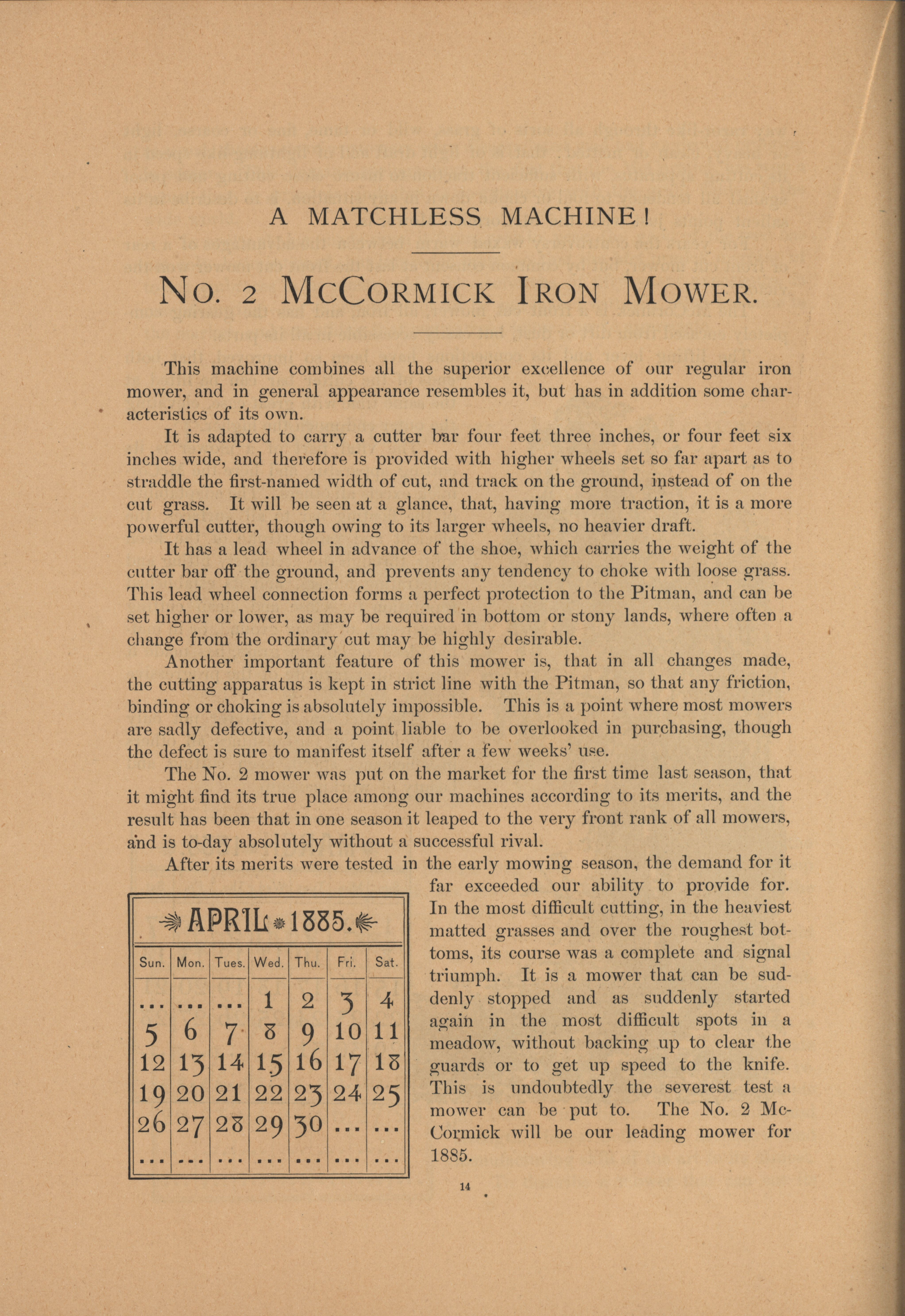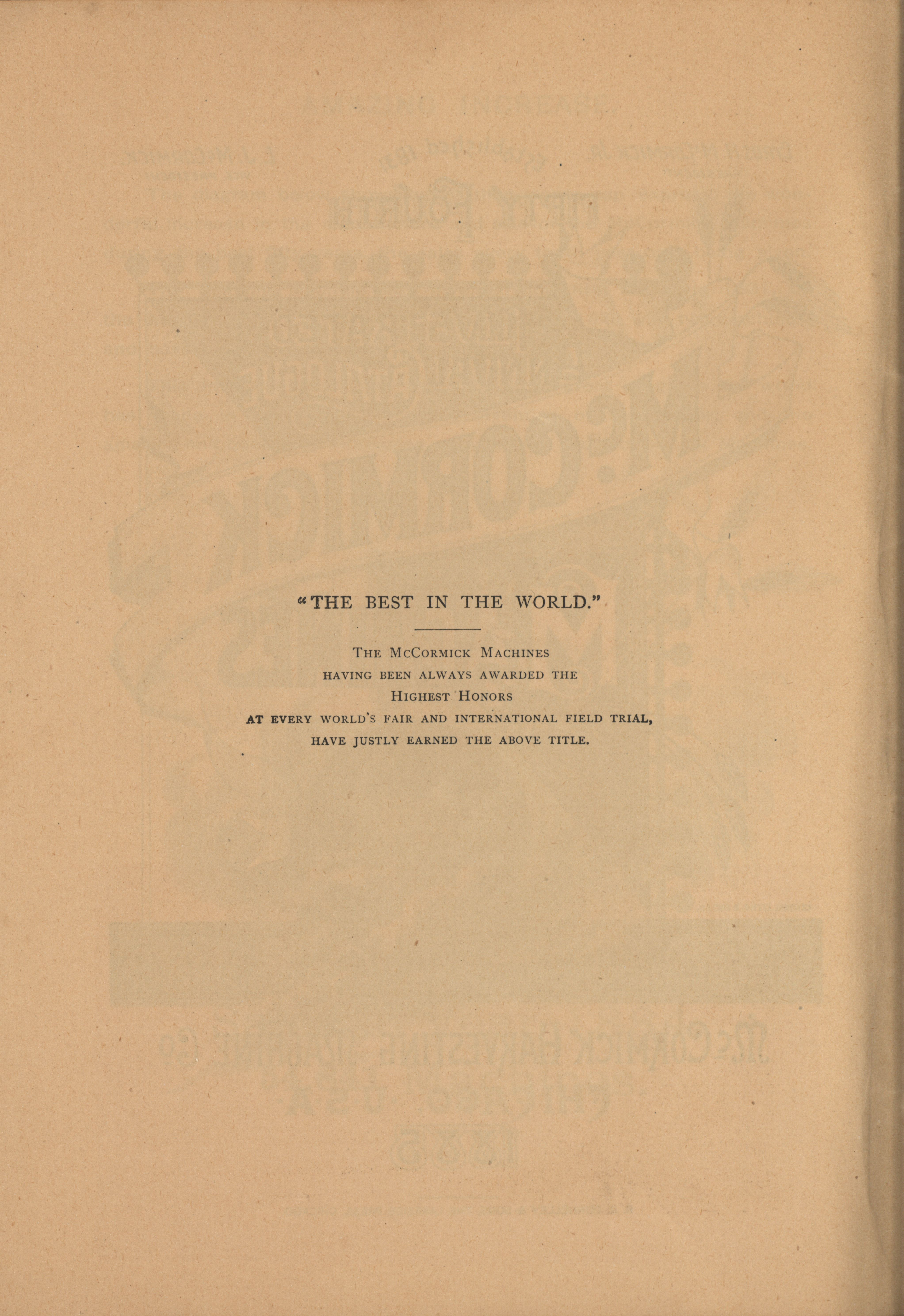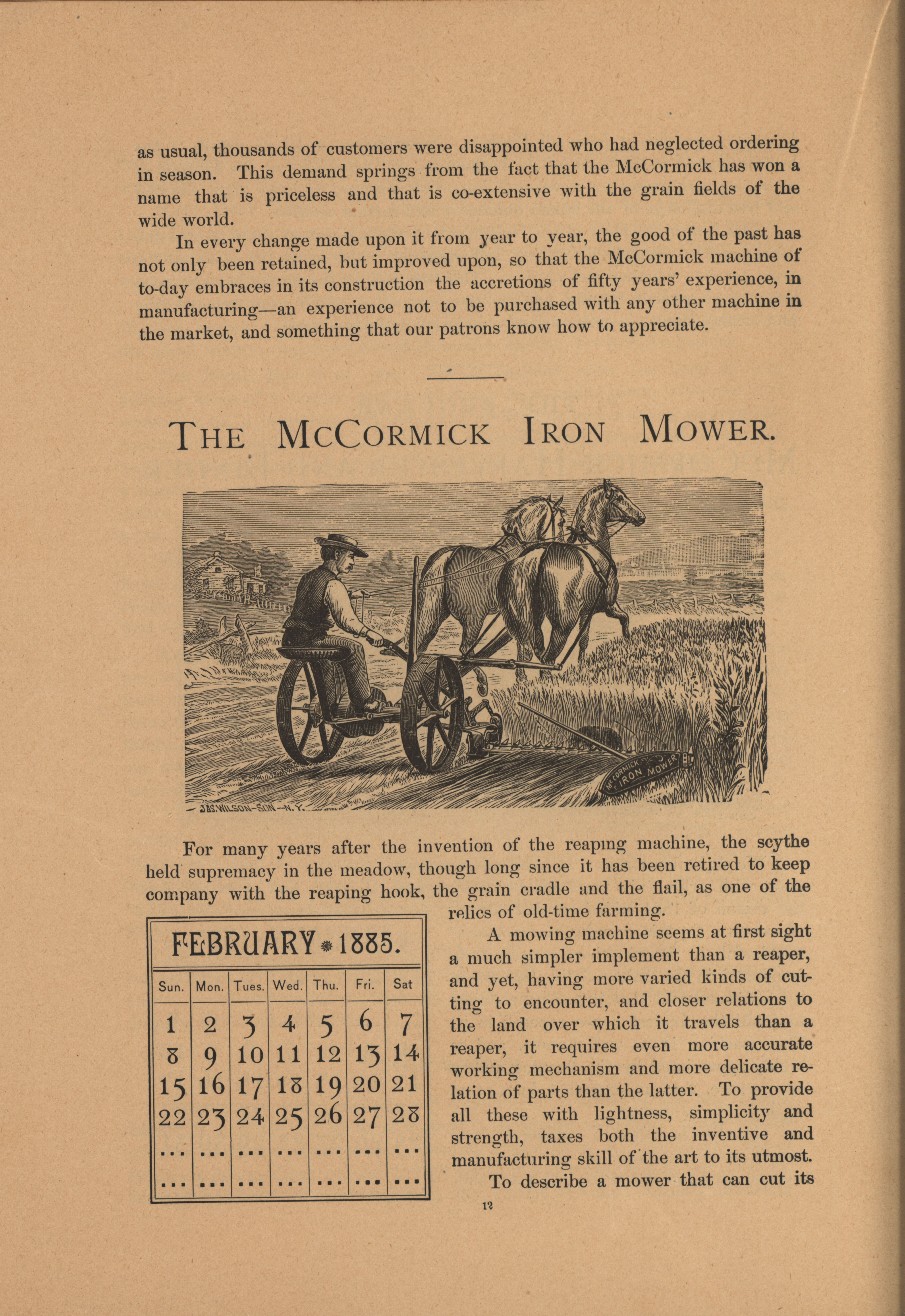- Illustrated catalog describing the agricultural implements offered by McCormick Harvesting Machine Company in 1885.
