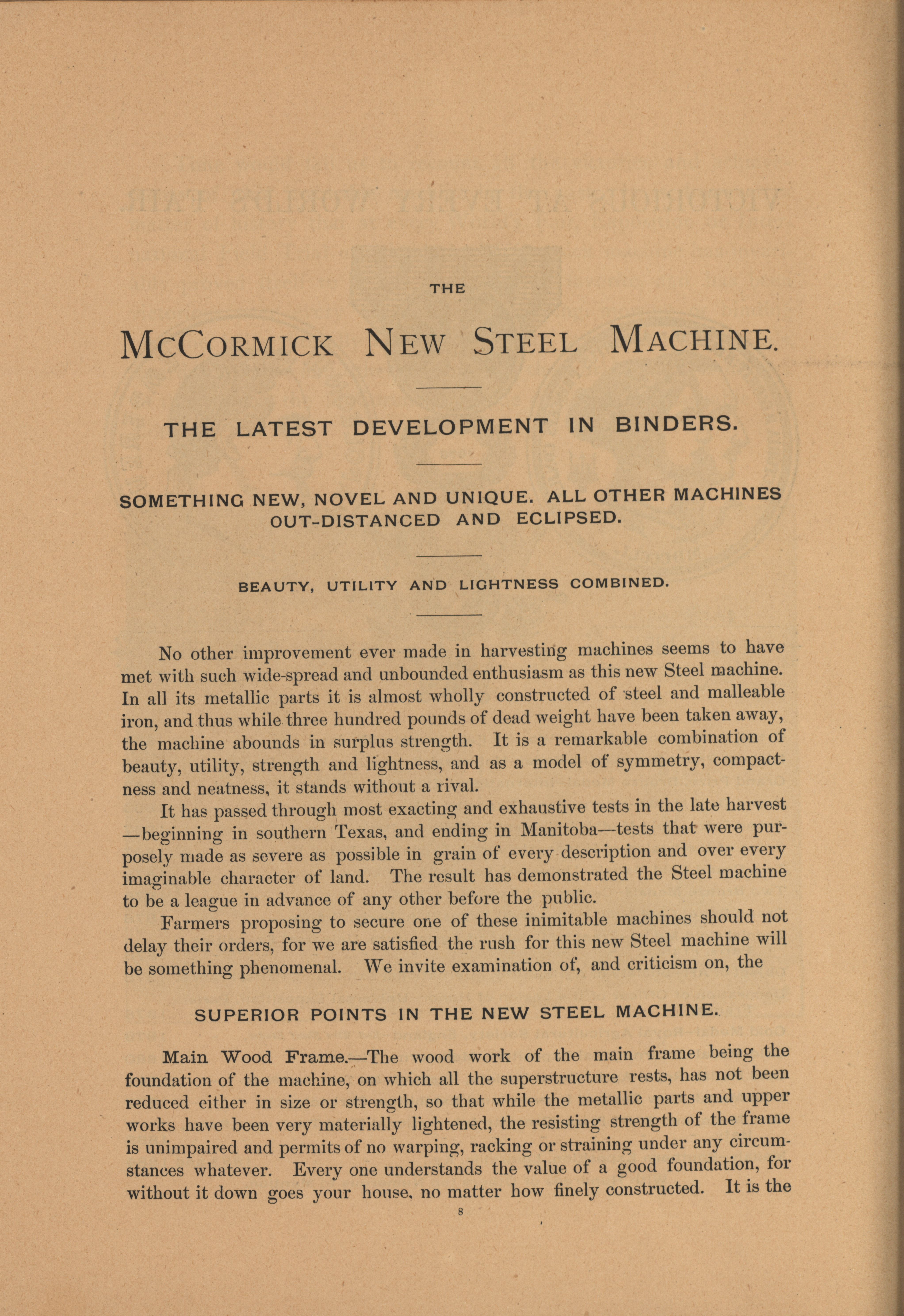 - "McCormick Harvesting Machine Company catalog", Agricultural Machinery Literature Collection, Iowa State University Library Digital Collections