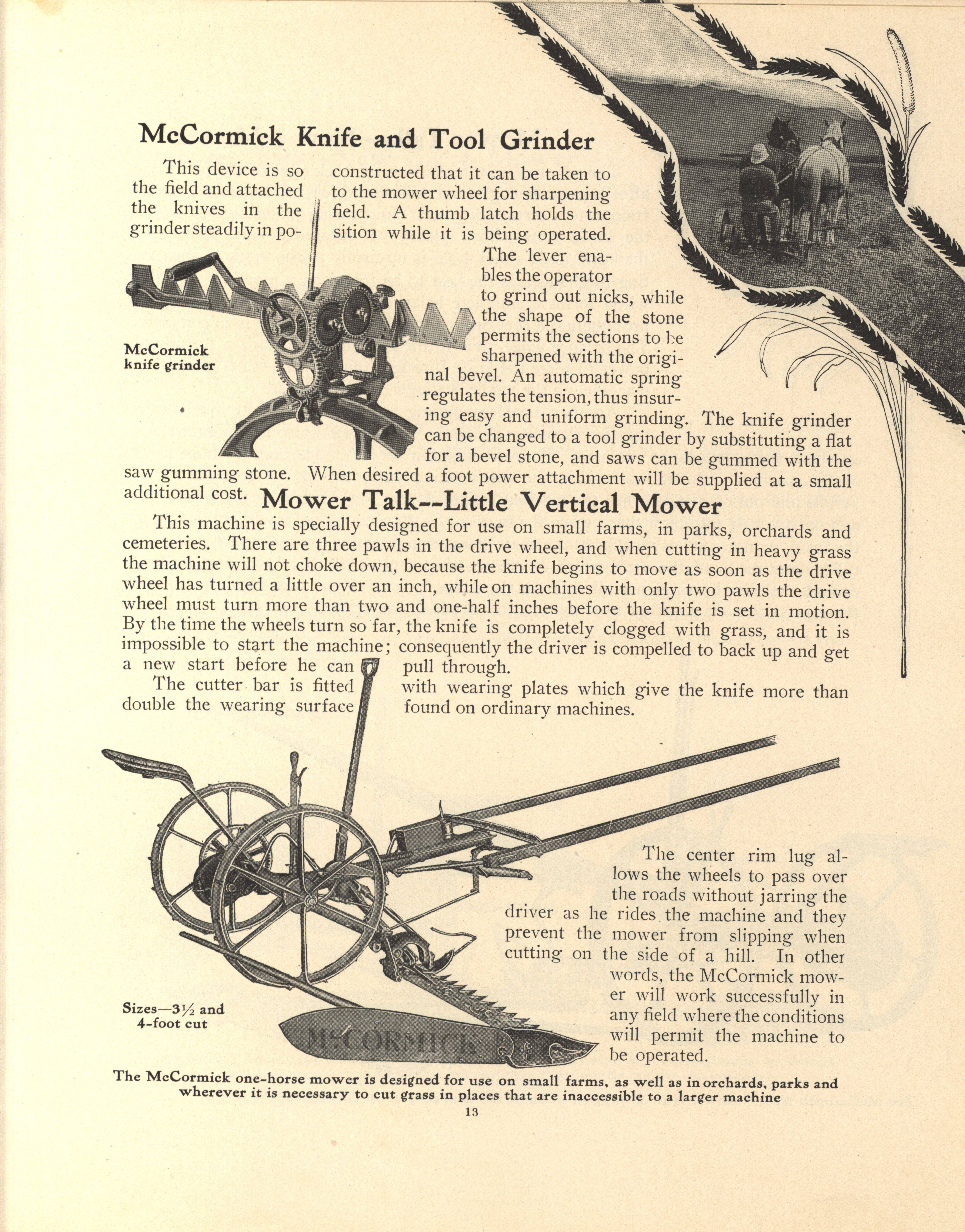 - "International Harvester Company of America McCormick catalog", Agricultural Machinery Literature Collection, Iowa State University Library Digital Collections