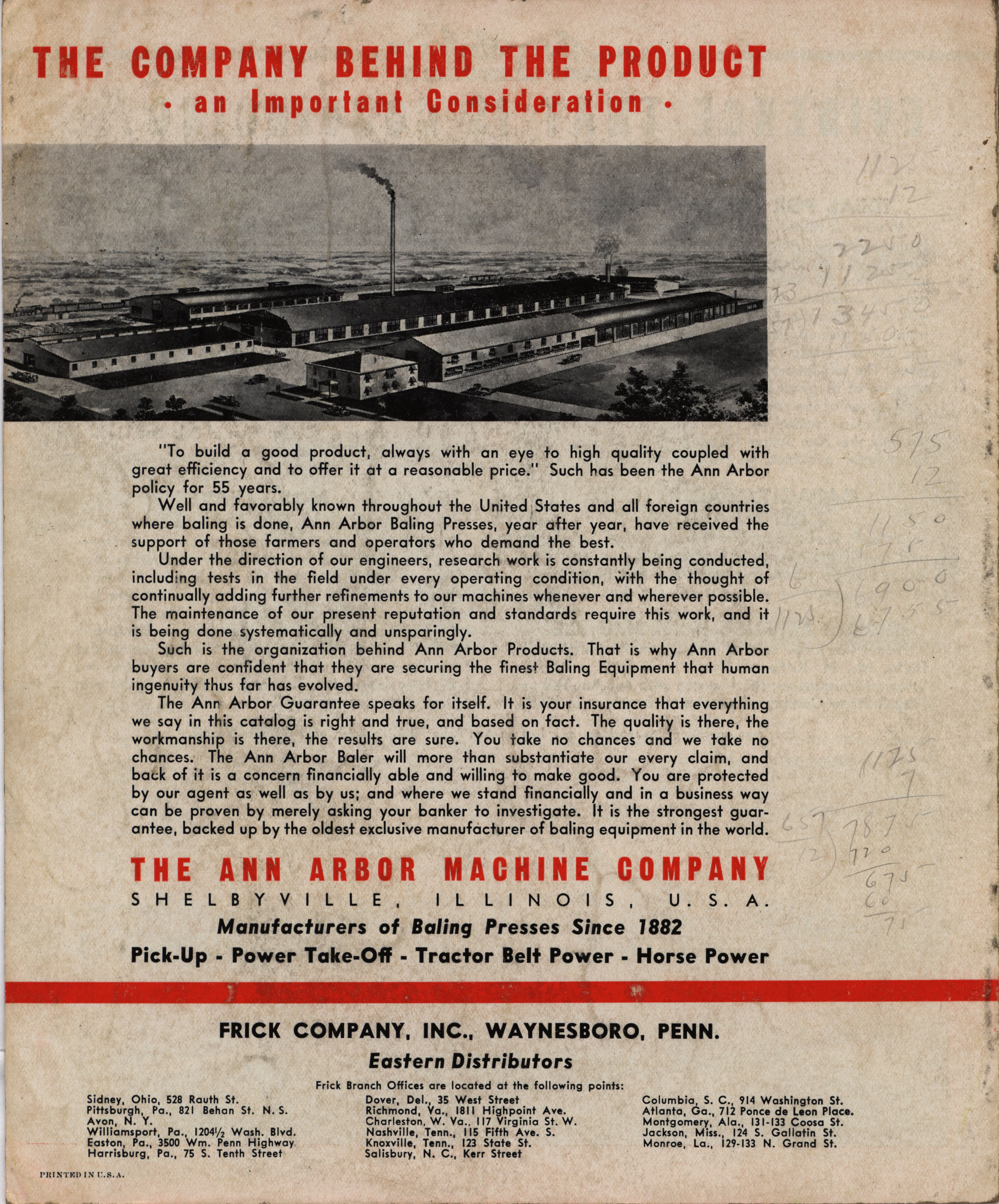 Ann Arbor Machine Company hay and straw combine catalog Item Info