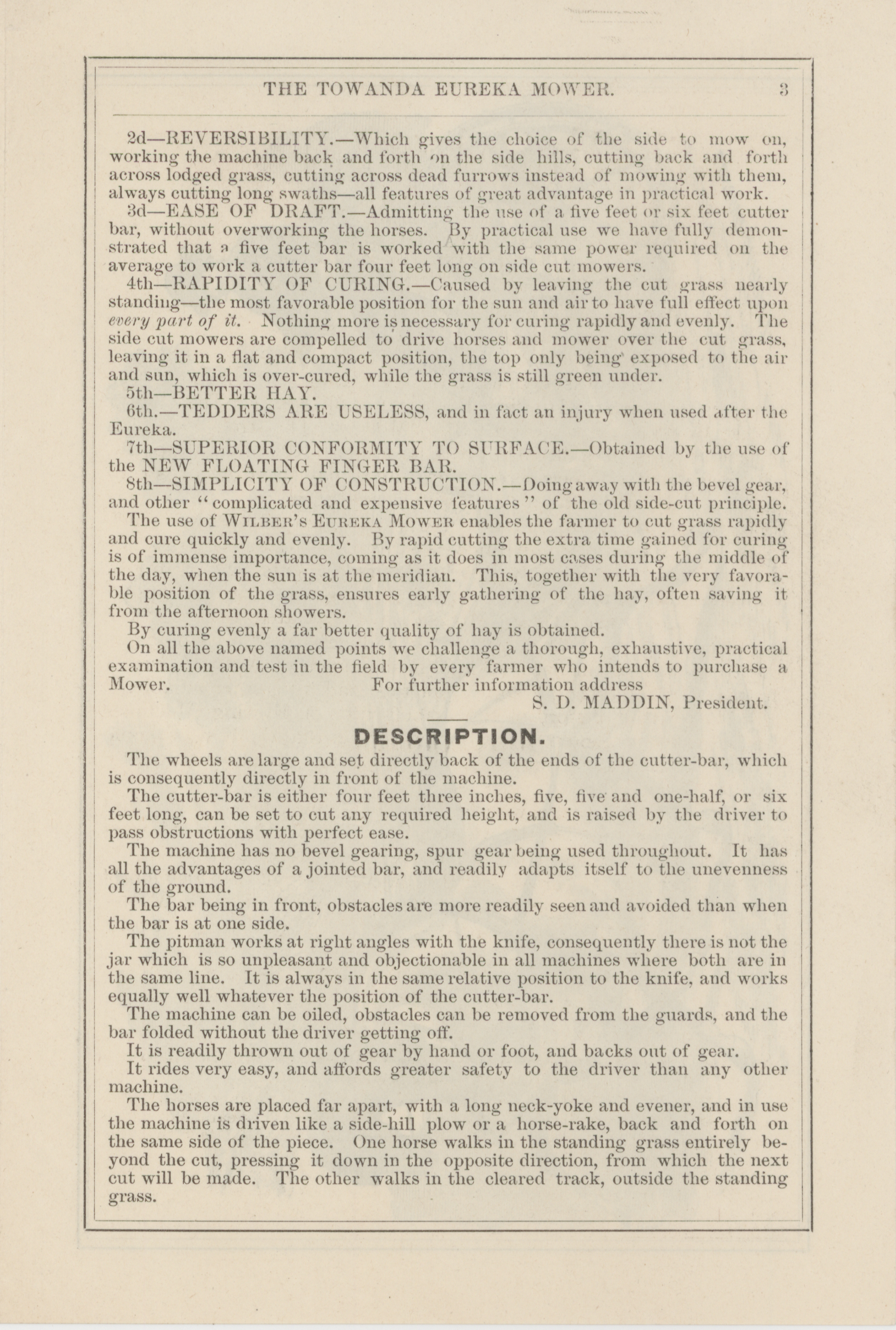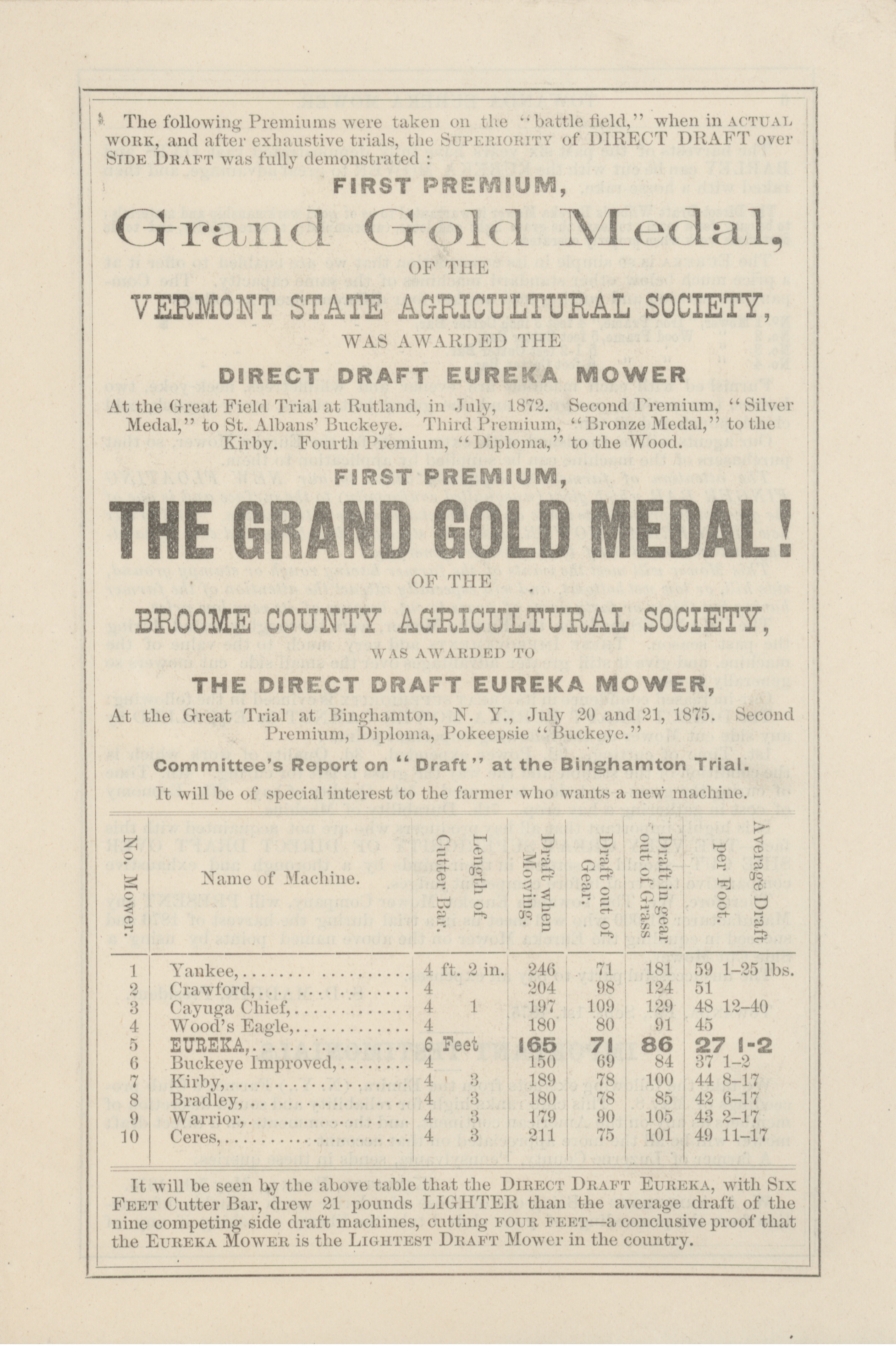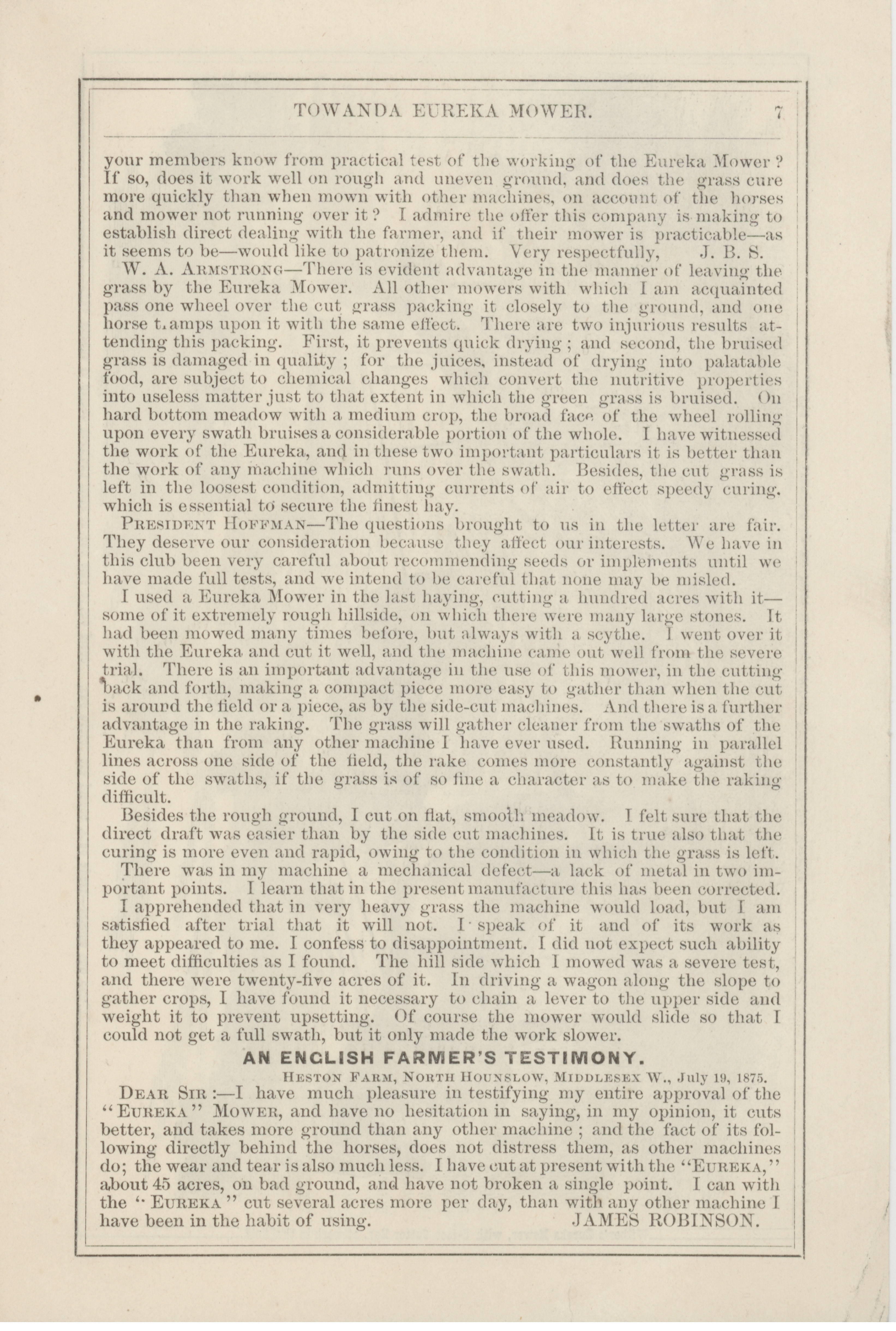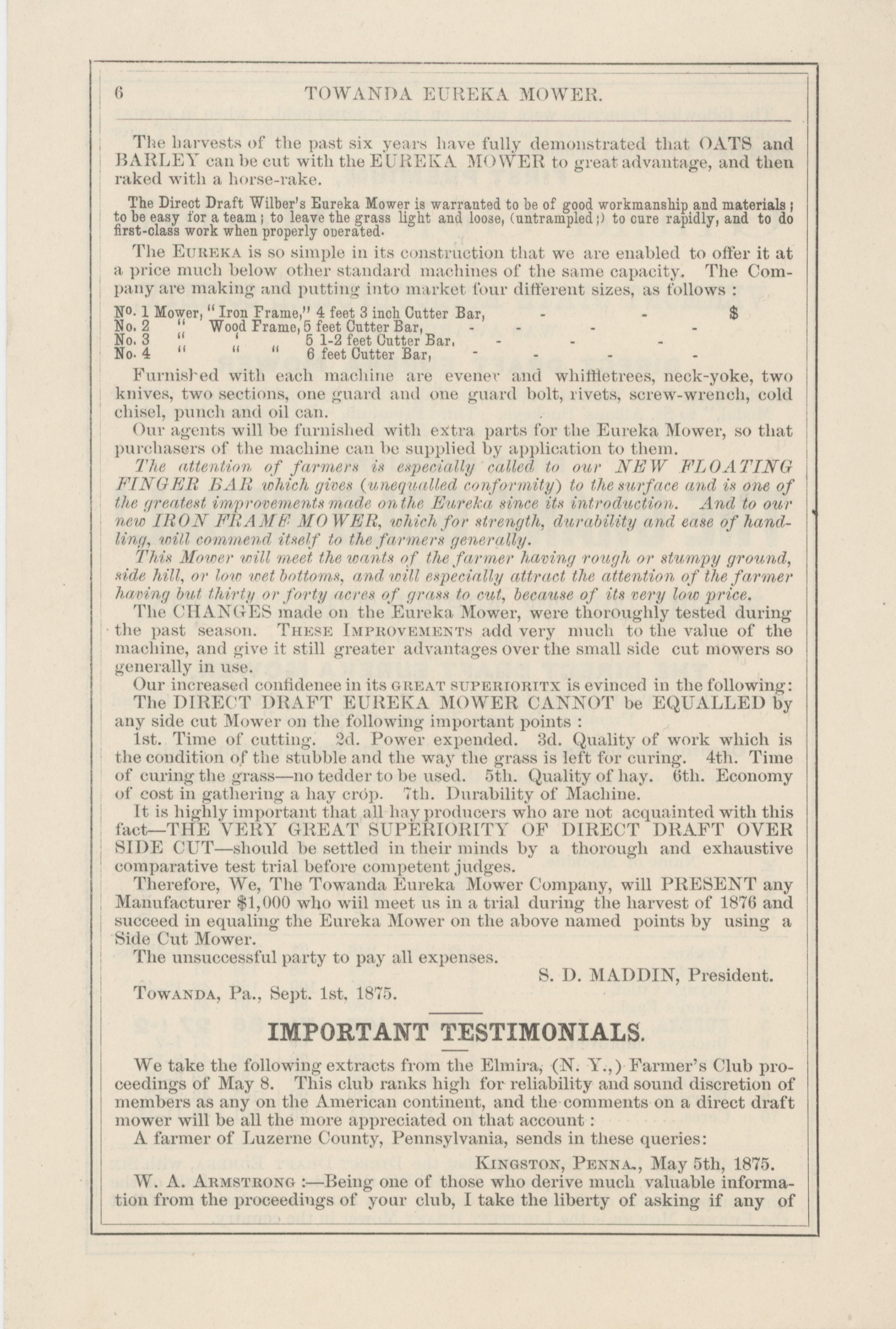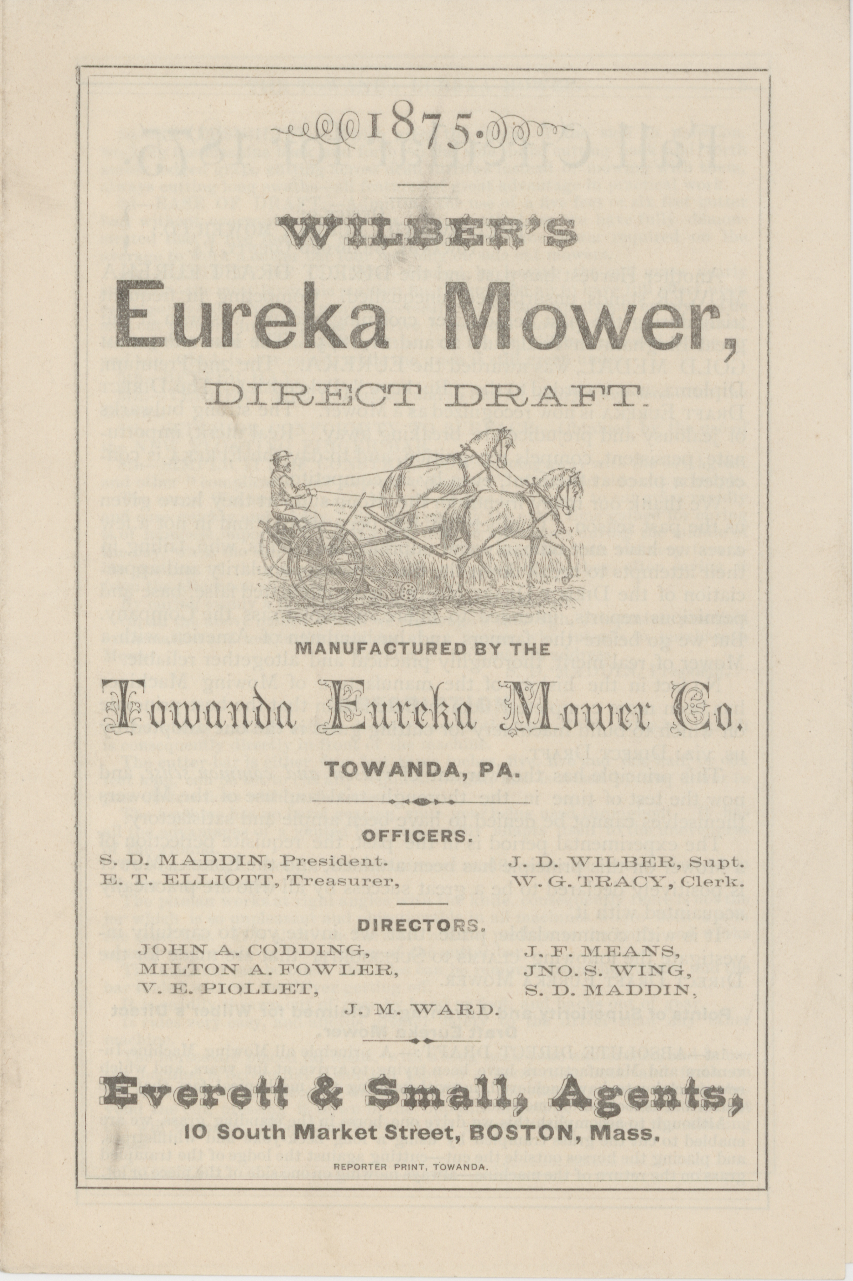 - "Towanda Eureka Mower Company 1875 catalog", Agricultural Machinery Literature Collection, Iowa State University Library Digital Collections