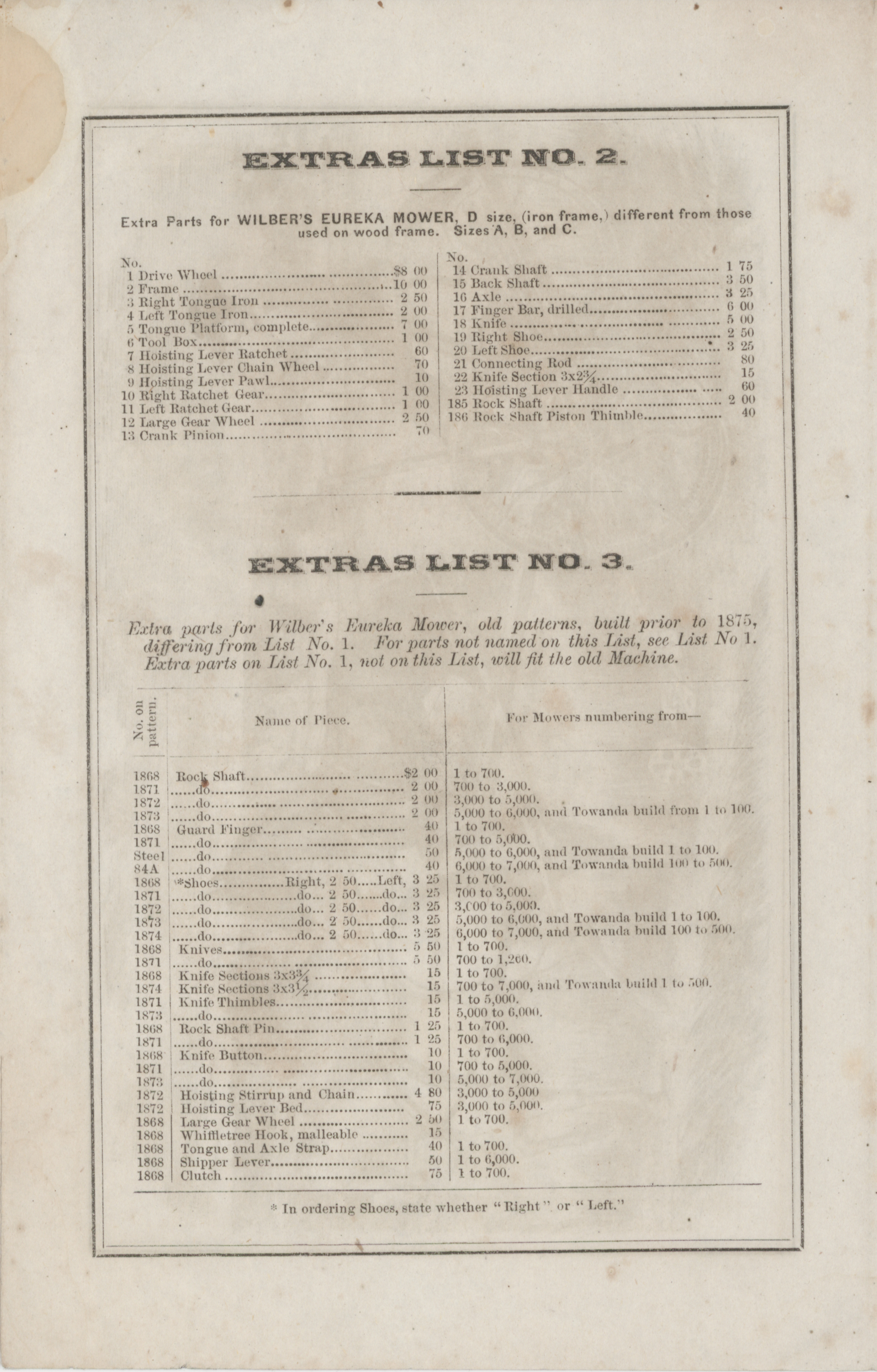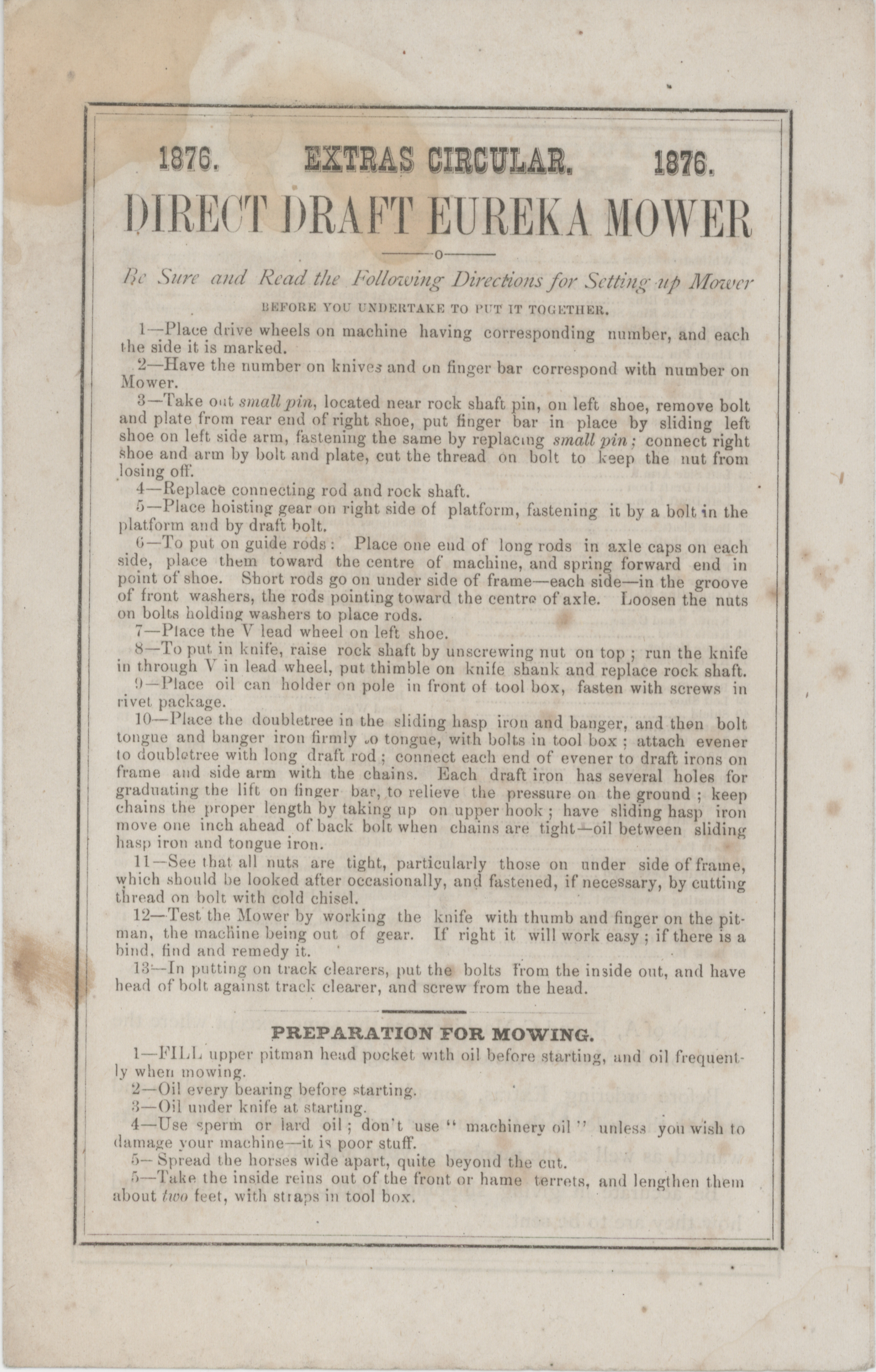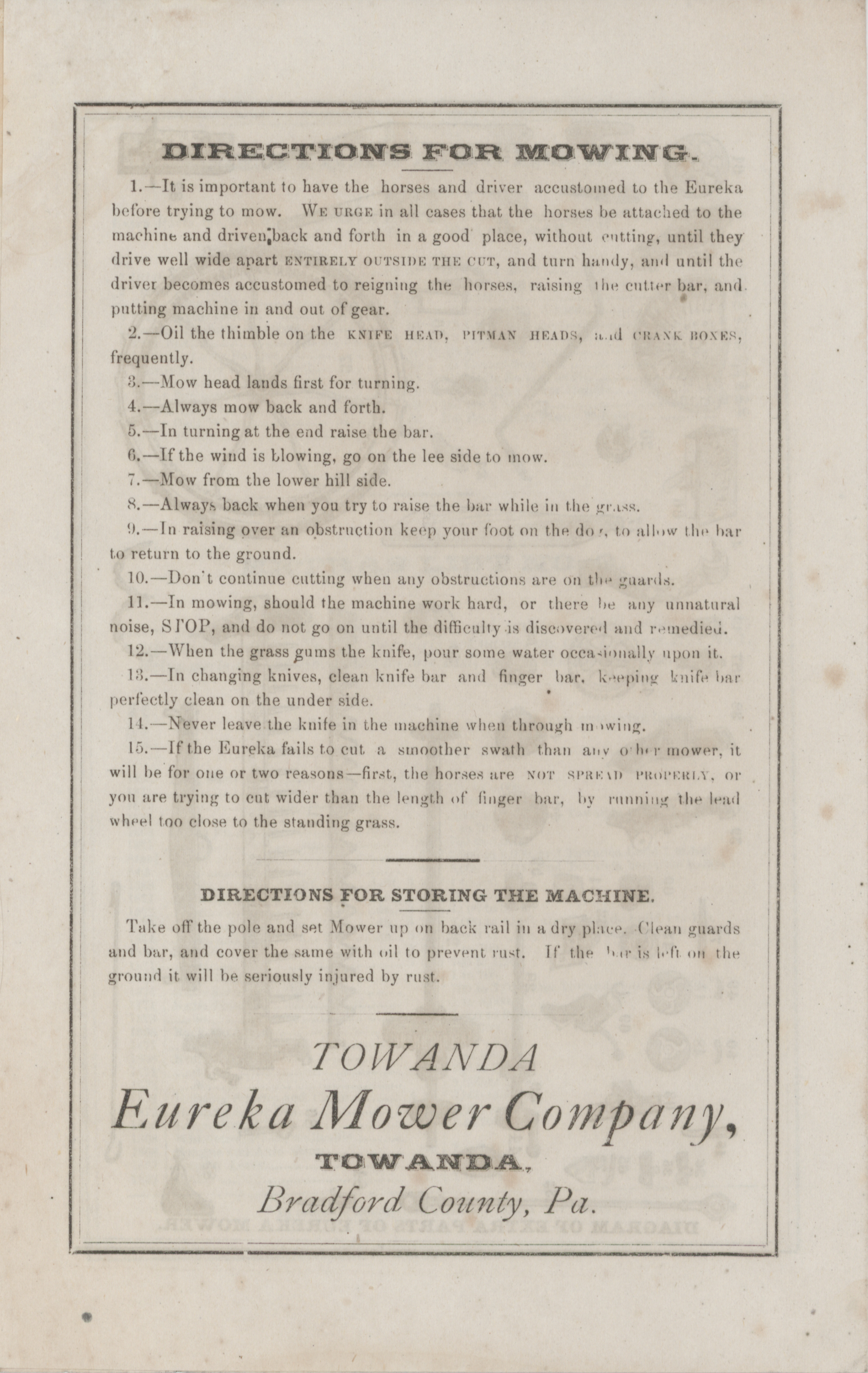 - "Towanda Eureka Mower Company 1876 extras circular", Agricultural Machinery Literature Collection, Iowa State University Library Digital Collections