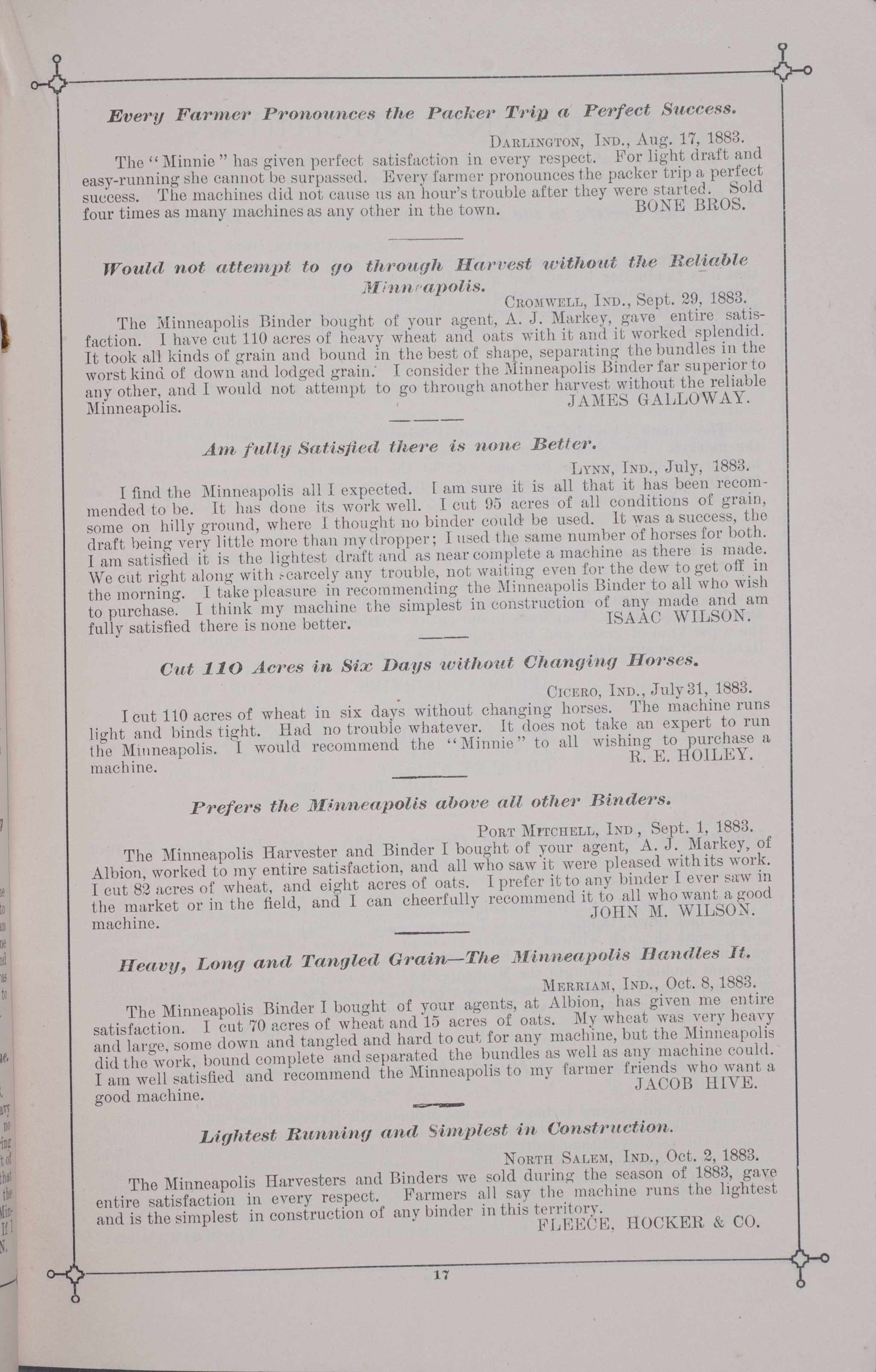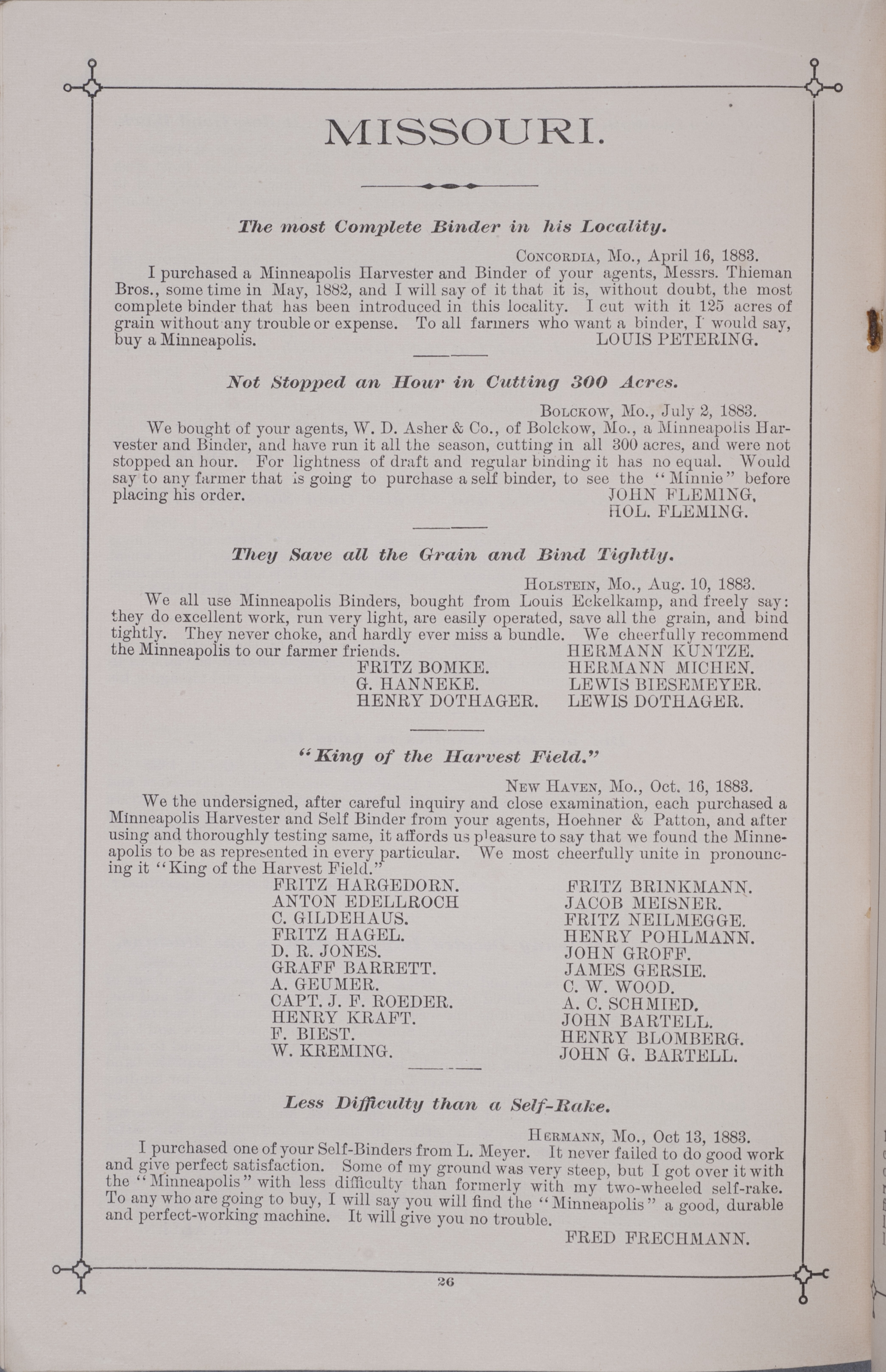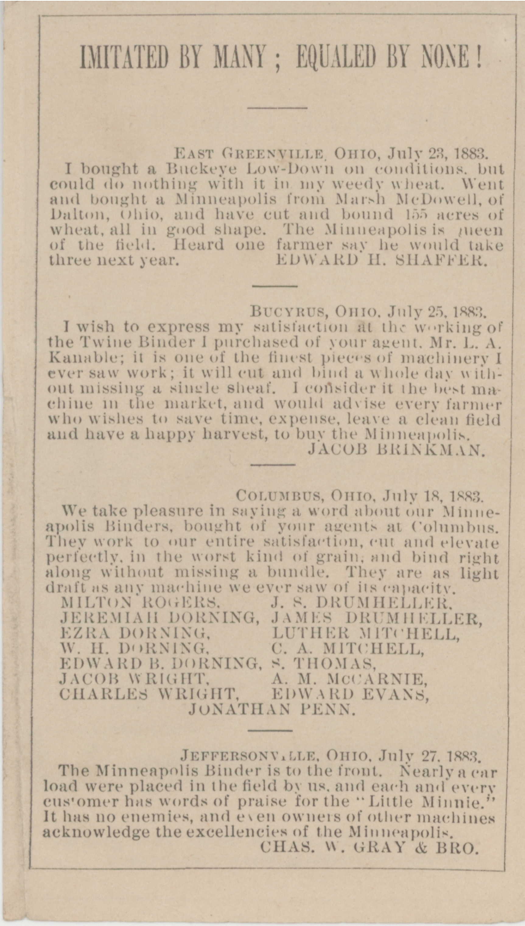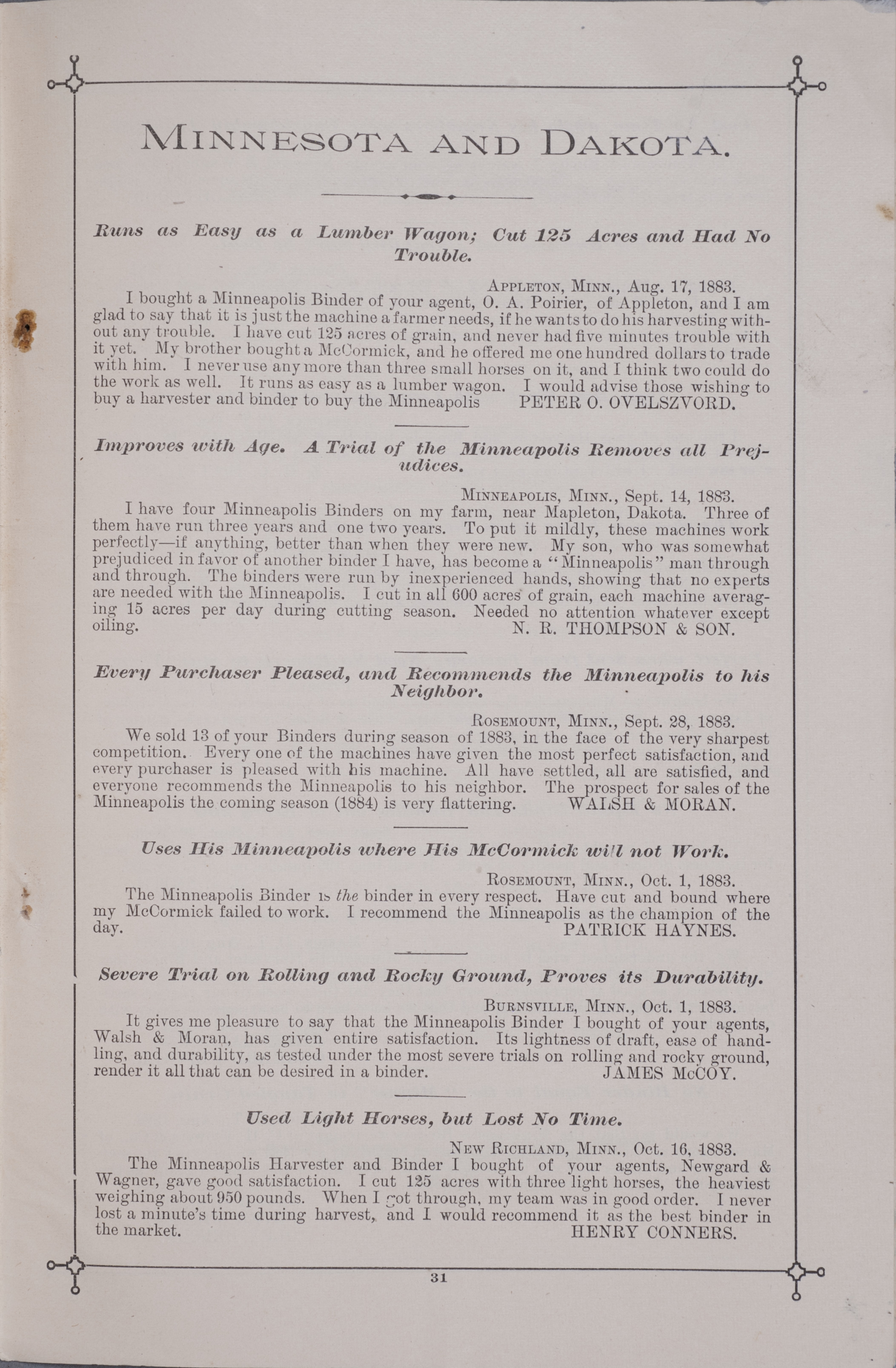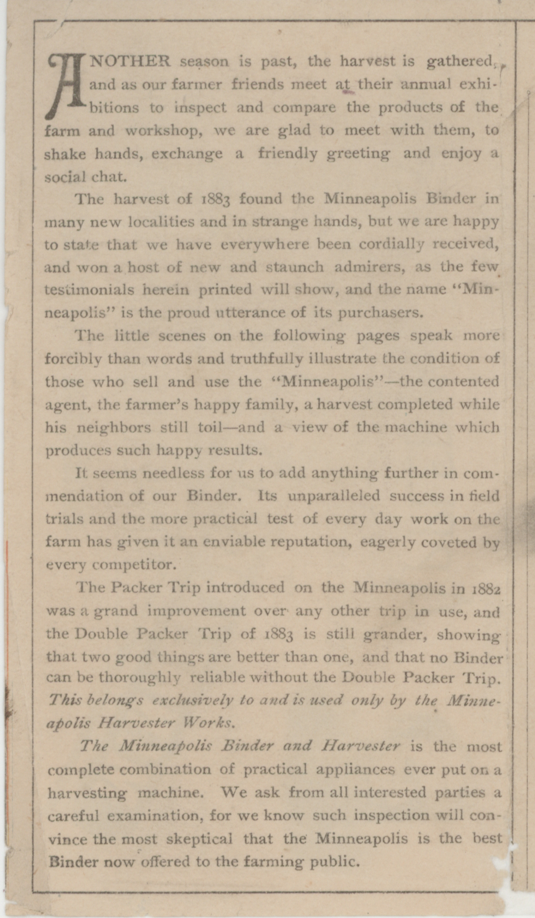 - Minneapolis Harvester Works 1884 catalog